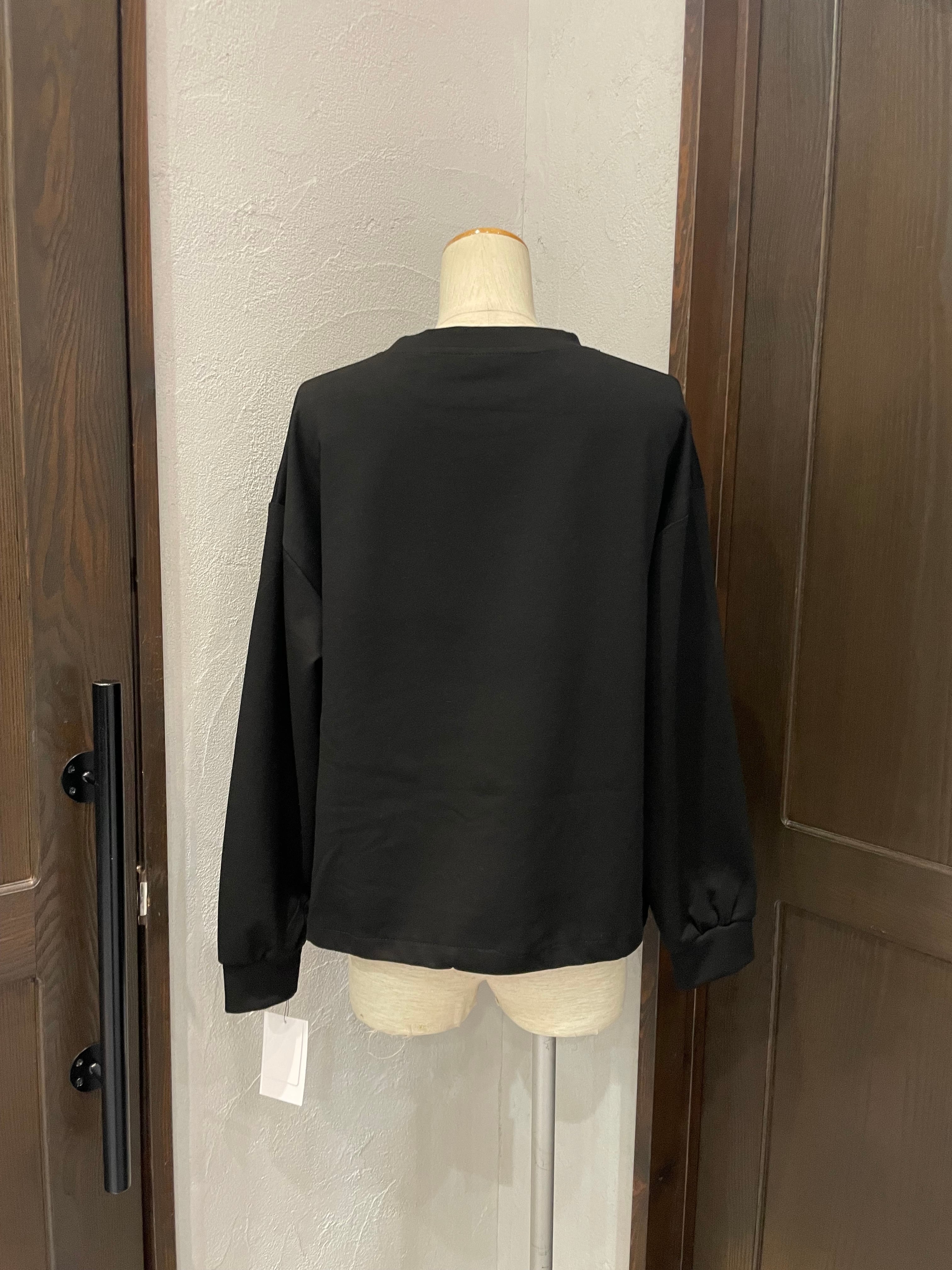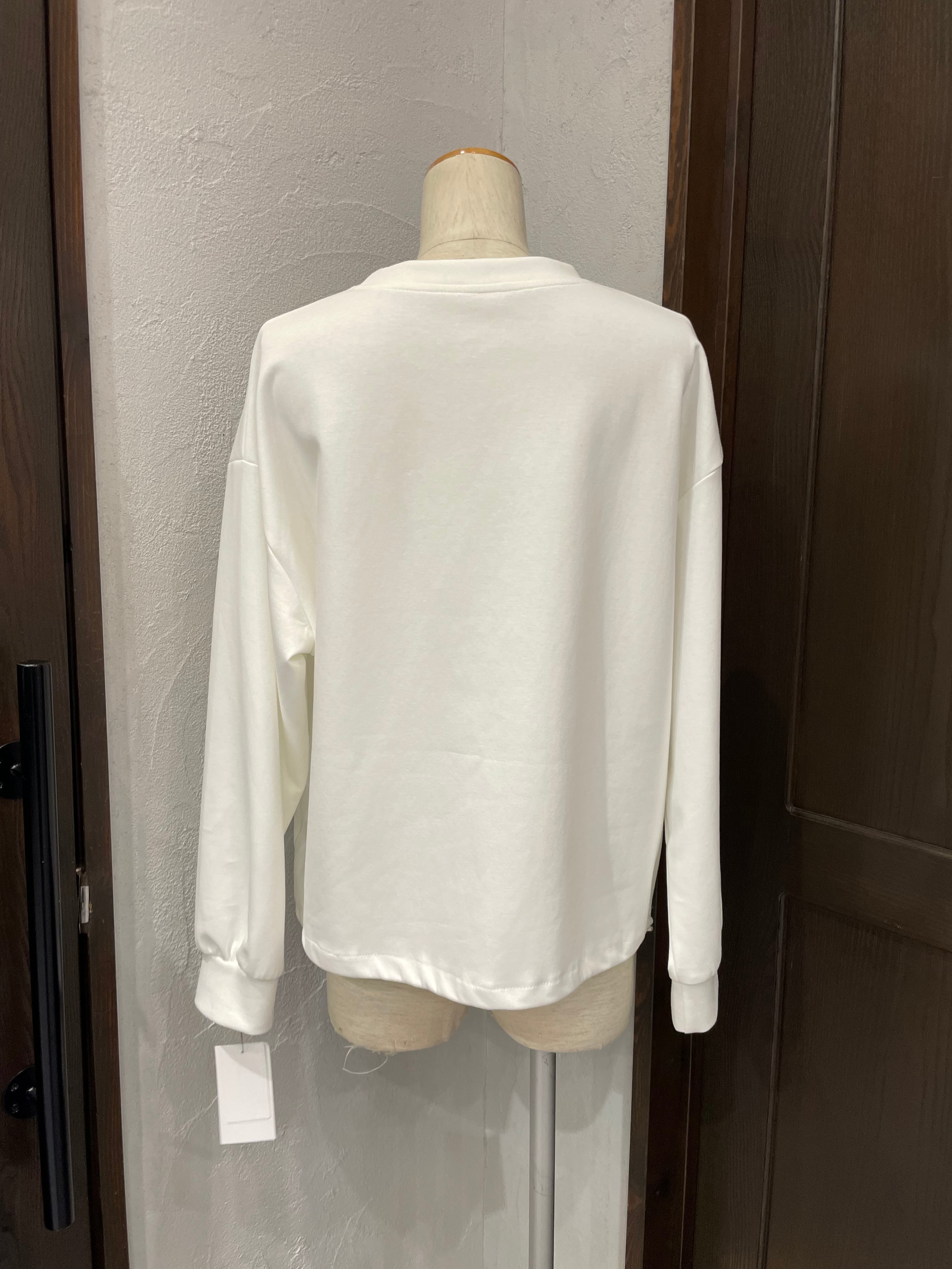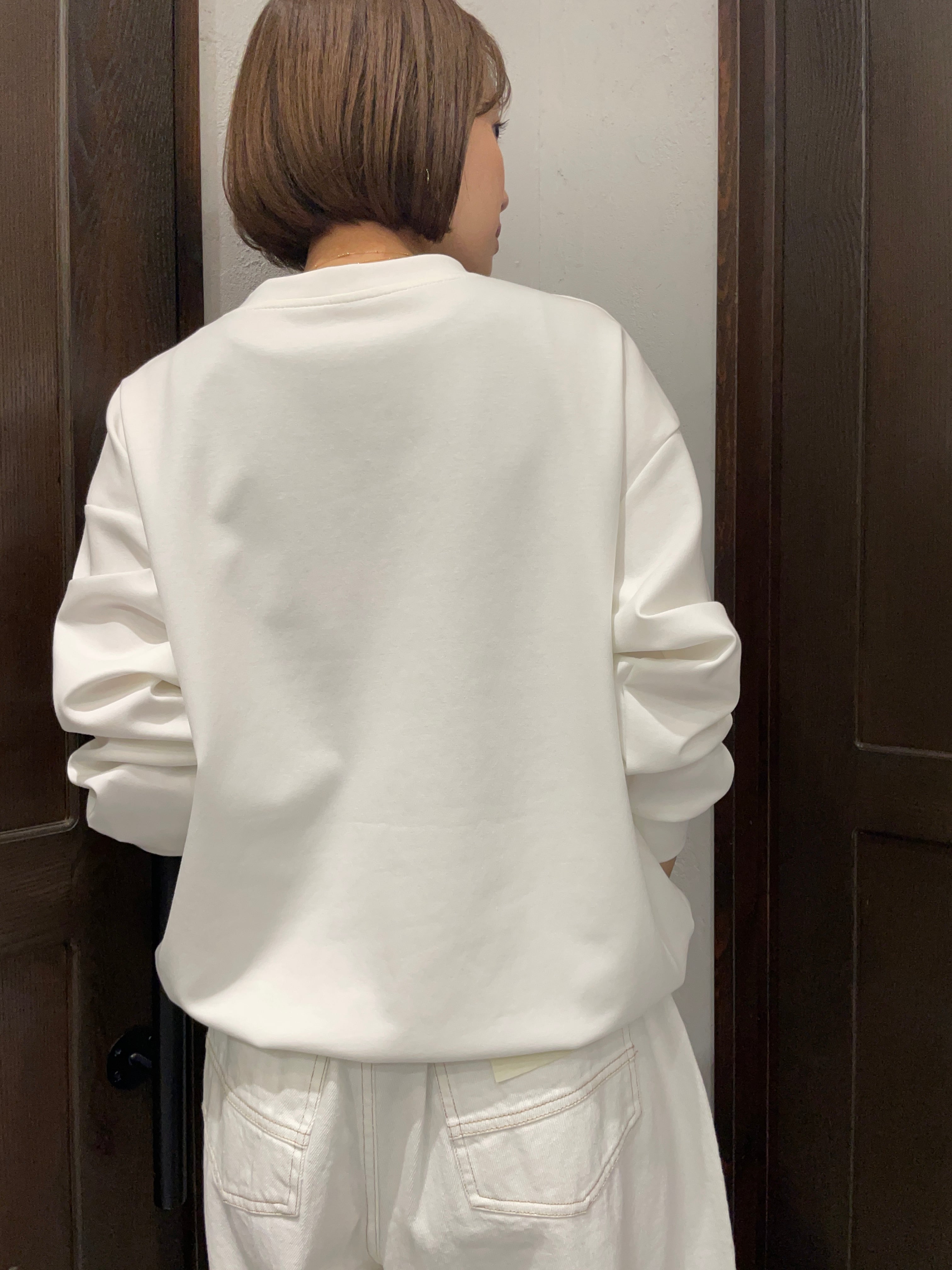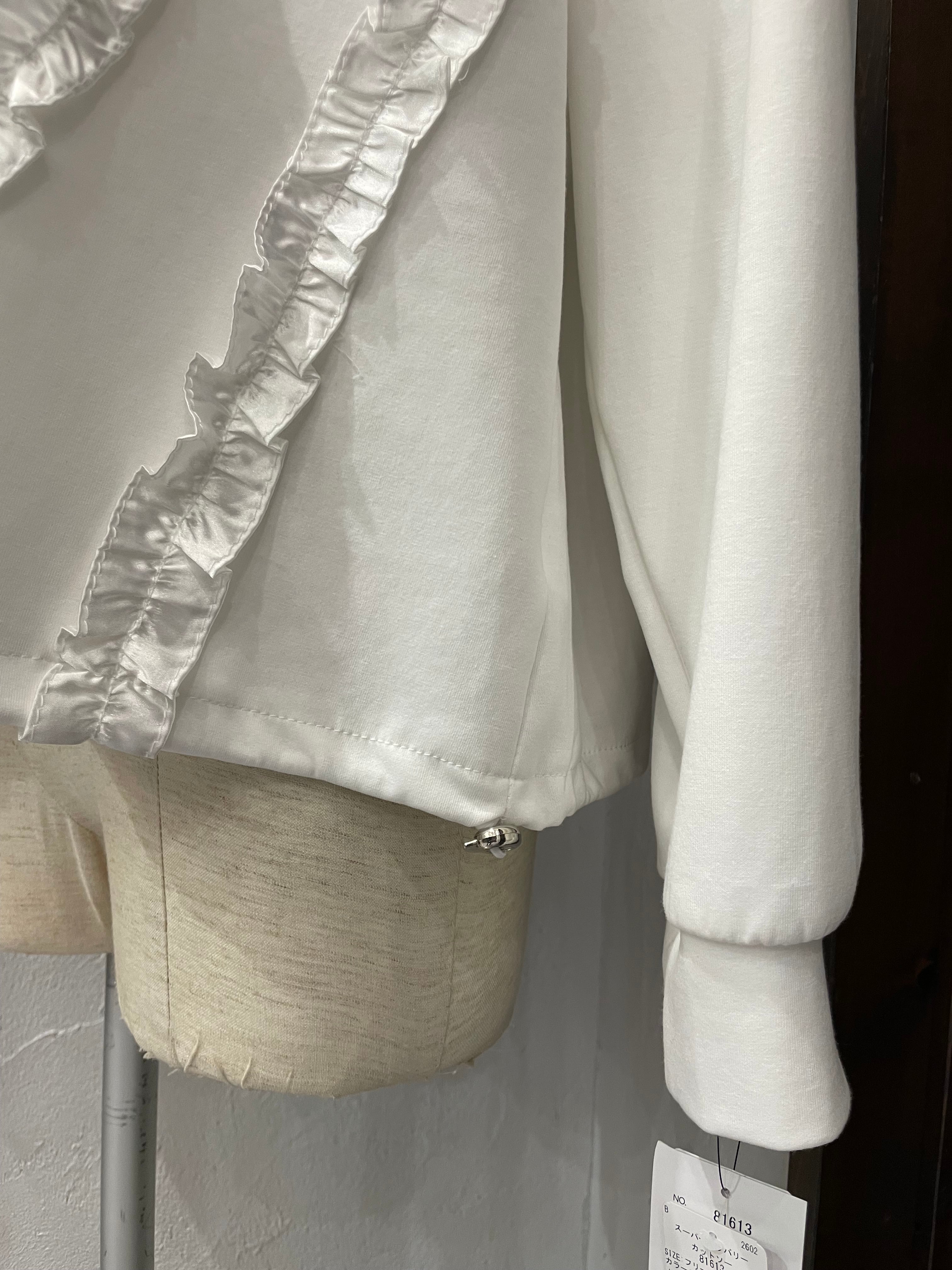 サイドからフリルテープを施したダンボールニットプルオーバー。