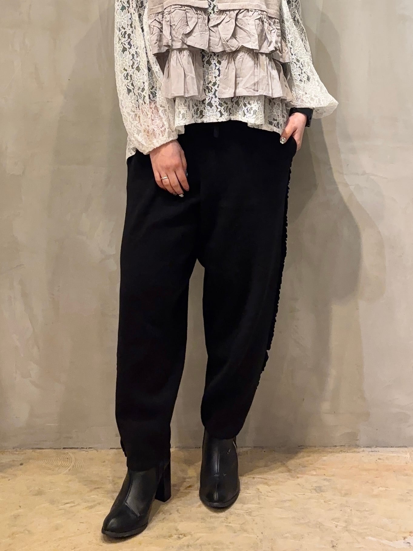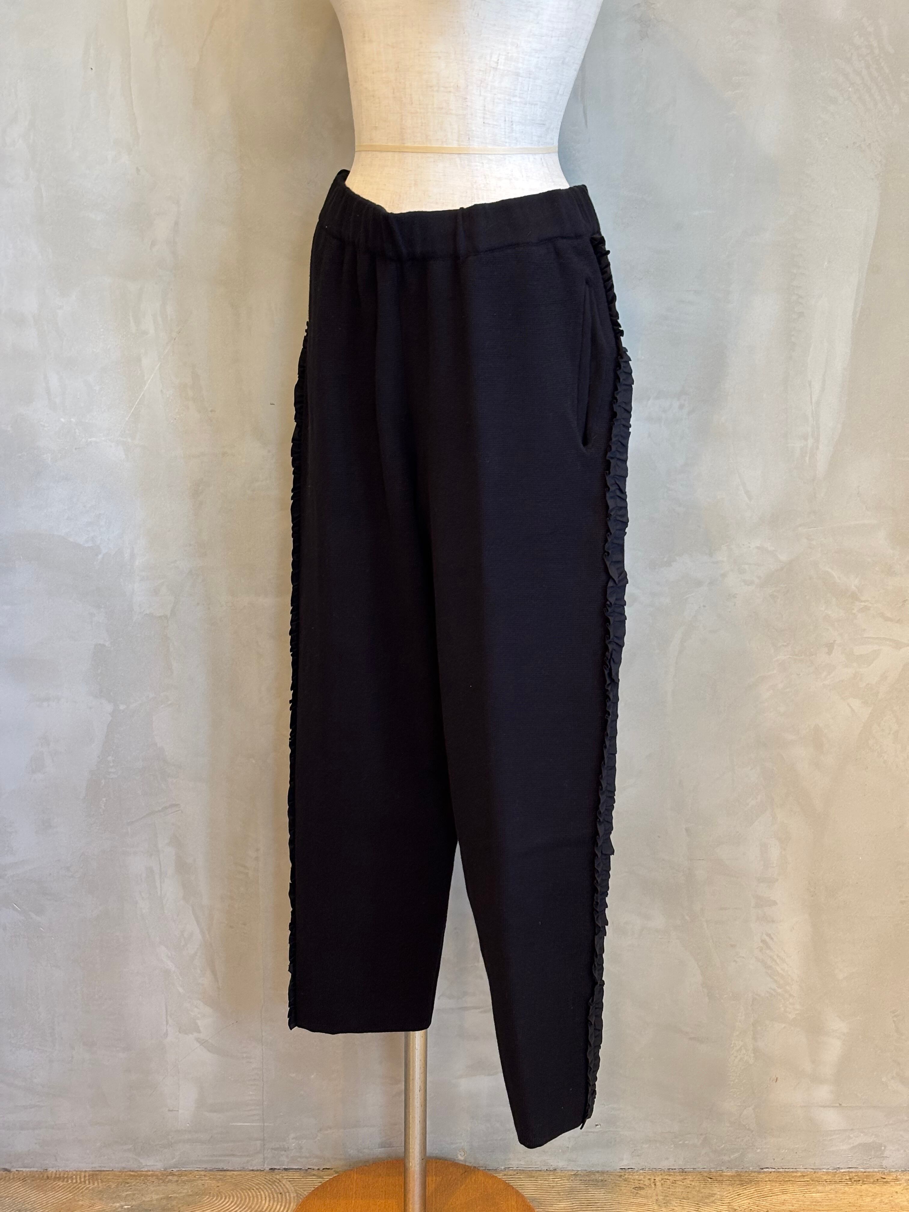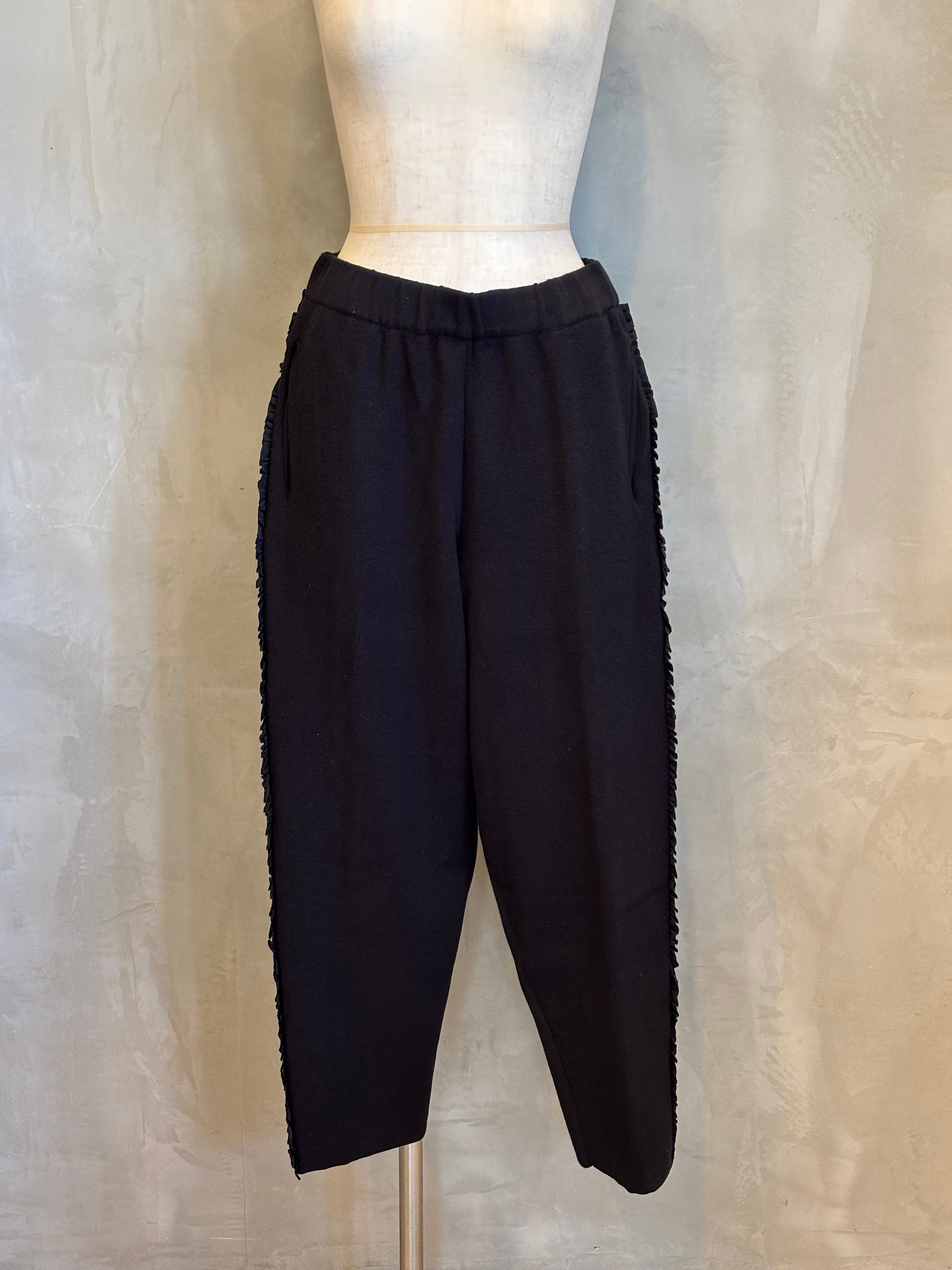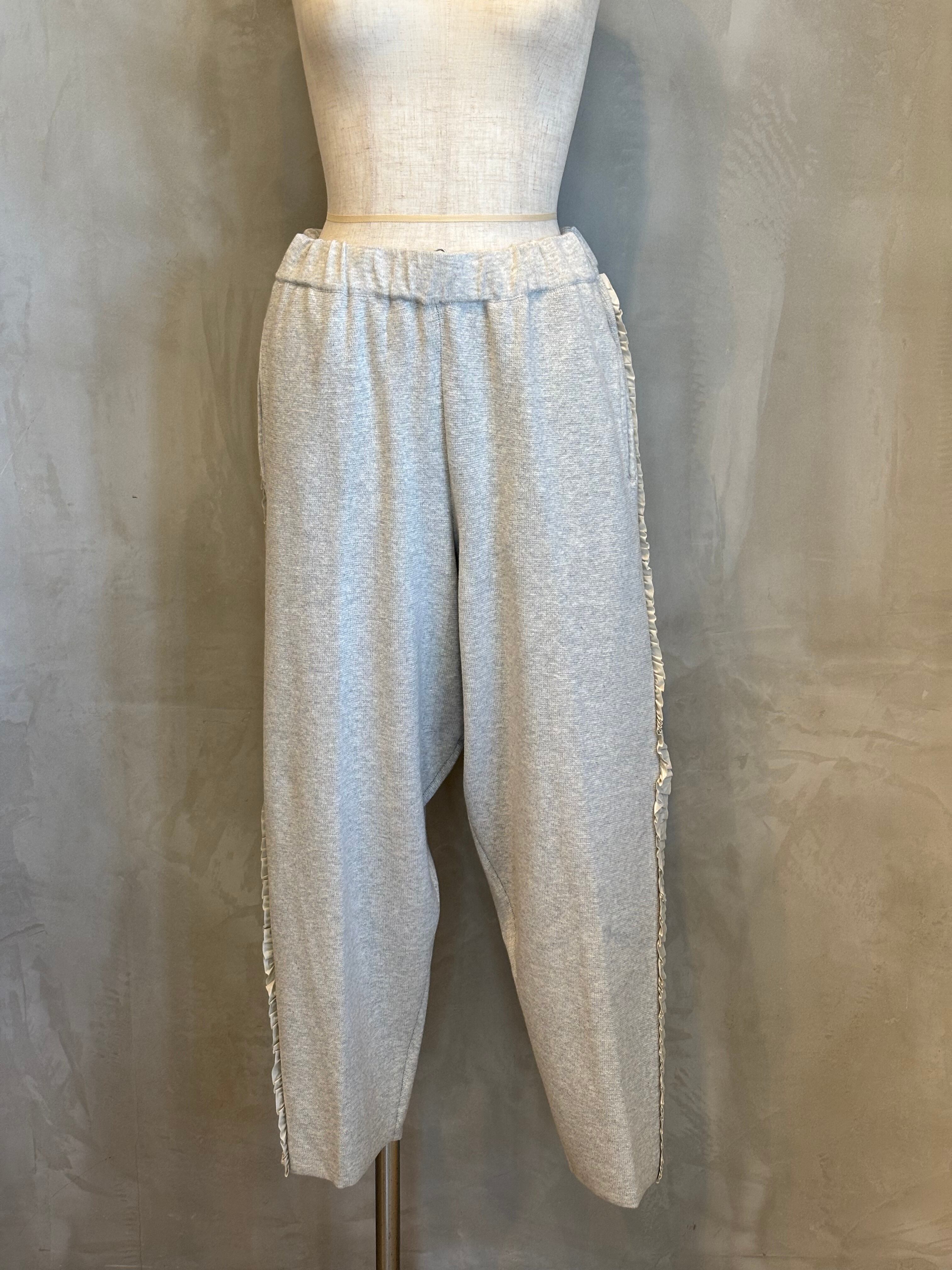 柔らかな風合いのコットンを使用したサイドふりふりフリルテーパードパンツ