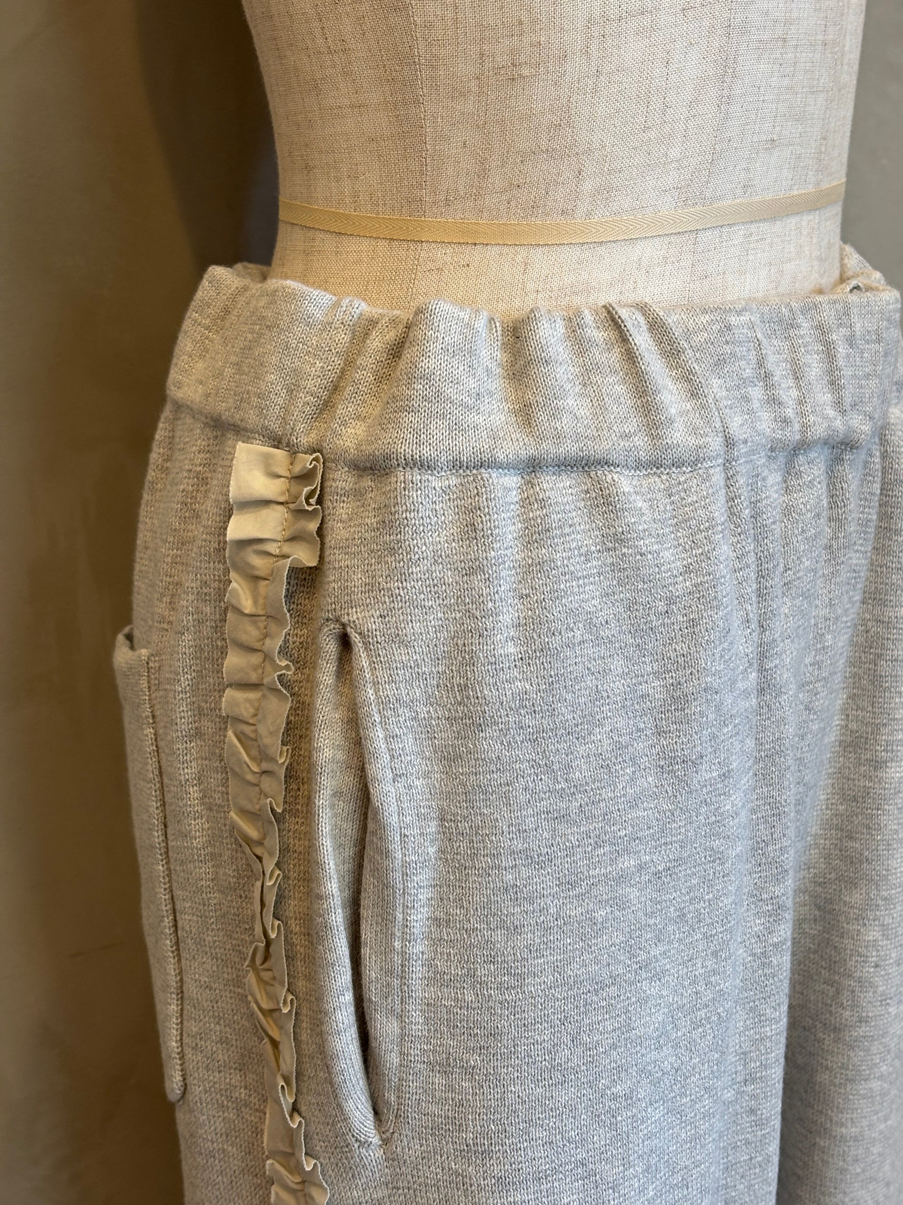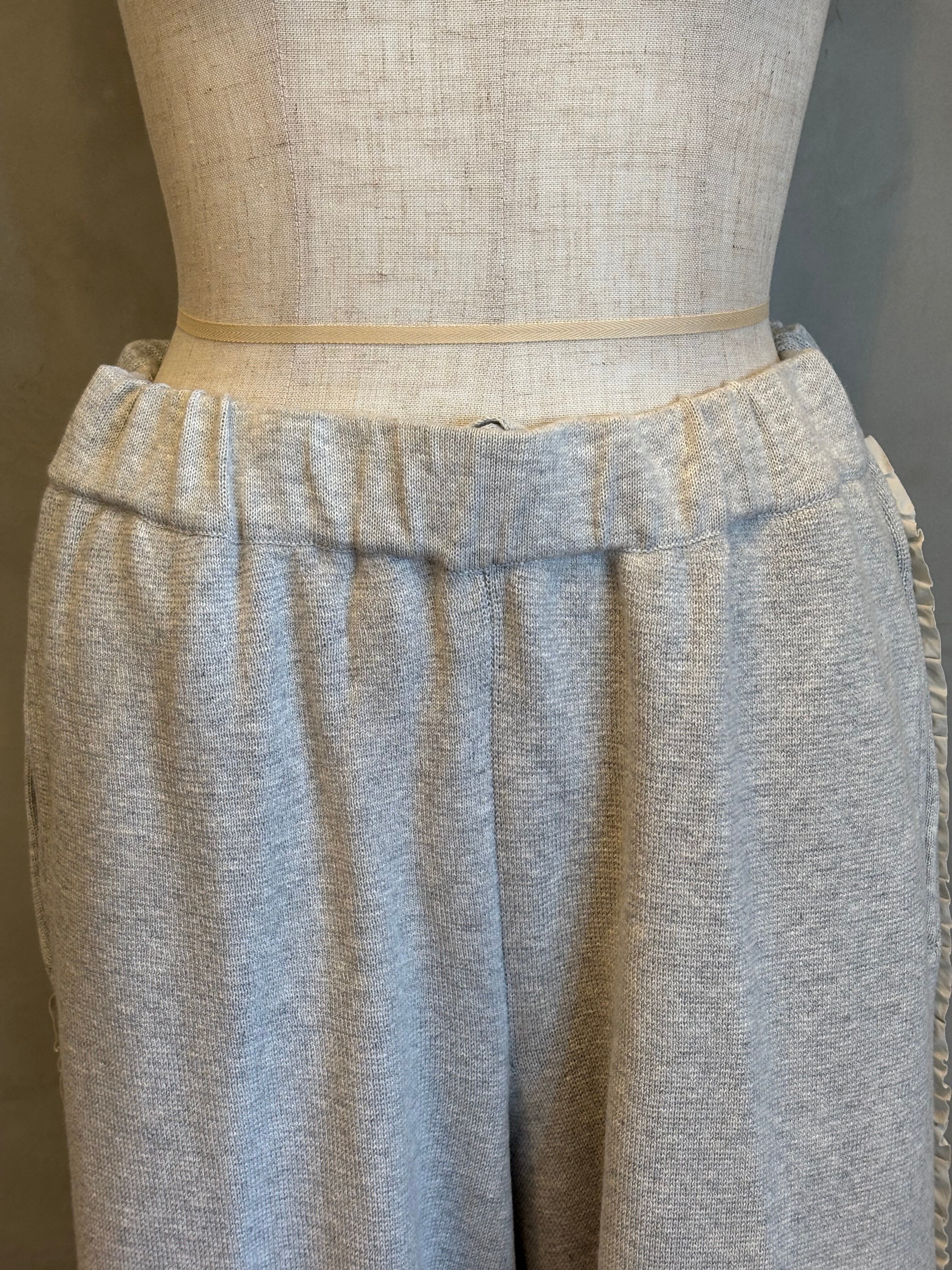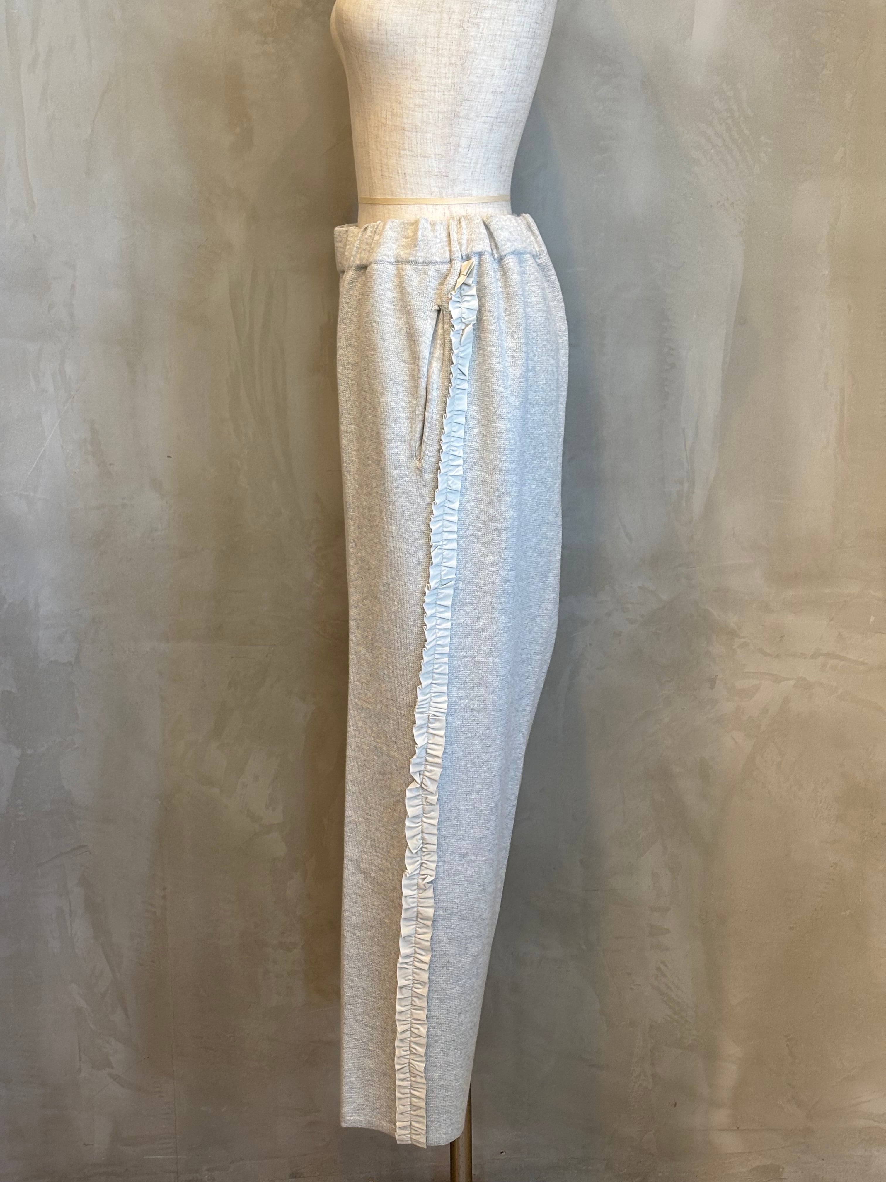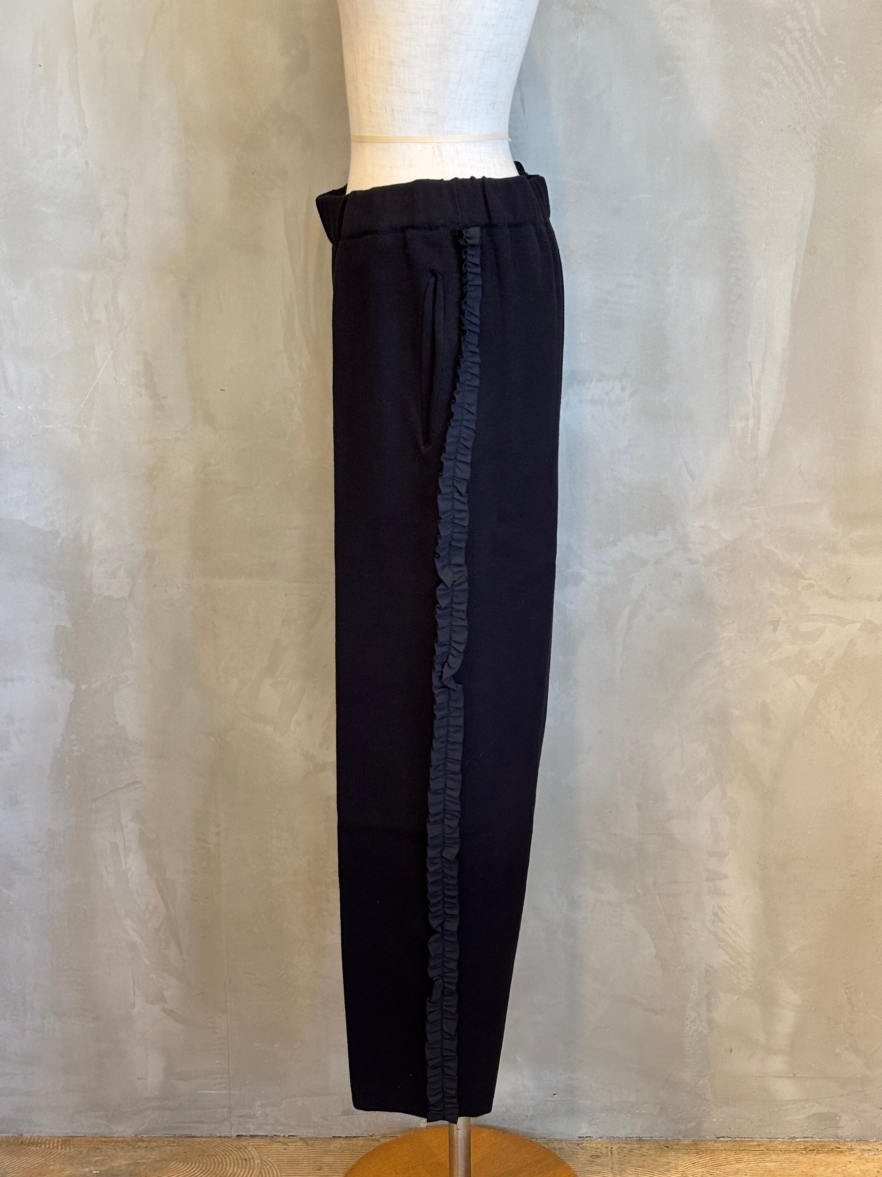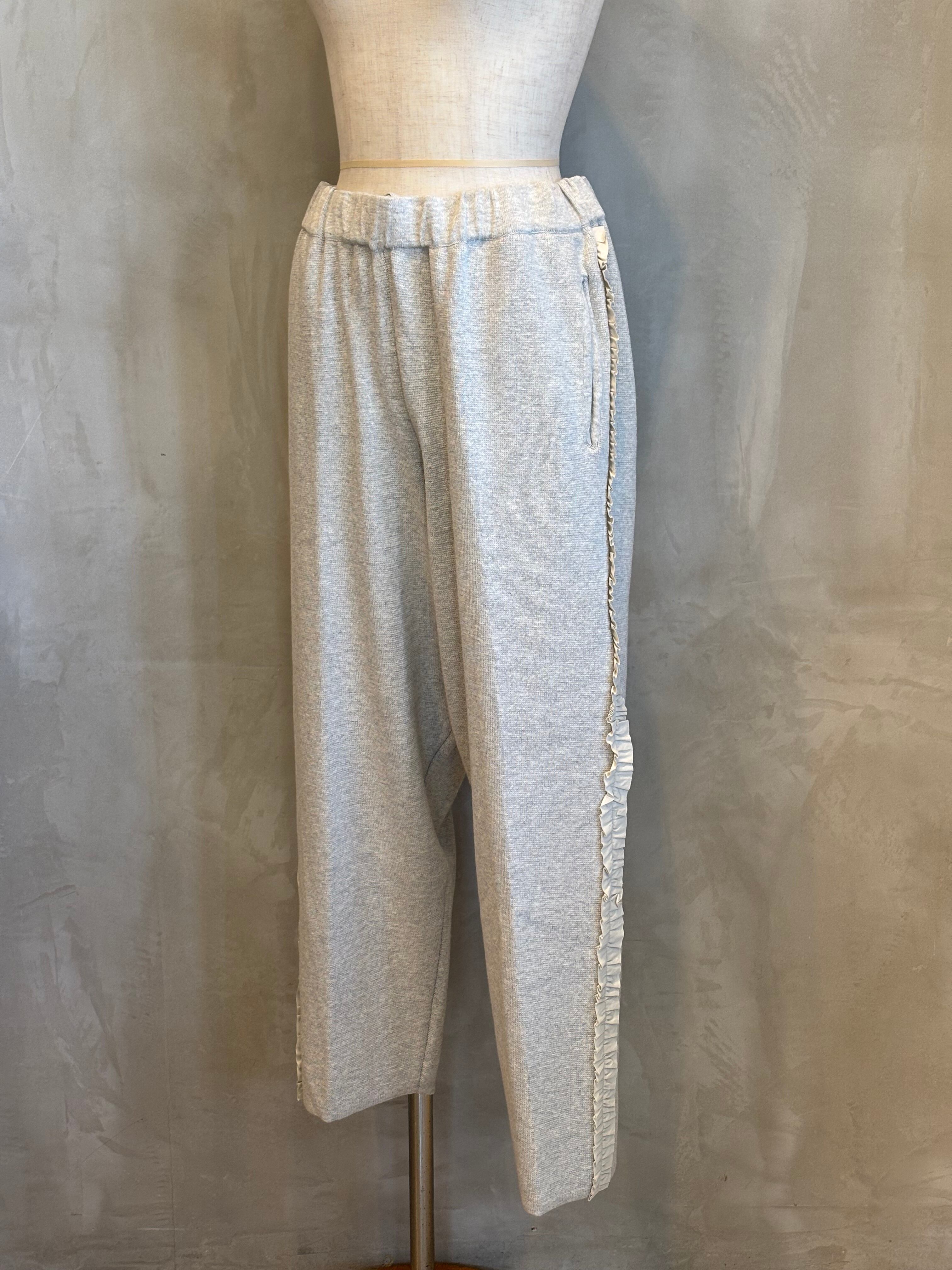 柔らかな風合いのコットンを使用したサイドふりふりフリルテーパードパンツ