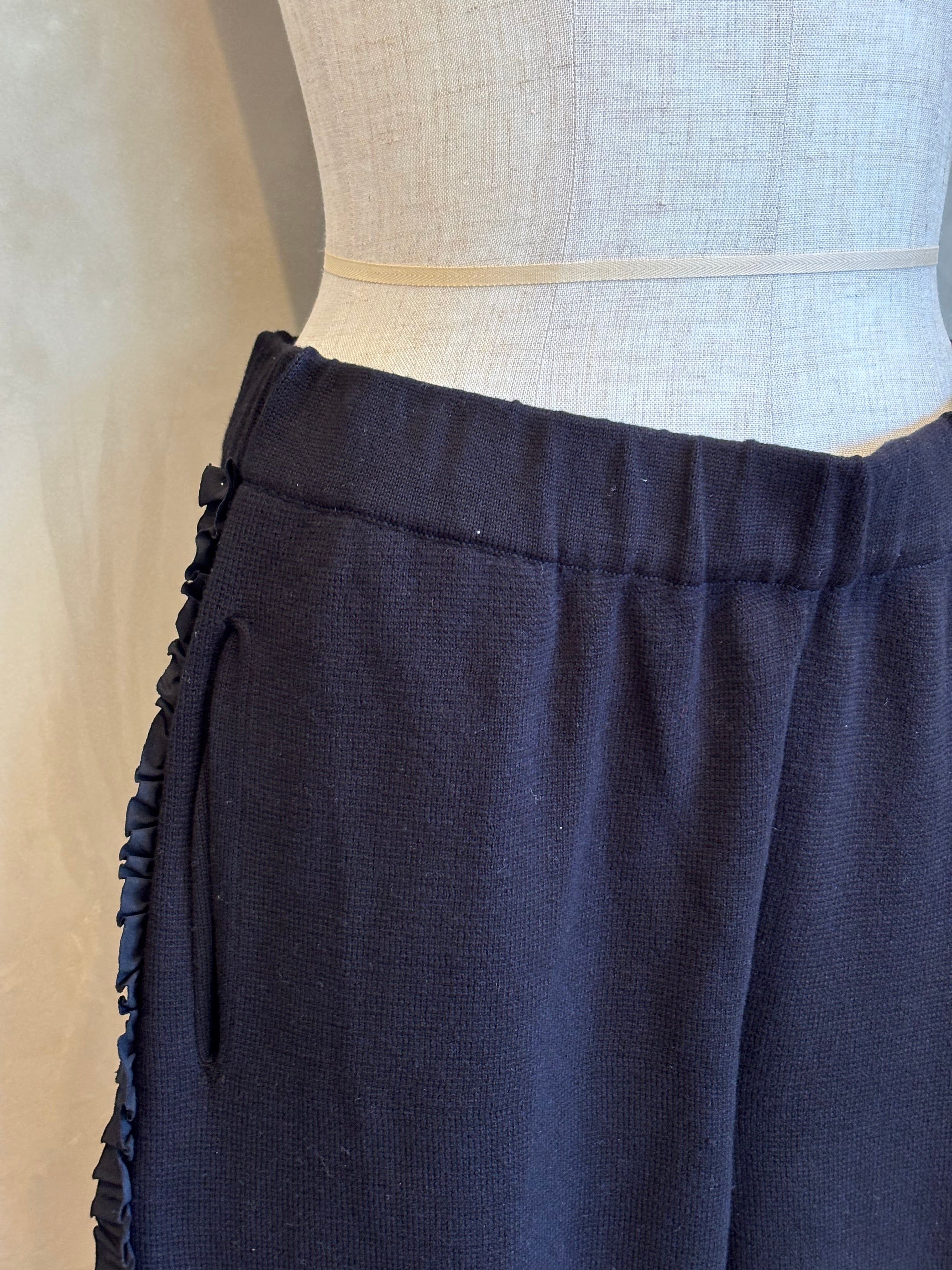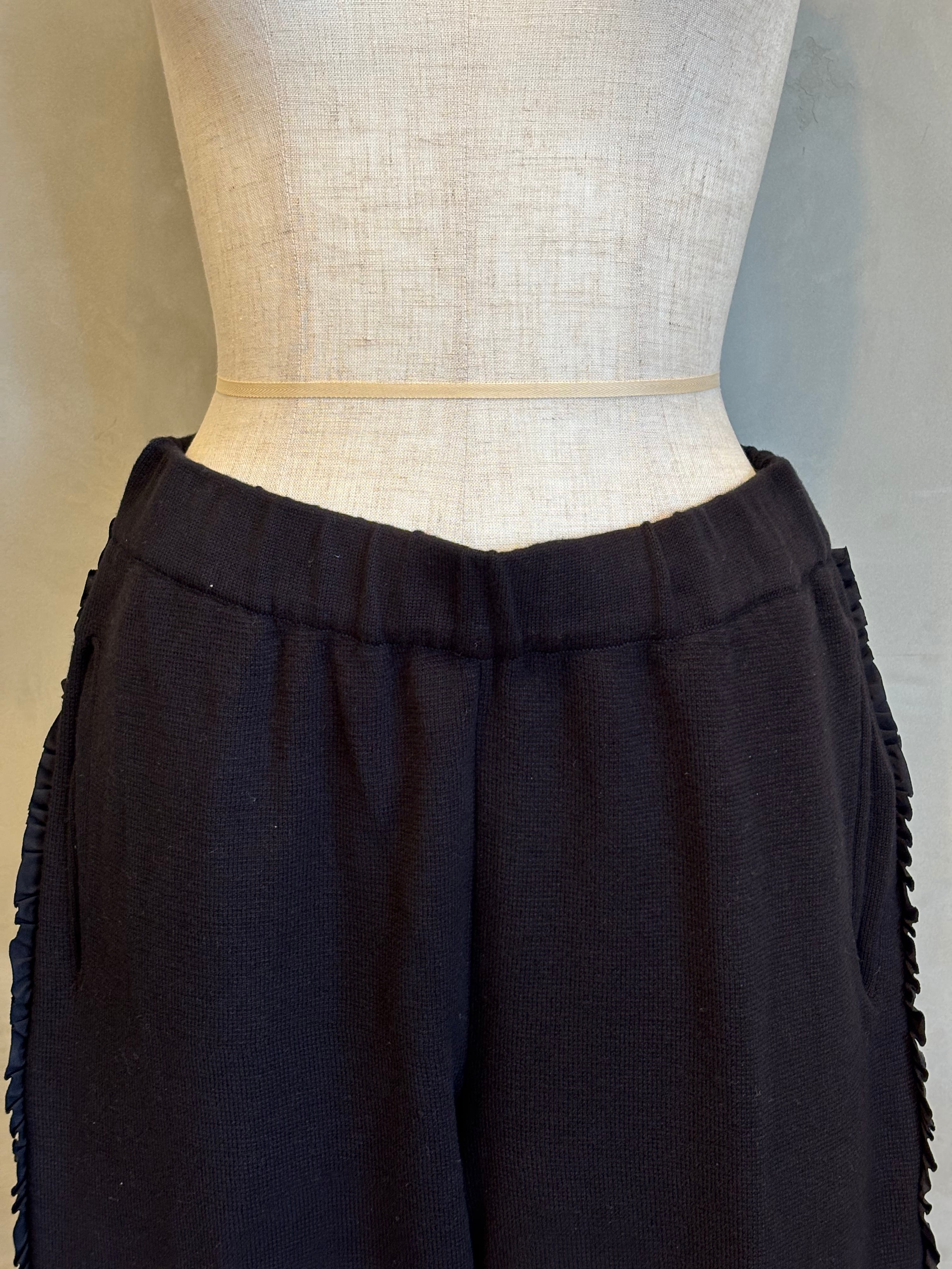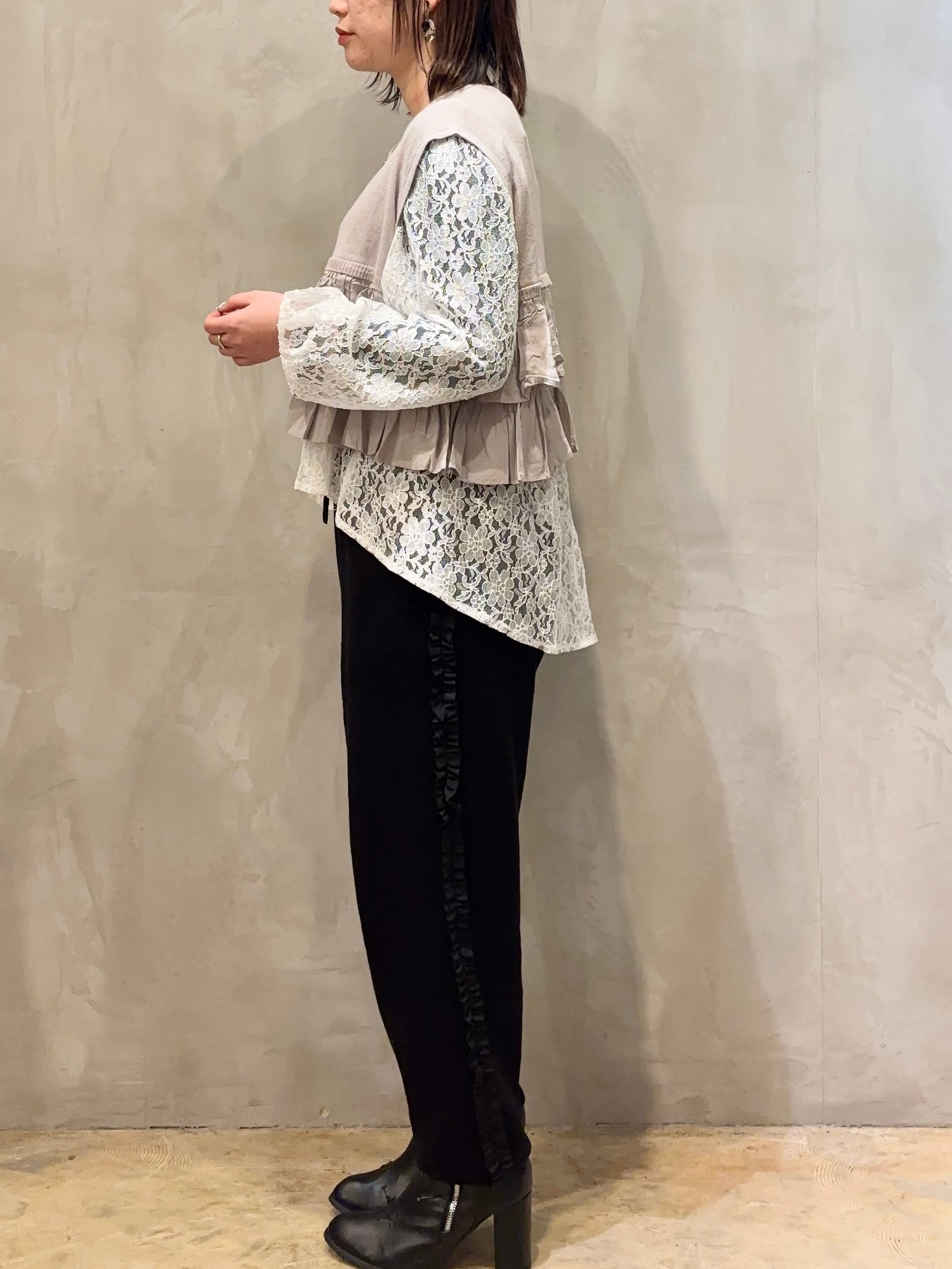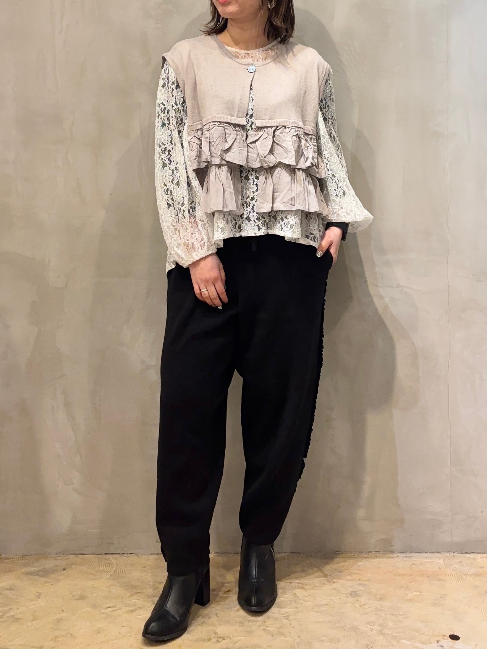 柔らかな風合いのコットンを使用したサイドふりふりフリルテーパードパンツ