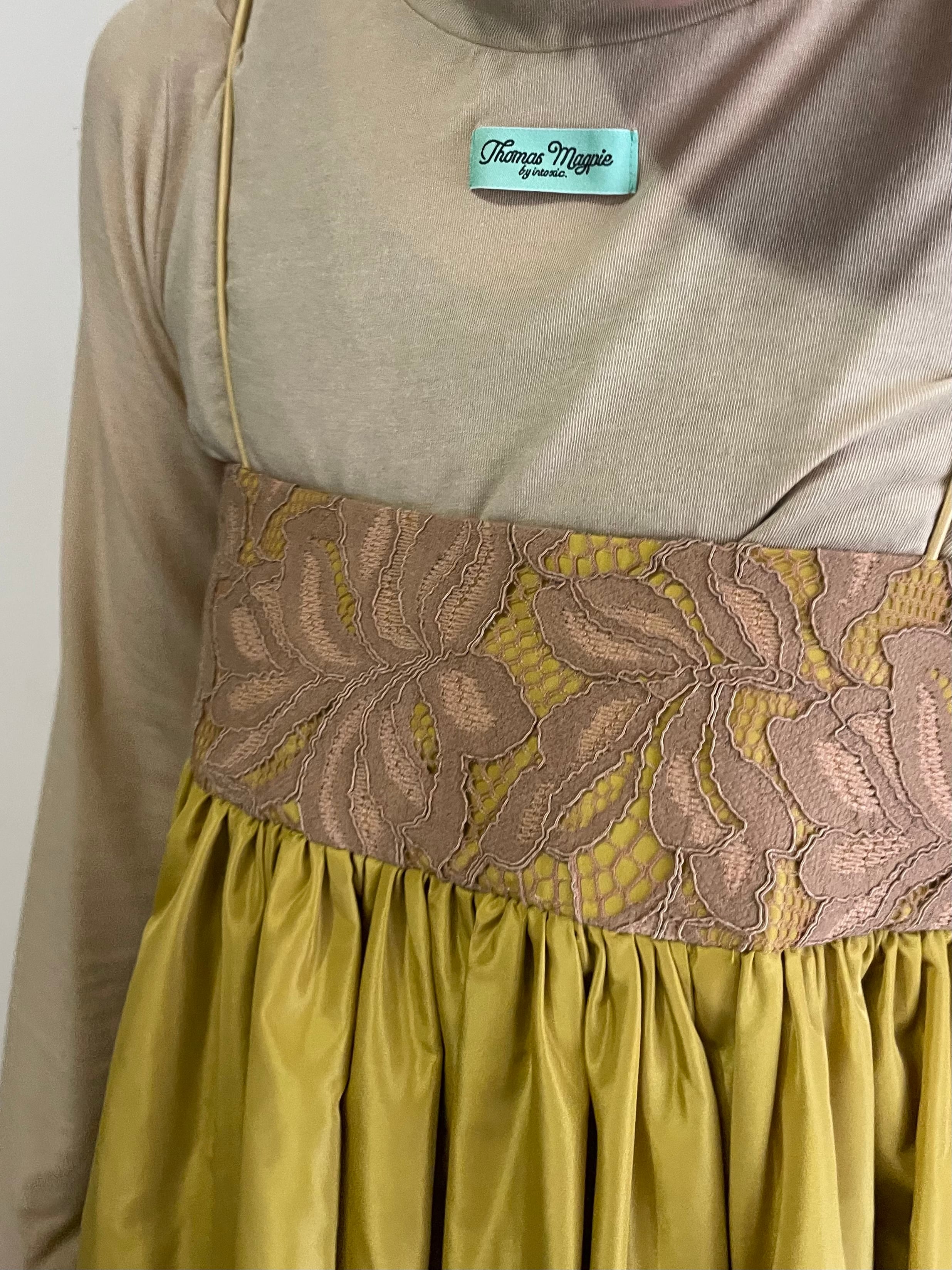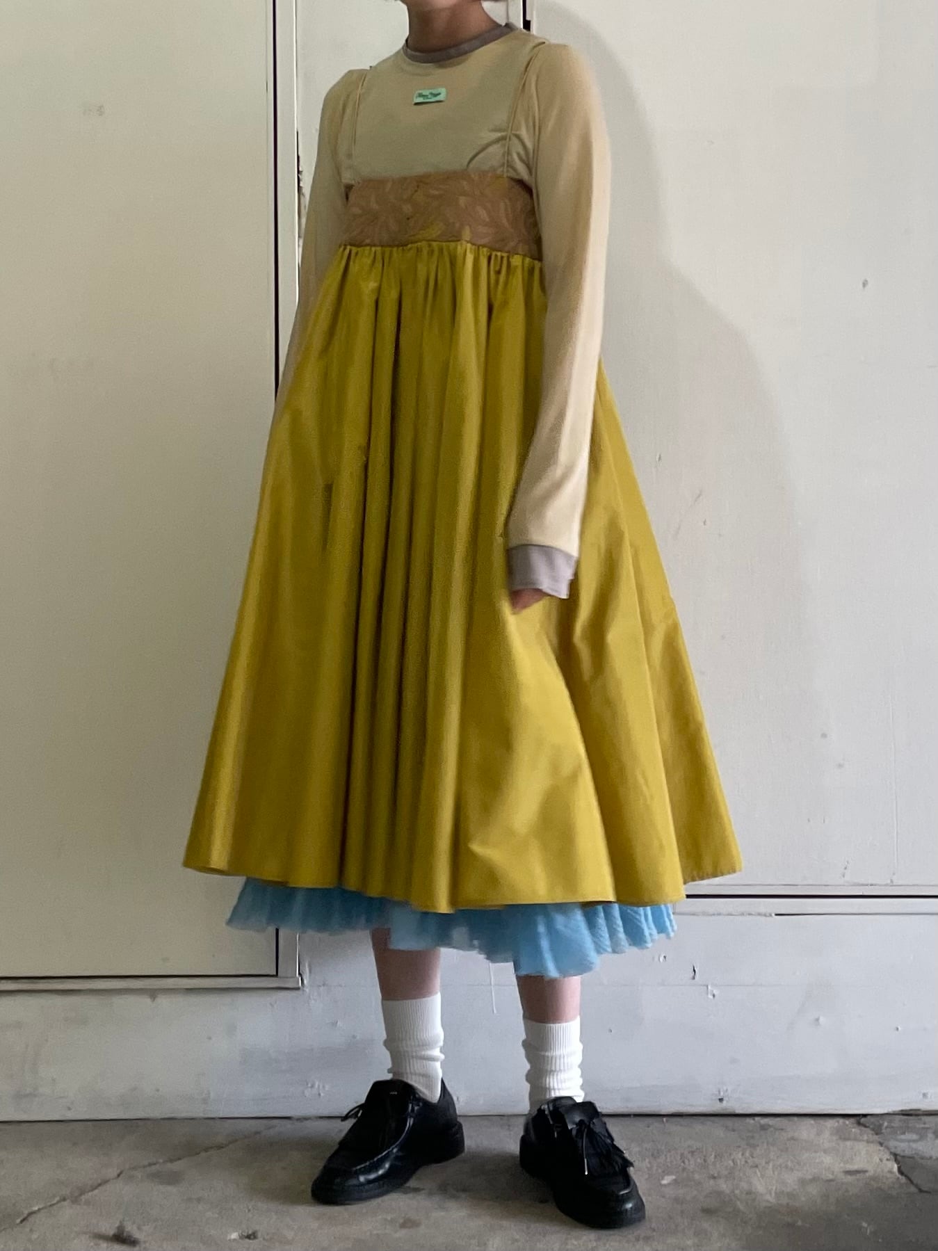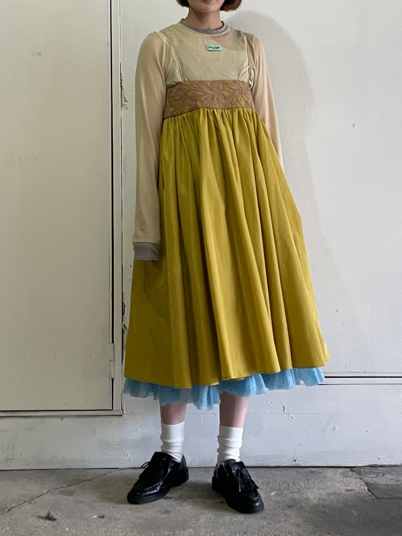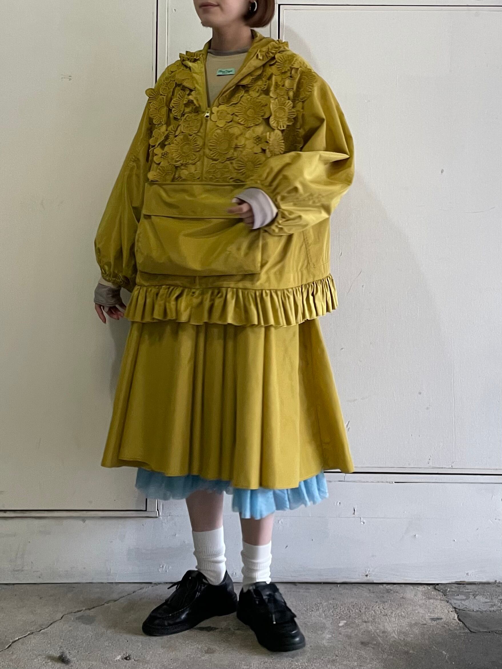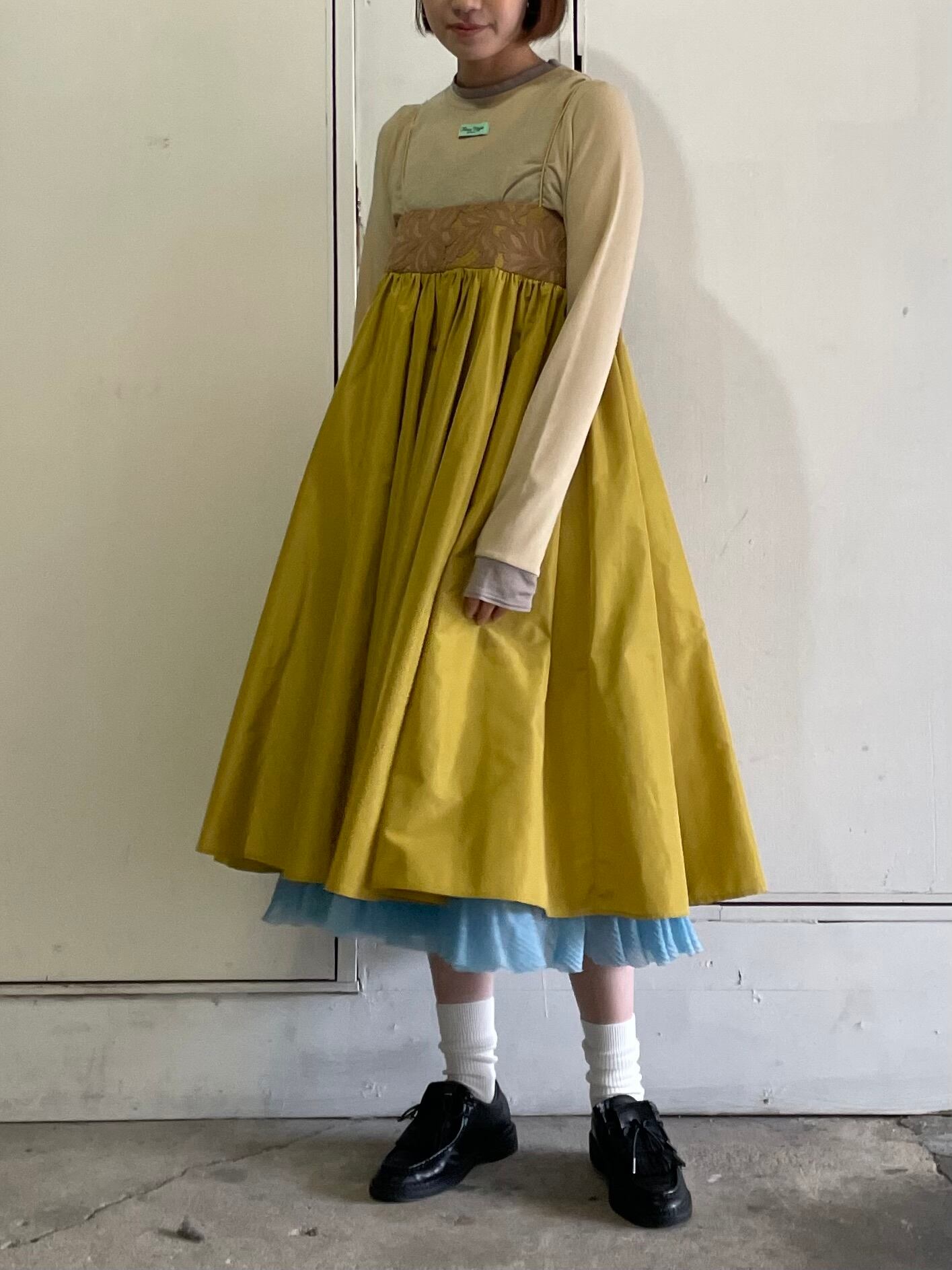 裾の内側にはフリル付きの裏地を使用しており、ペチコートがちらりと見える可愛らしいデザインに。