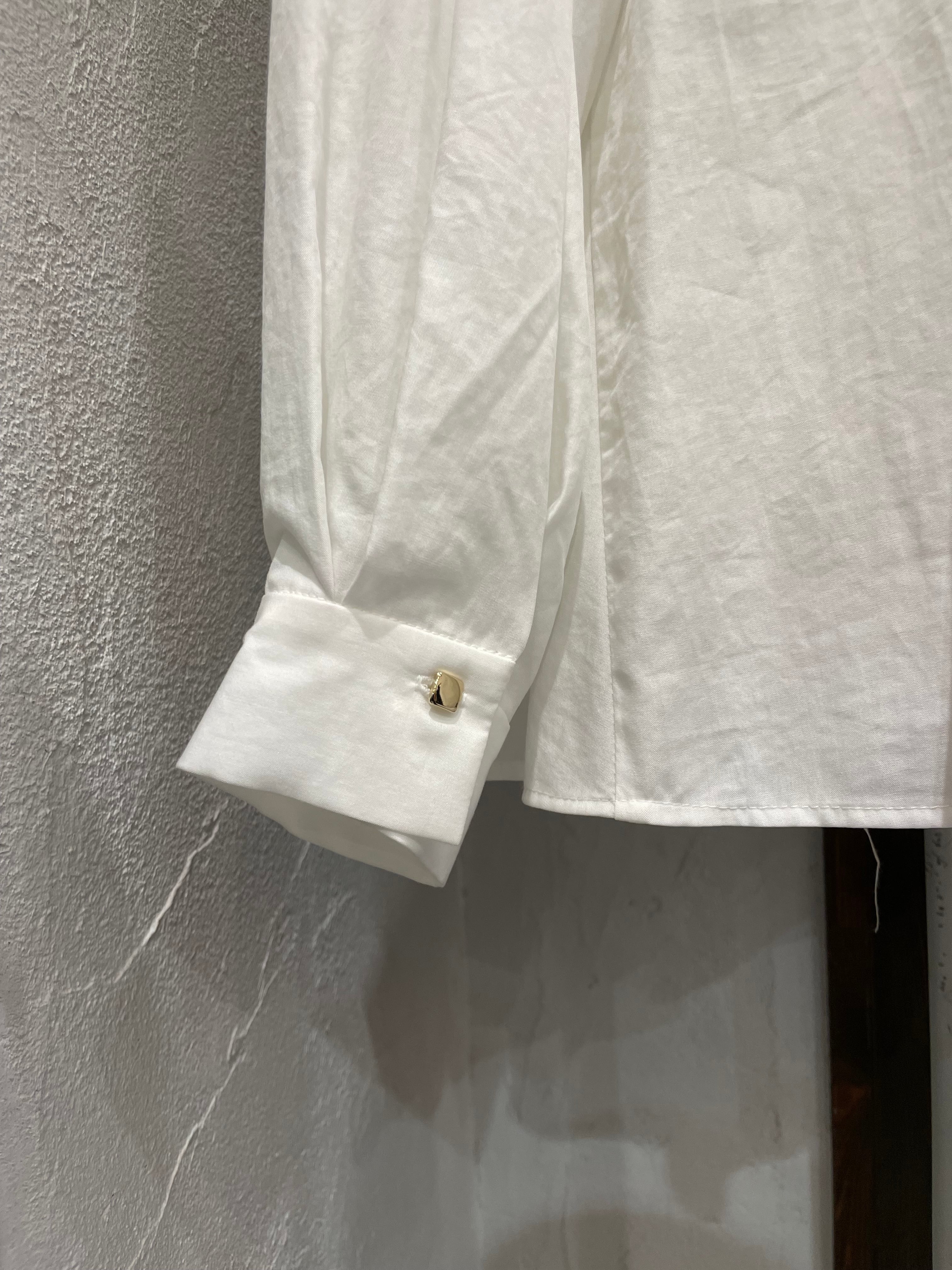 バックや袖口にはゴールドのスクエア調ボタンを配して、さりげなくリュクスな表情をプラス。