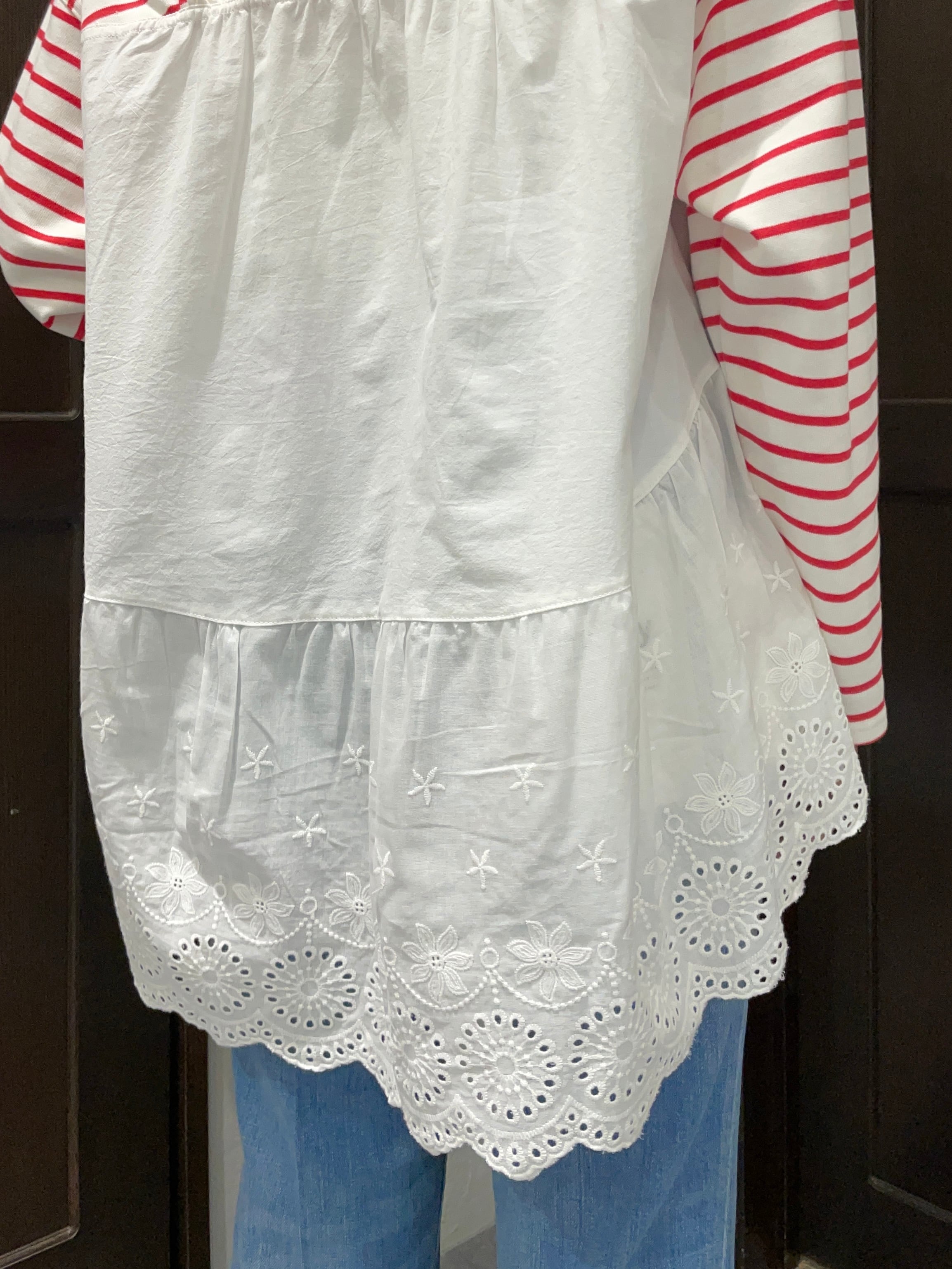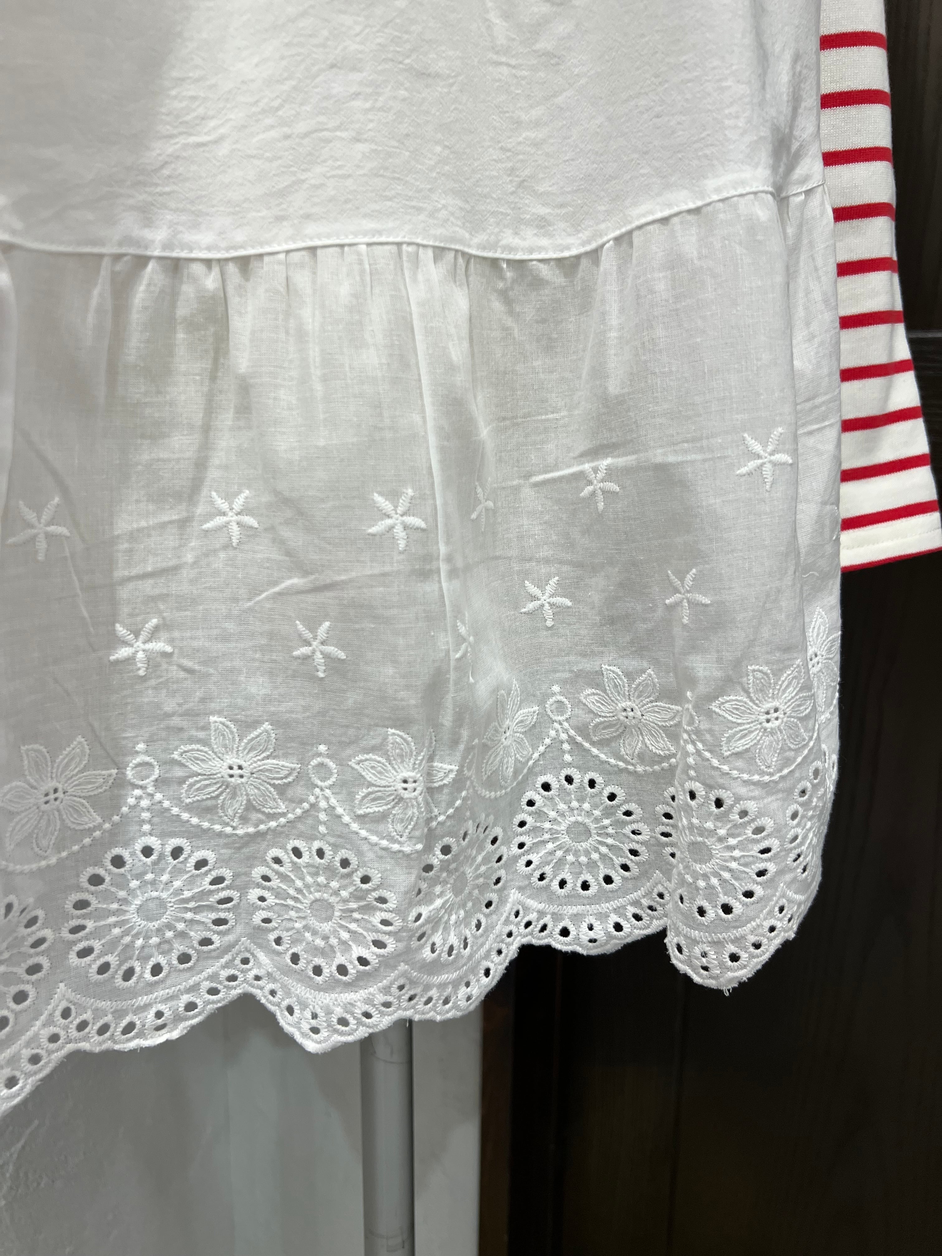 さらにギャザーを施すことで、ふんわり広がるティアード調のフレアシルエットに。腰まわりをさりげなくカバーしながら、上品なドレープ感を演出します。