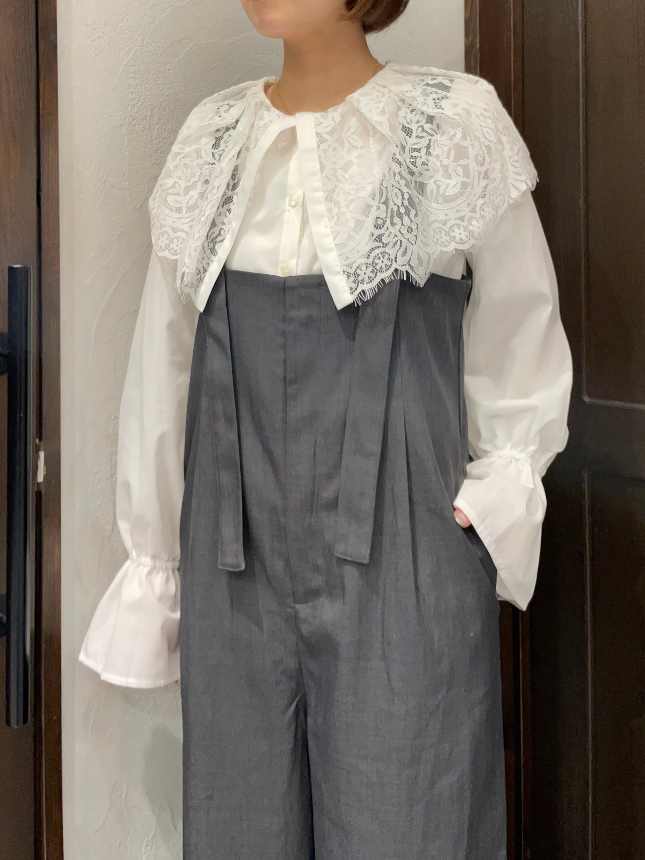 印象的なレース衿が魅力で、いつものスタイルに華やかさをプラスします。