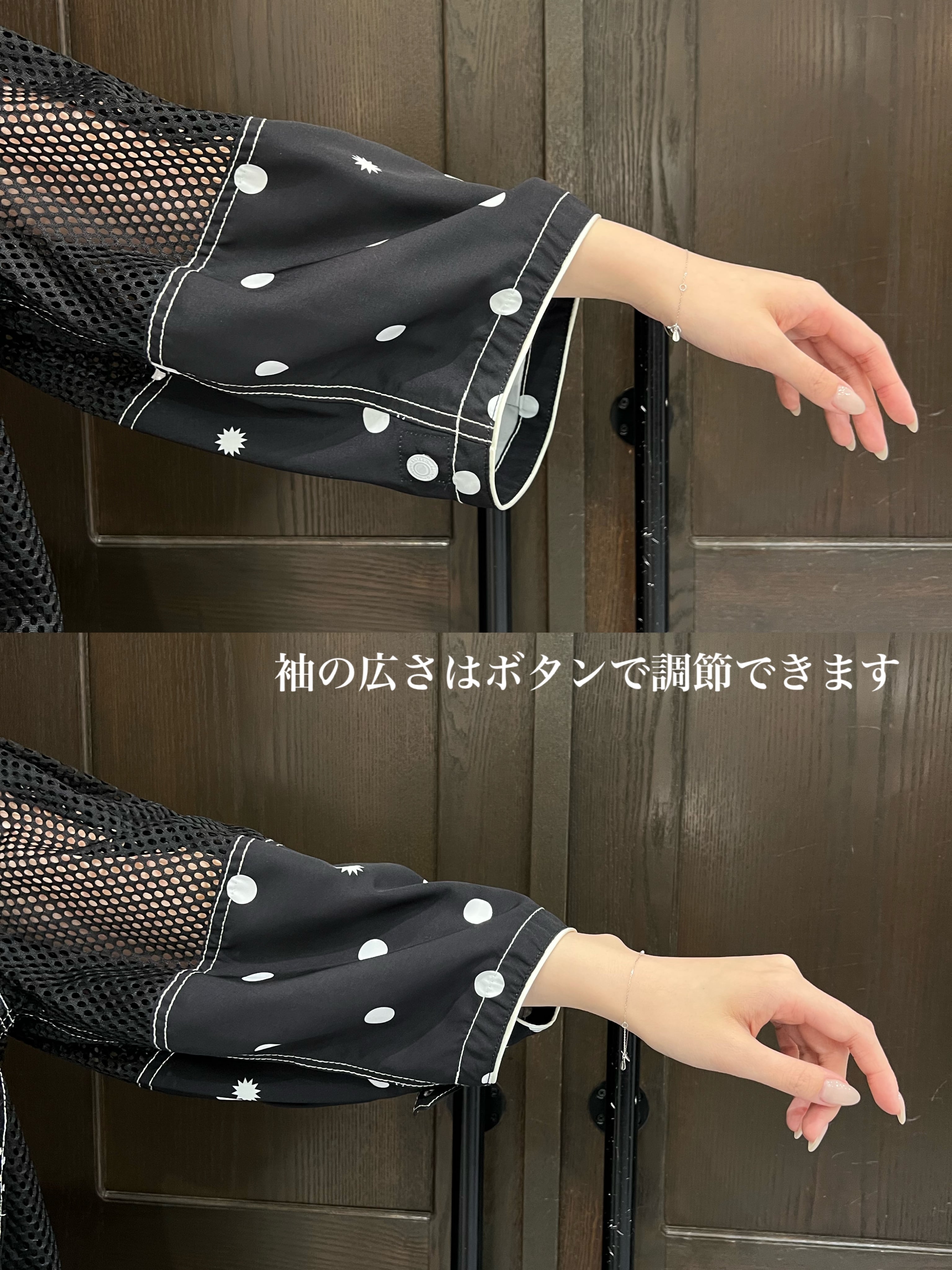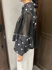 スタッフも驚く超軽量のブルゾンは、全体に散りばめられたドットが楽しいアクセントとなり、日常のコーディネートに華やかさをプラスします。