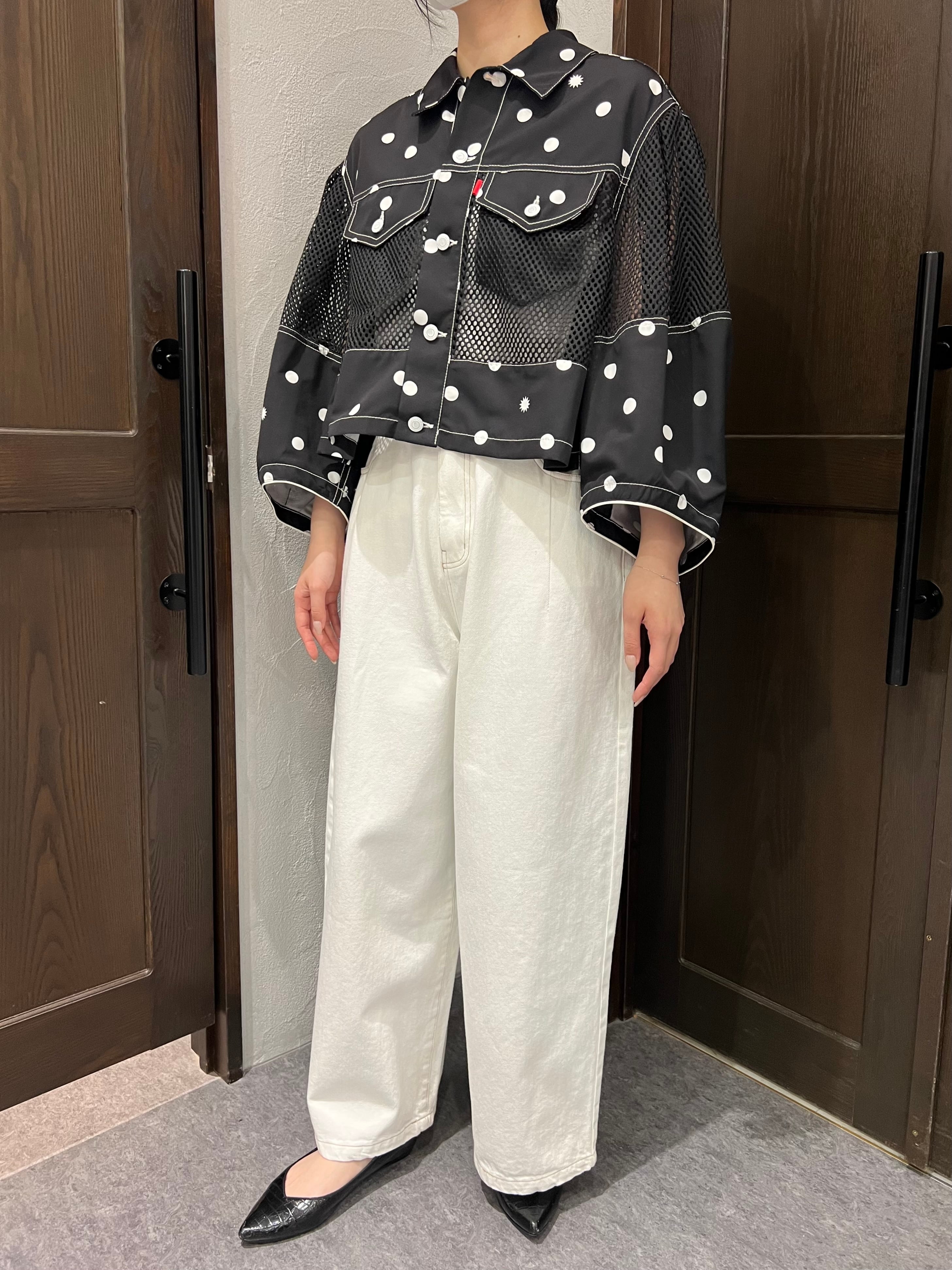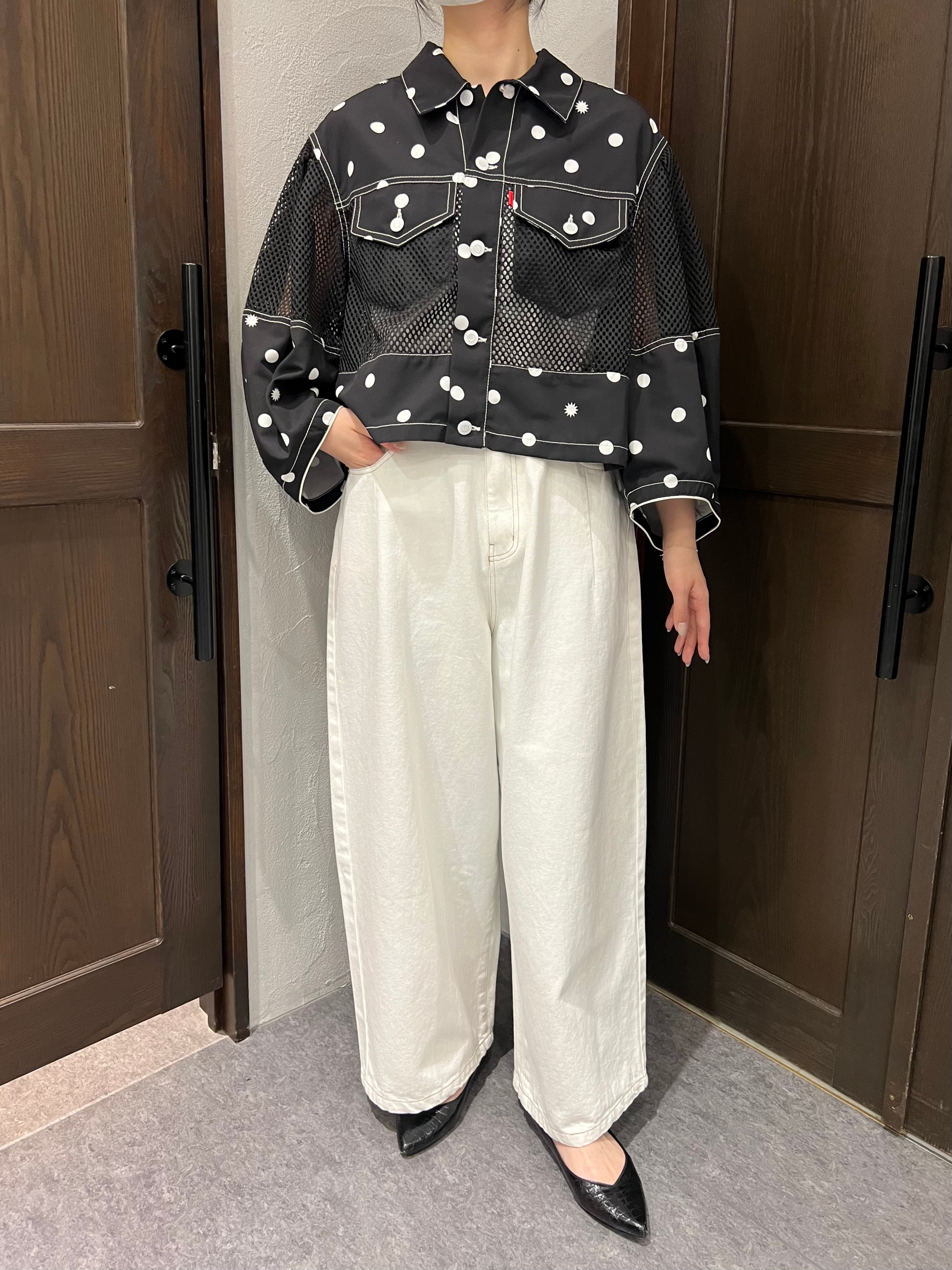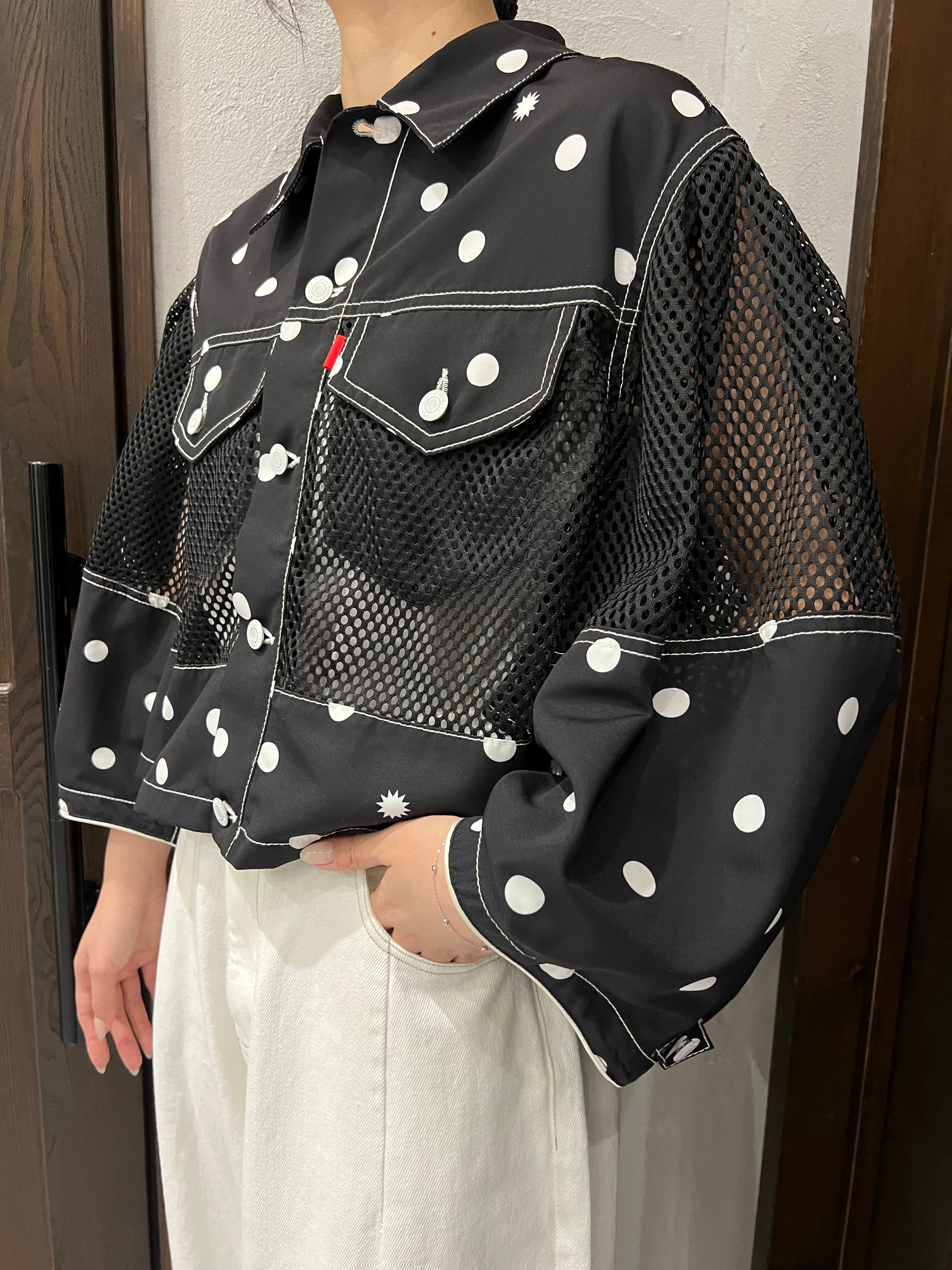 軽やかさとデザイン性を兼ね備えた1%/ドット×メッシュ ジャケット。