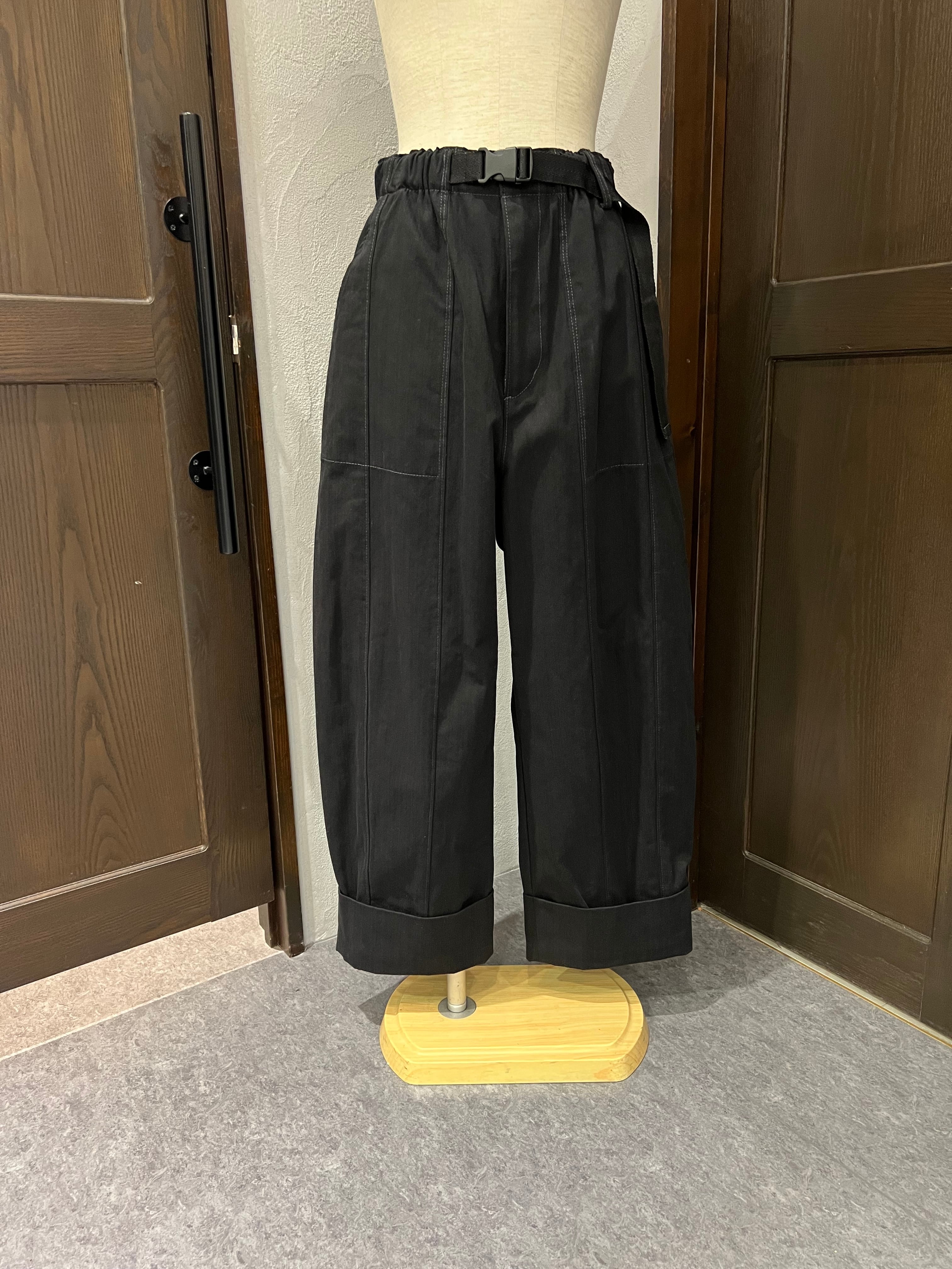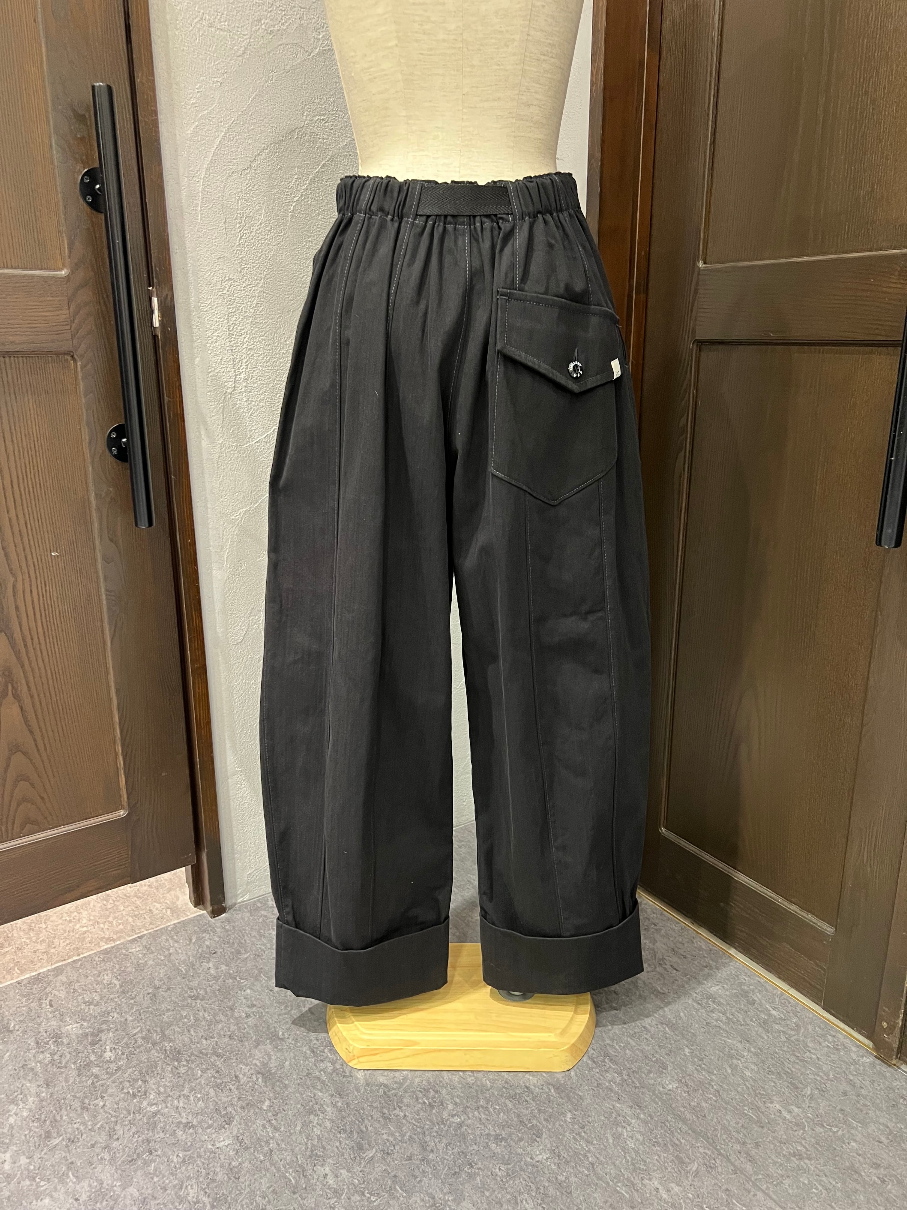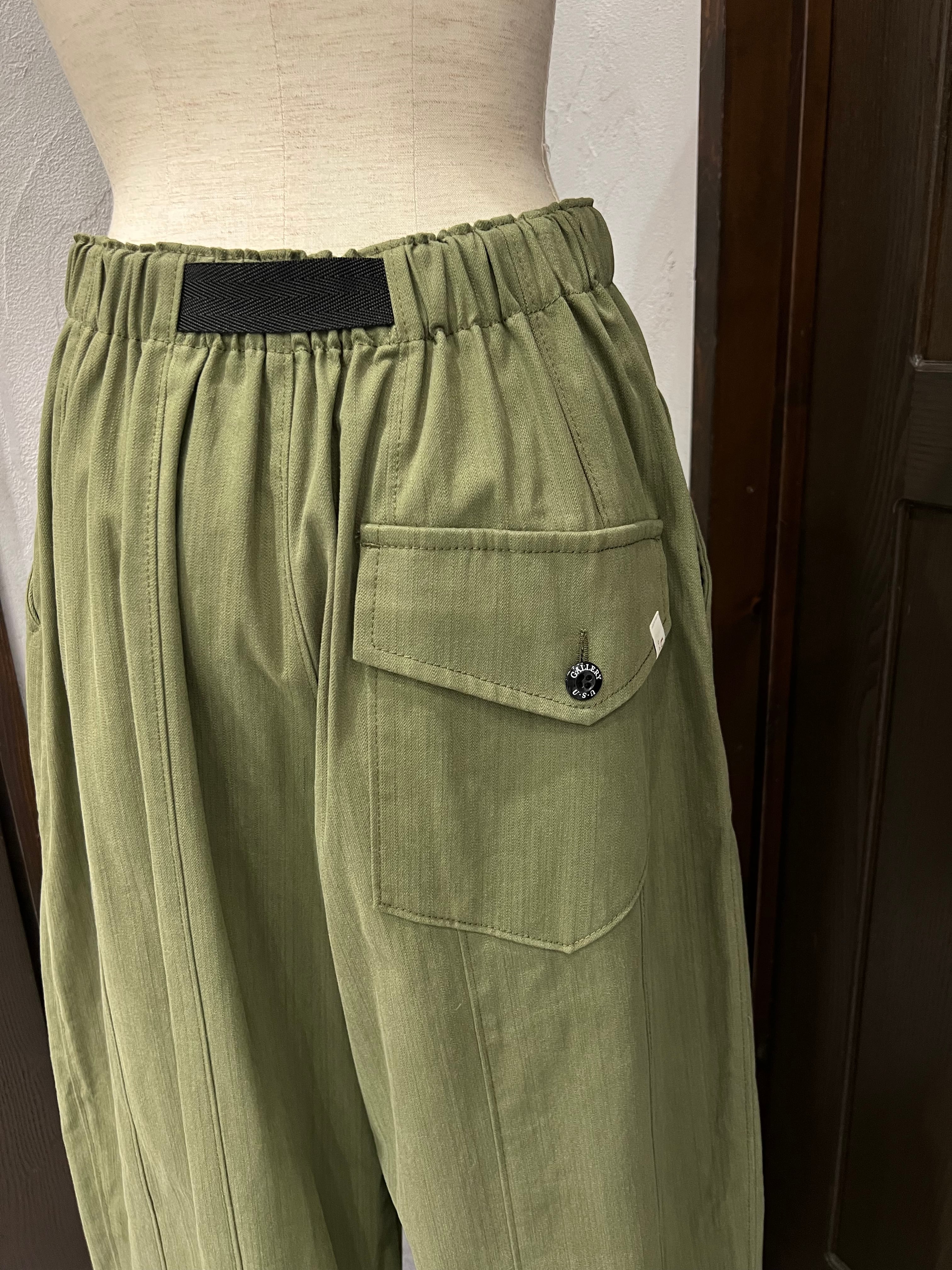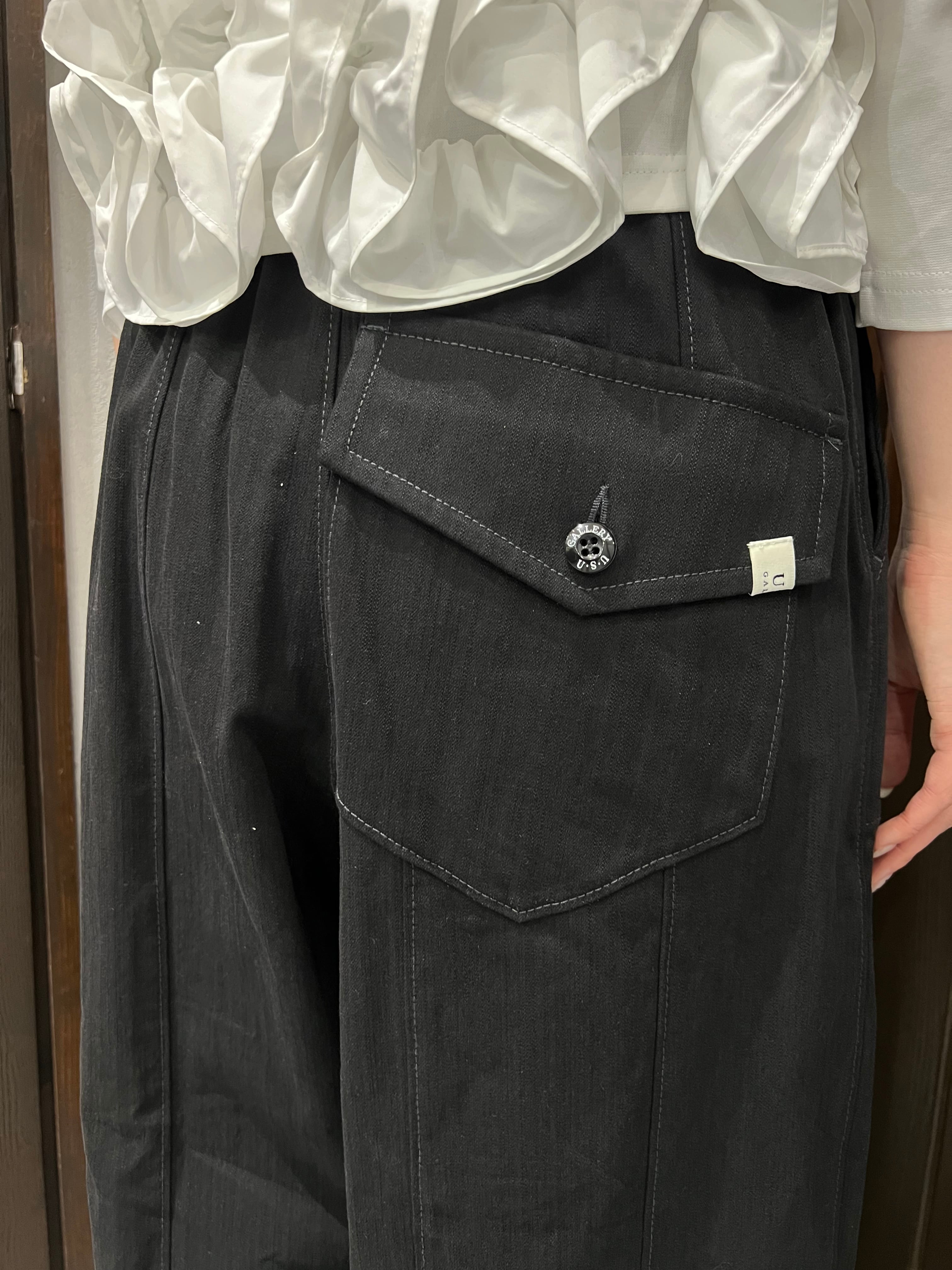 スタイルと快適さを両立させたUSU GALLERYのカーゴタイプコクーンパンツ。