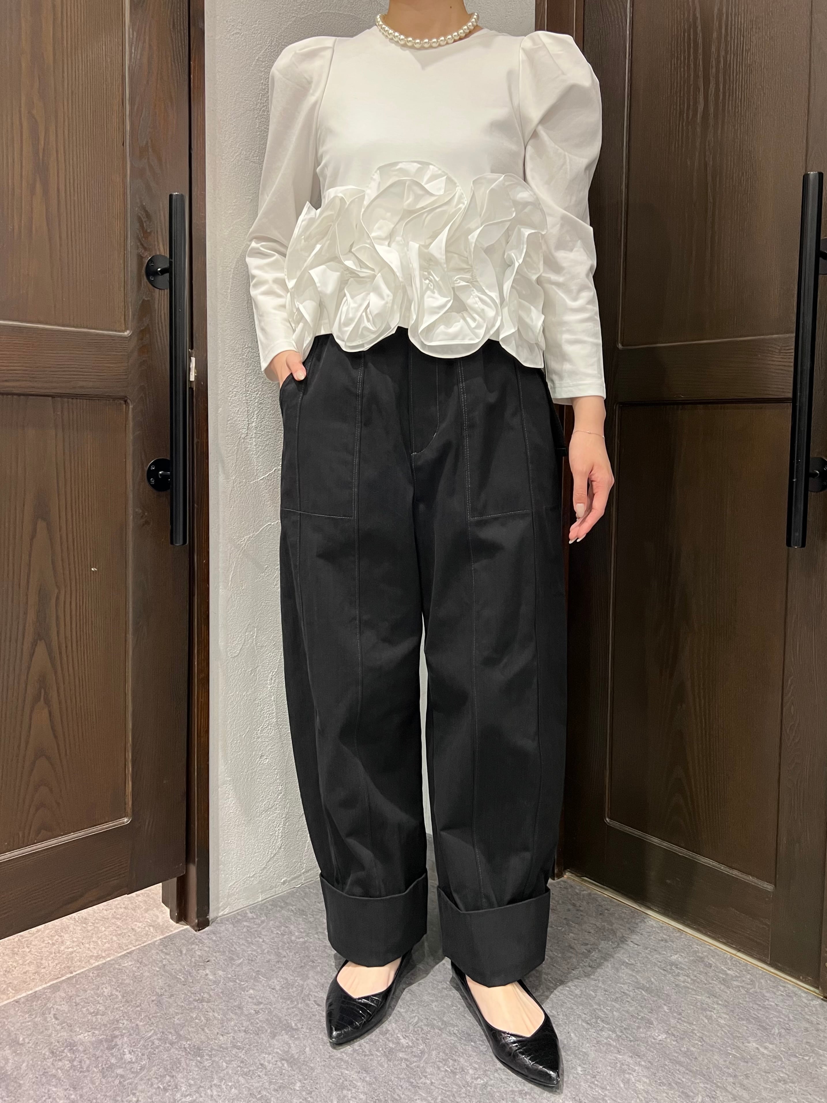 ラフさを演出する裾の折り返しデザインが、カジュアルながらも洗練されたモード感をプラス。