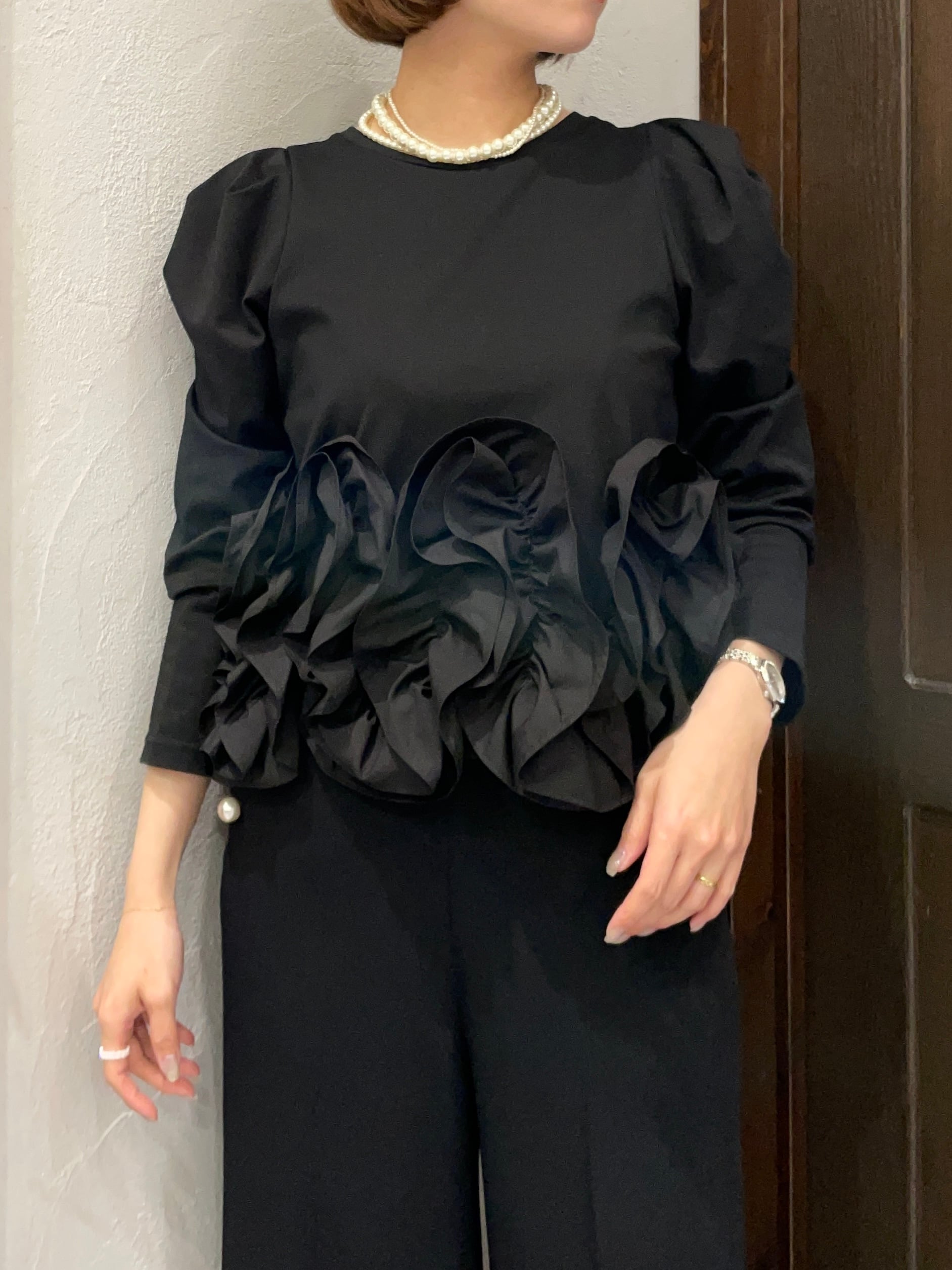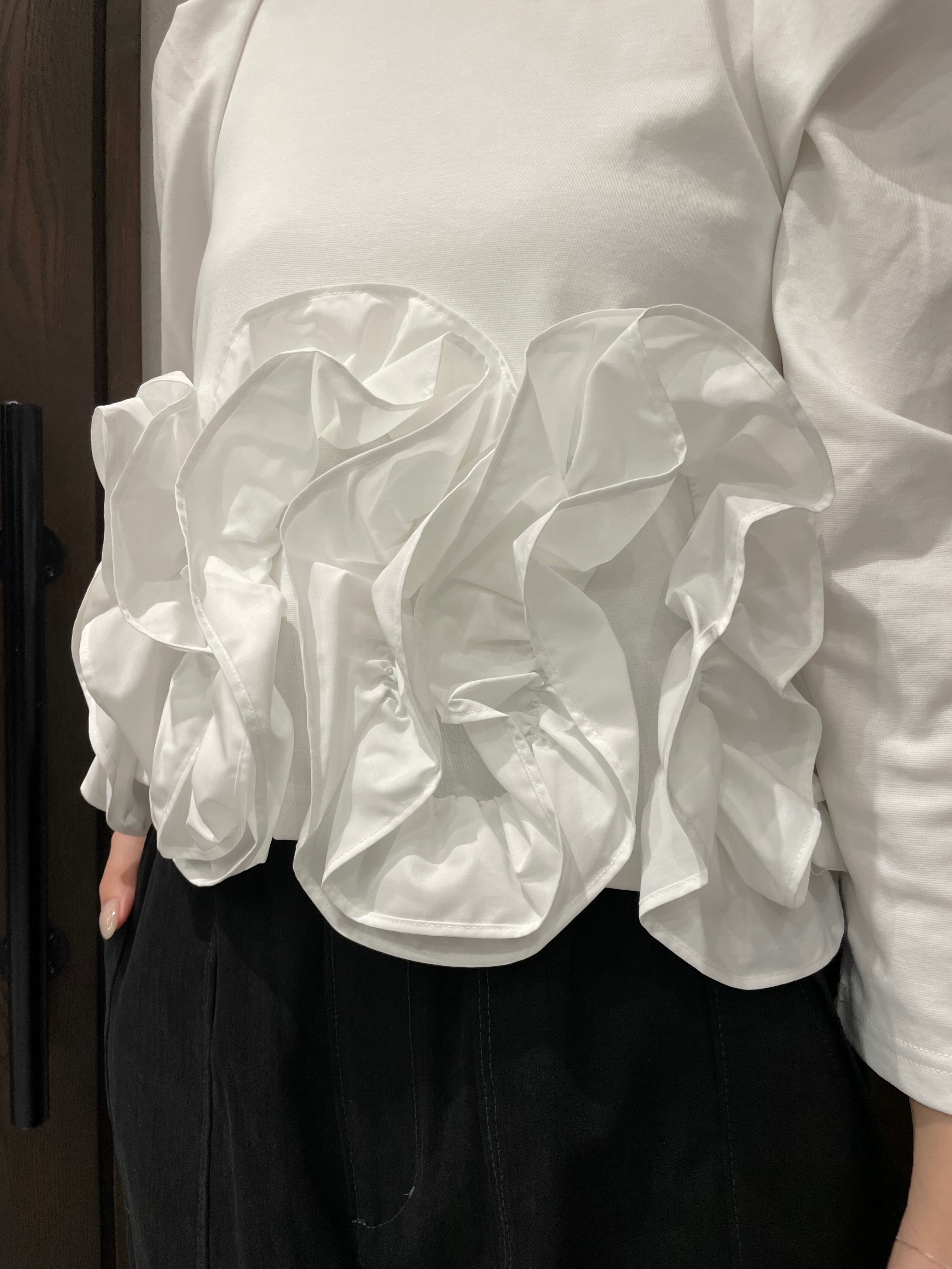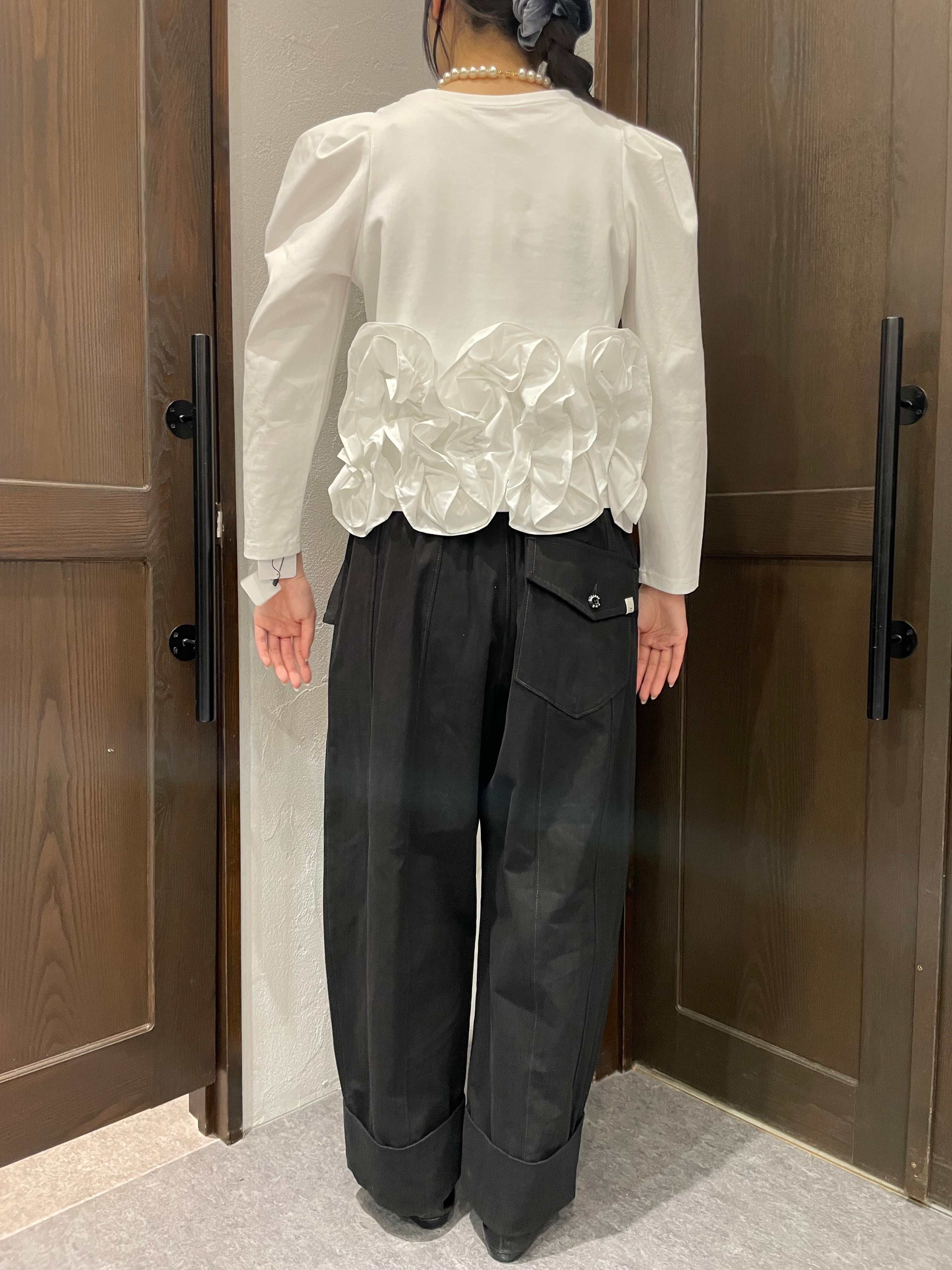 最大のポイントは、裾にたっぷり施された大きめフリル。