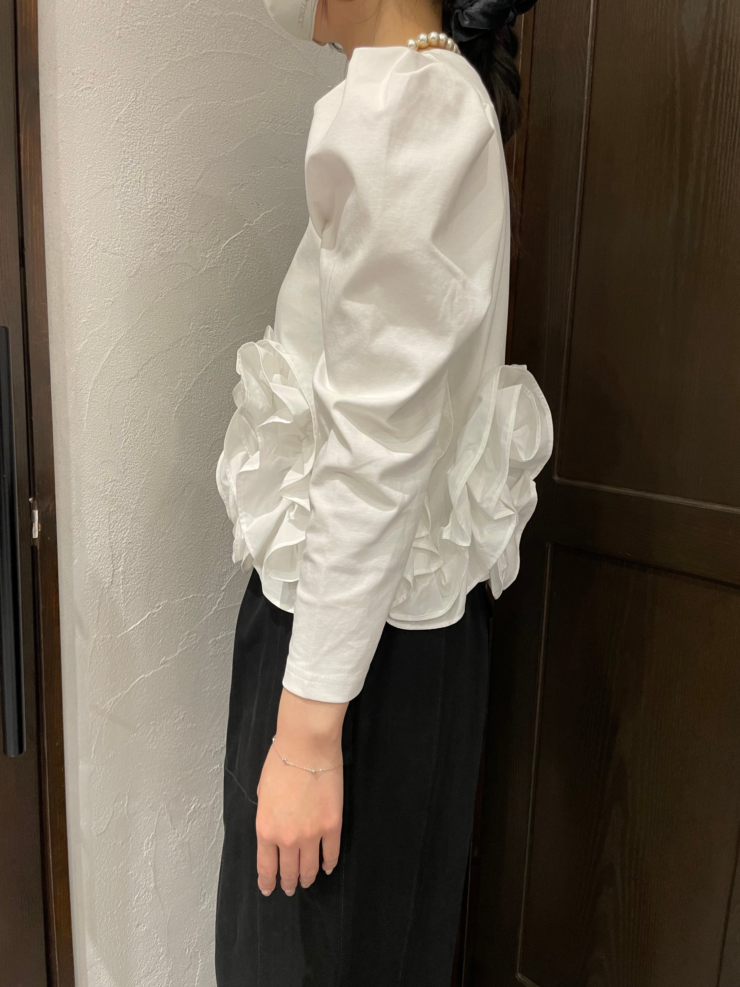 肩にタックを入れ、立体的なシルエットに仕上げた袖は、腕のラインを綺麗に見せながら自然なふんわり感を演出。