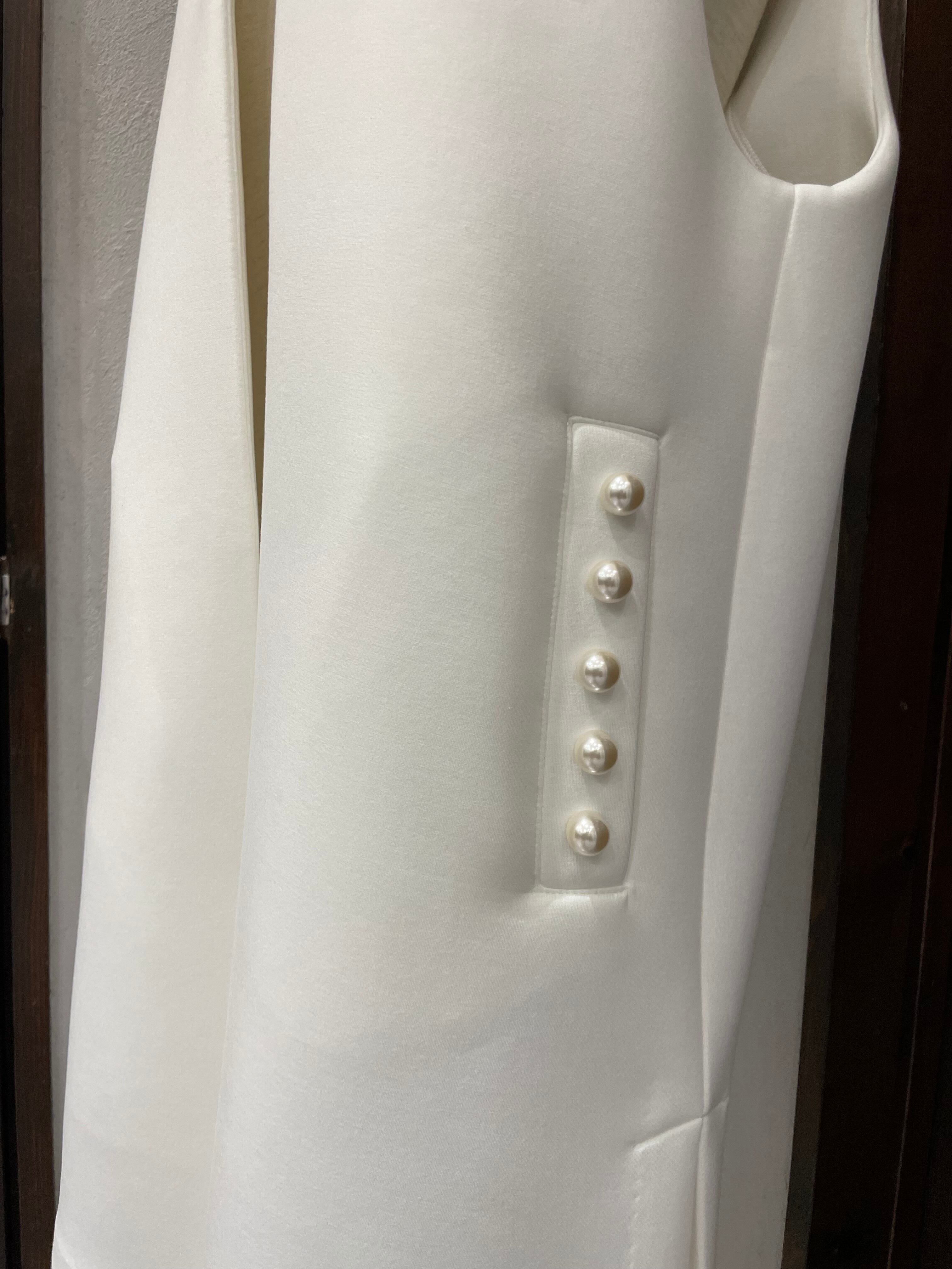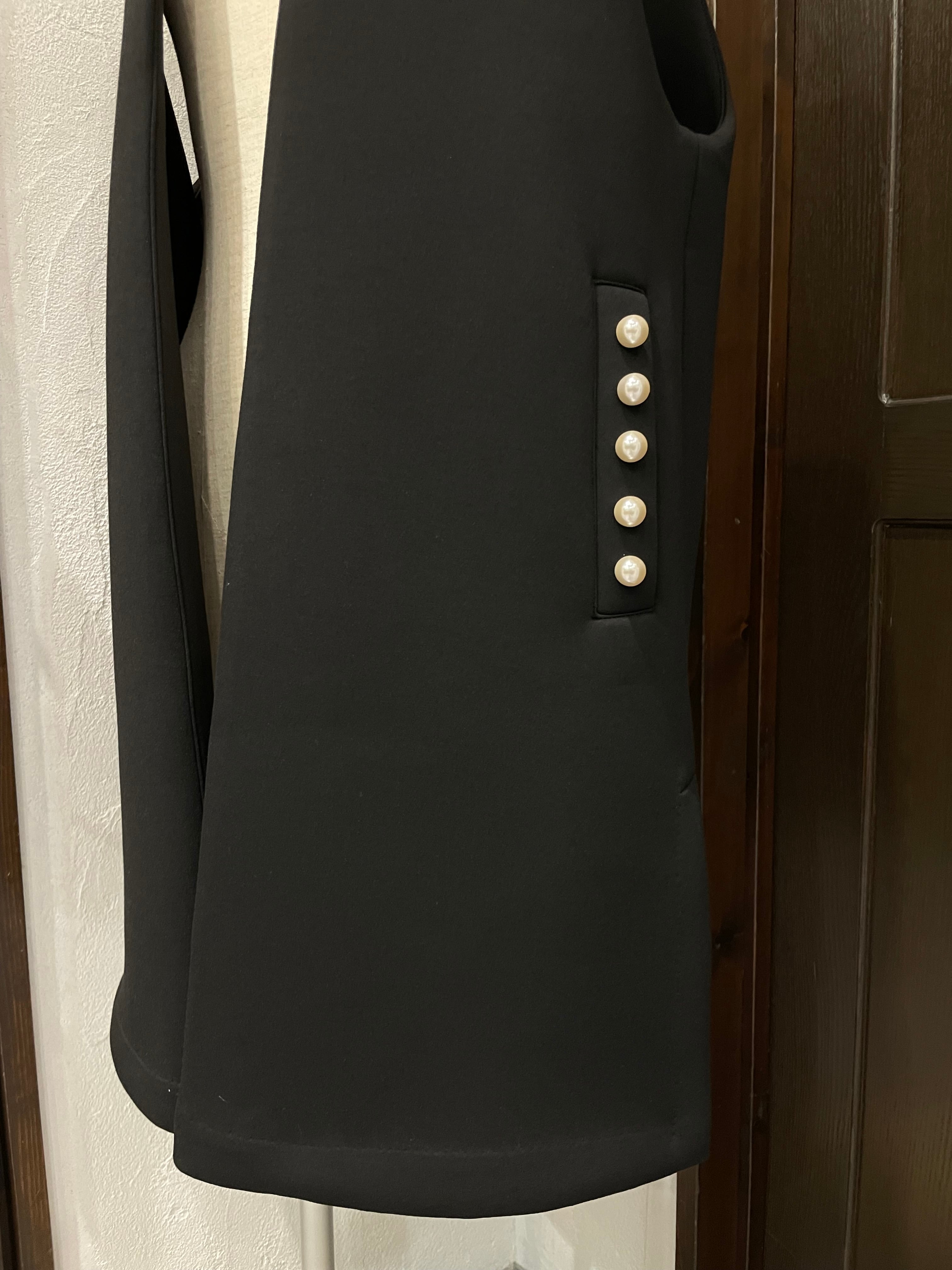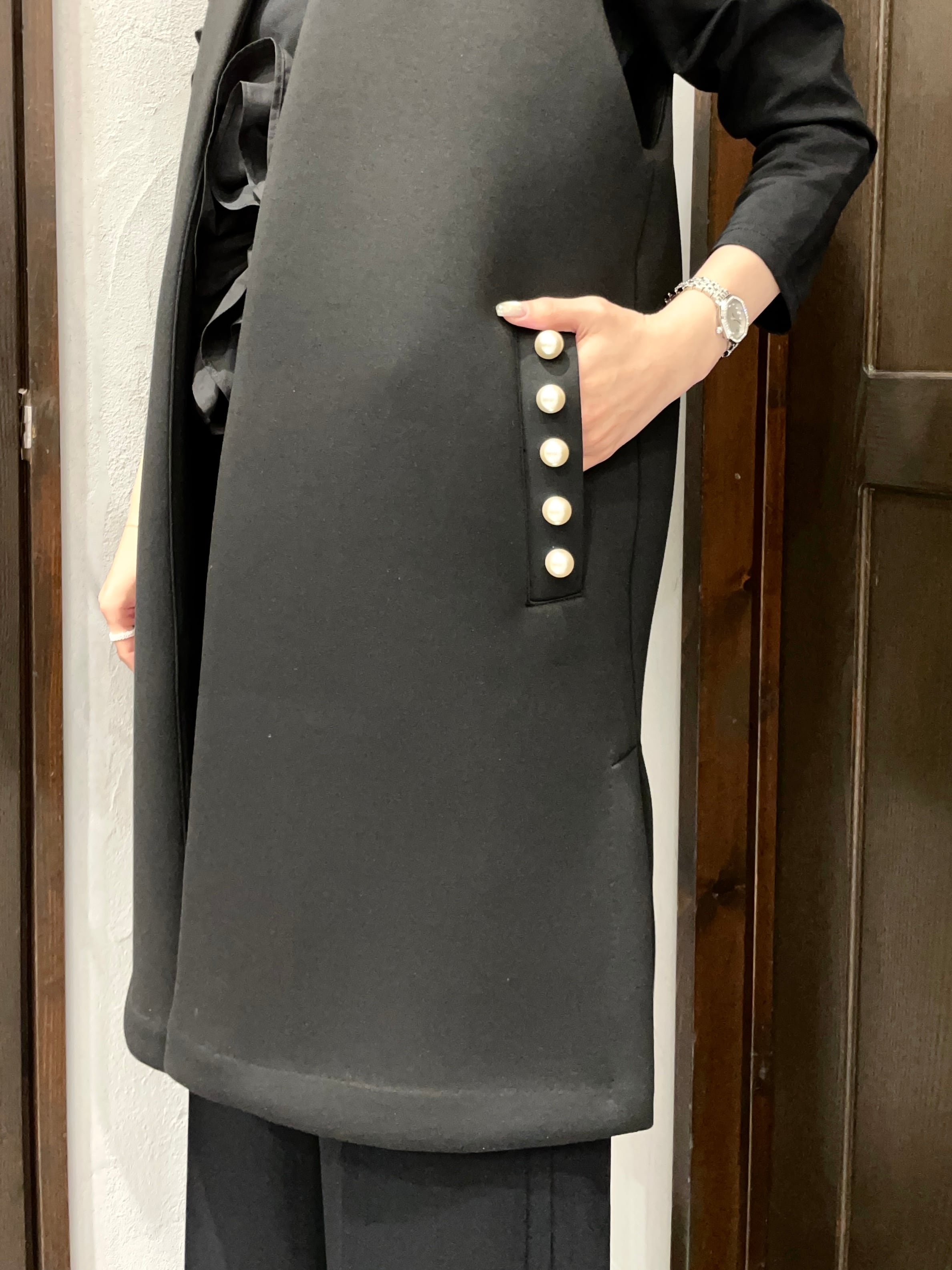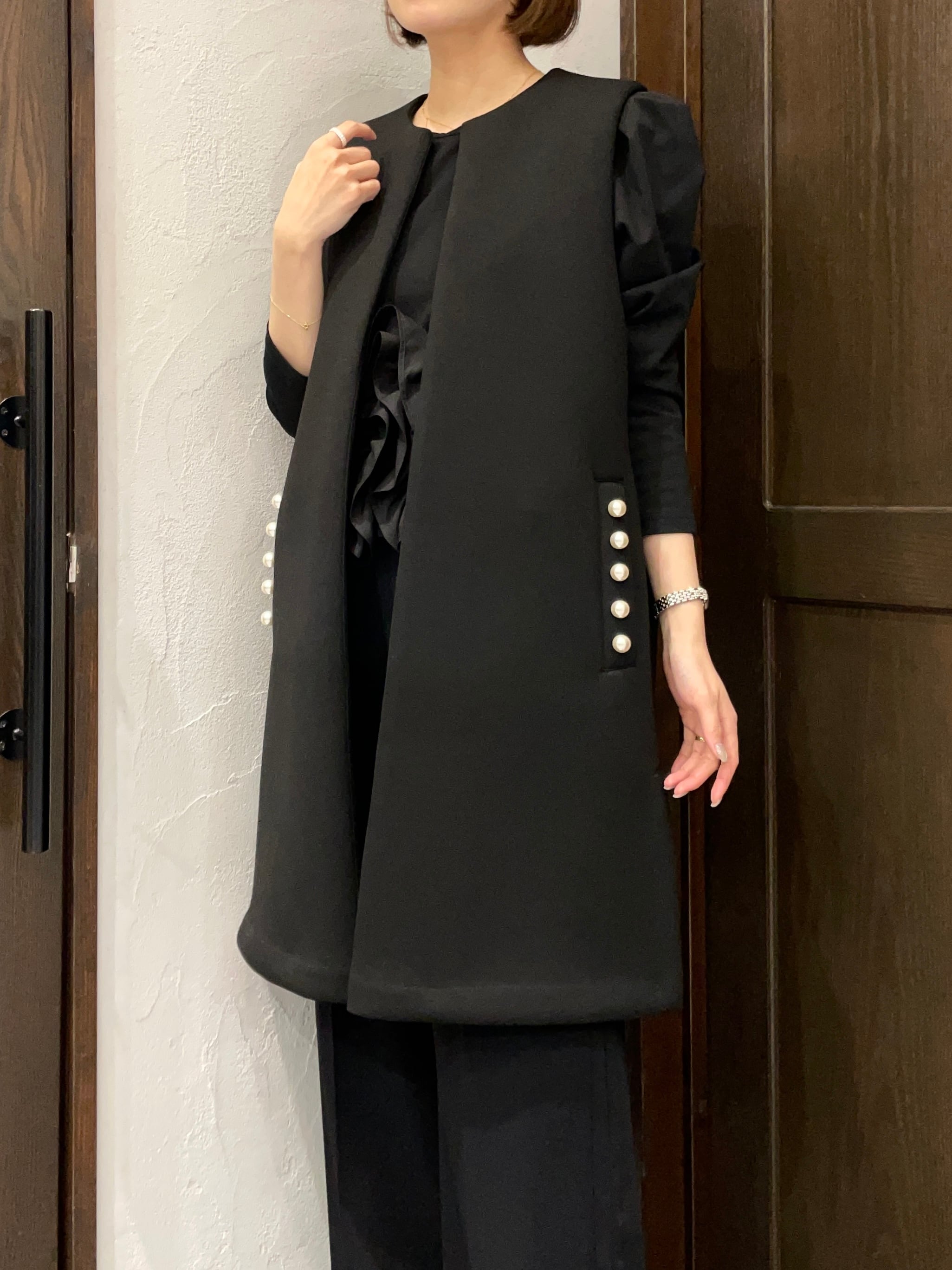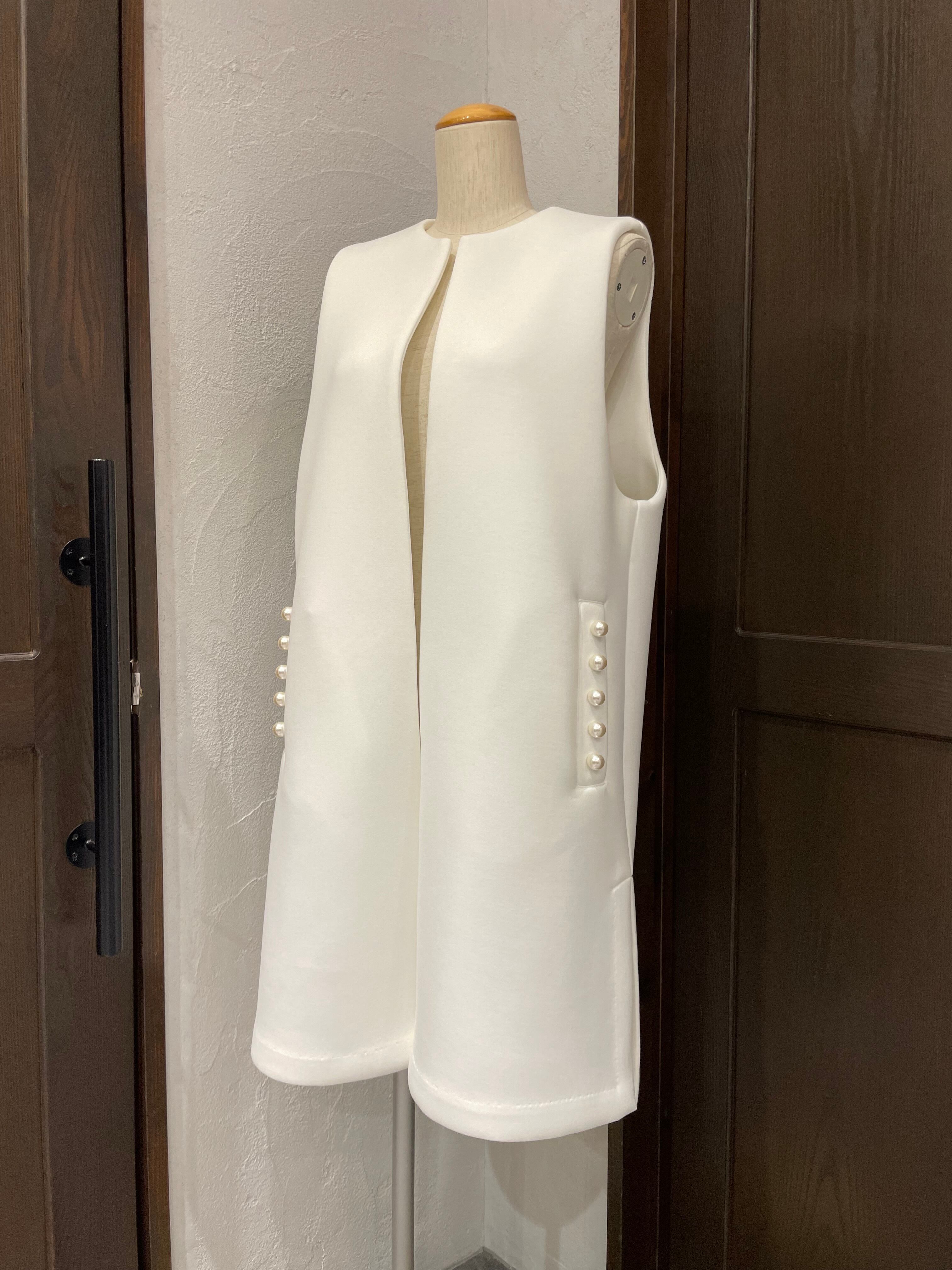 ポケットにあしらったパールが女性らしさを演出し、華やかで上品な一着。