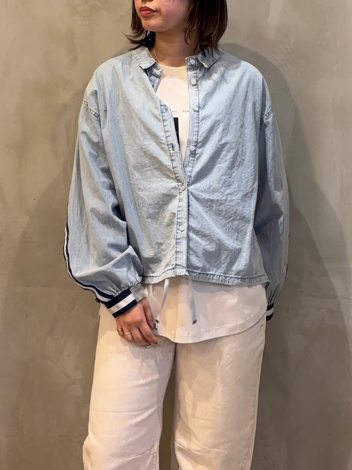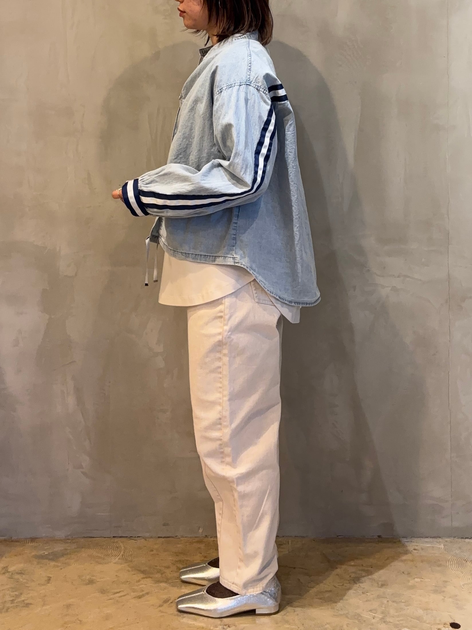 軽めのデニム素材なので、季節の変わり目の羽織としても活躍します。