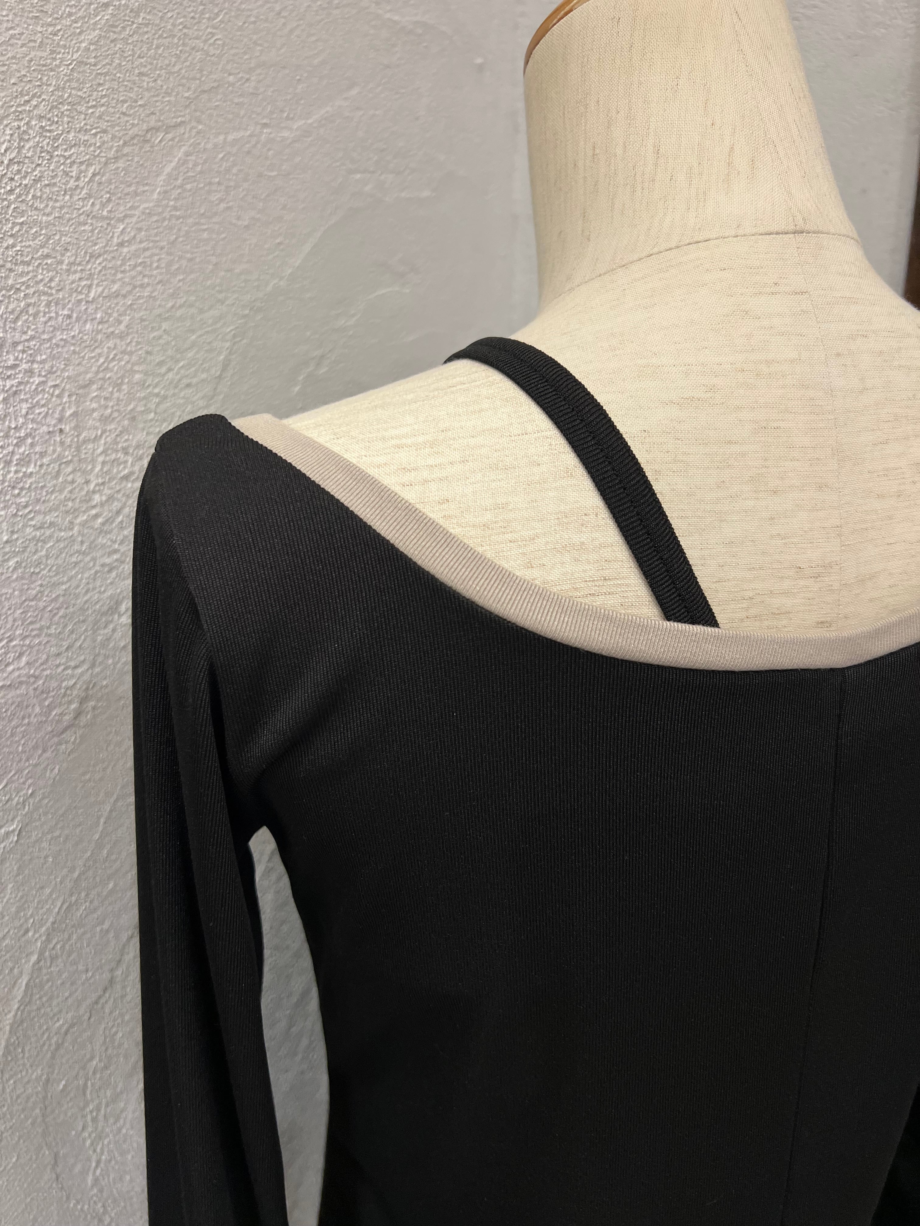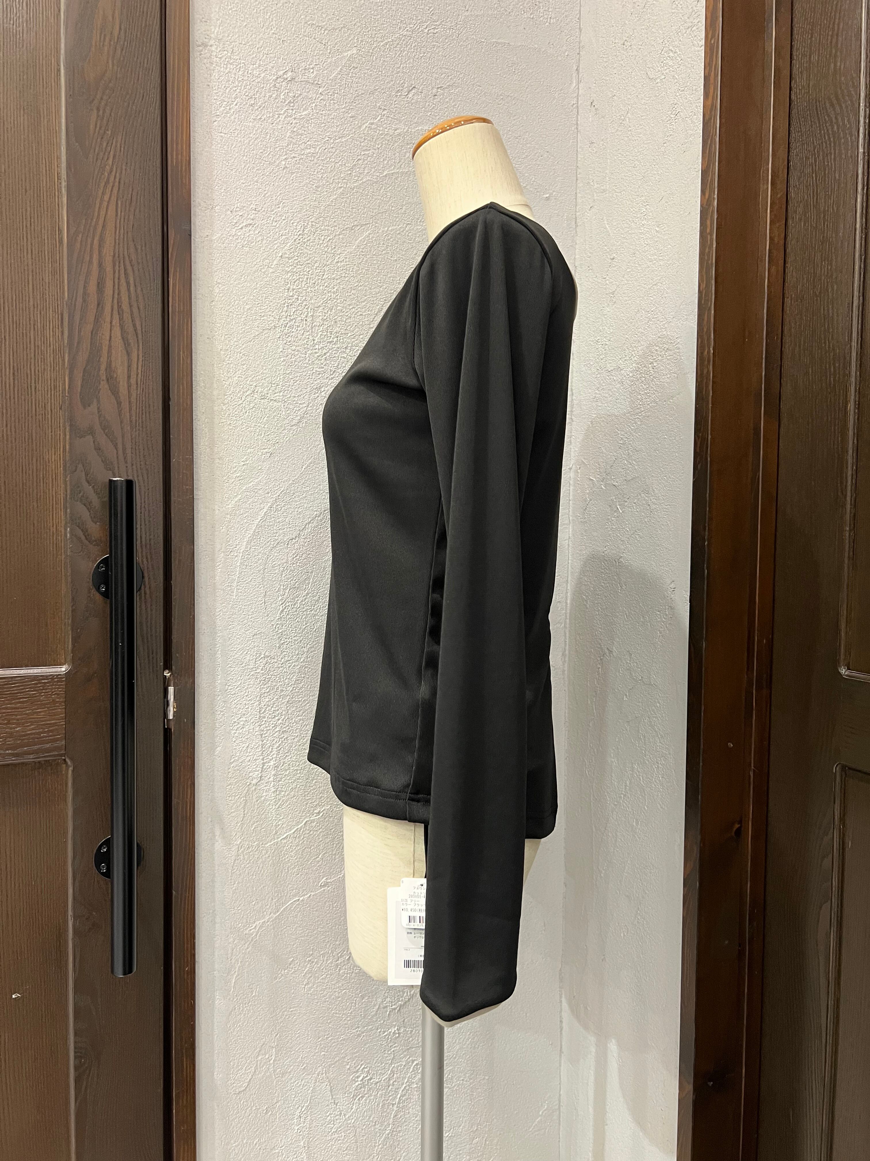 デコルテをきれいに見せる絶妙な開きと、程よくフィットするシルエットで女性らしさをプラス。