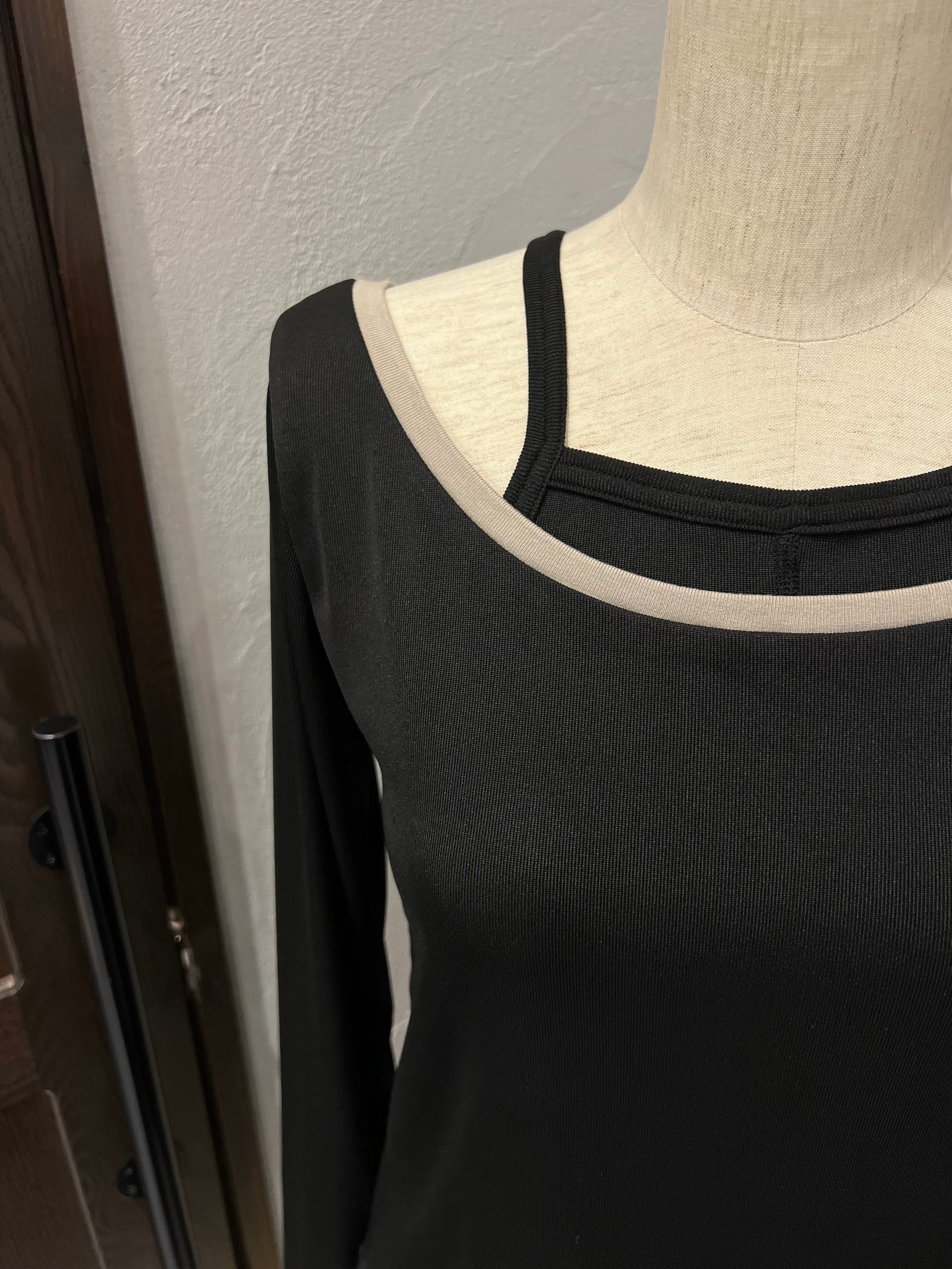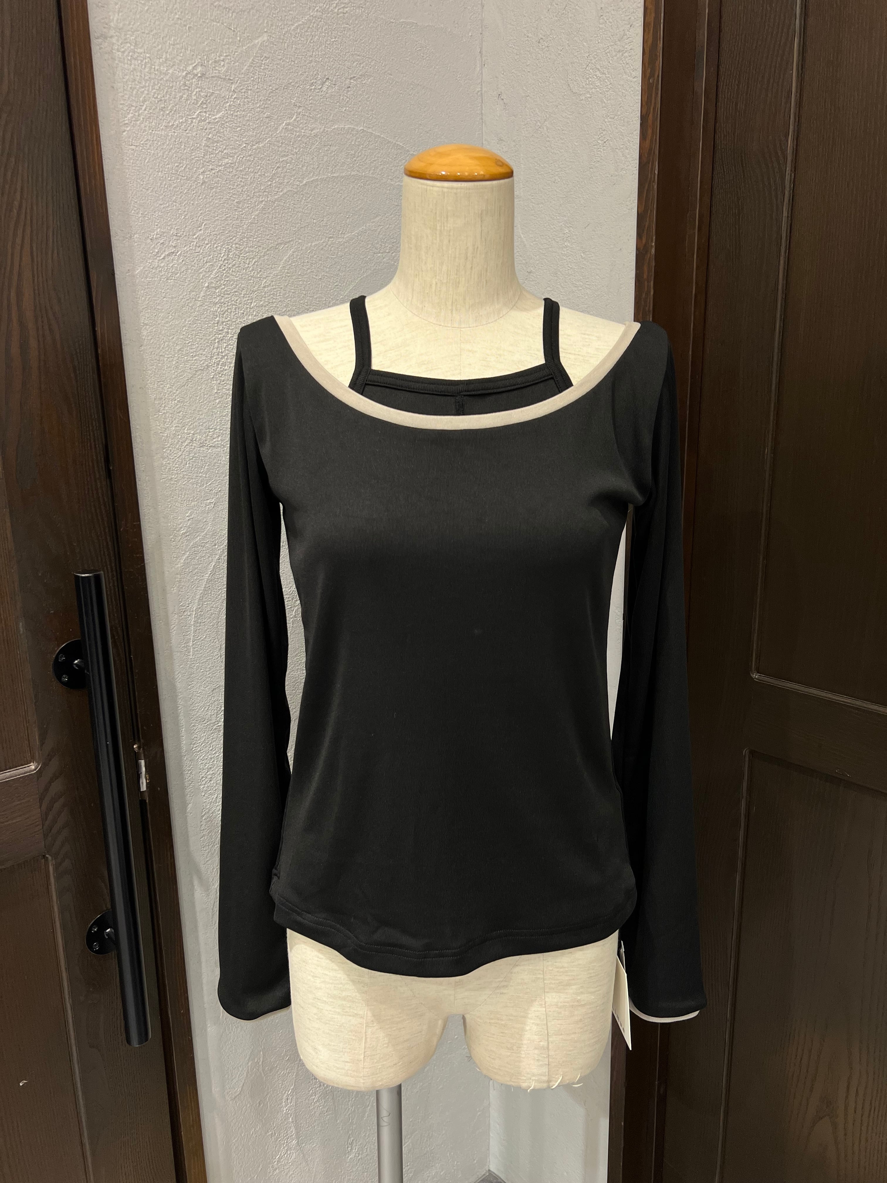 配色ラインがアクセントになったスクエアネックトップス。
