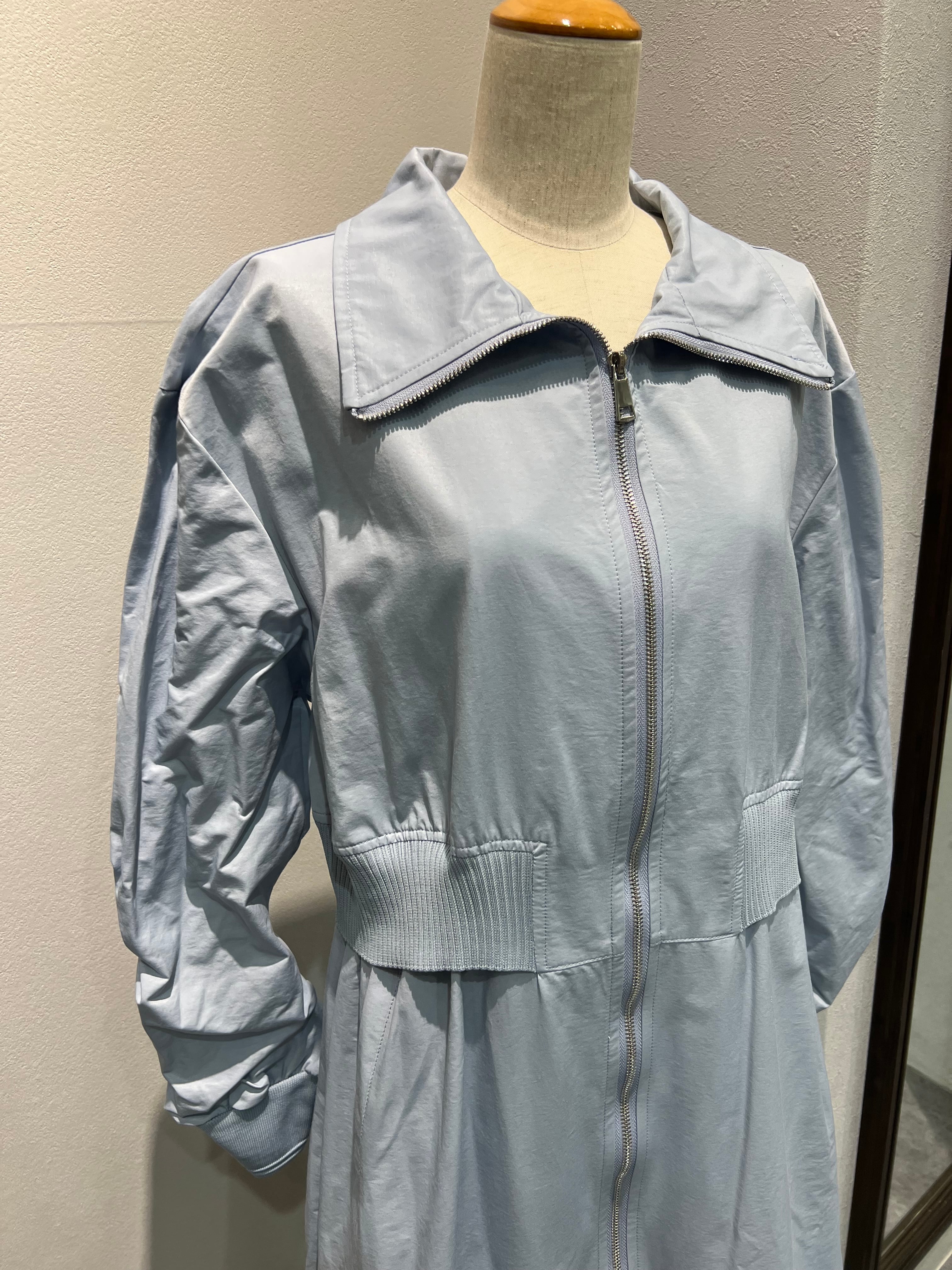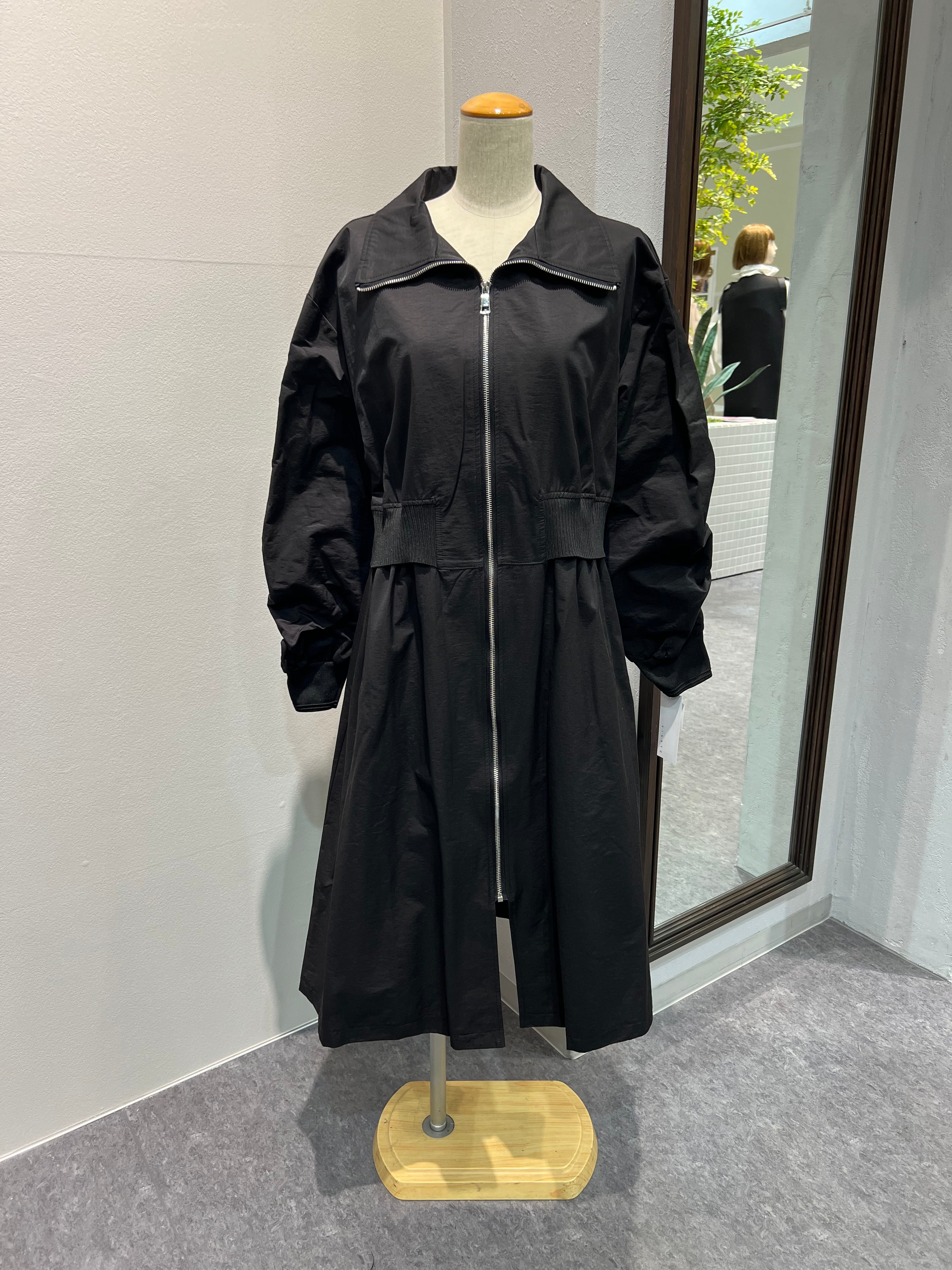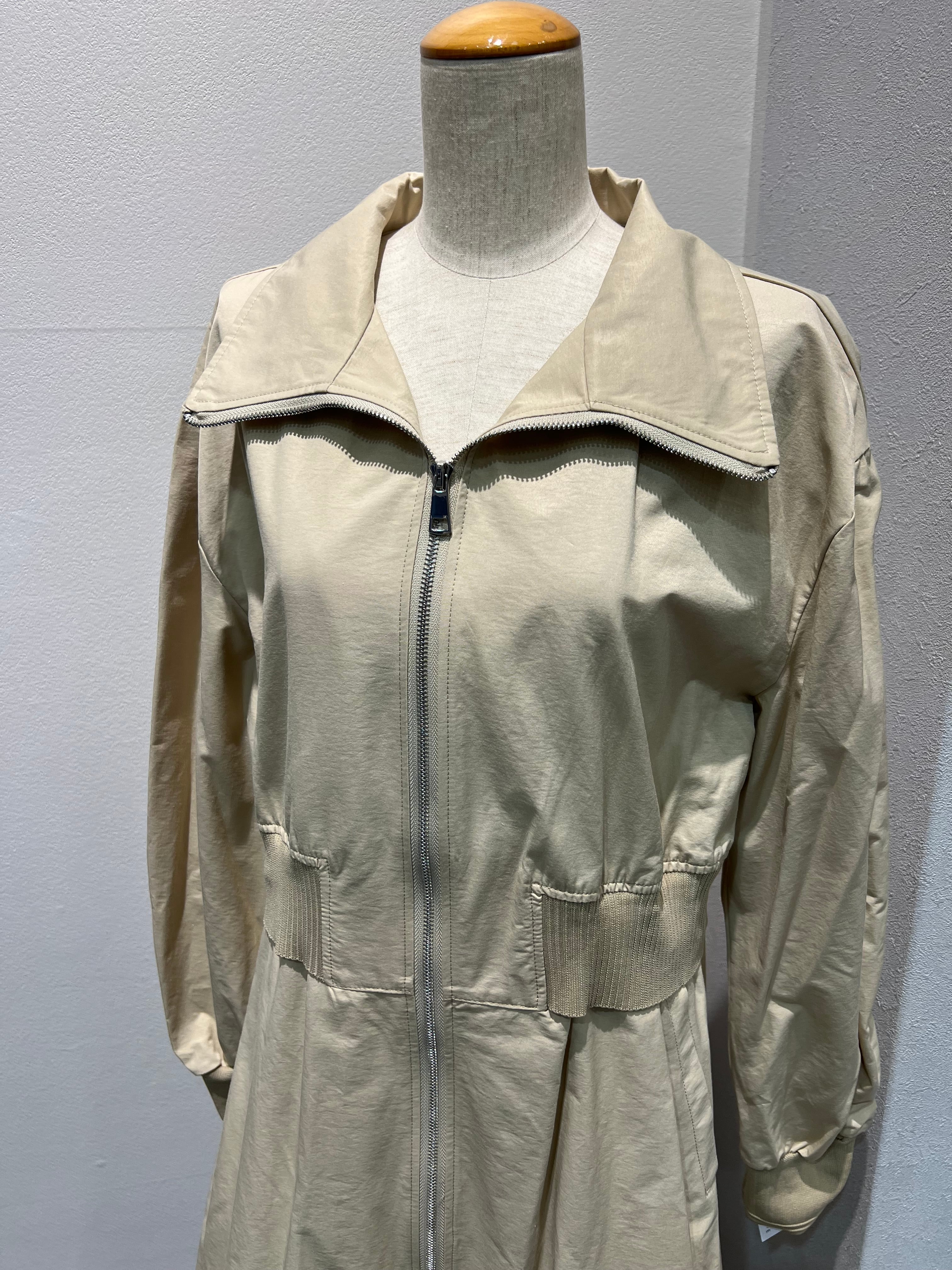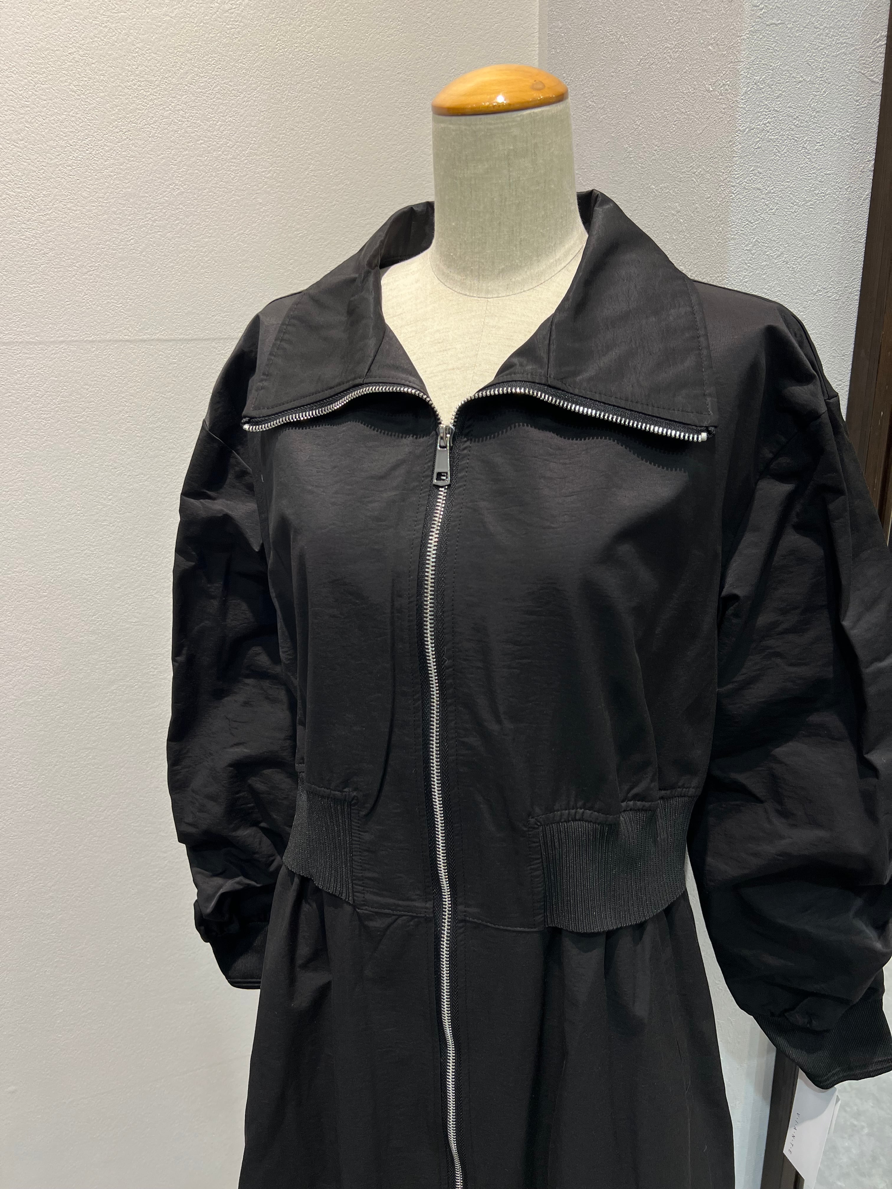 フロントはジップ仕様でさっと羽織りやすく、ワンピース感覚でも着用できる一枚。
