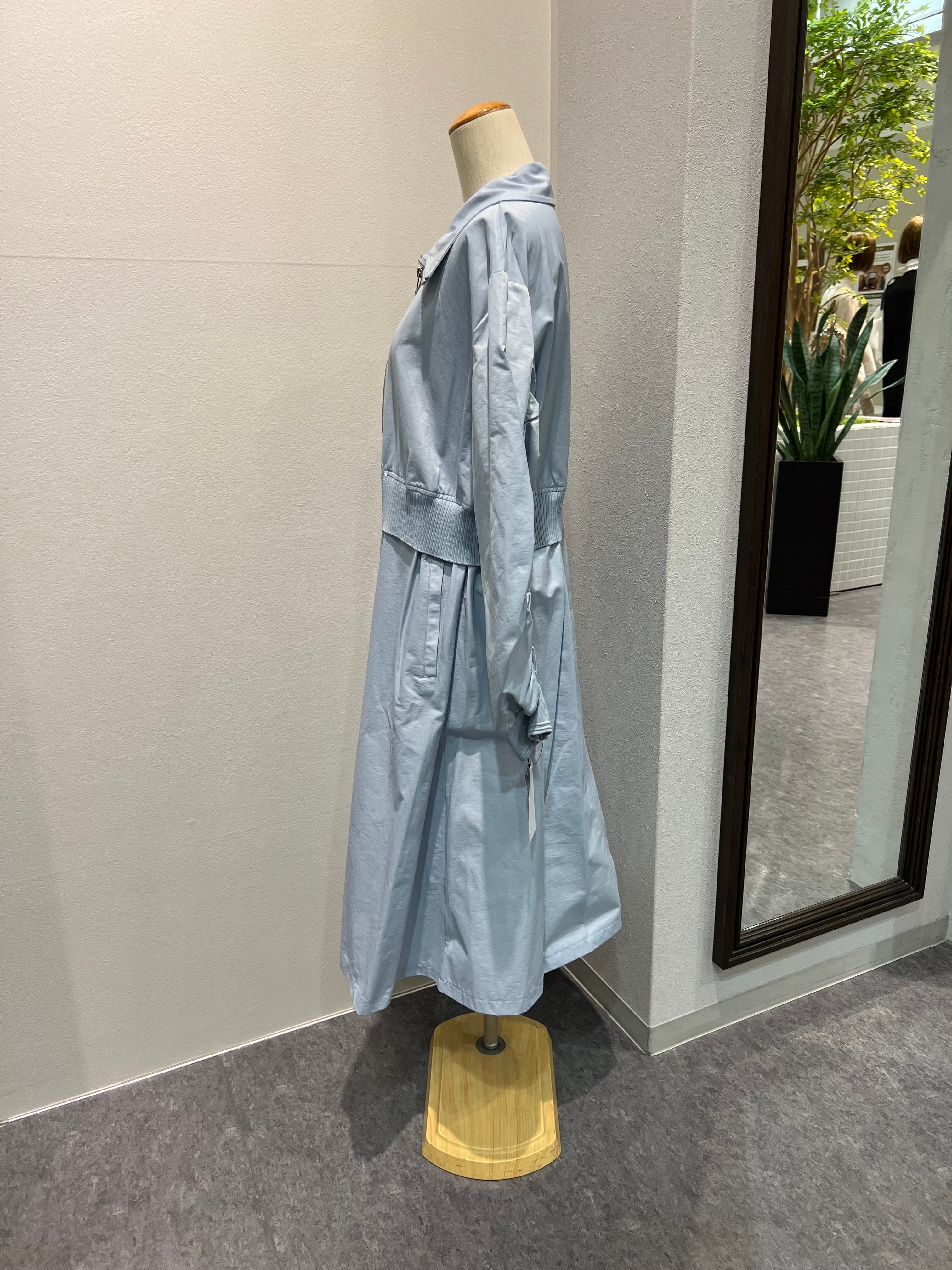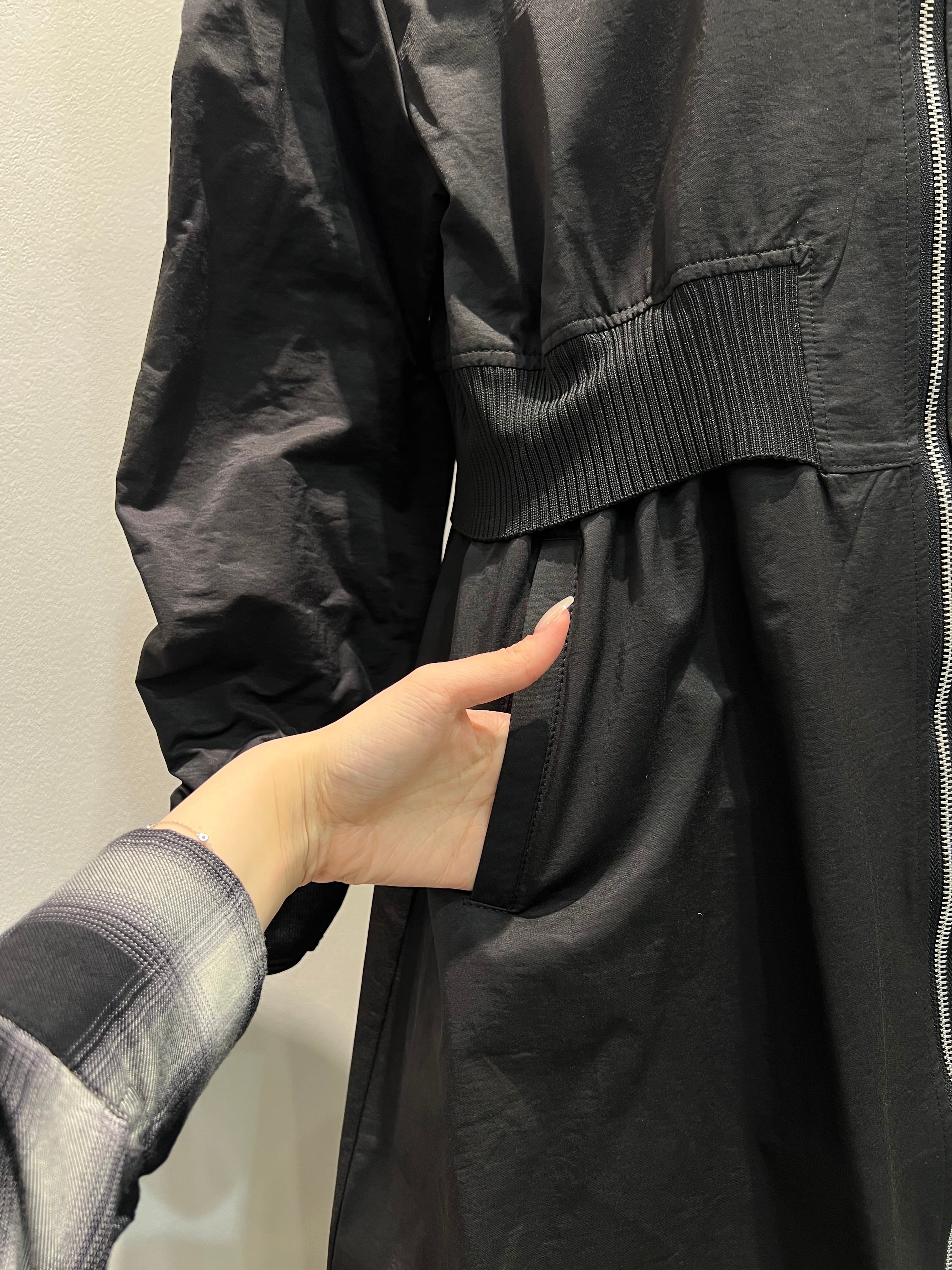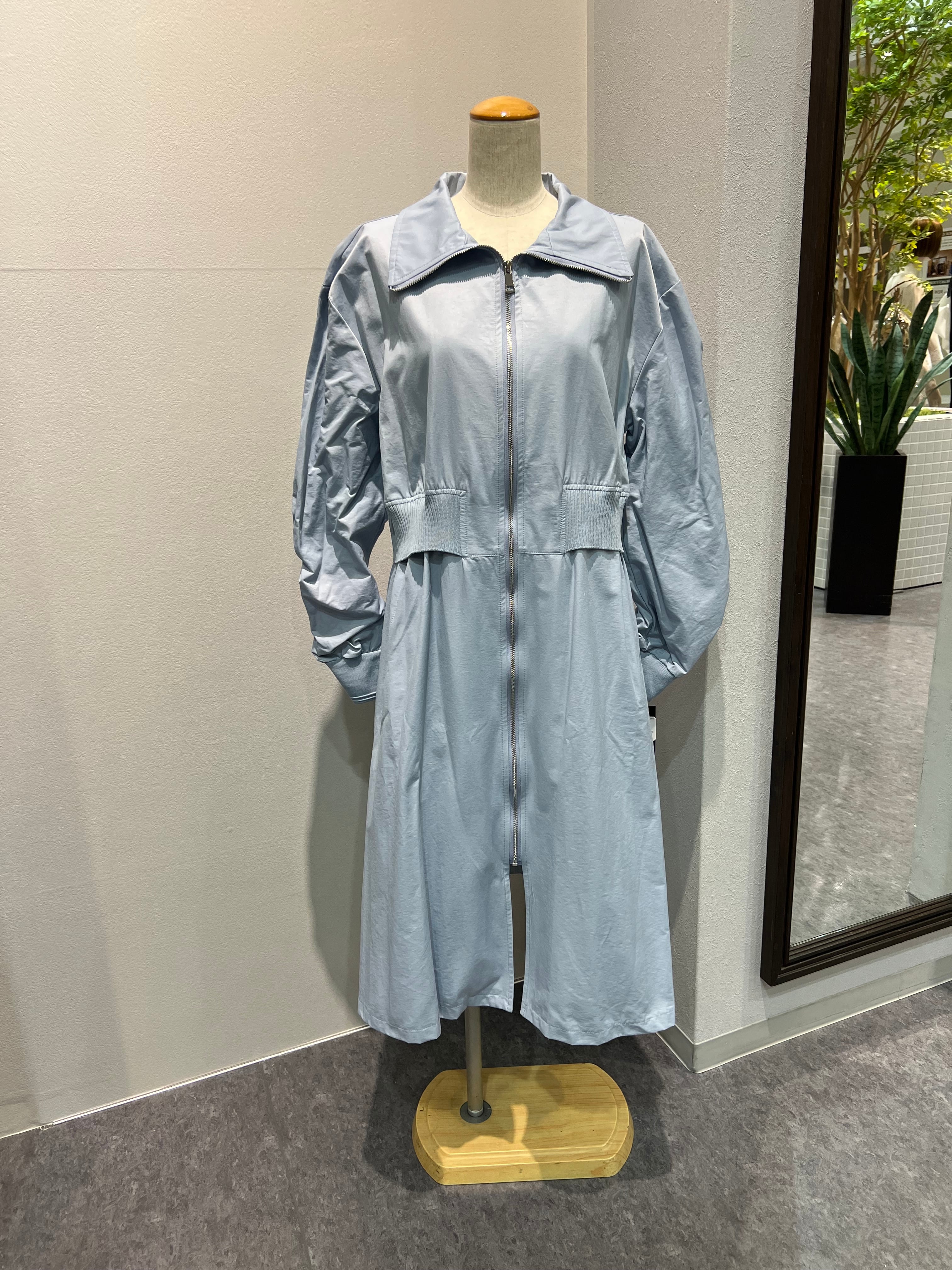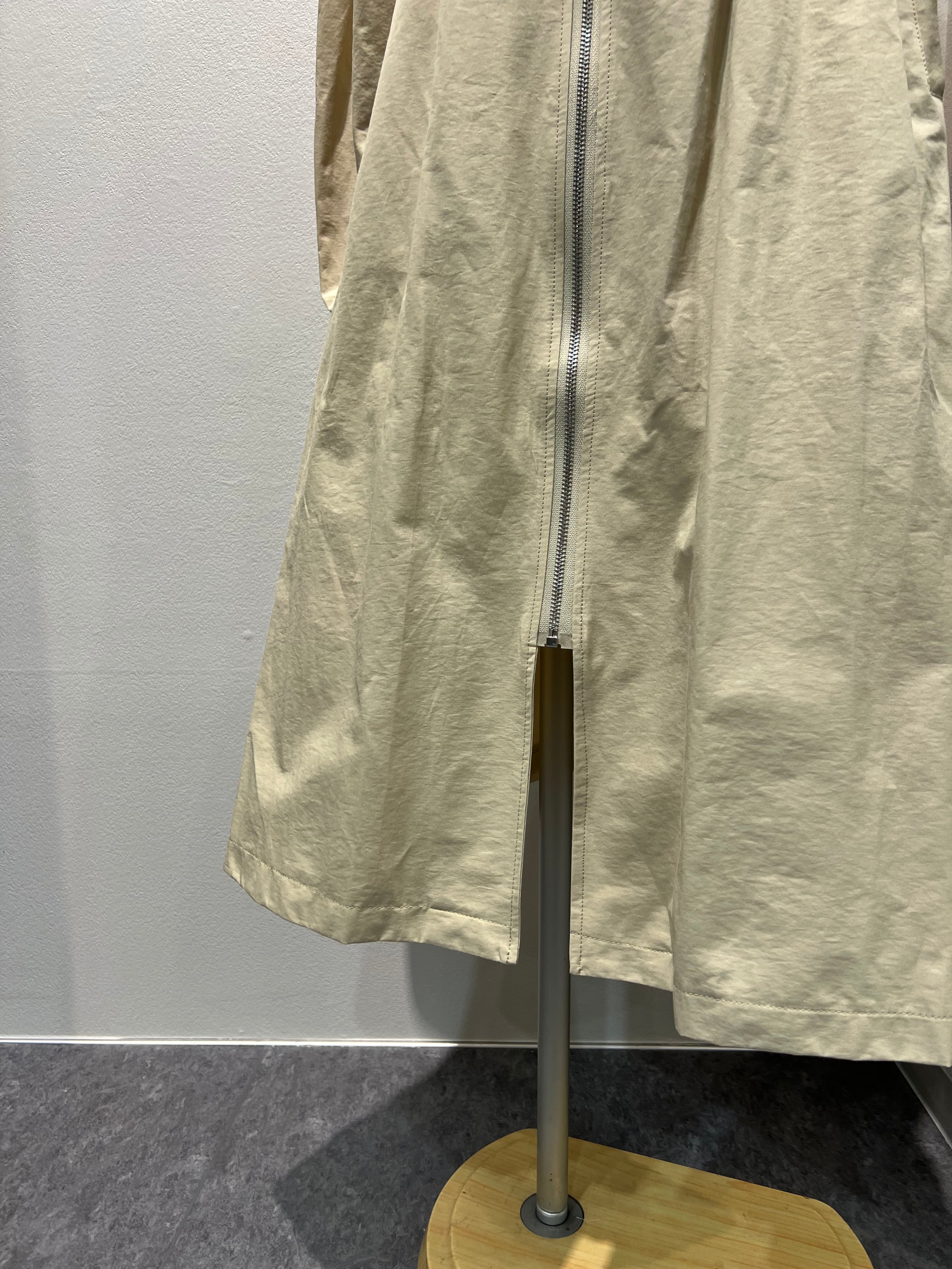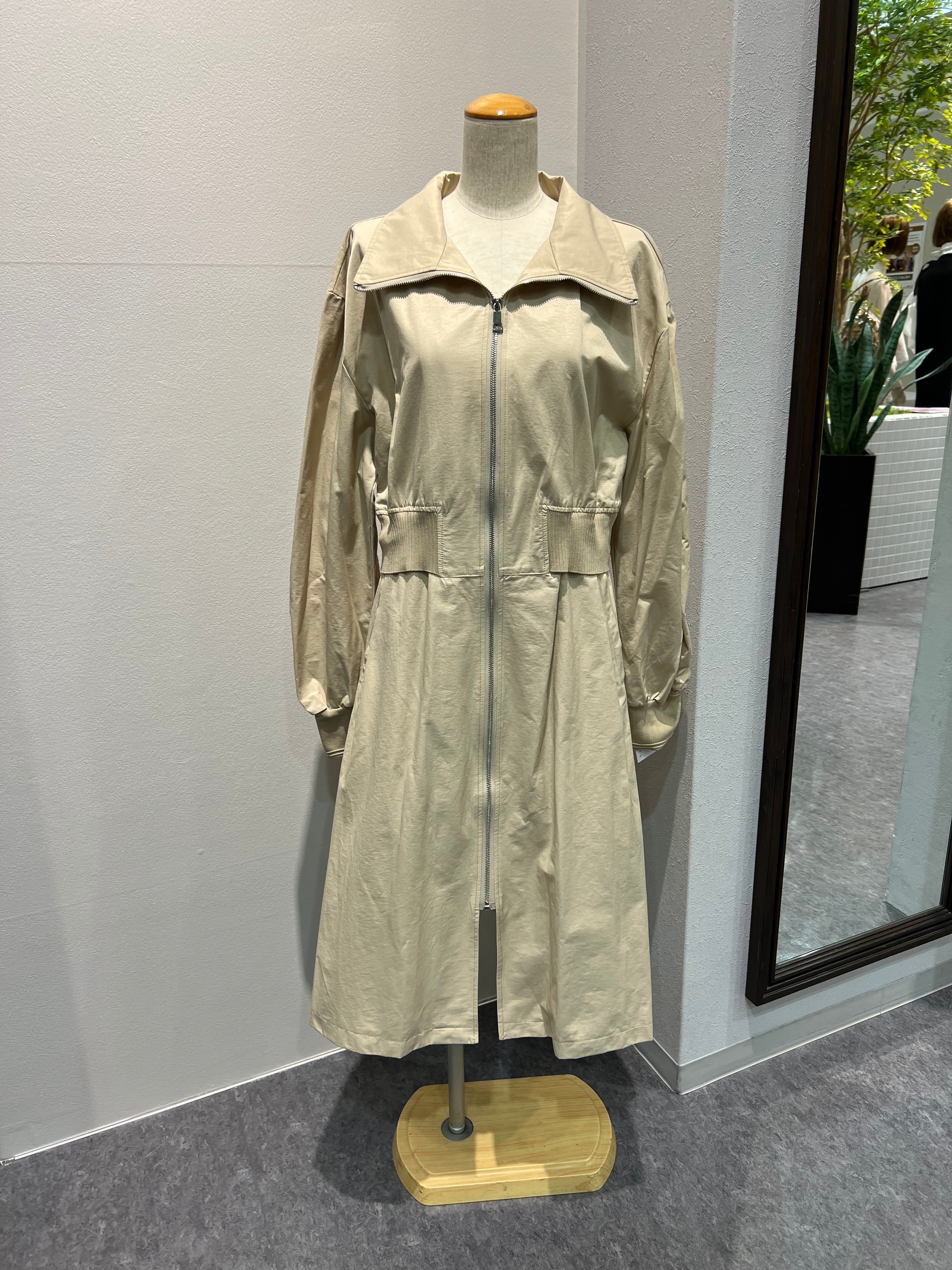 フロントはジップ仕様でさっと羽織りやすく、ワンピース感覚でも着用できる一枚。