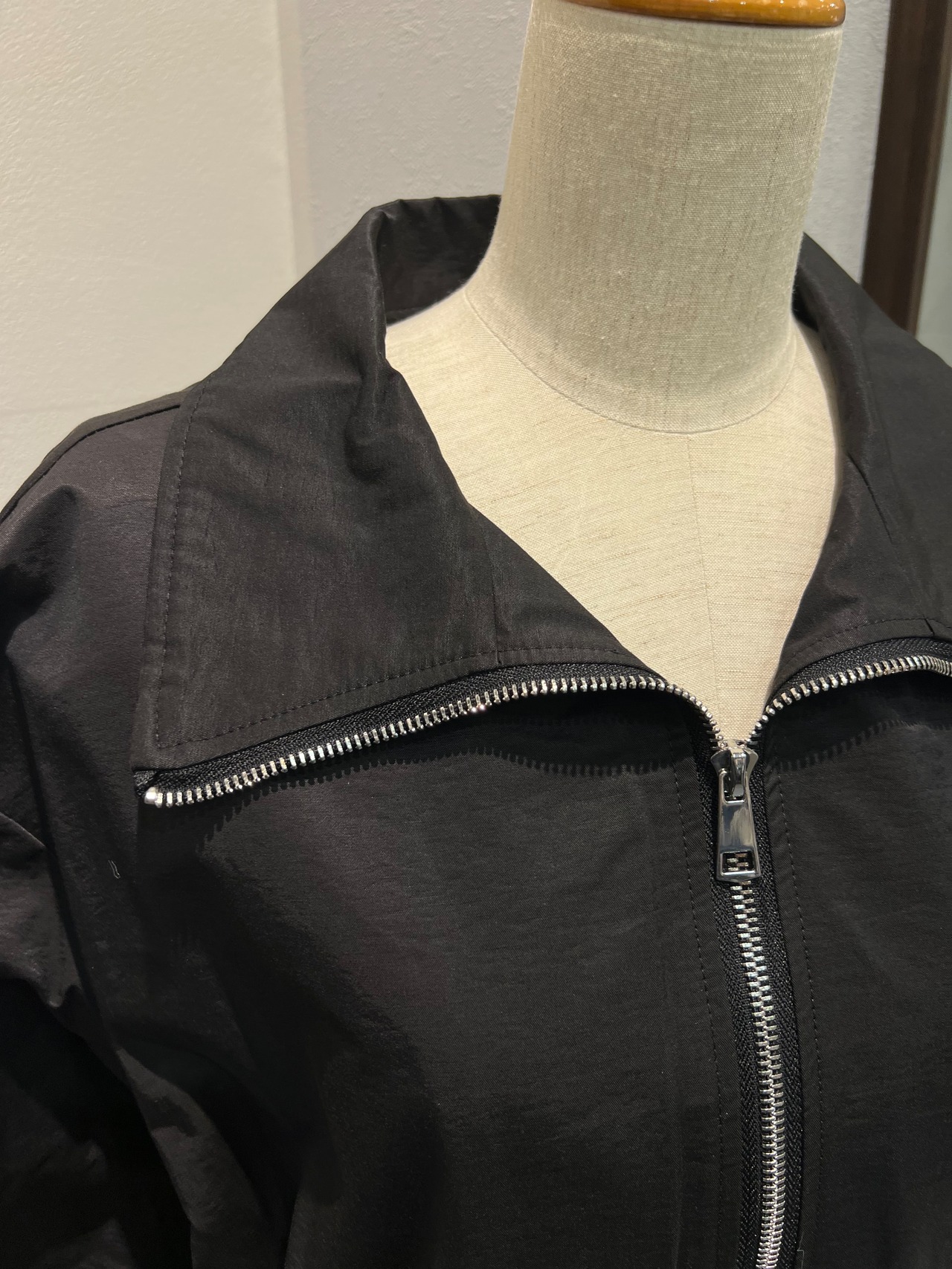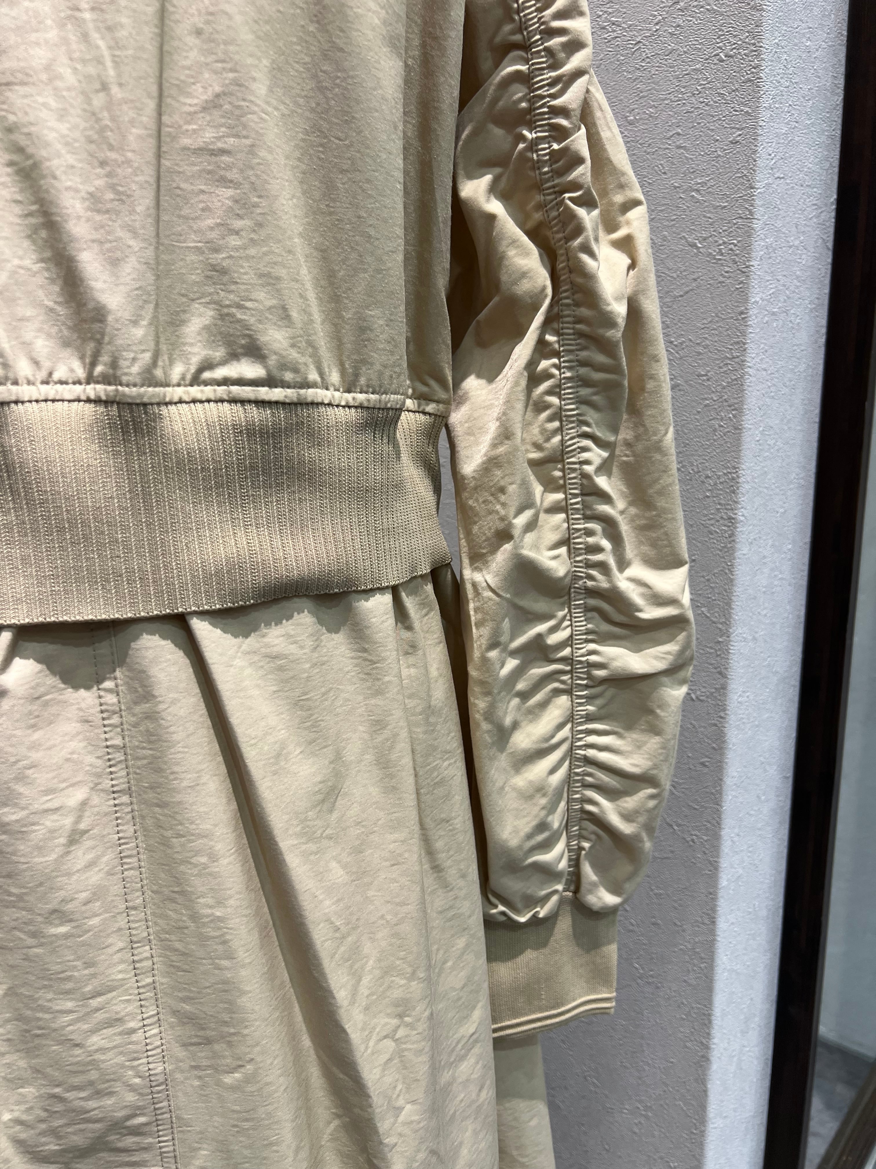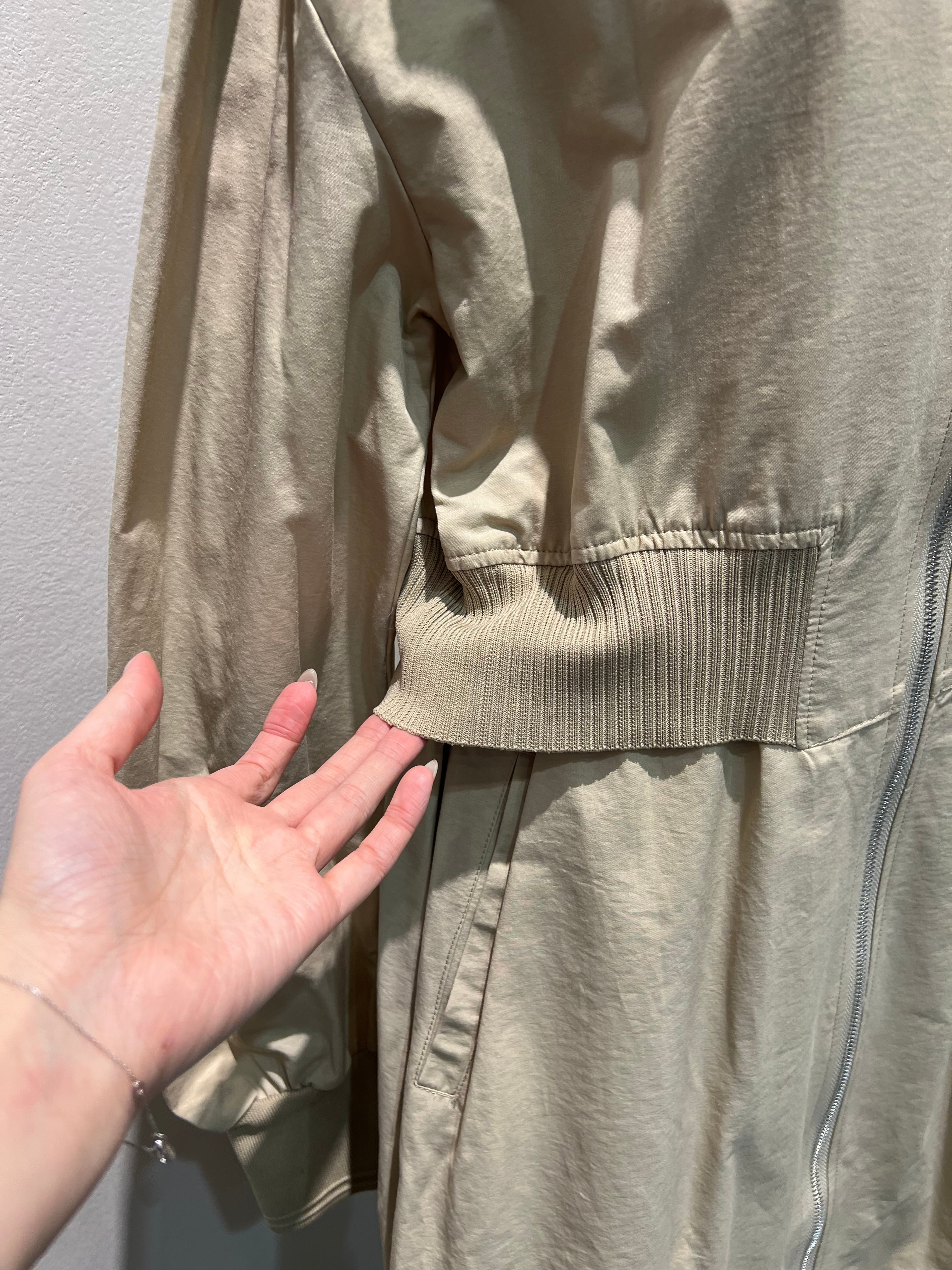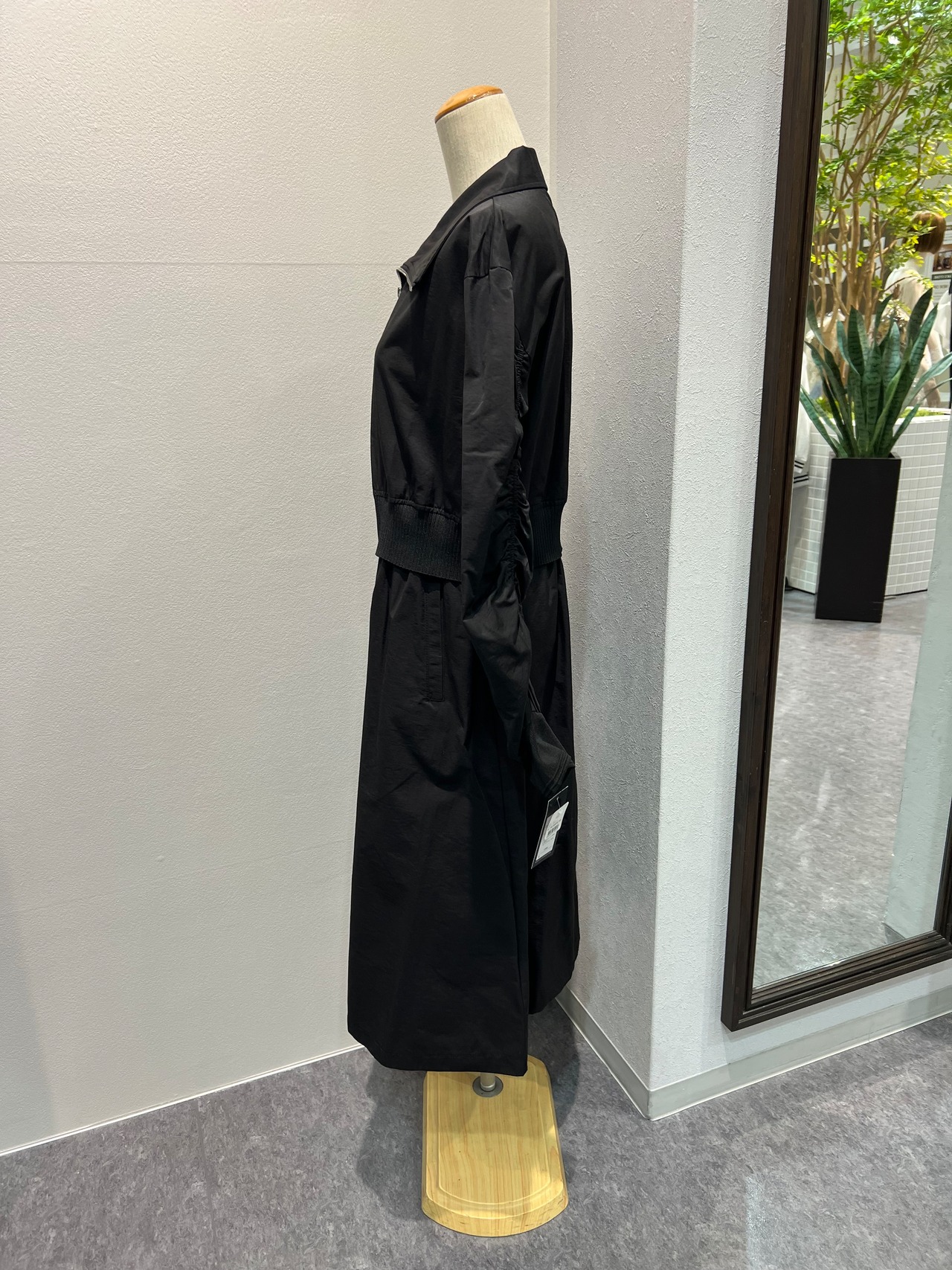 フロントはジップ仕様でさっと羽織りやすく、ワンピース感覚でも着用できる一枚。