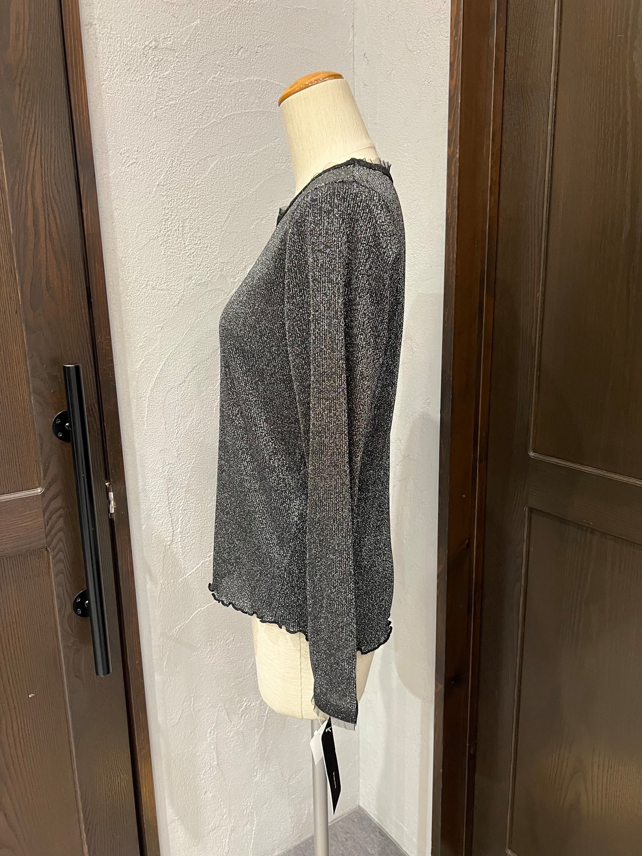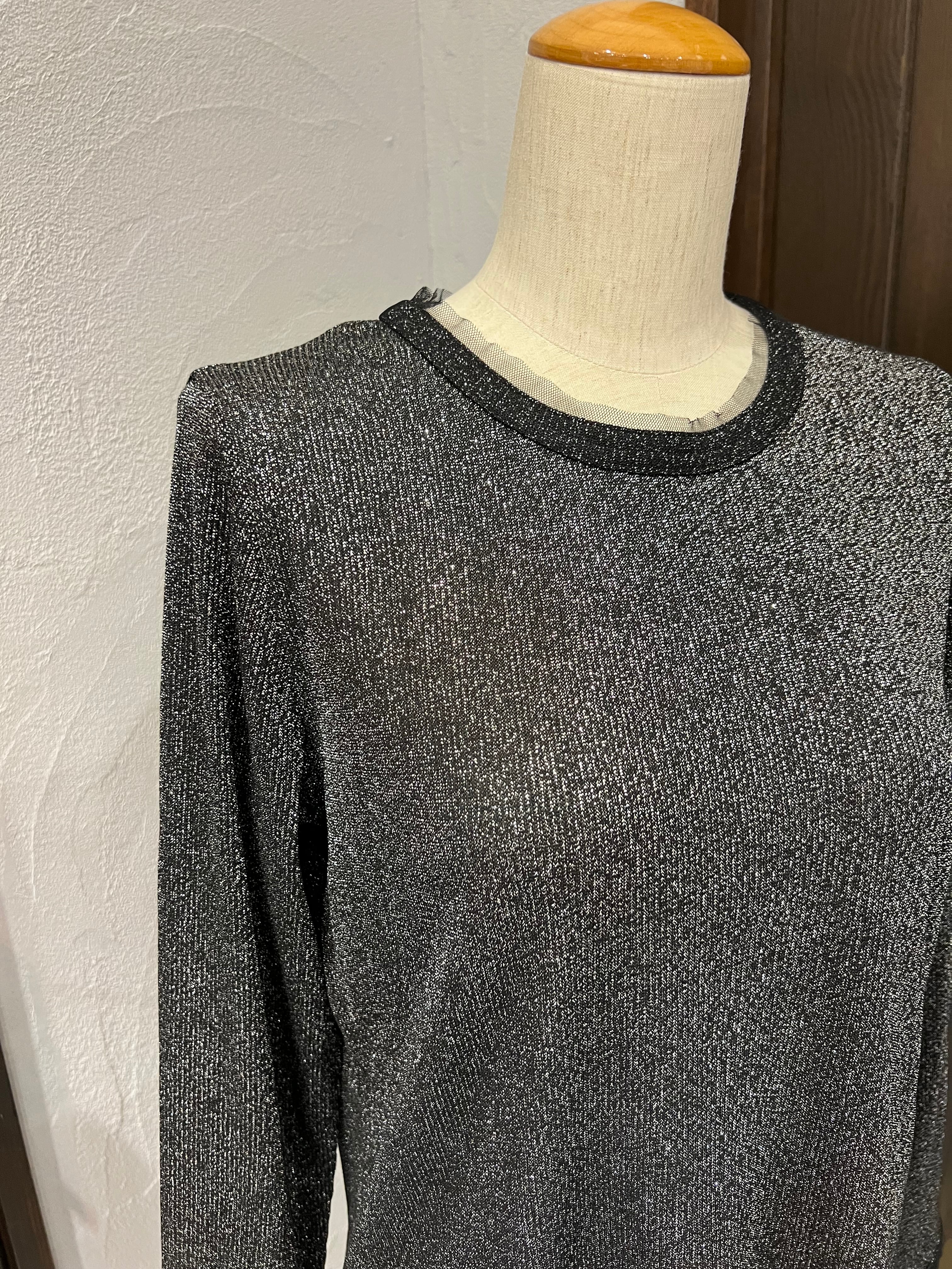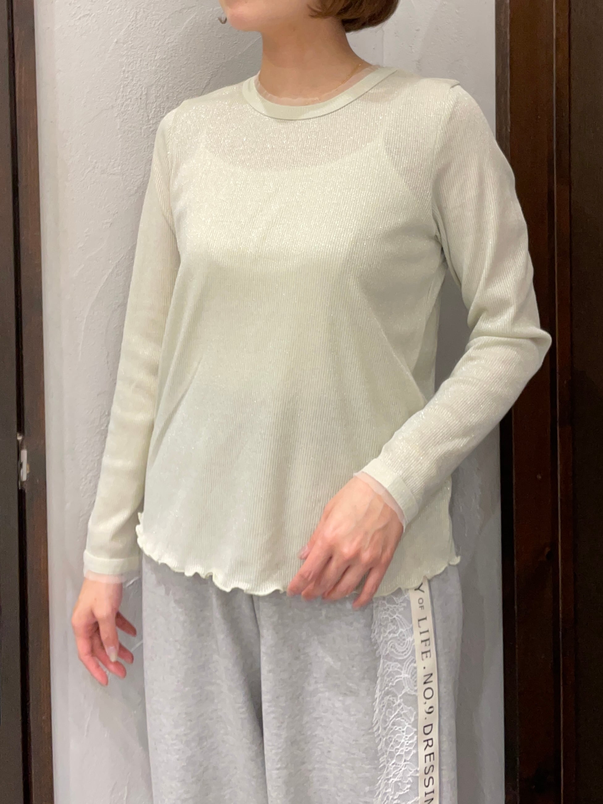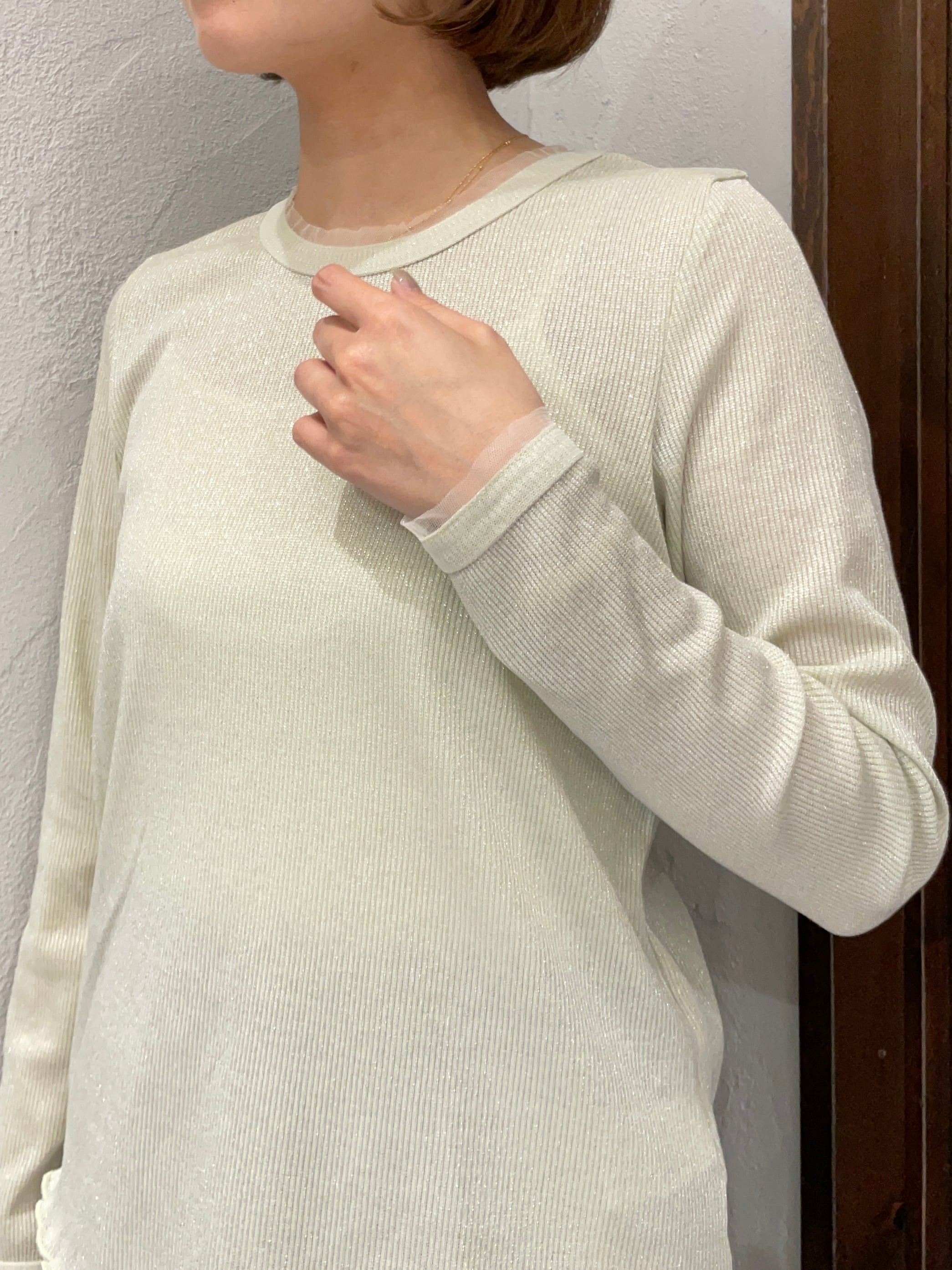 シアーなラメ使いが魅力的なプルオーバーで、さりげない華やかさをプラス。