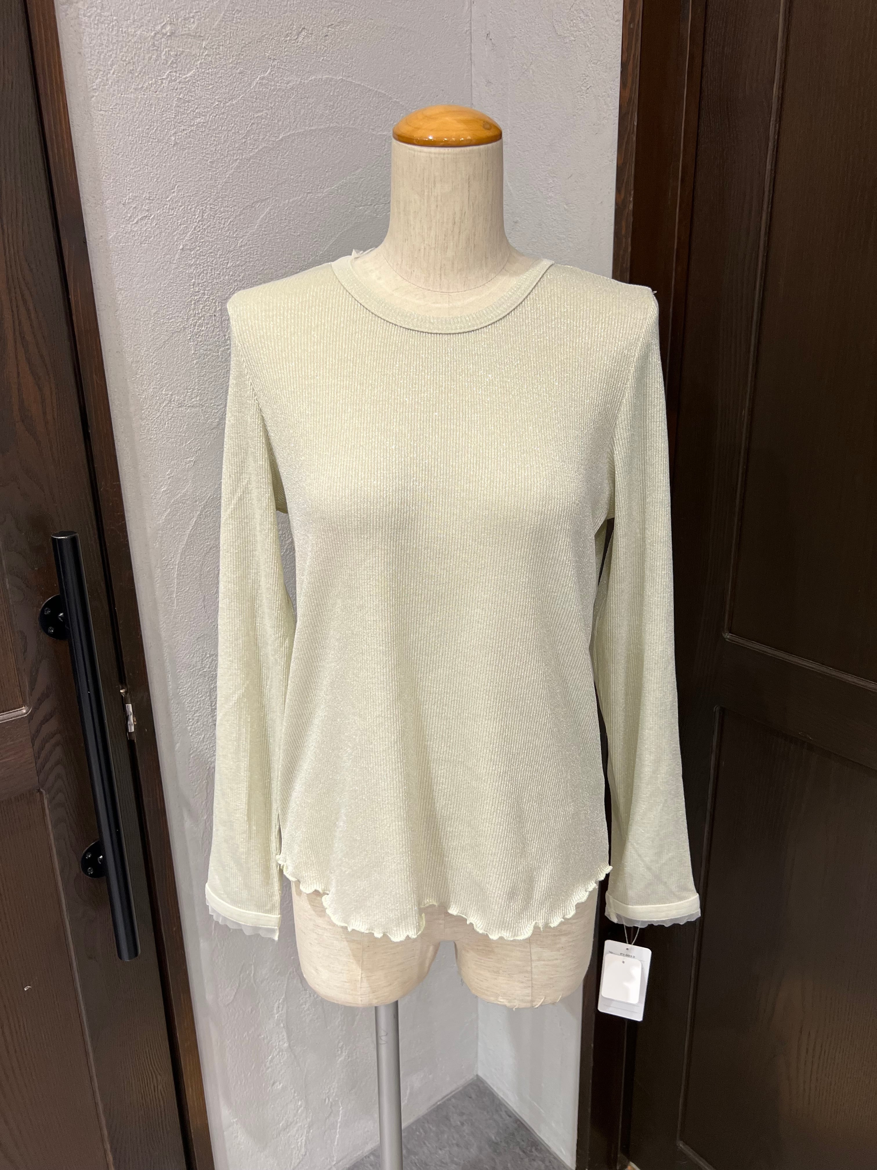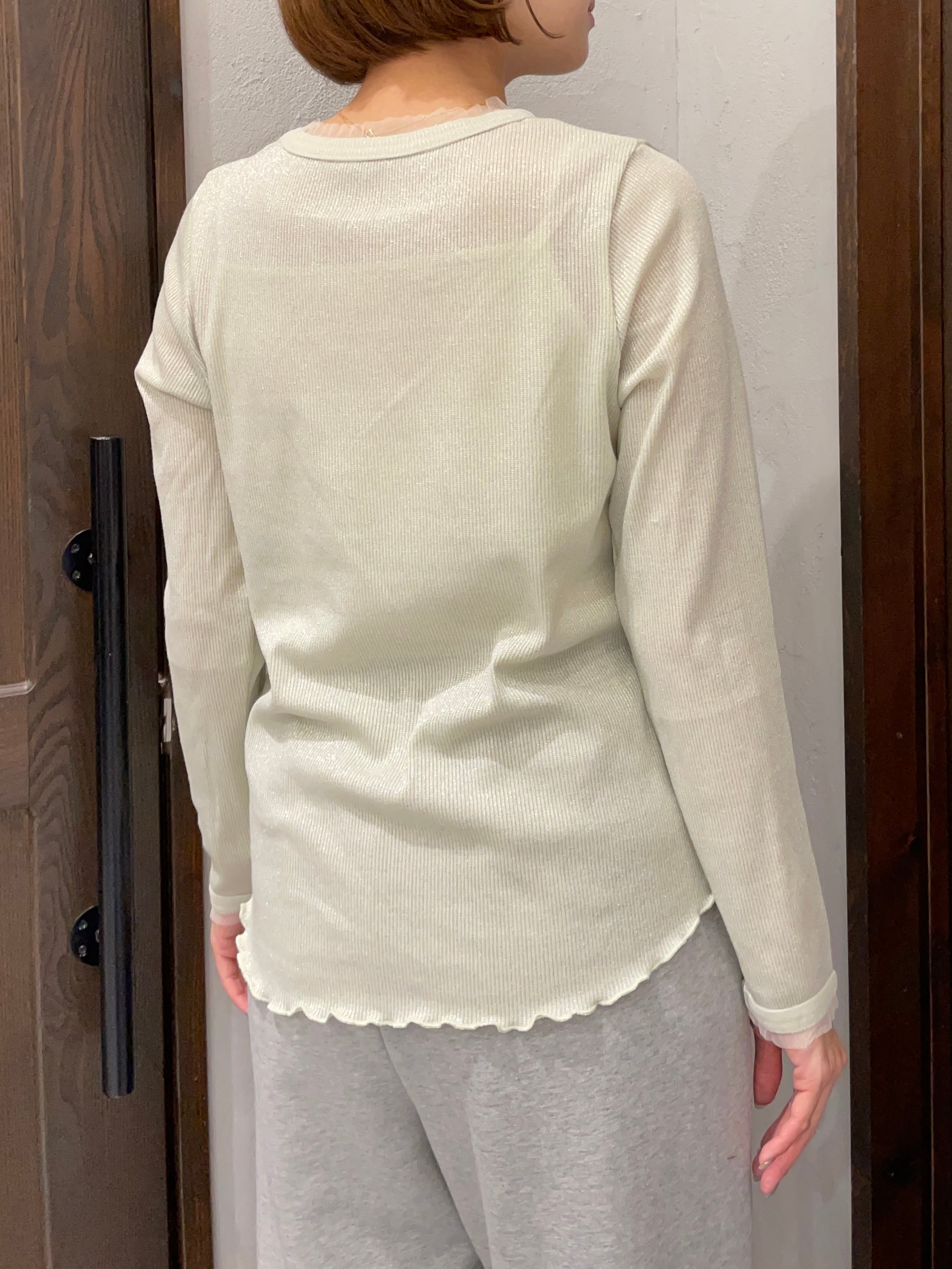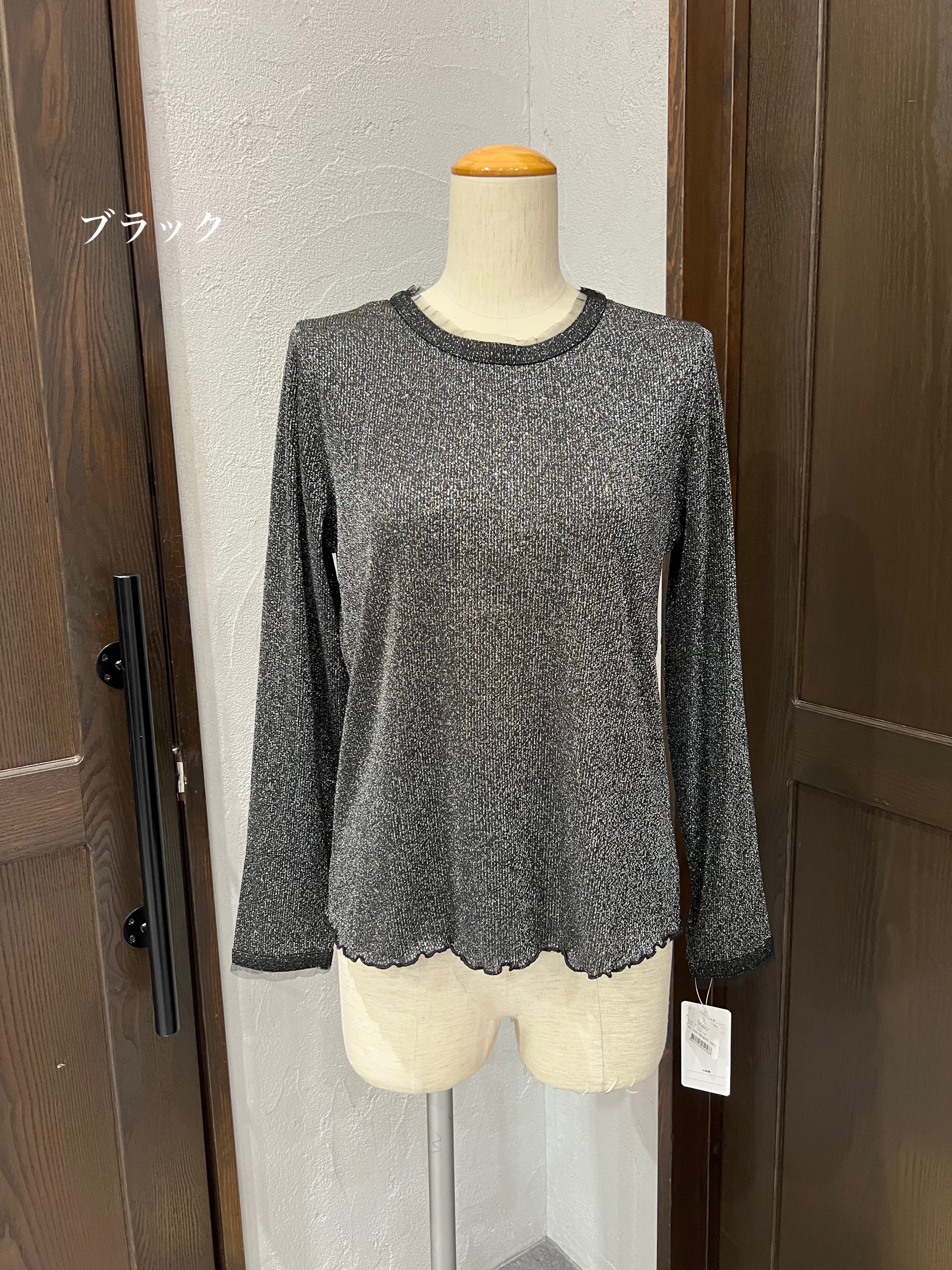 シアーなラメ使いが魅力的なプルオーバーで、さりげない華やかさをプラス。