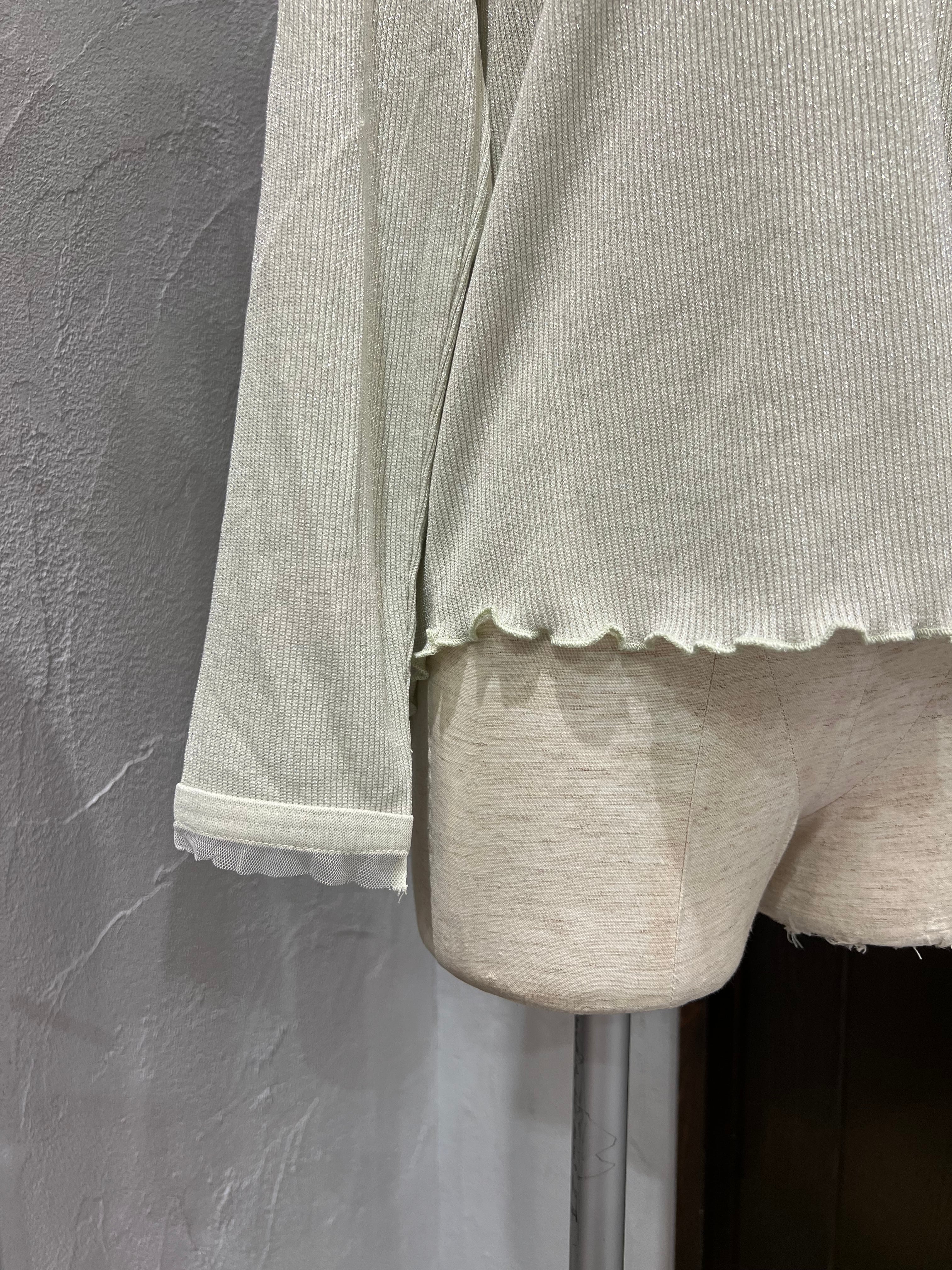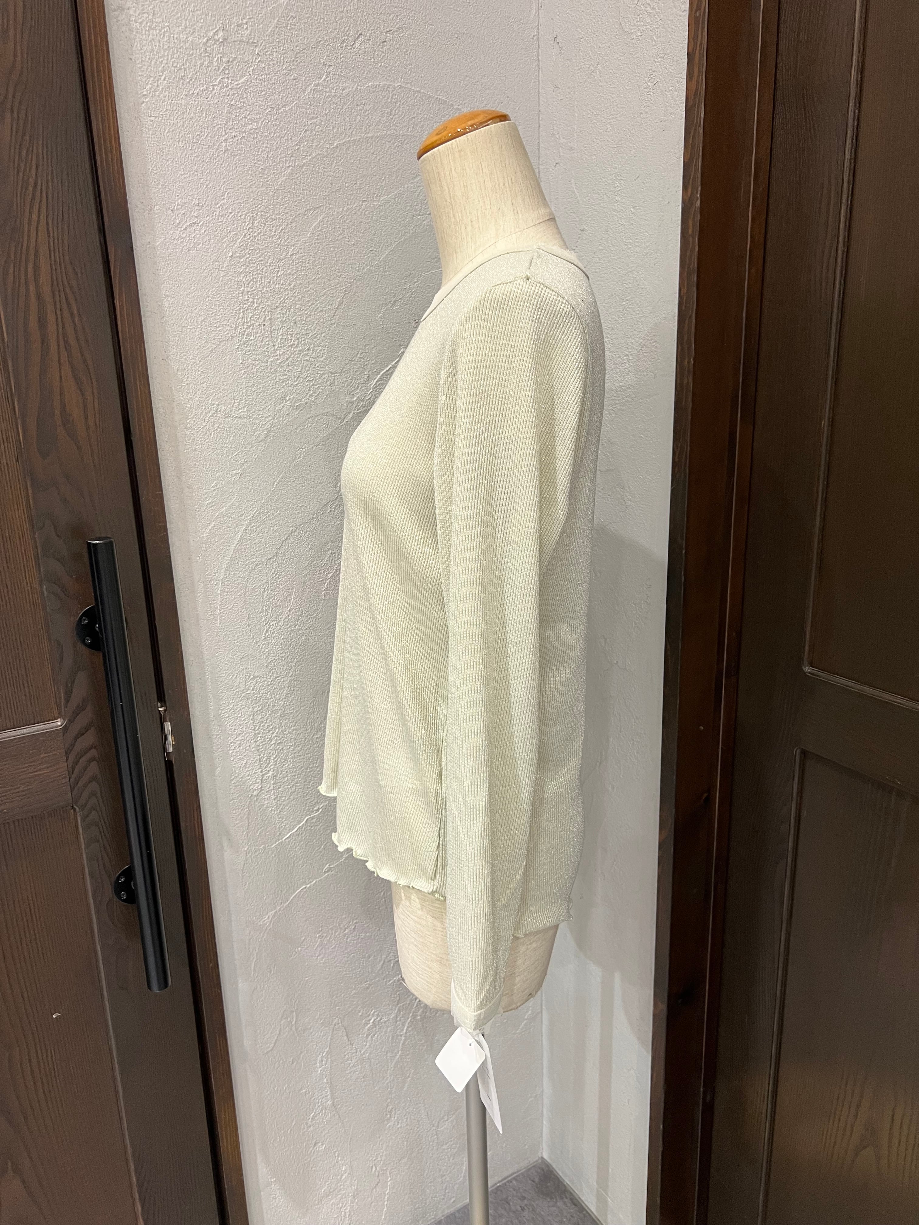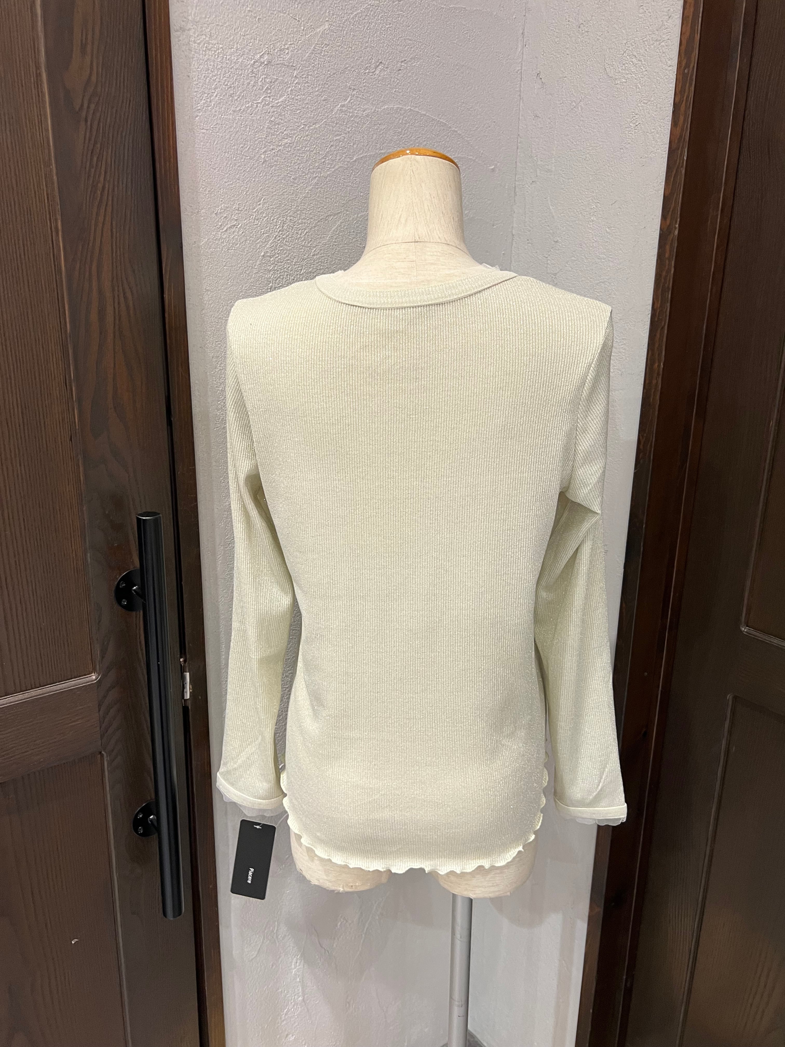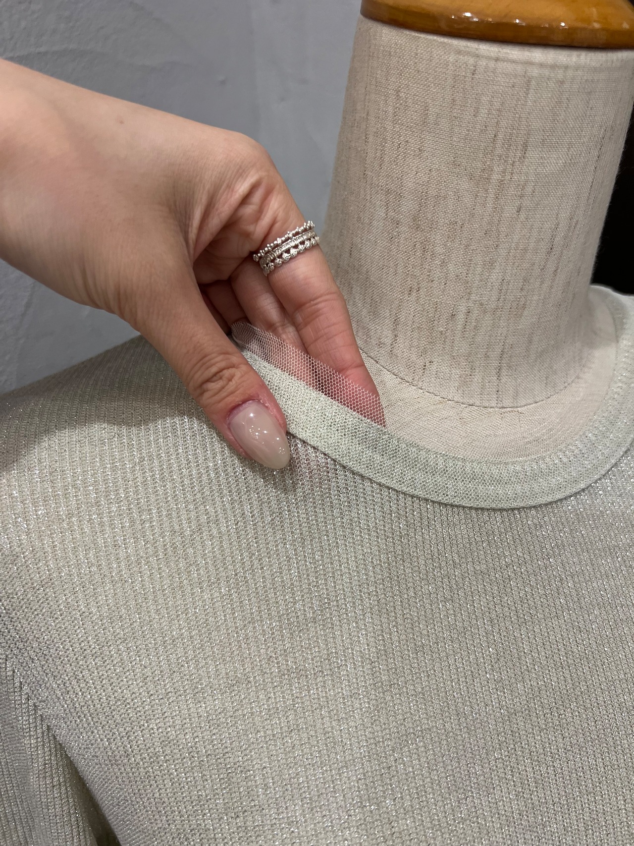 シアーなラメ使いが魅力的なプルオーバーで、さりげない華やかさをプラス。