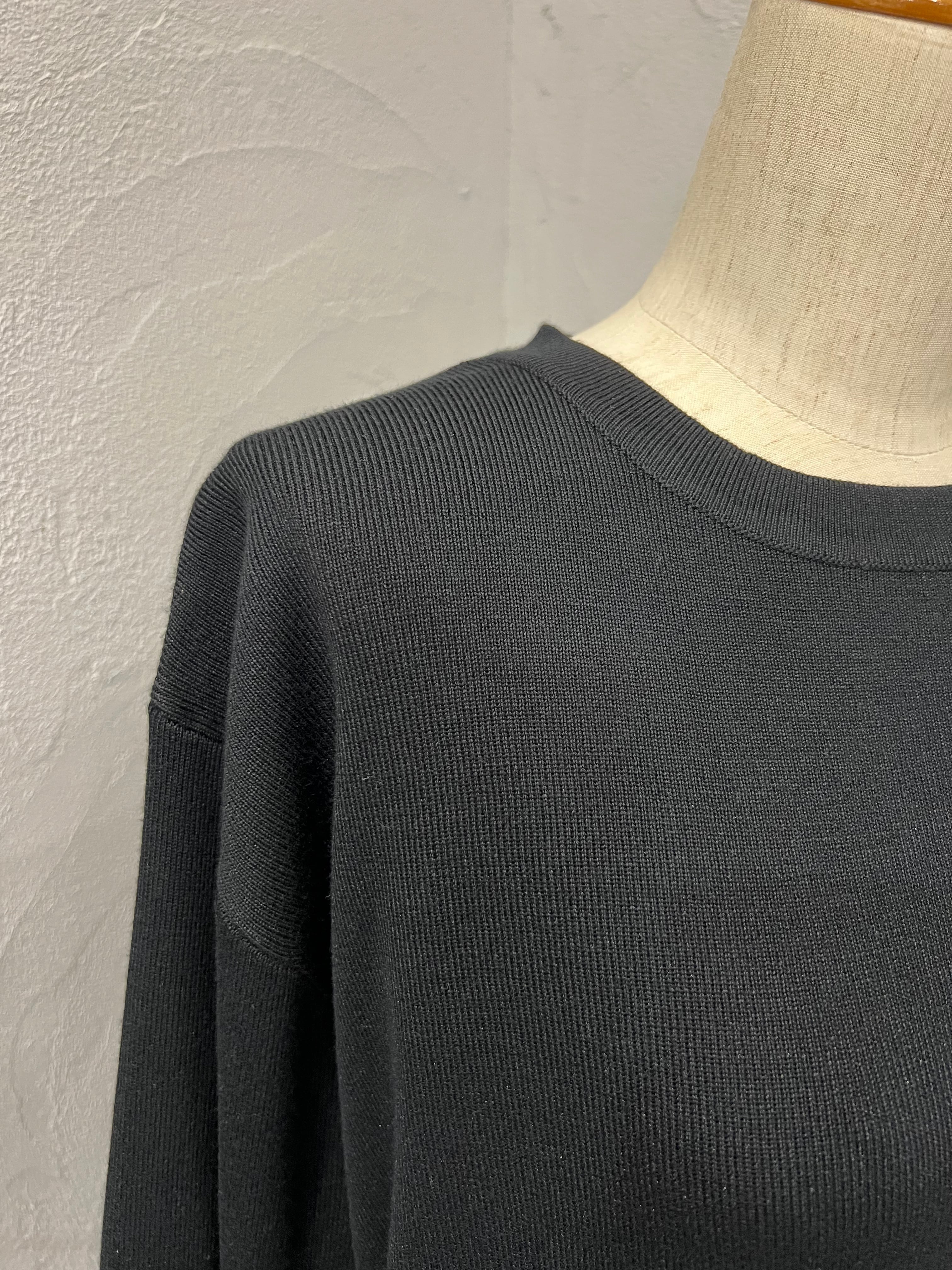 フロントはすっきりとしたミニマルなデザインで、どんなボトムにも合わせやすく着回し力の高い1枚です。程よくゆとりのあるシルエットで、リラックス感のある着心地も魅力。