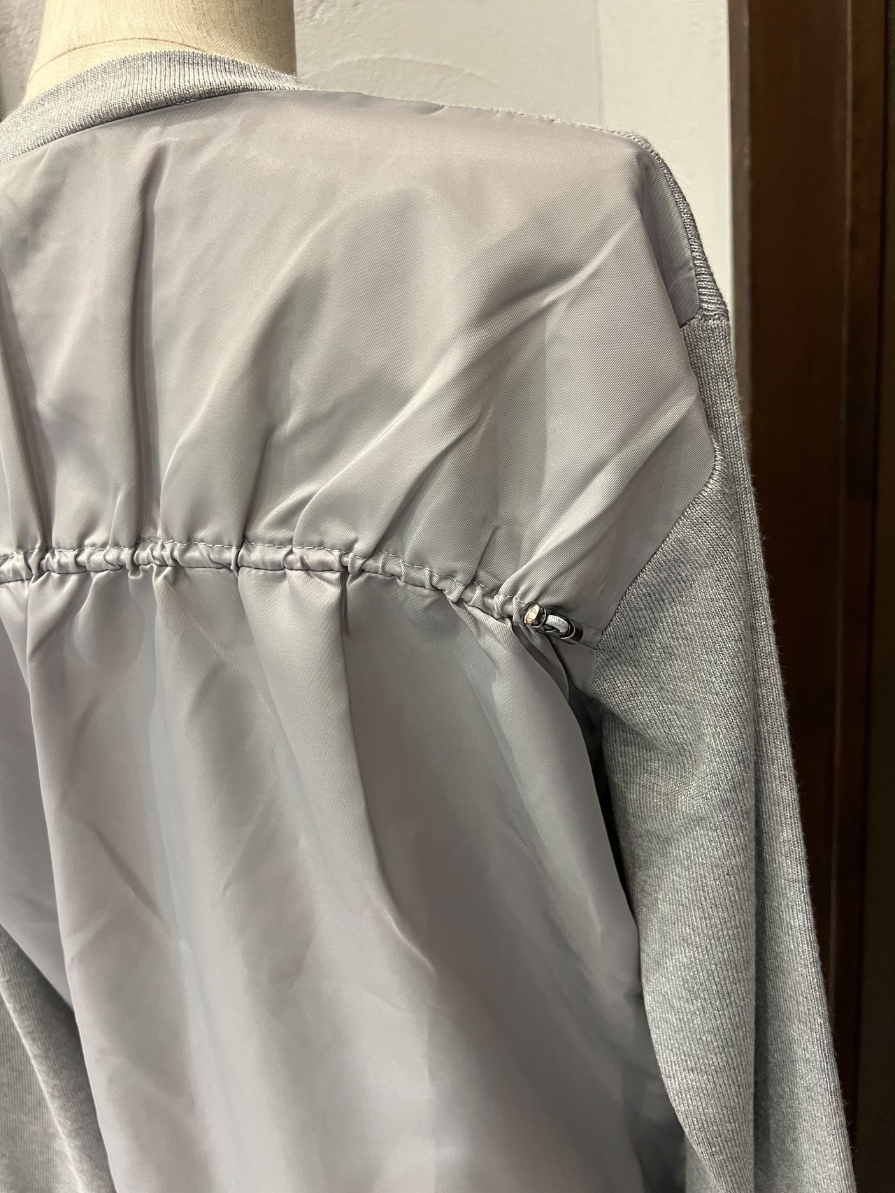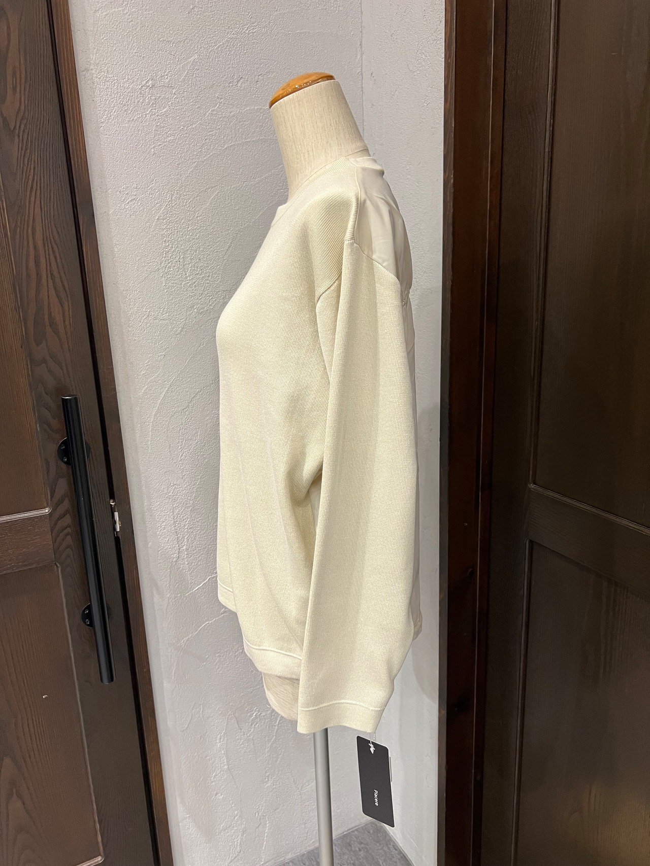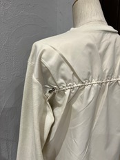 バックスタイルは異素材で切り替えたデザインになっており、ギャザーを寄せることでふんわりとした立体感をプラス。後ろ姿までおしゃれに見せてくれるのがポイントです。