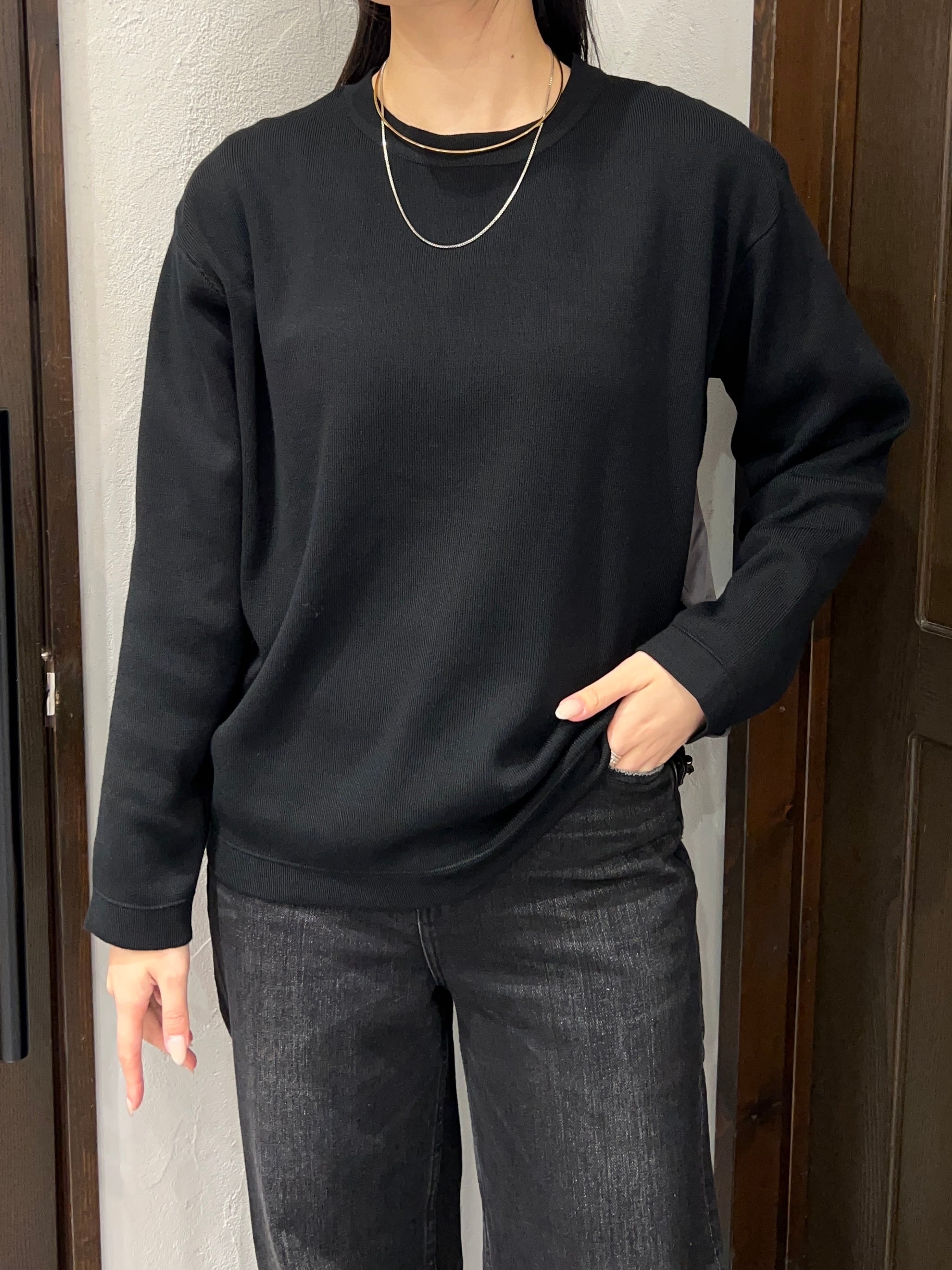 シンプルながらも前後で表情が変わるデザインで、1枚でさりげなくおしゃれが決まるおすすめトップスです。