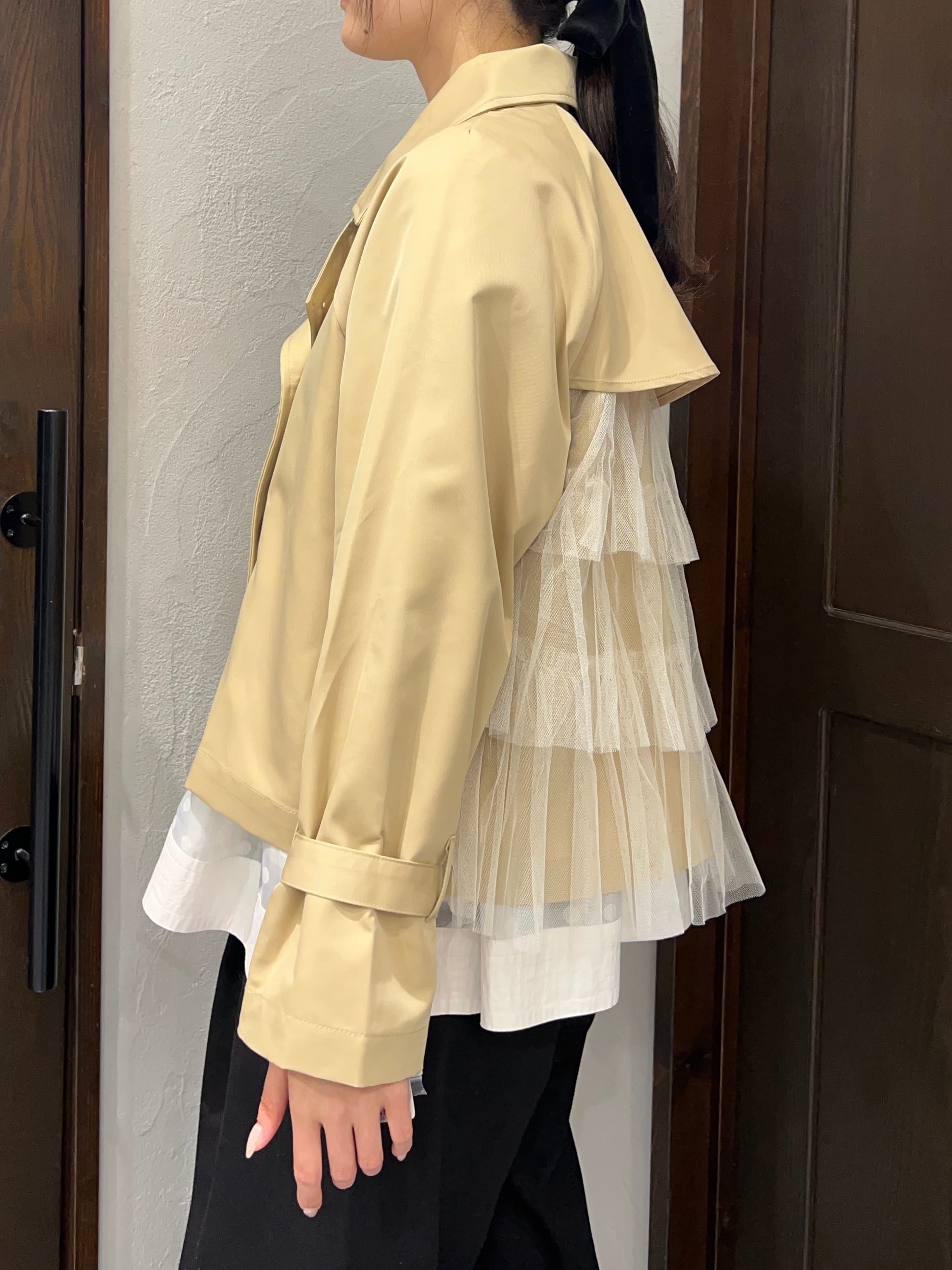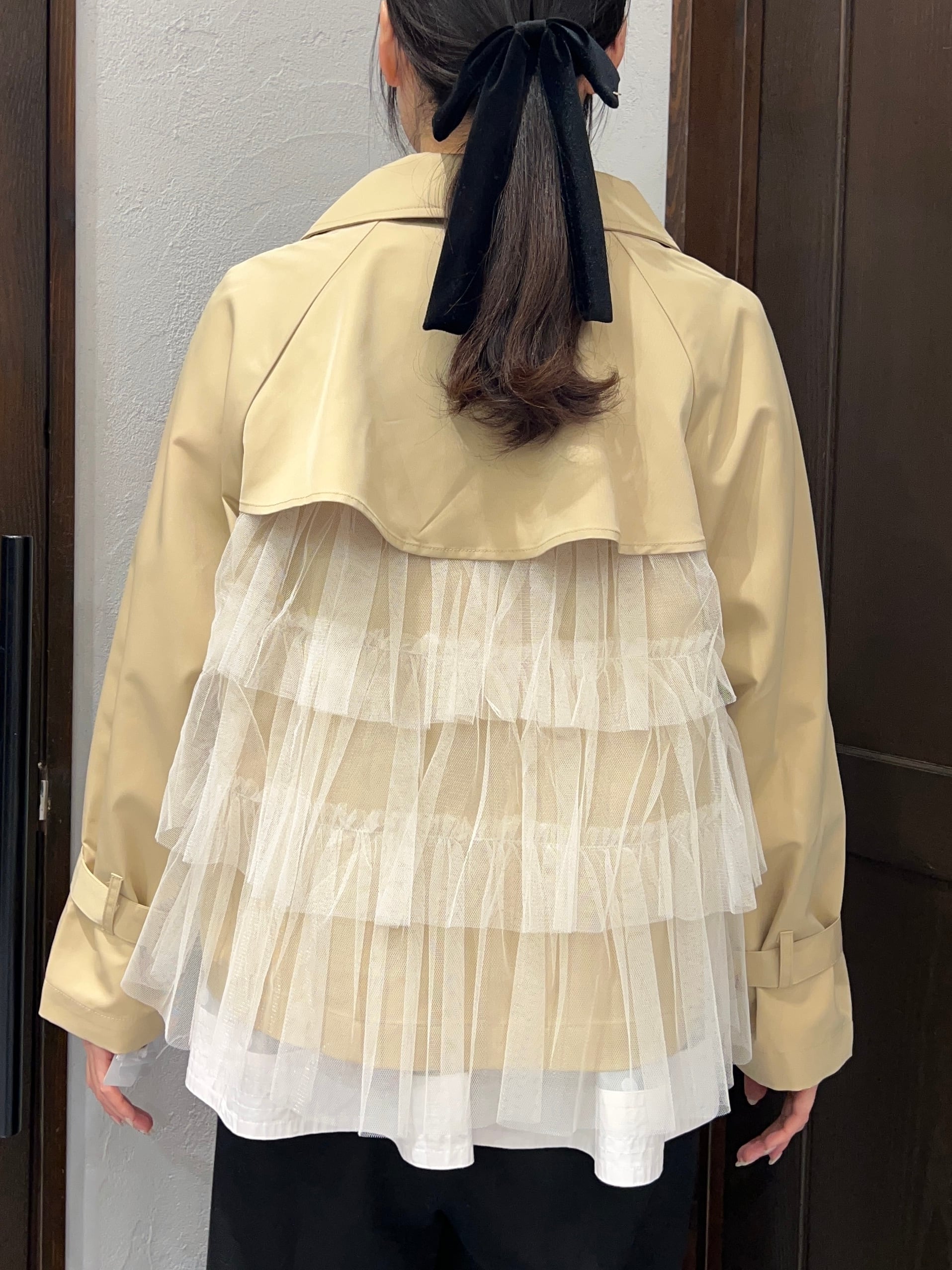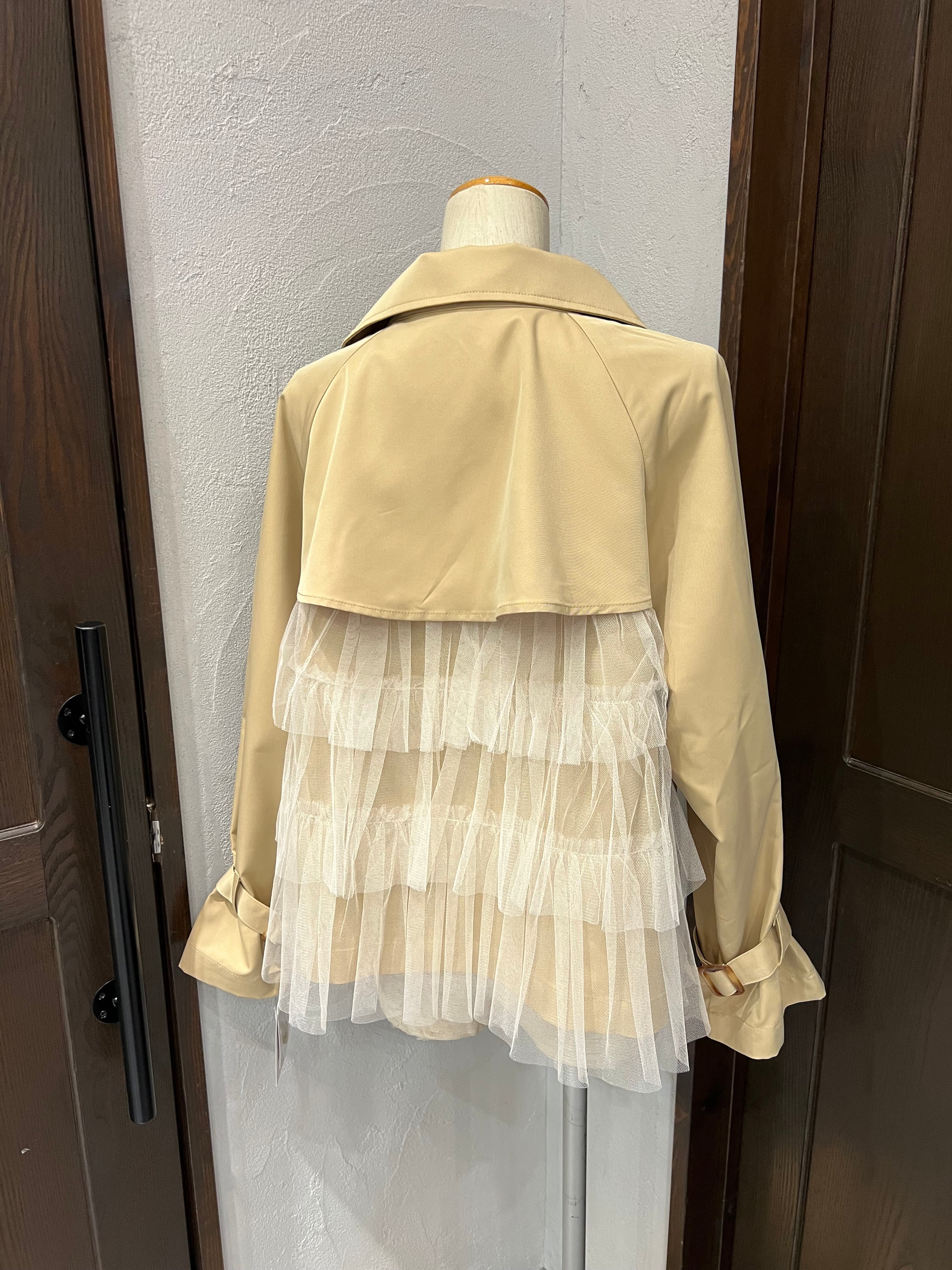 【限定1枚★】botanical/後ろチュールフリルショートトレンチジャケット