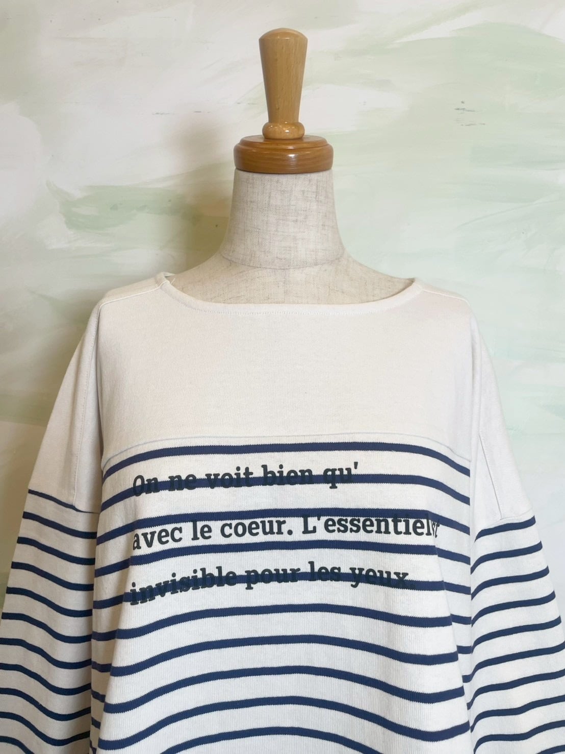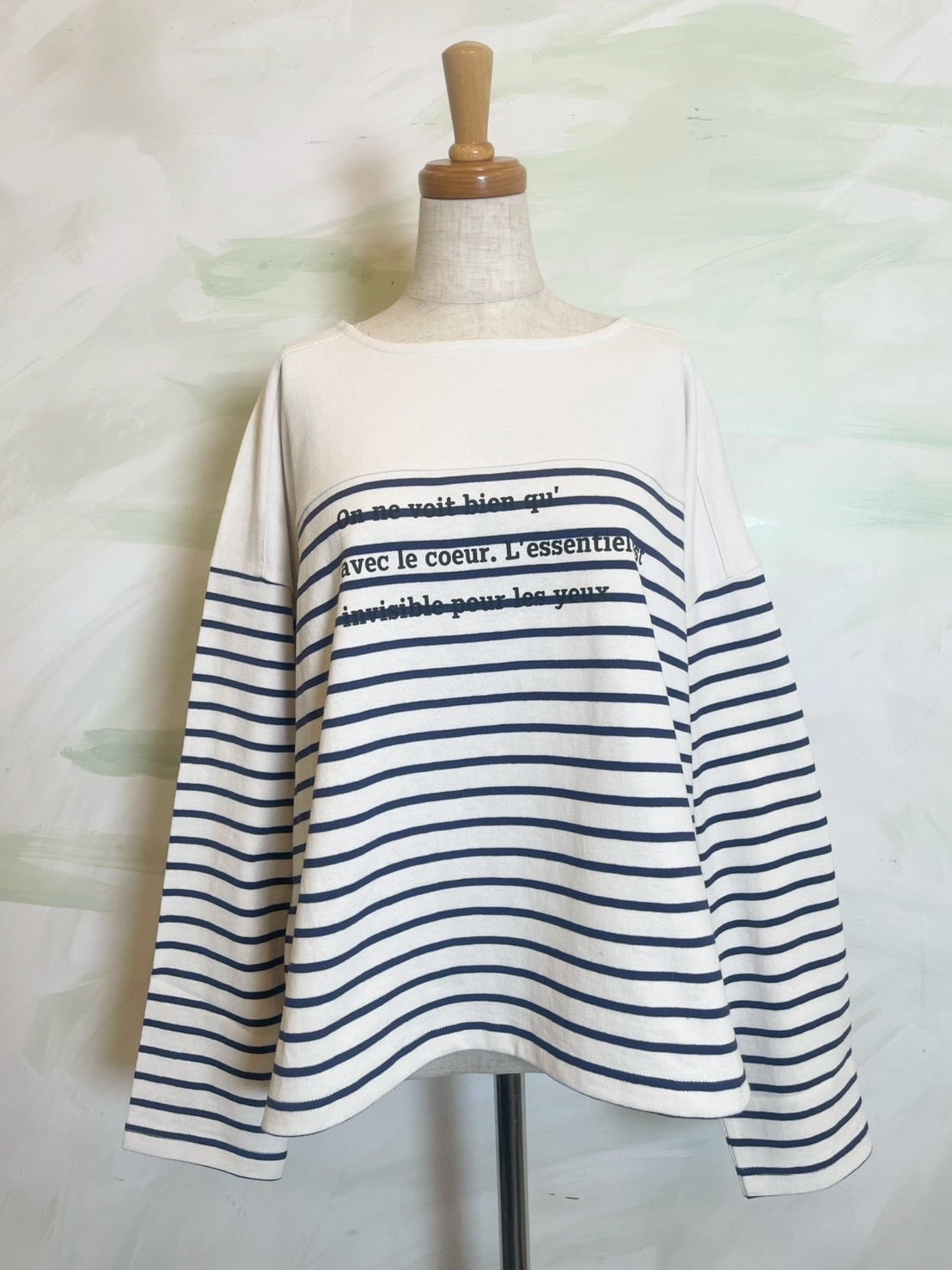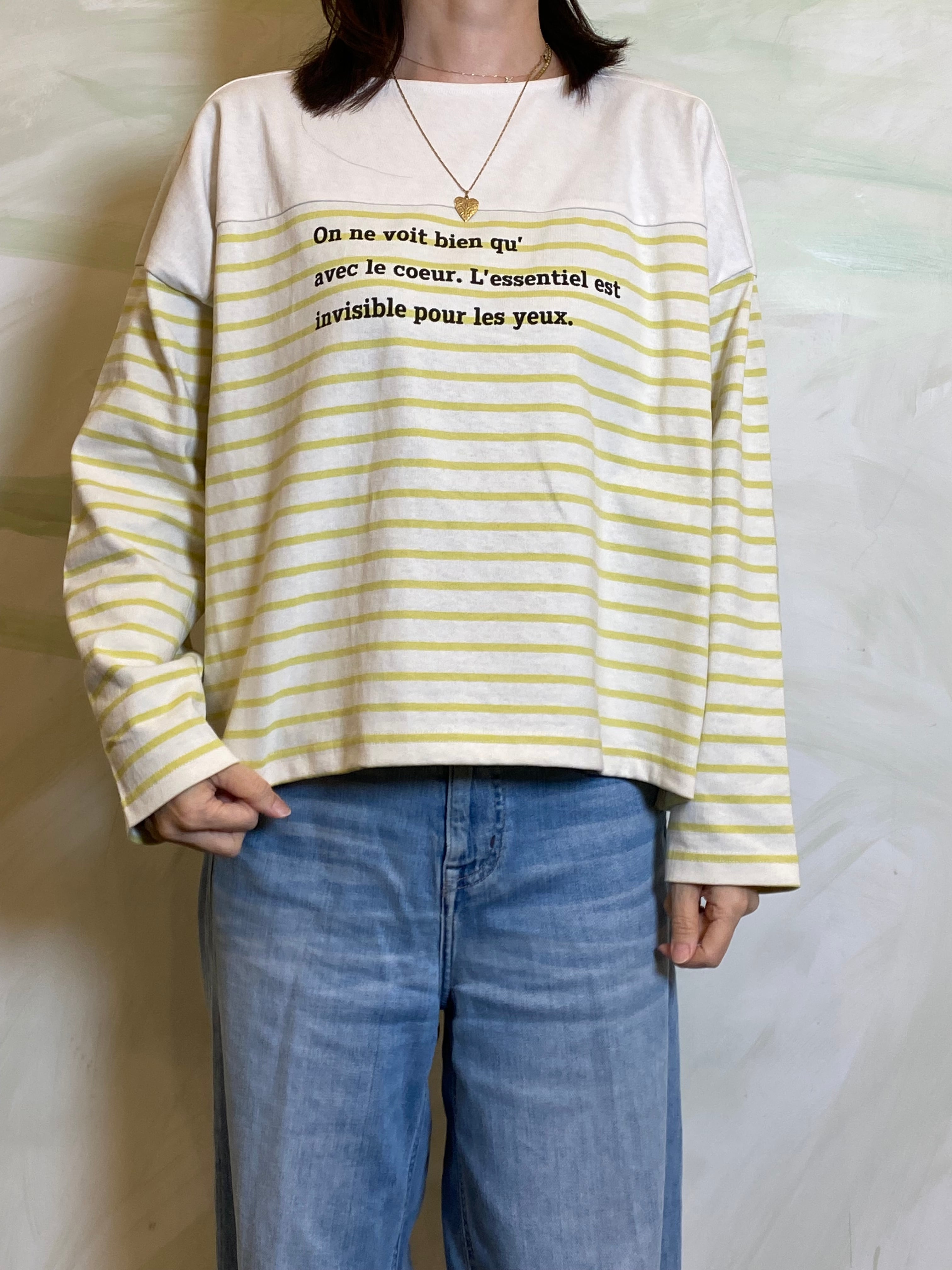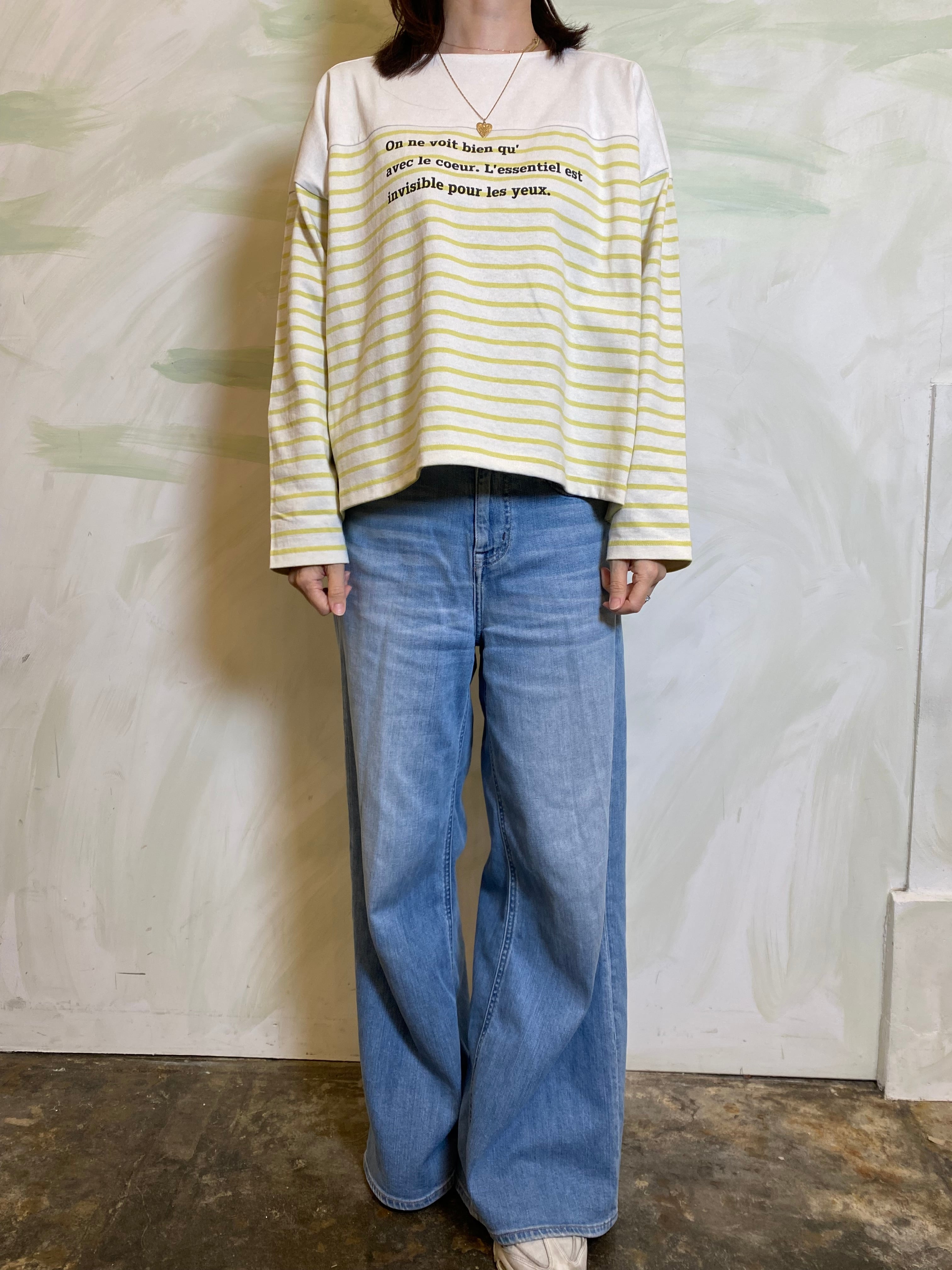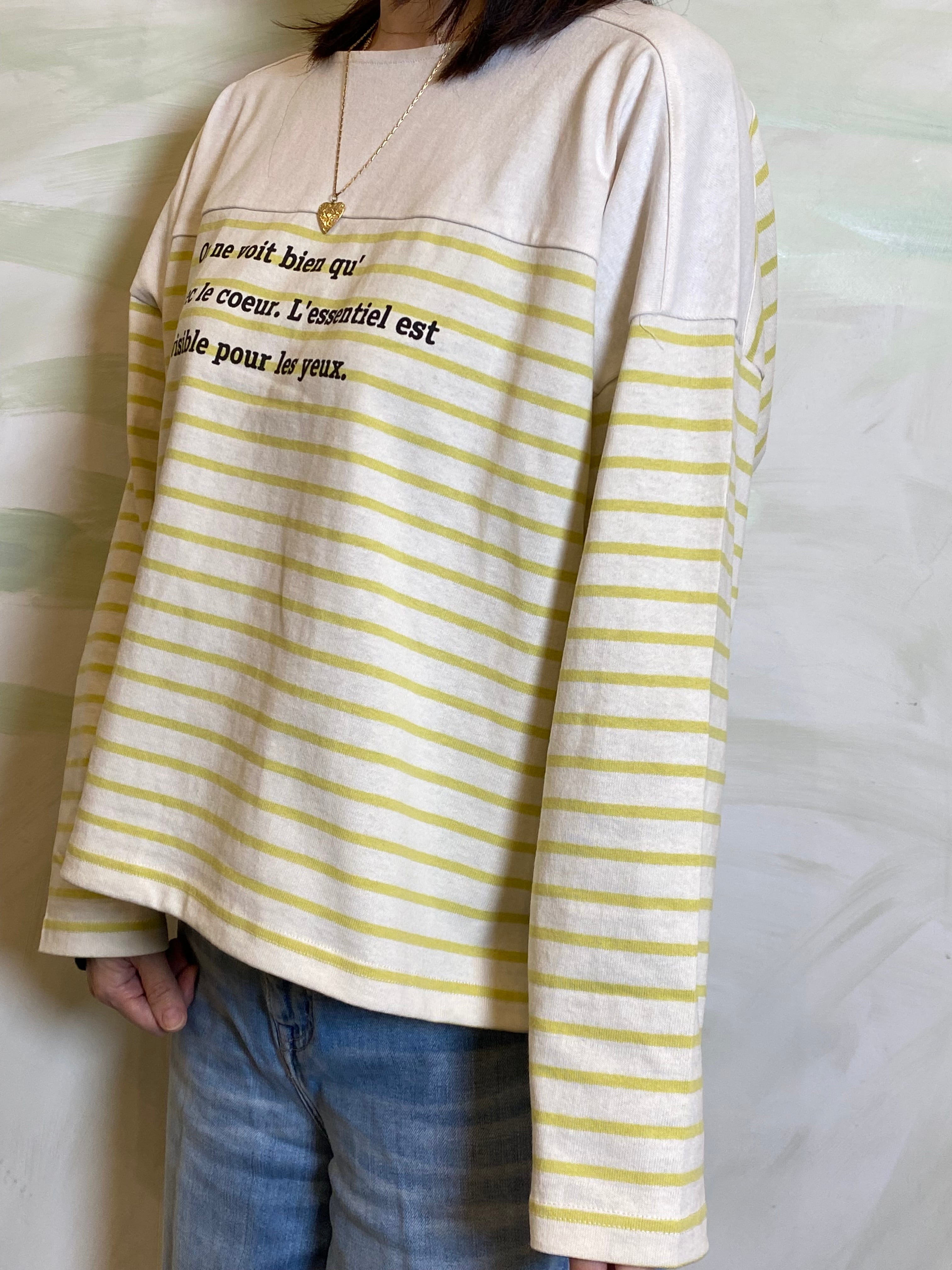 フレンチカジュアルの定番であるパネルボーダーに、遊び心のあるロゴプリントを施したバスクTシャツです。