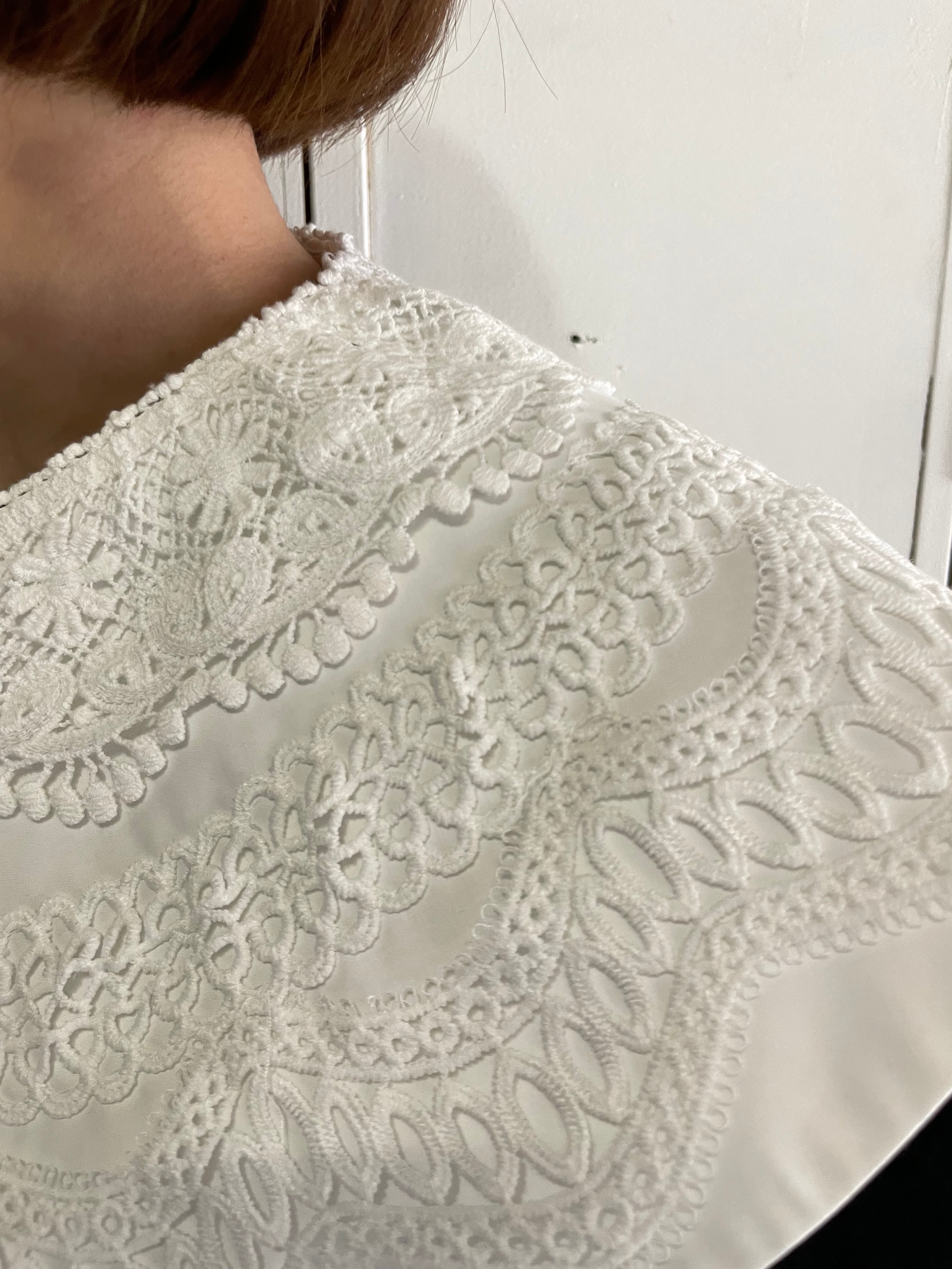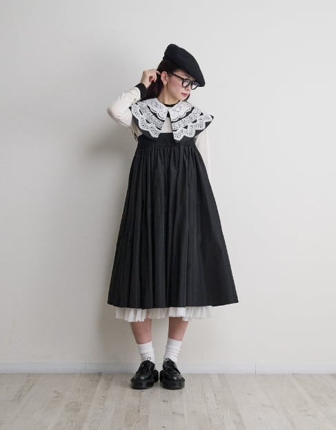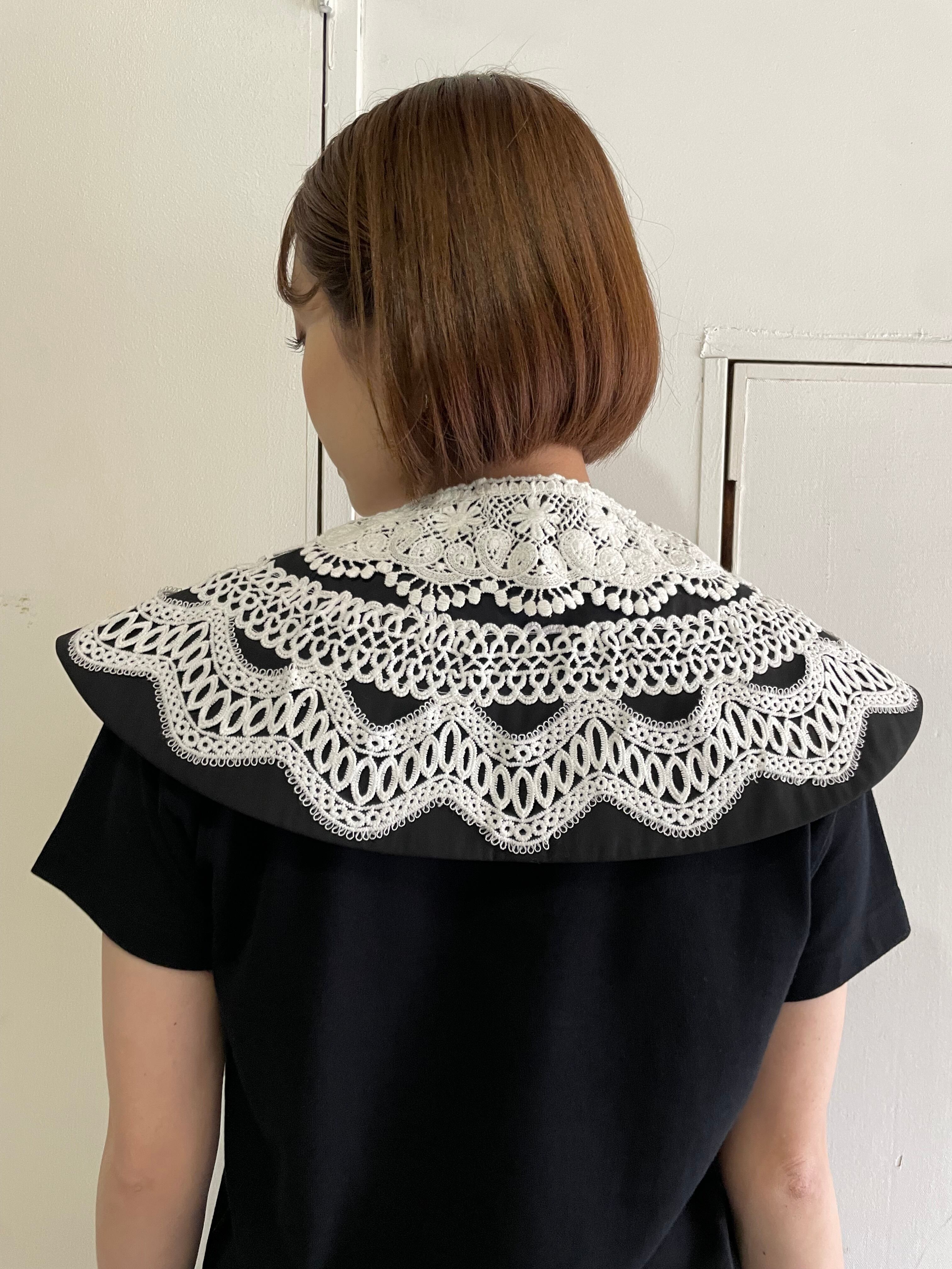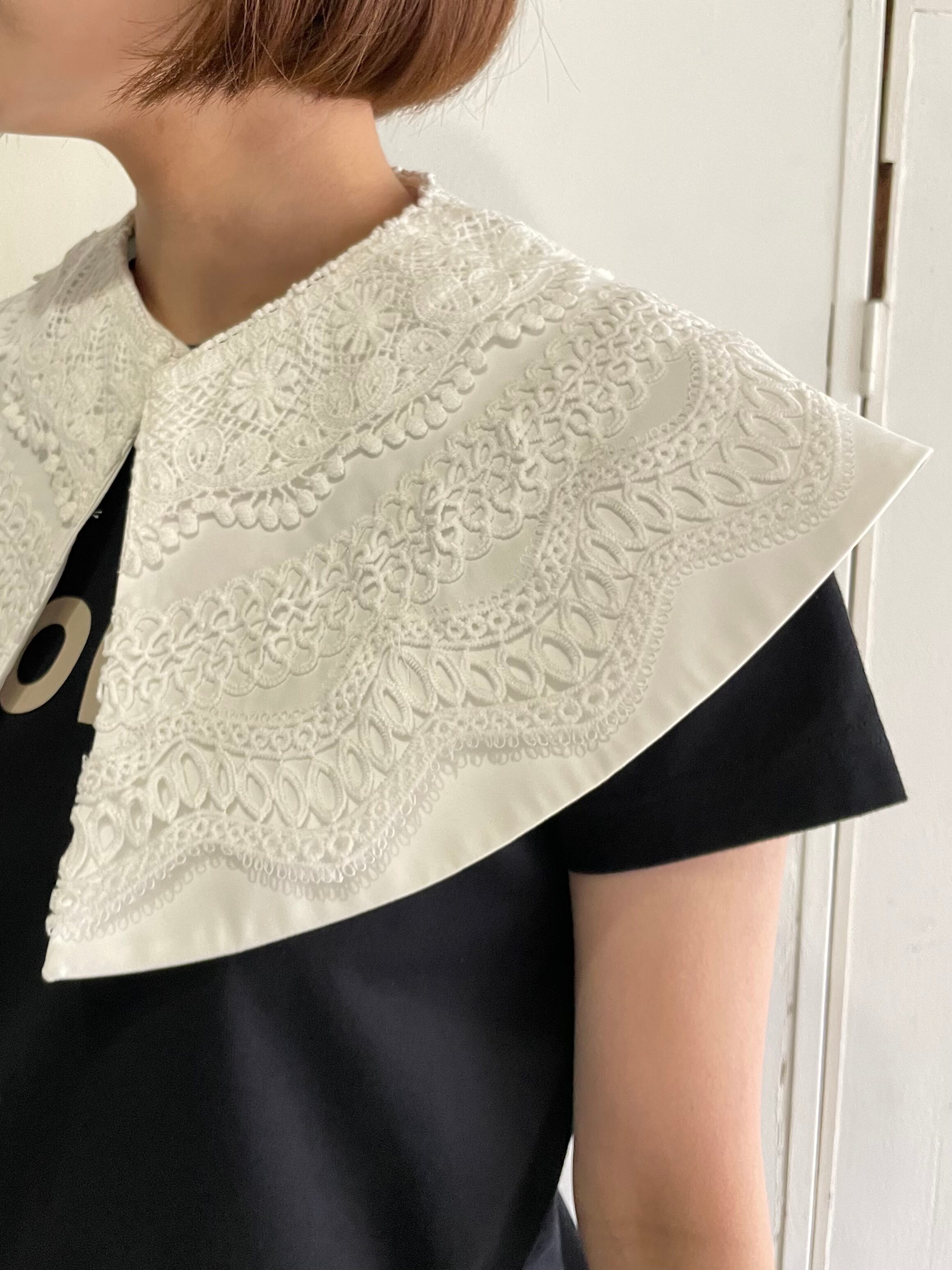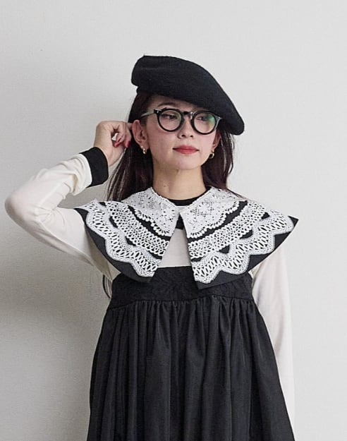 多様なスタイリングが可能なこの付け衿は、同時に着回し力も兼ね備えています。シンプルな装いから、ちょっとしたお出かけにもおすすめのスタイルに変化させる一着です。