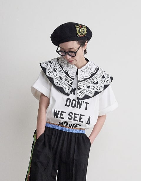シンプルなTシャツやシャツとのコーディネートにおすすめの付け衿。