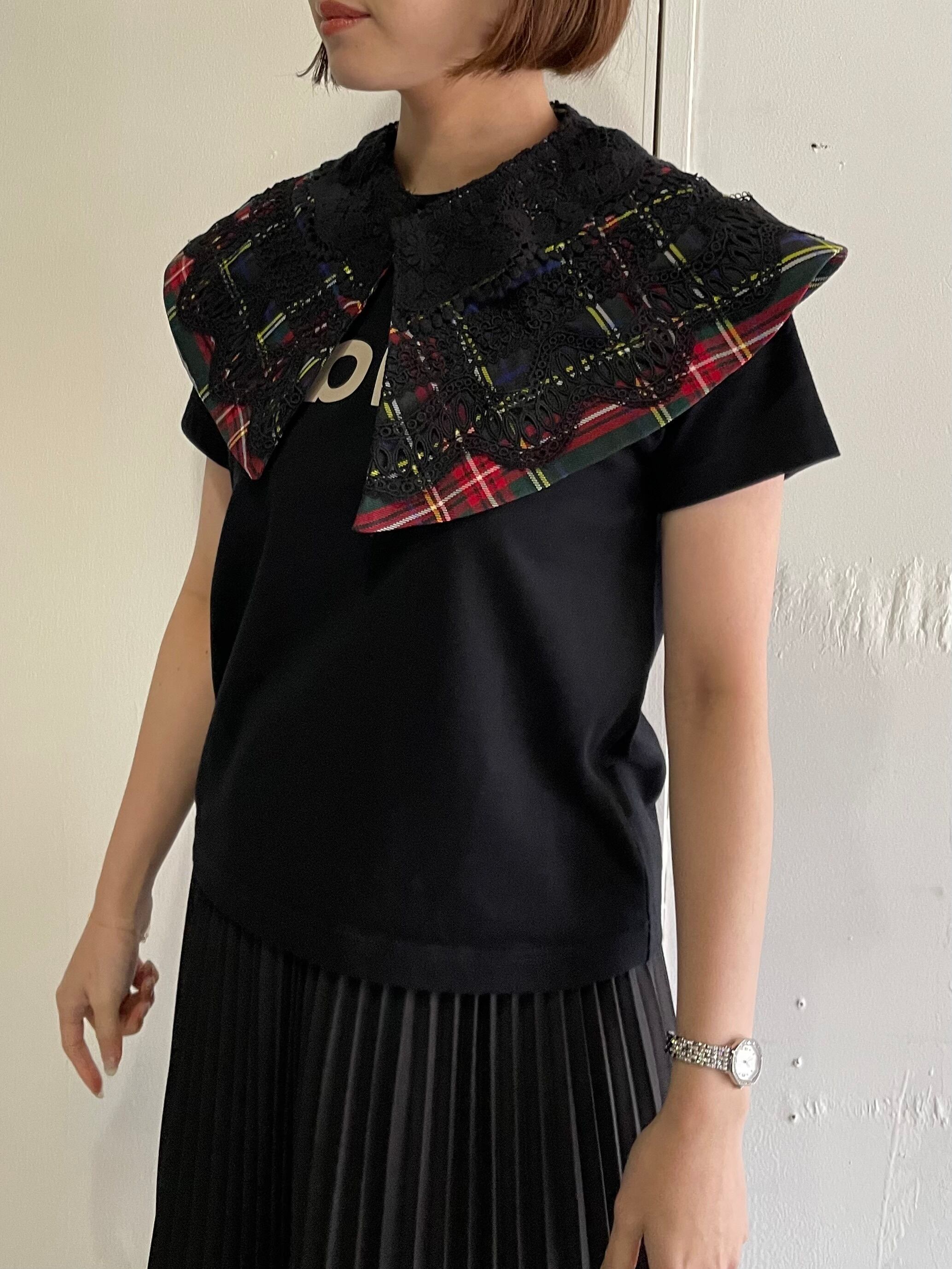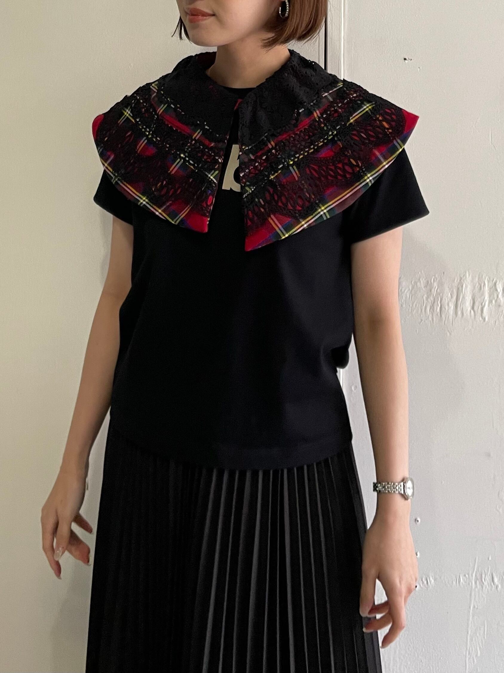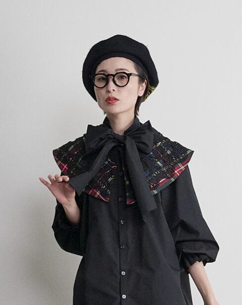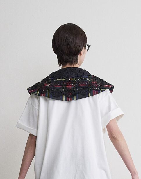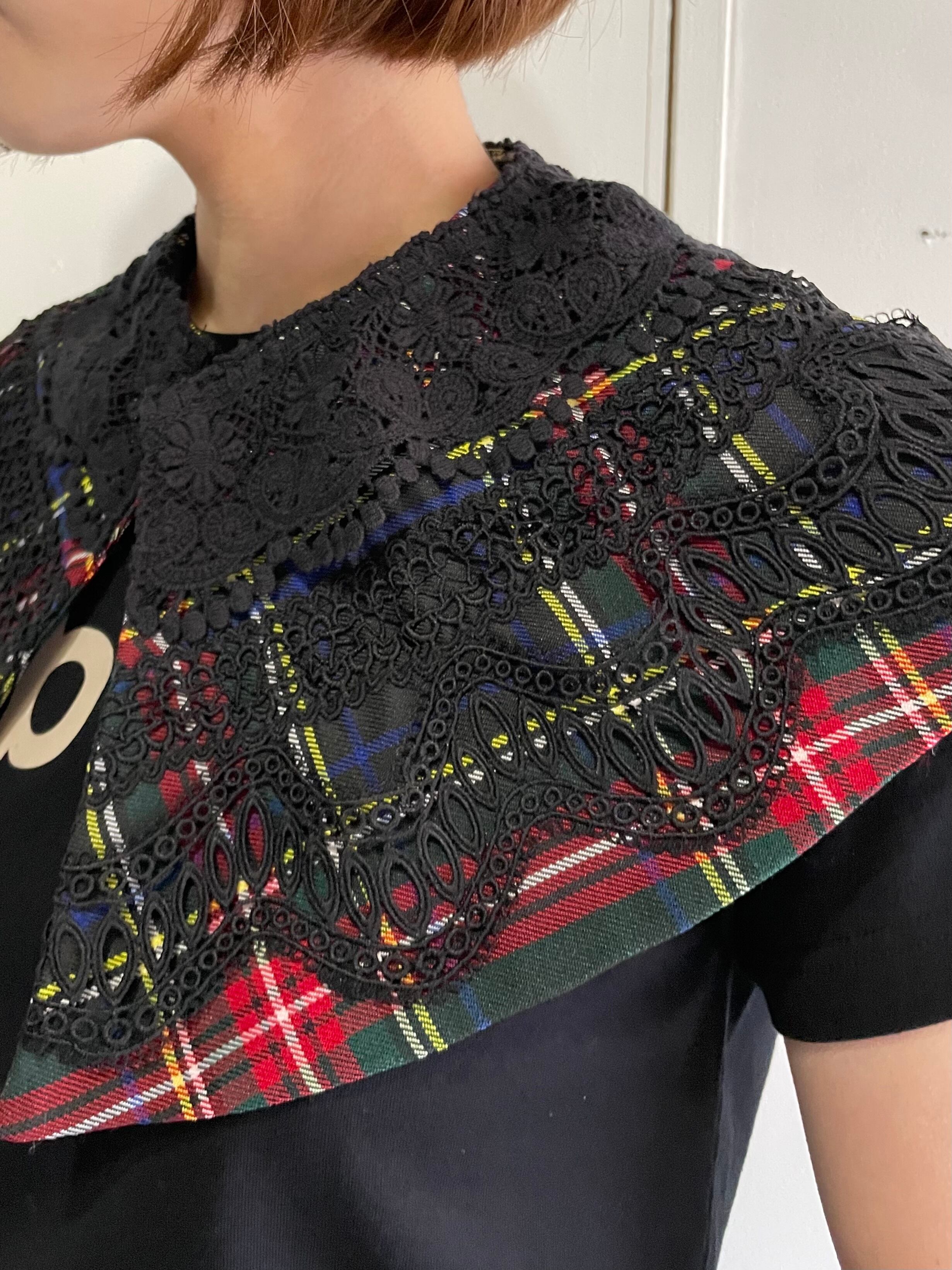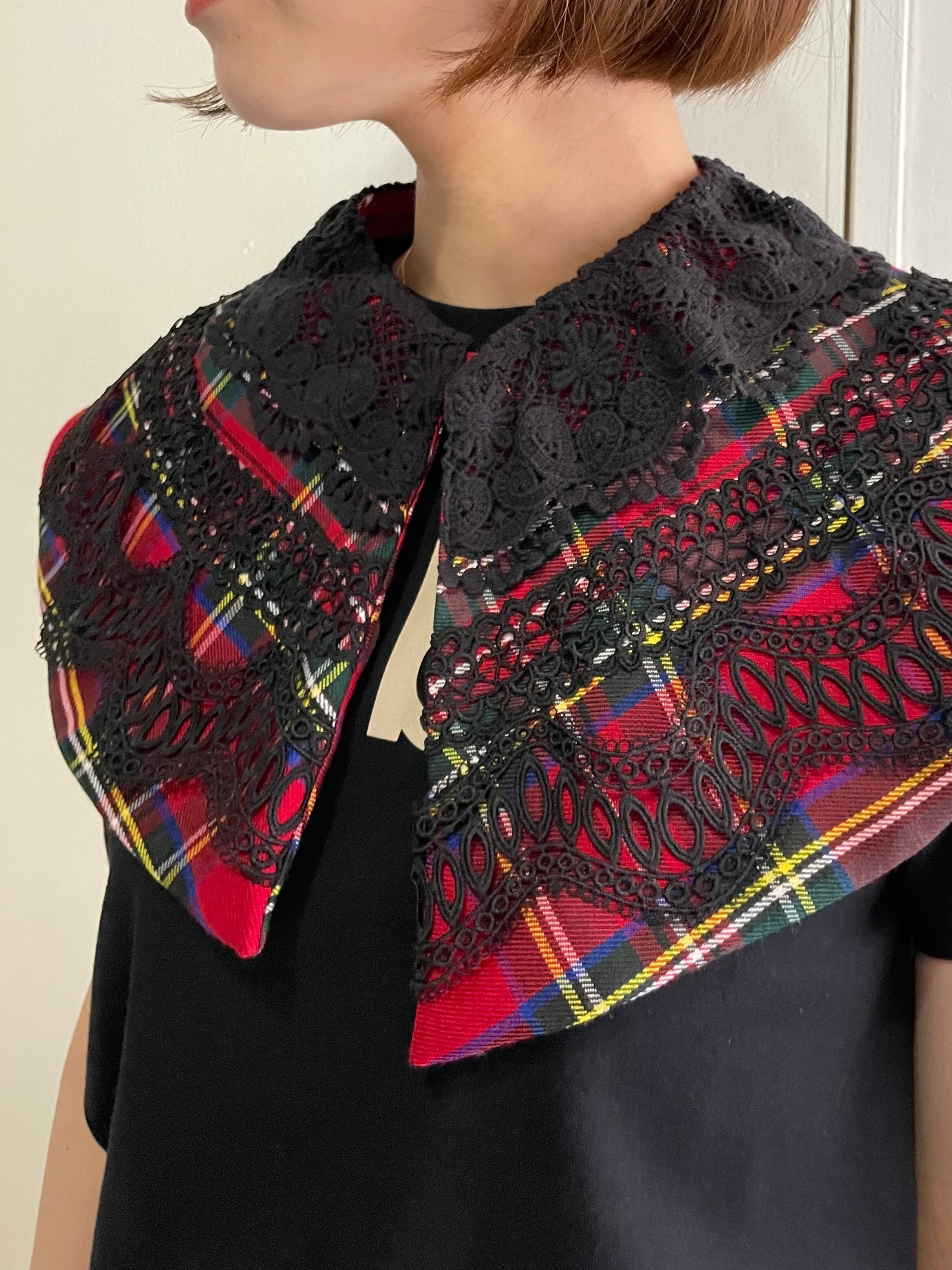 美しいチェック柄と華やかなレースの組み合わせが印象的な付け衿です。