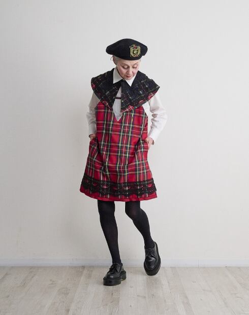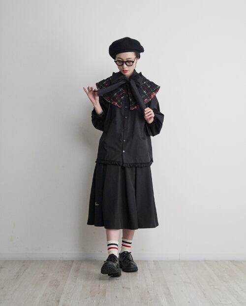 チェックとレースの絶妙なコンビネーションが、存在感を放つ一着です。