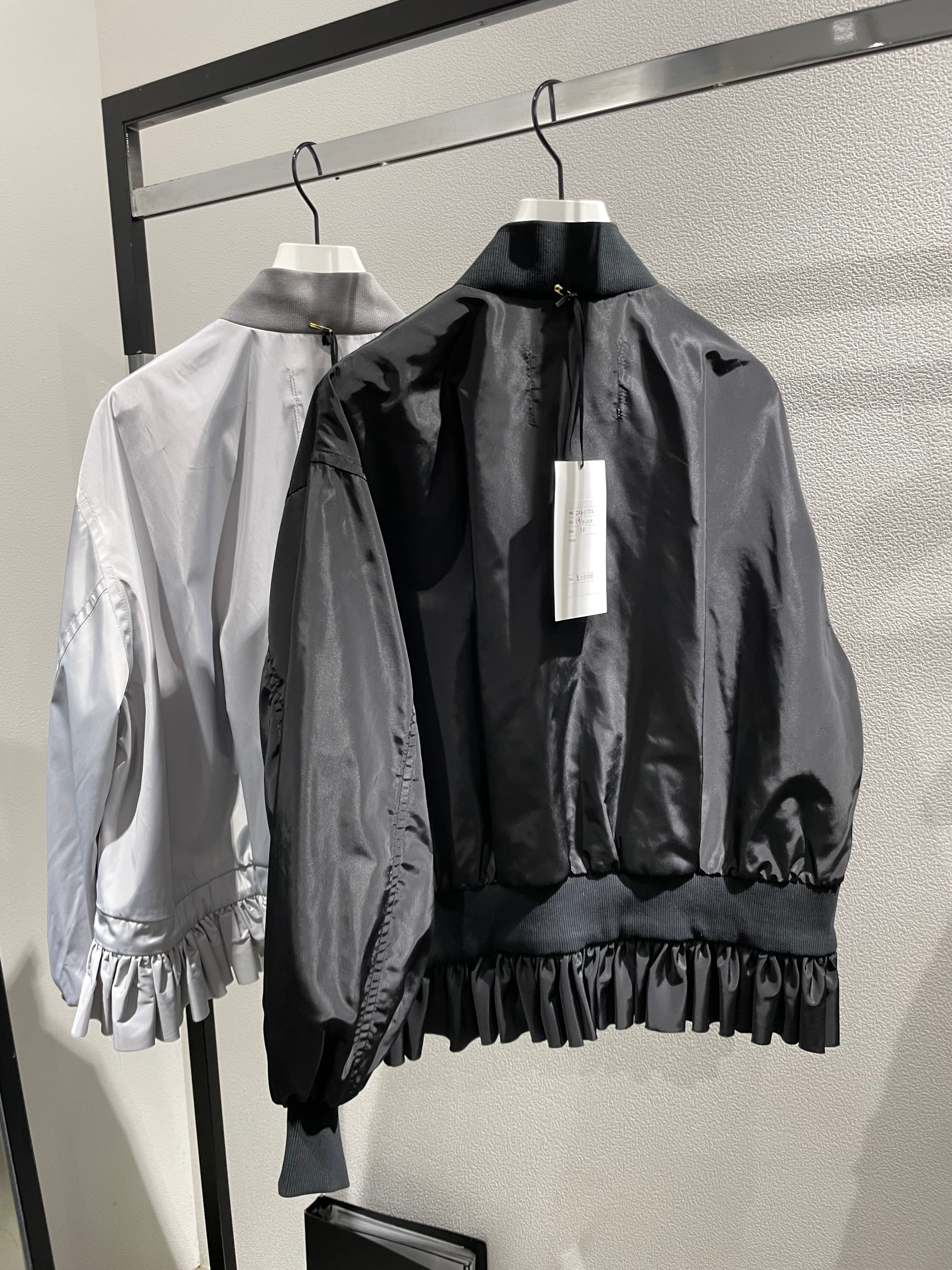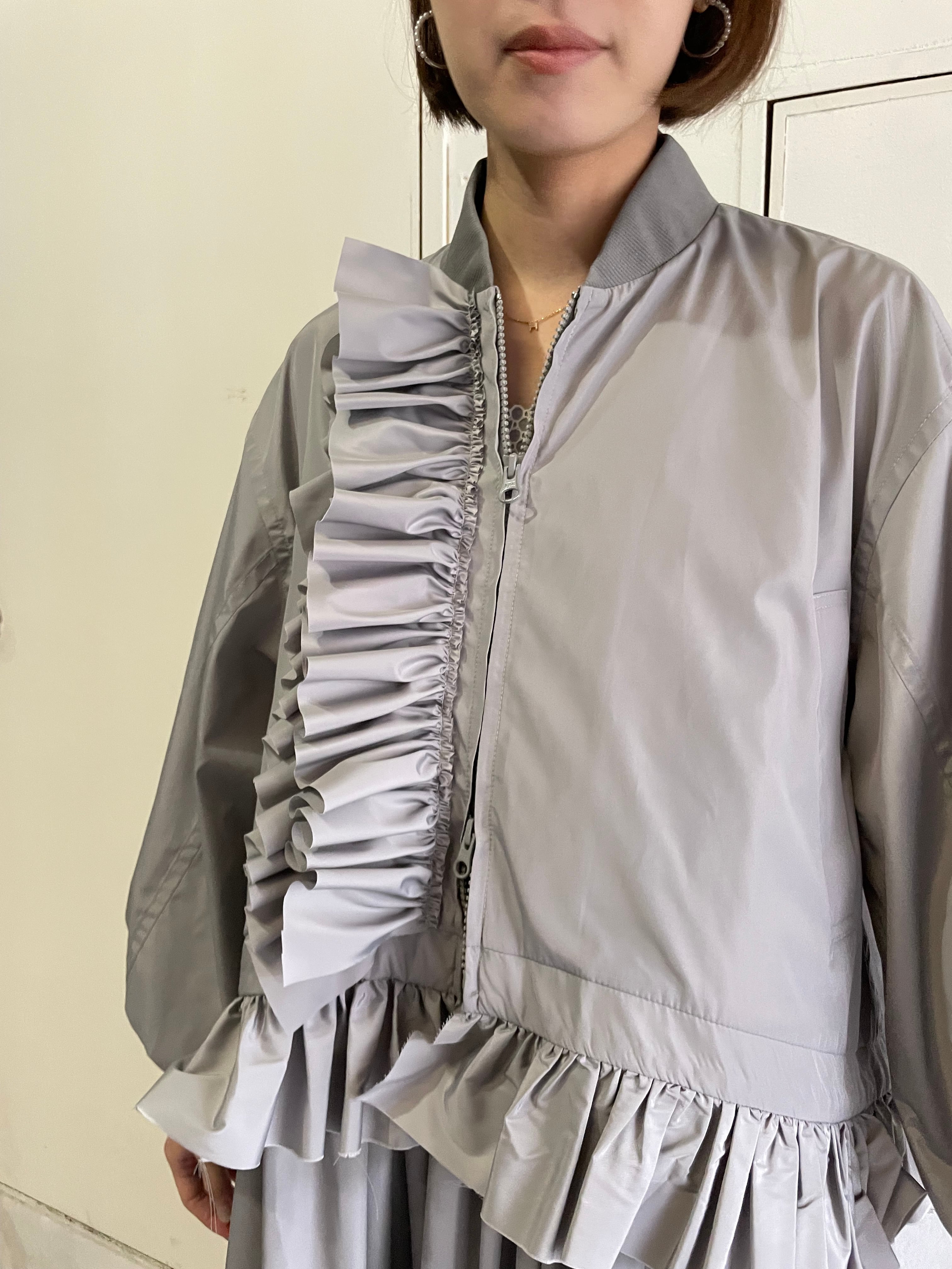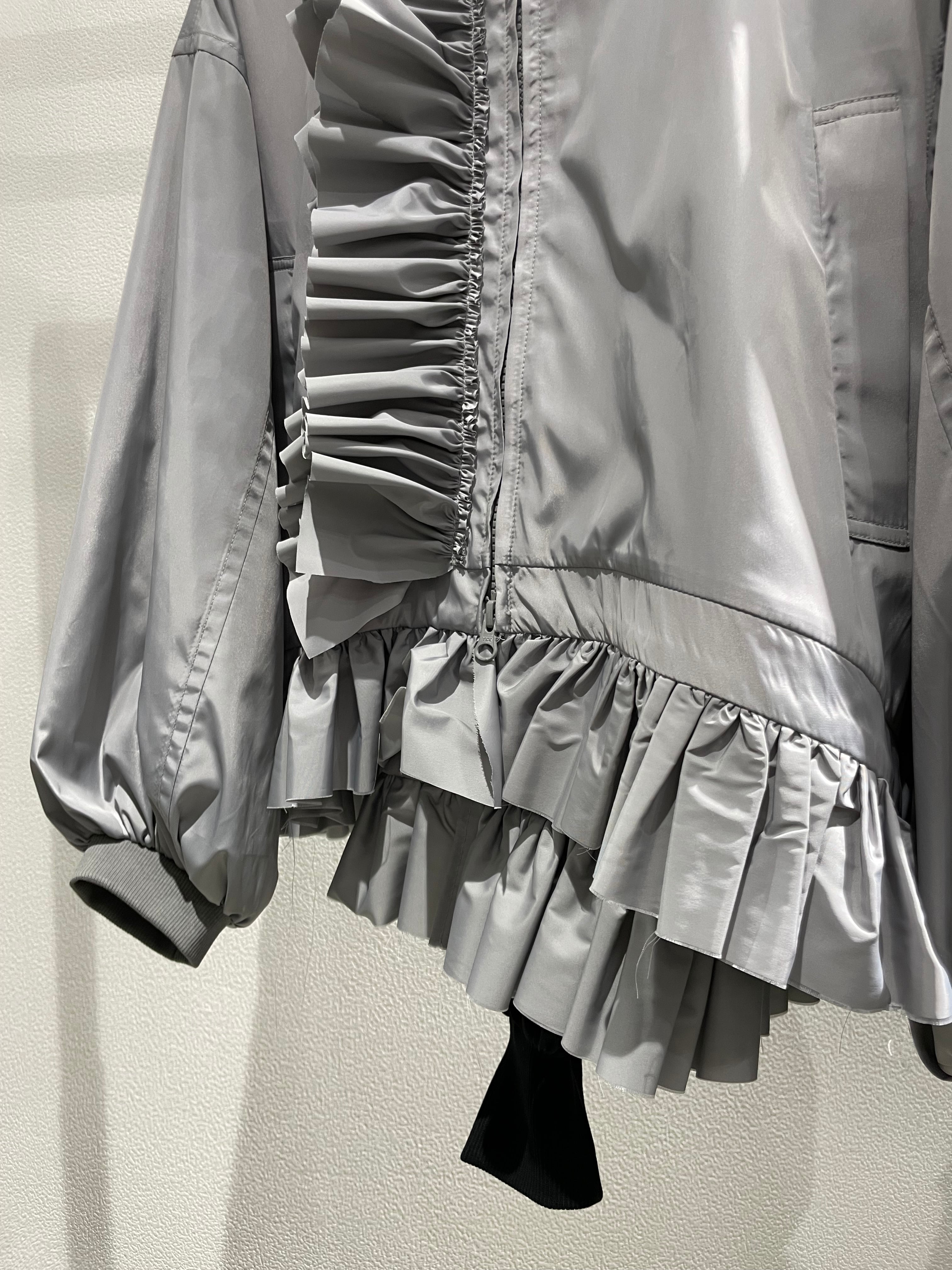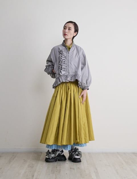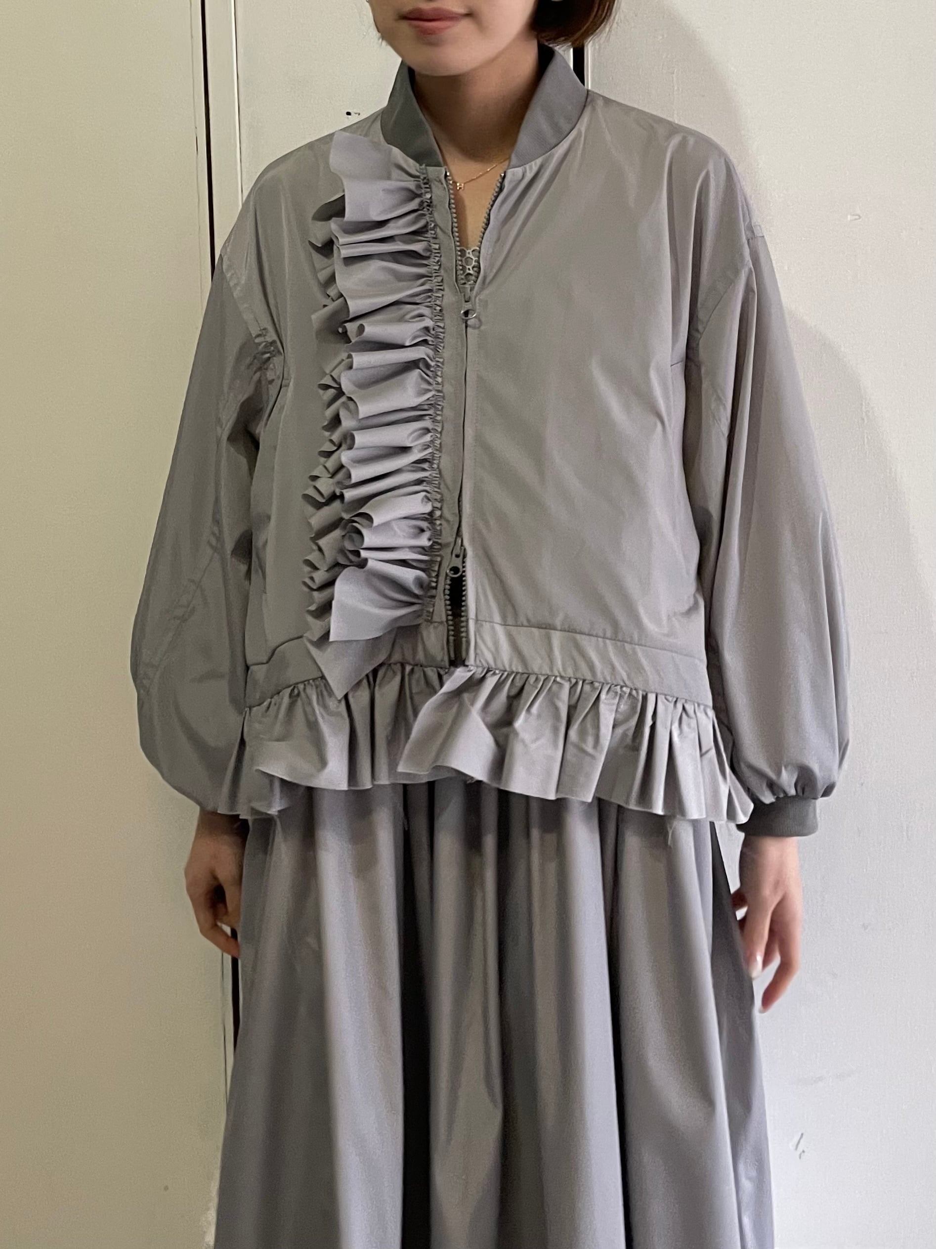裾に広がりのある美しいシルエットが特徴のジャケットです。