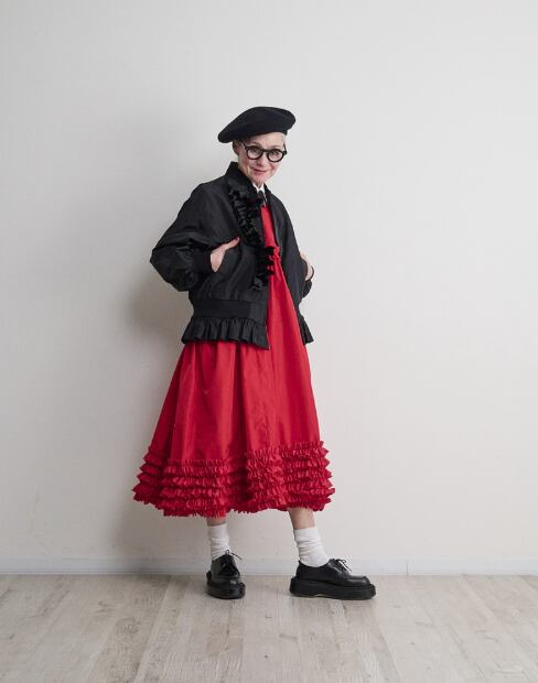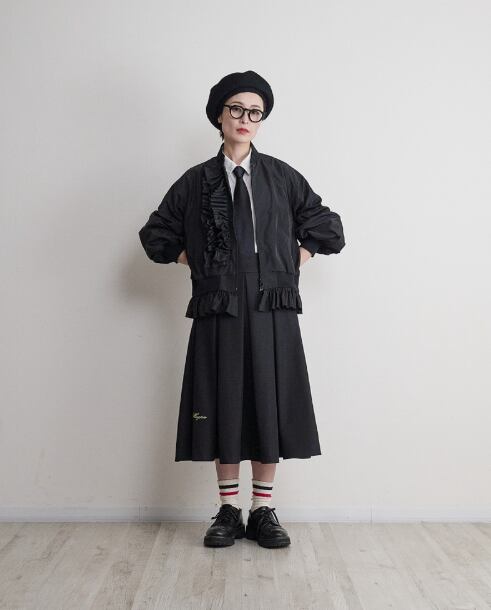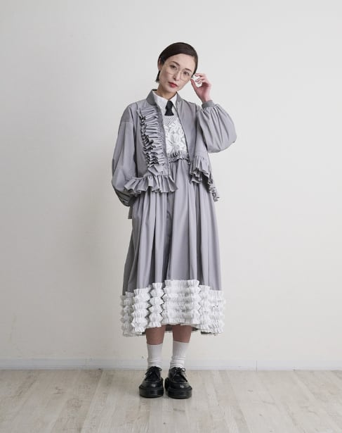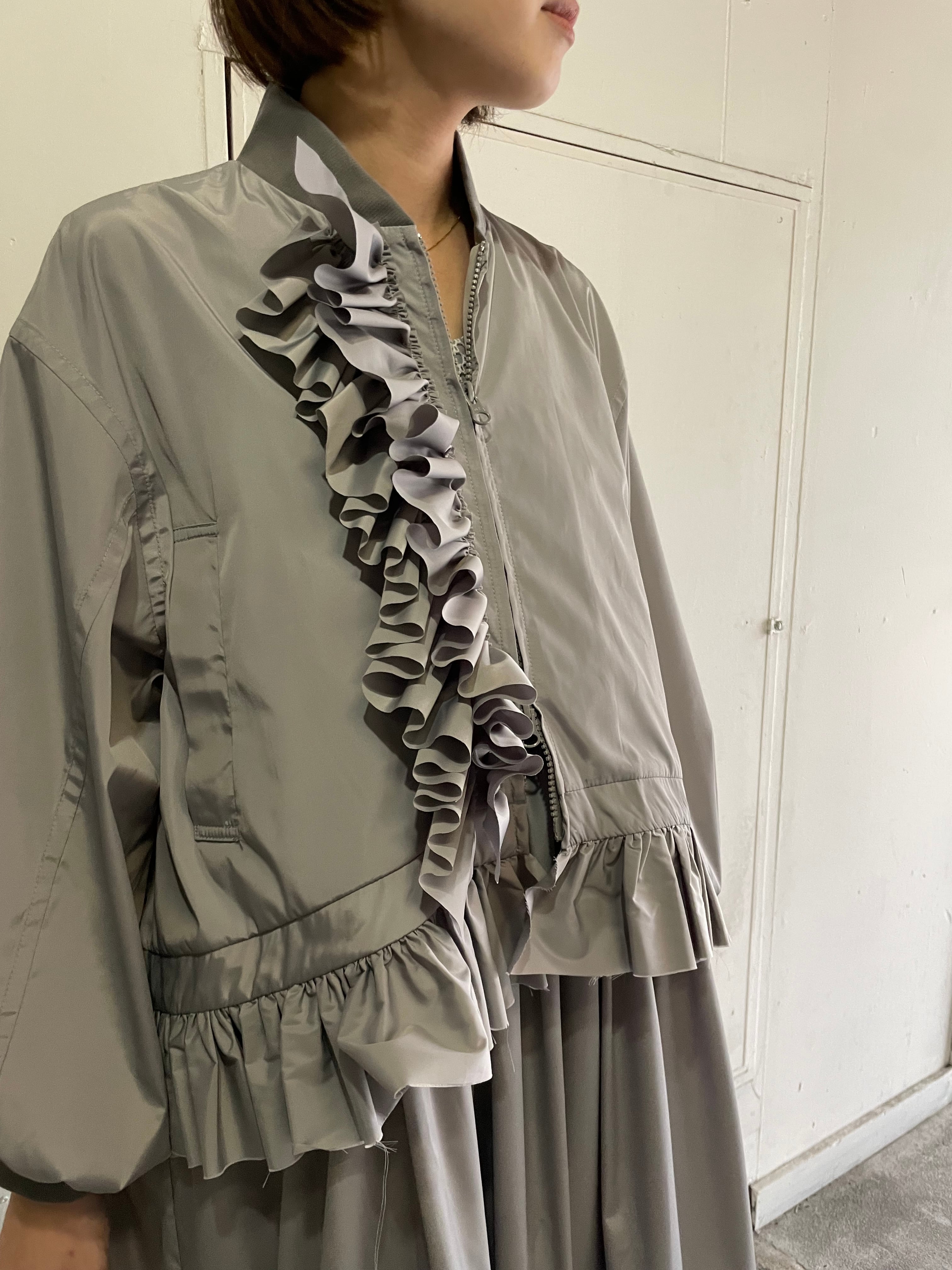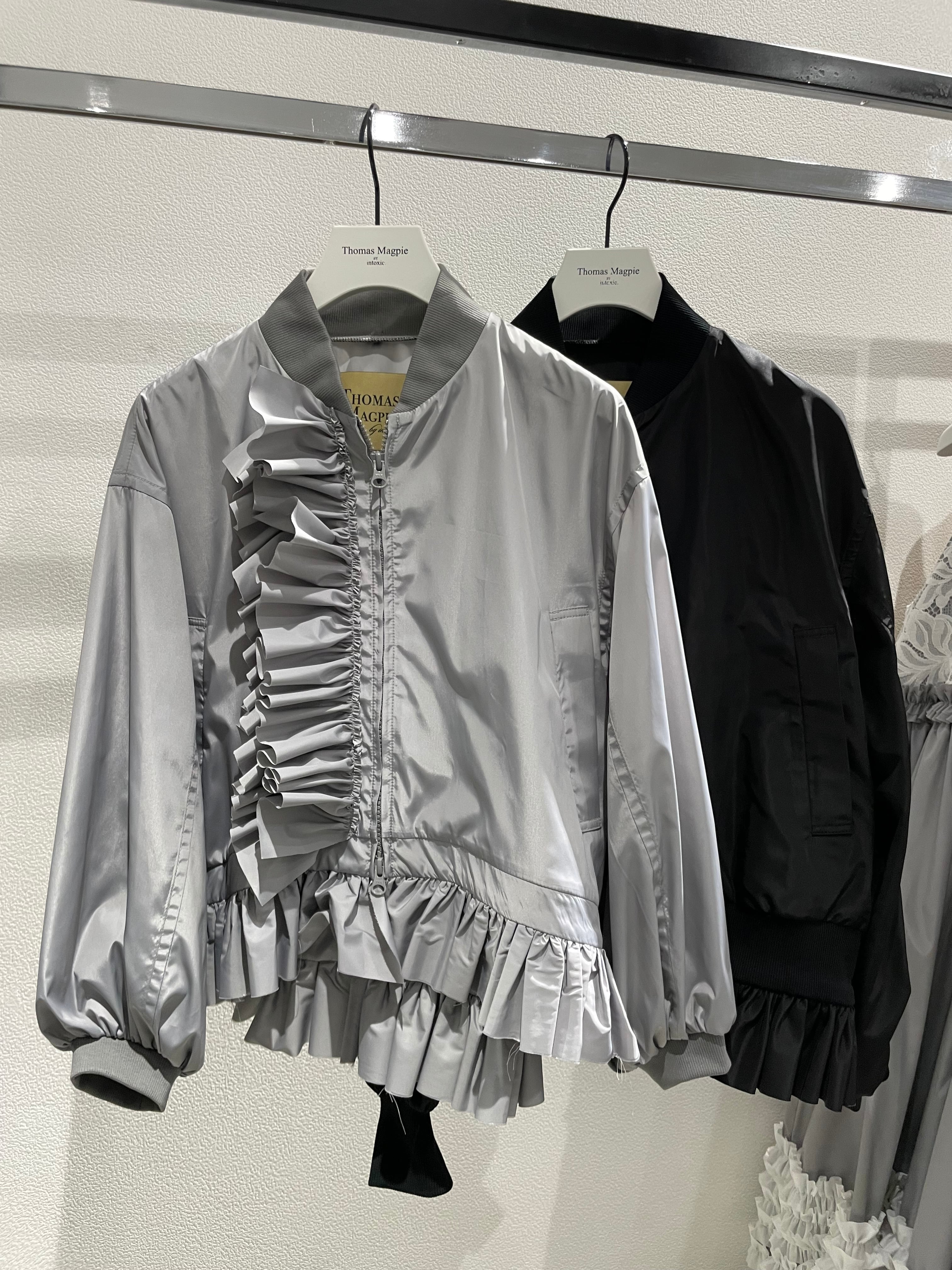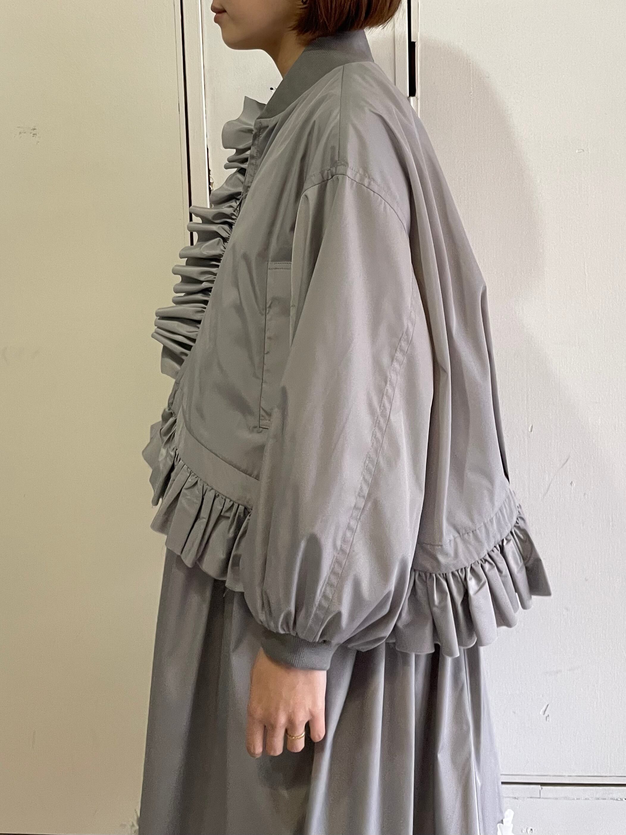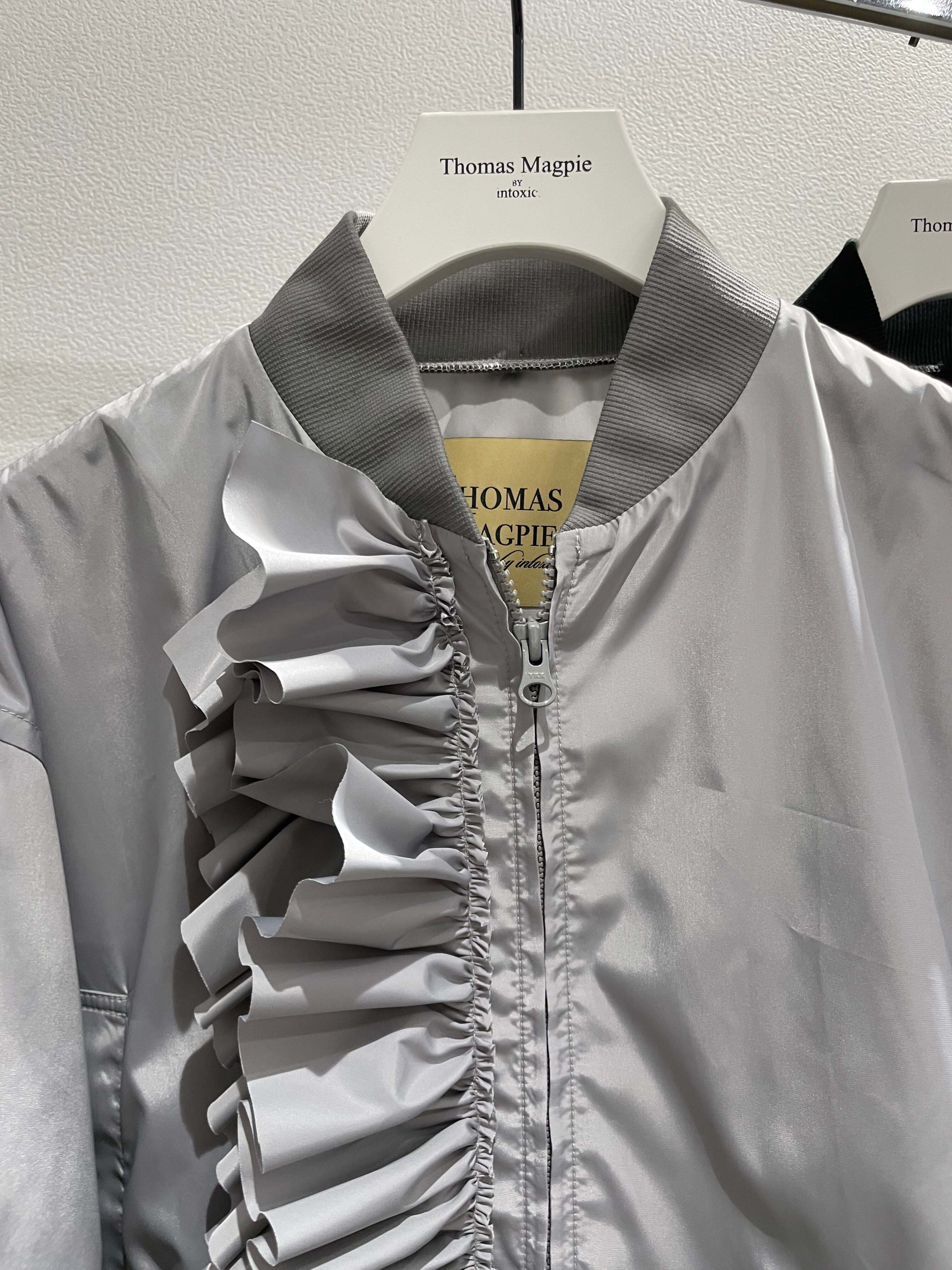 裾に広がりのある美しいシルエットが特徴のジャケットです。