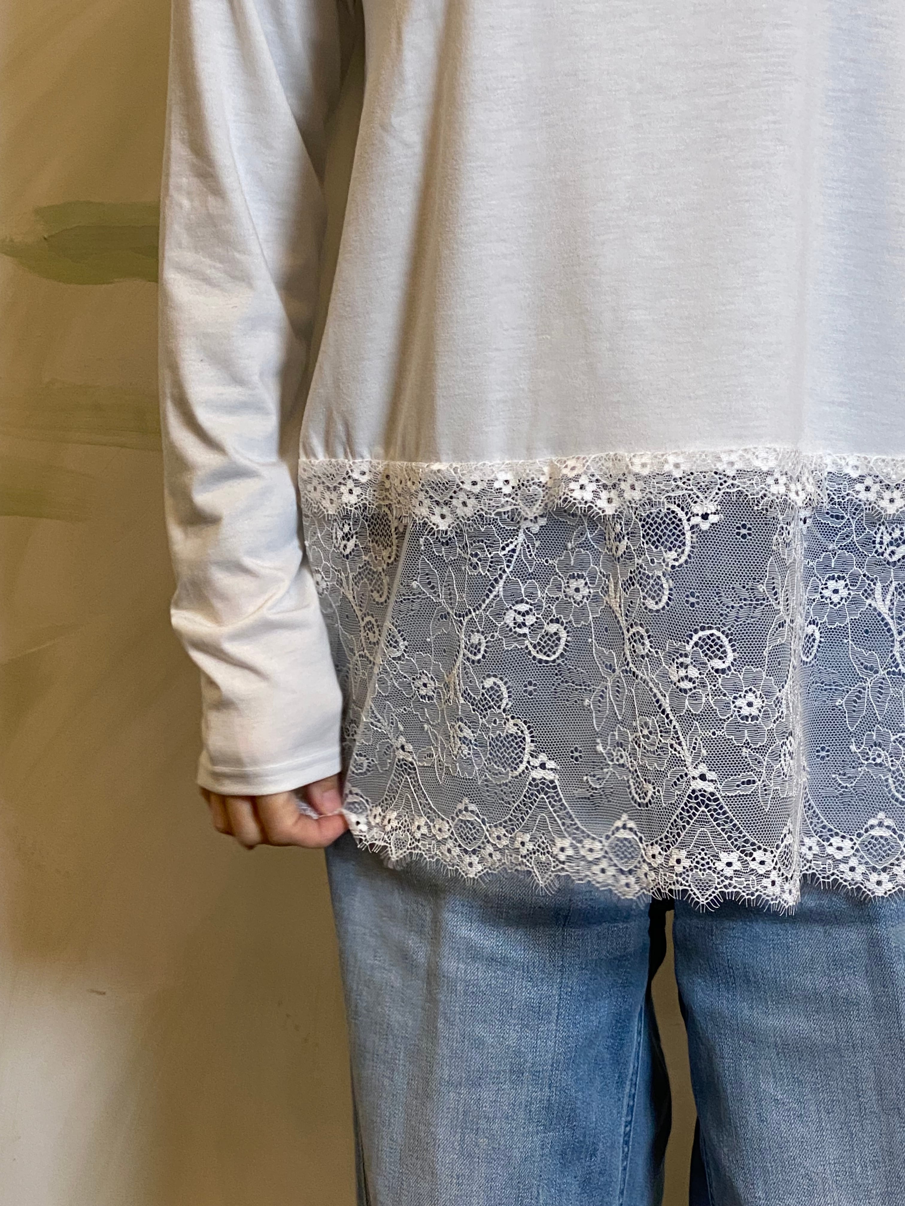 レイヤードで着映える、天竺レース付きプルオーバーが登場
