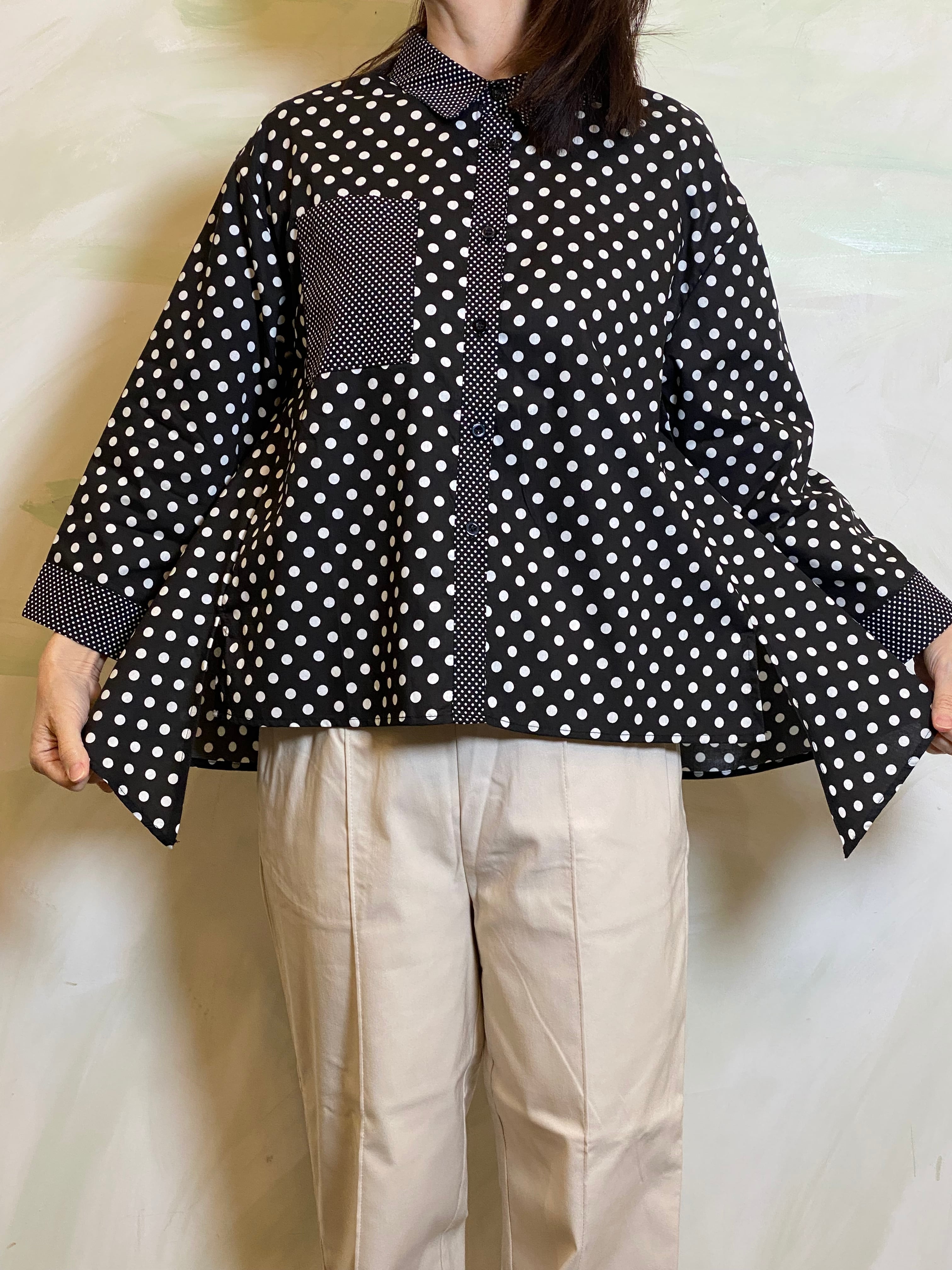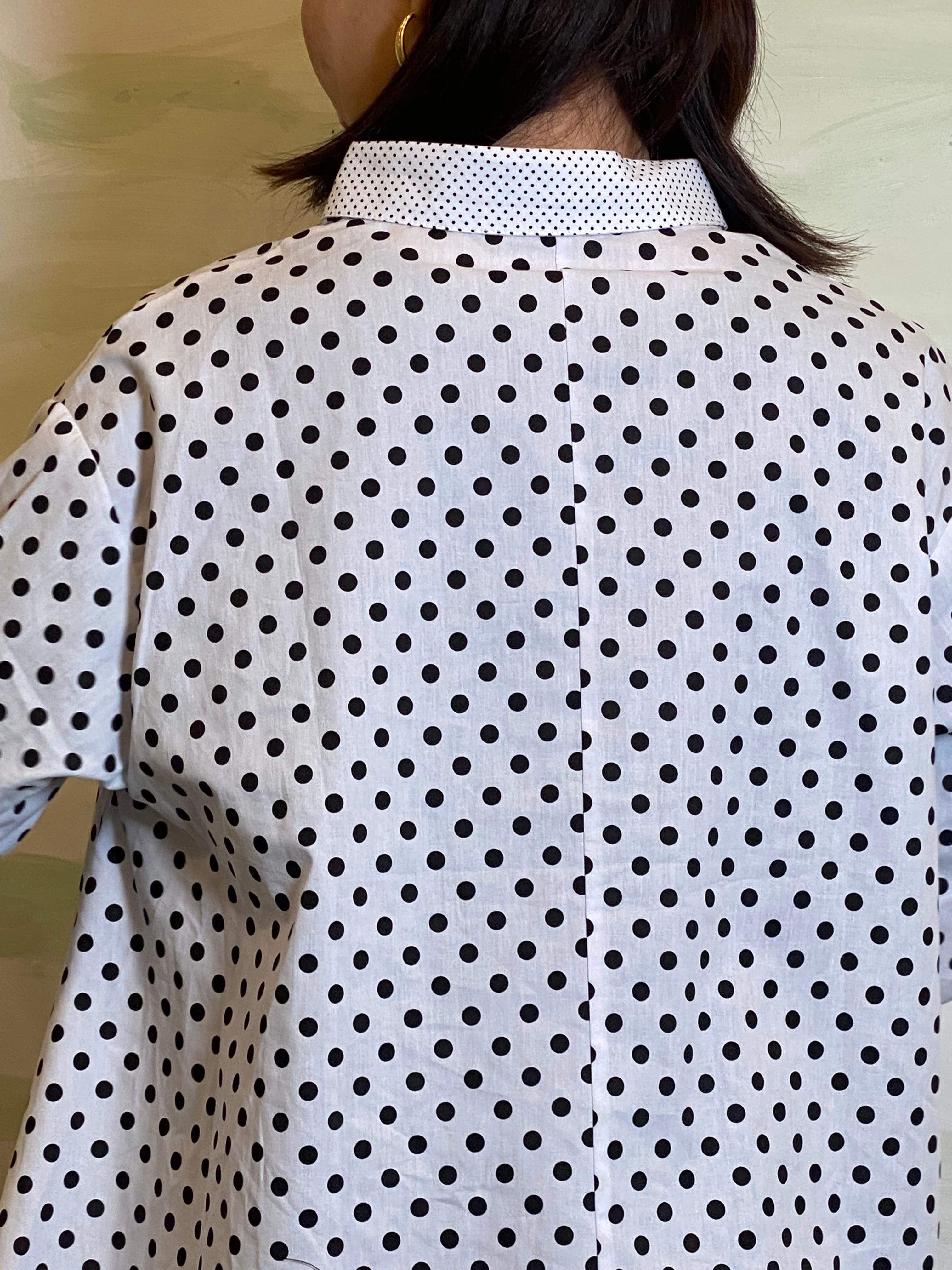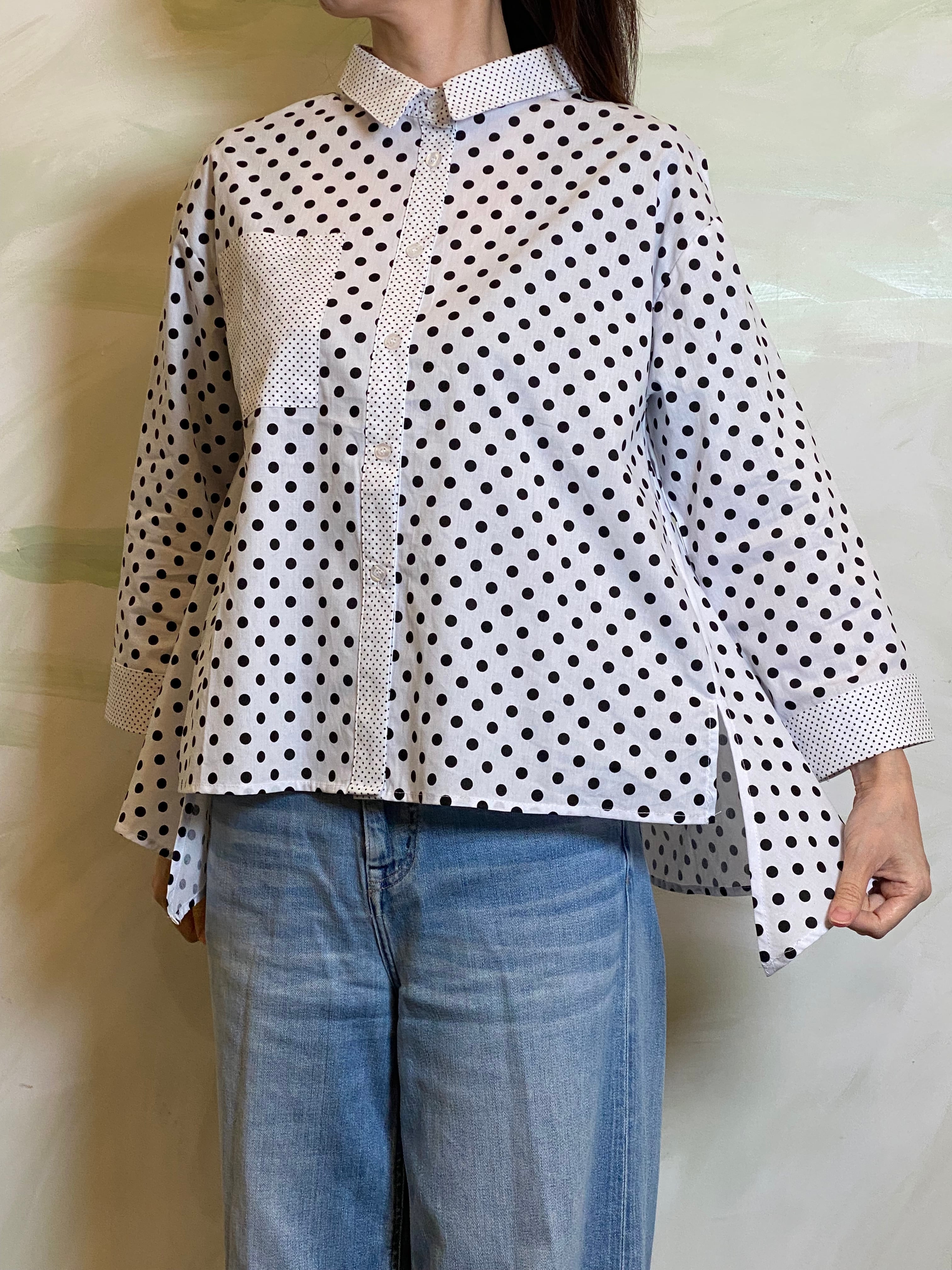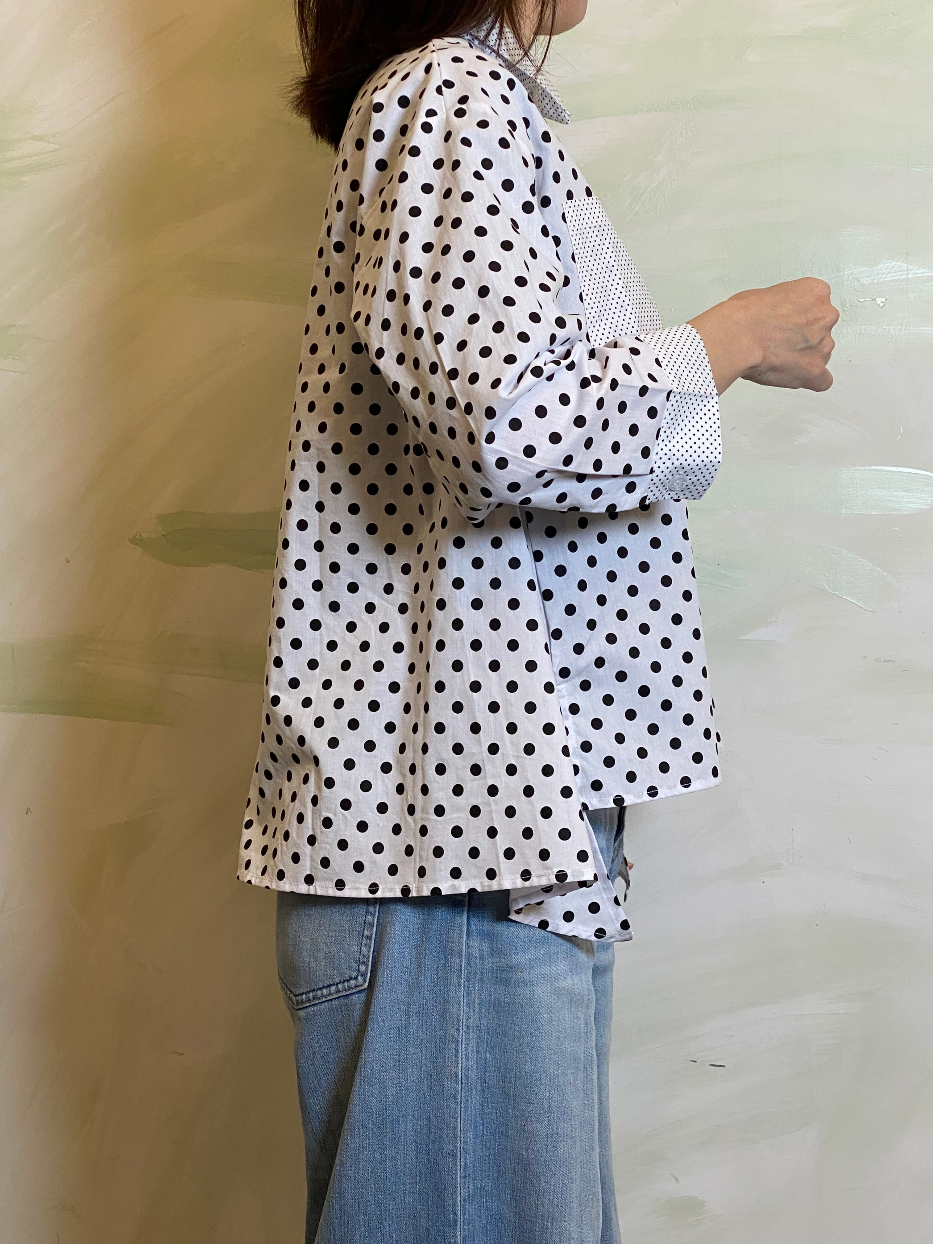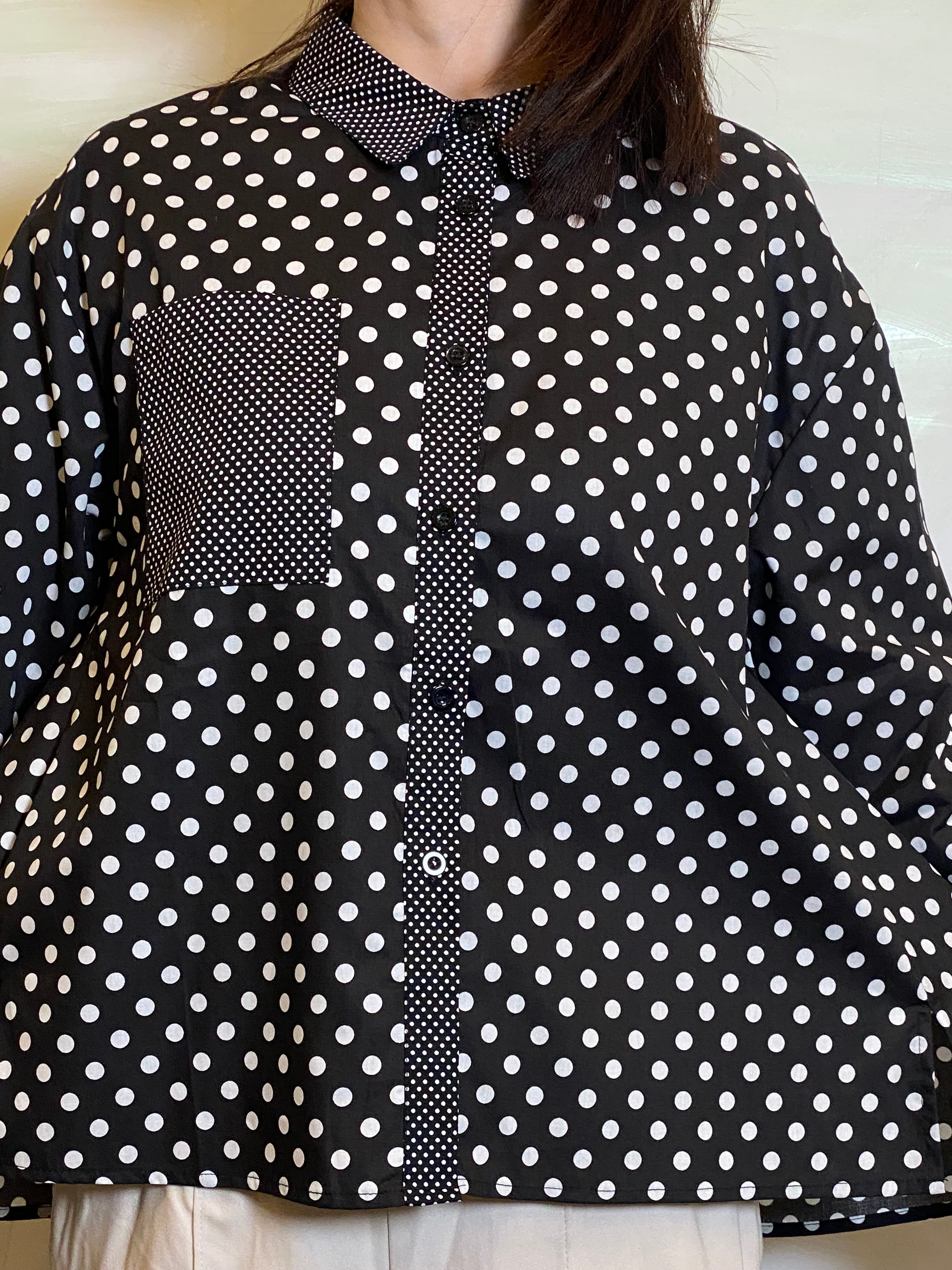 異なる大きさのドットを組み合わせた、遊び心のあるデザインシャツ。