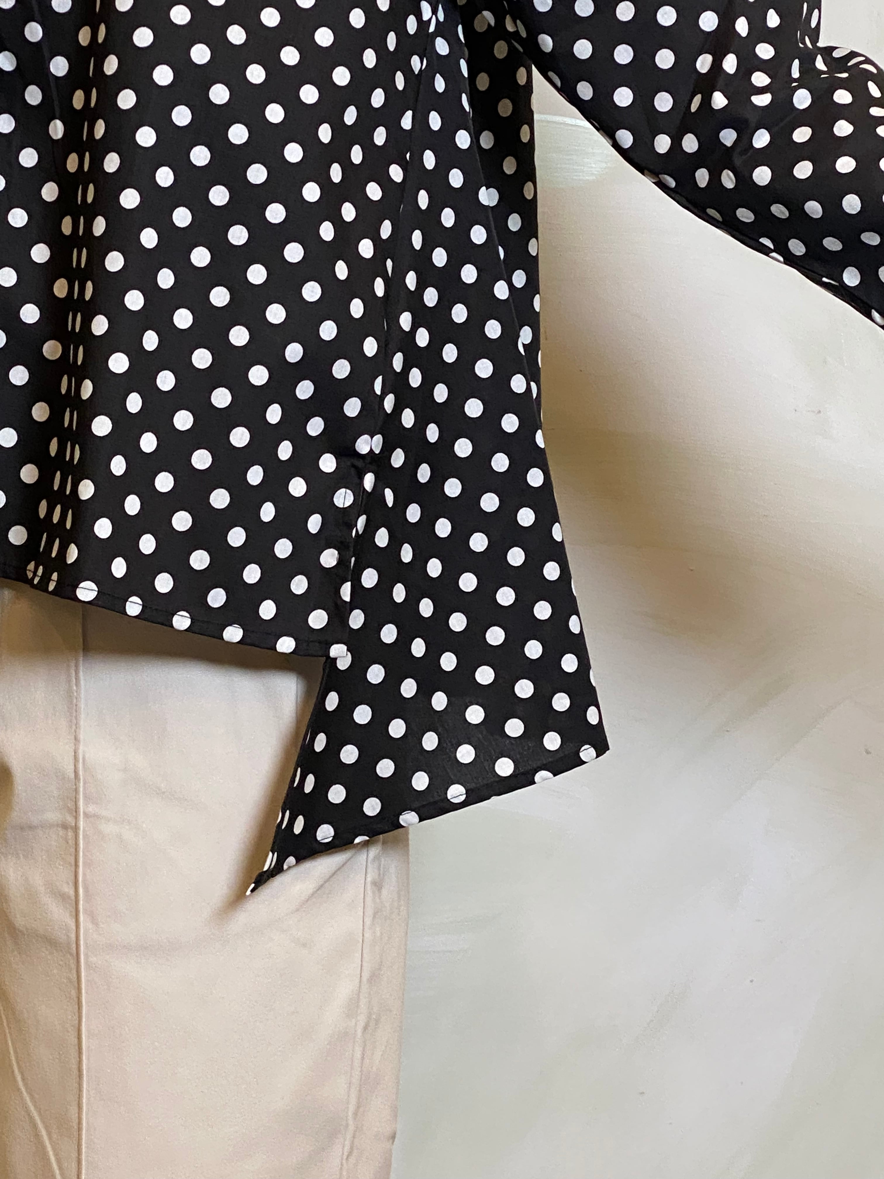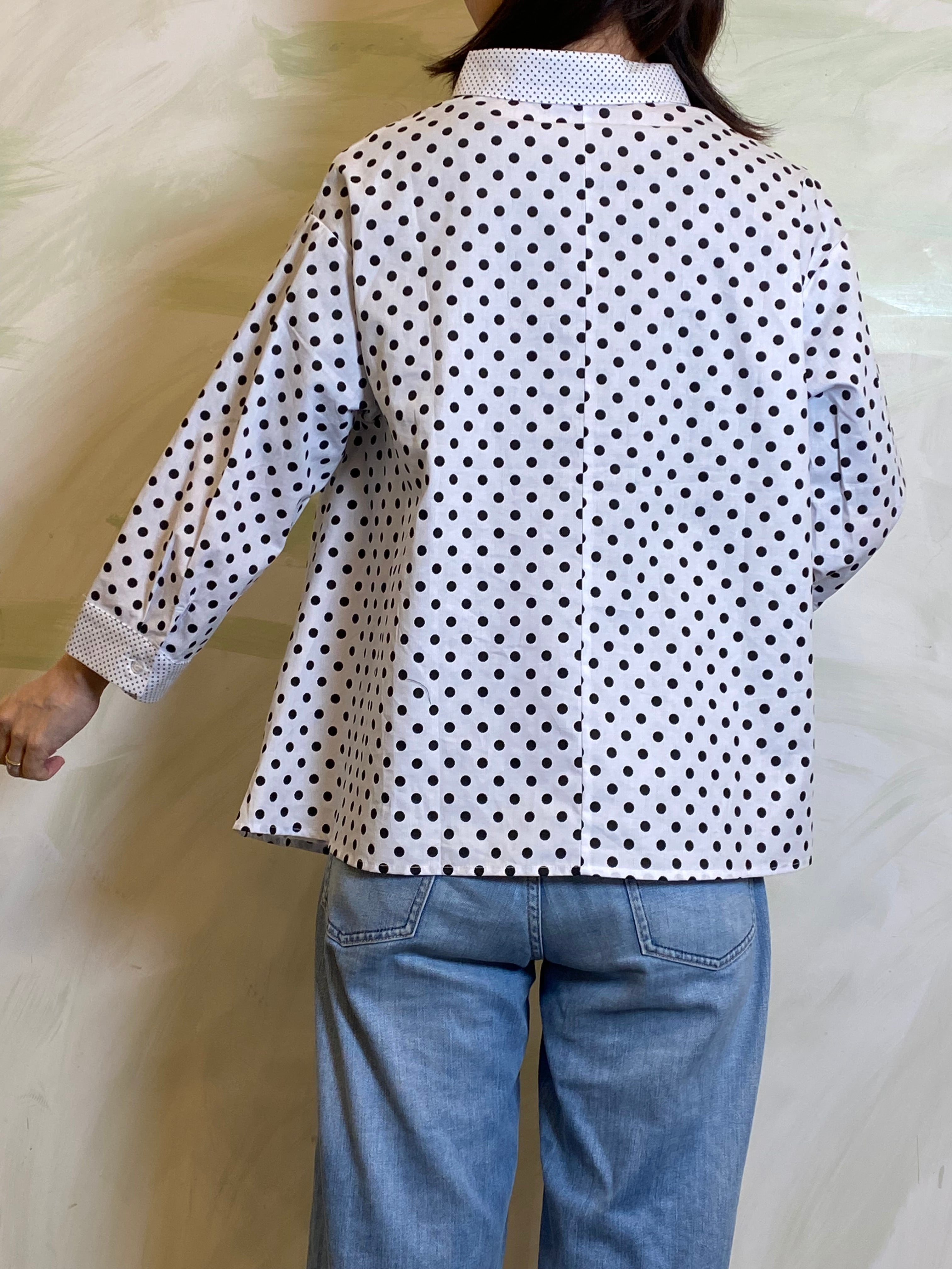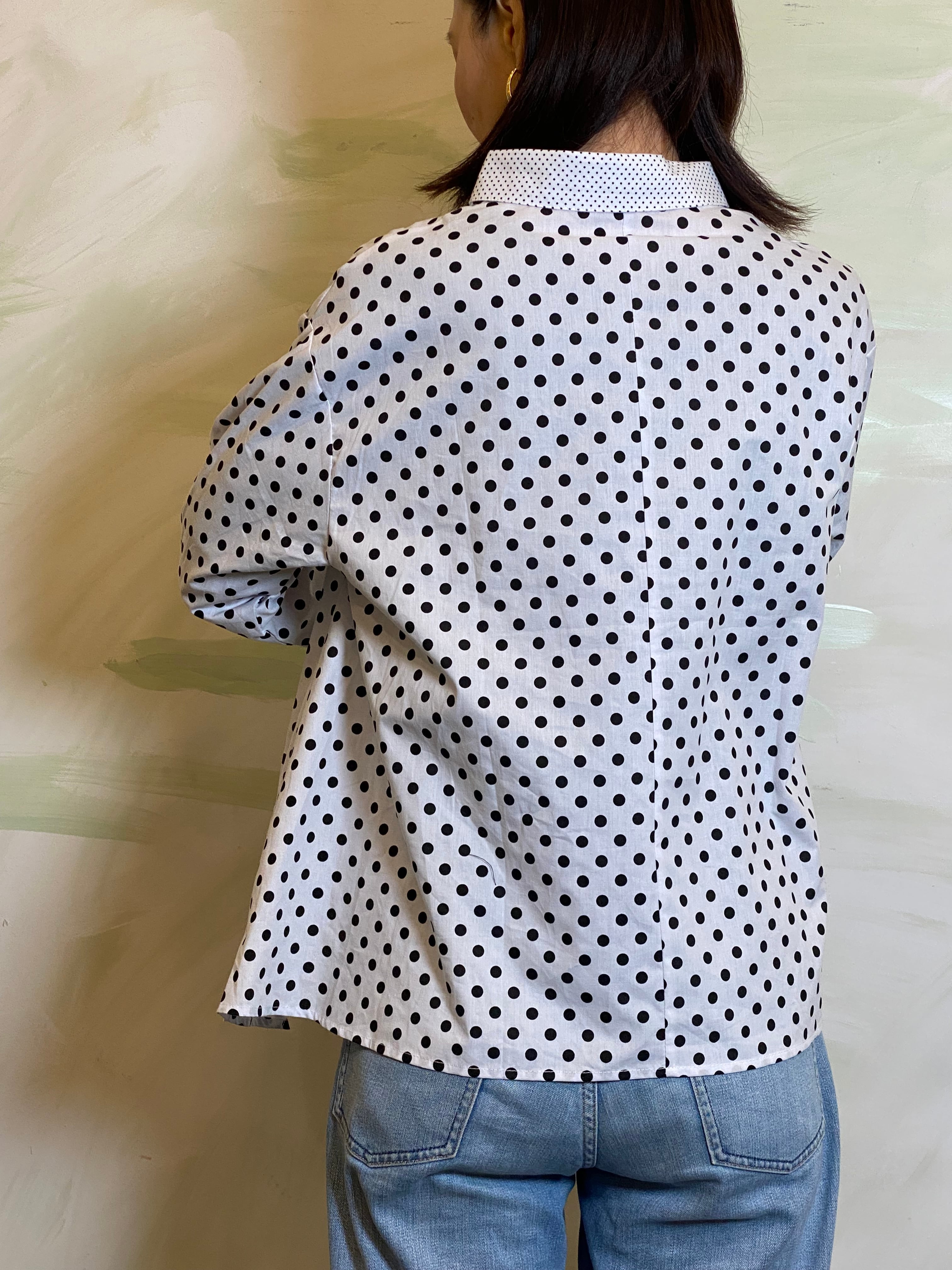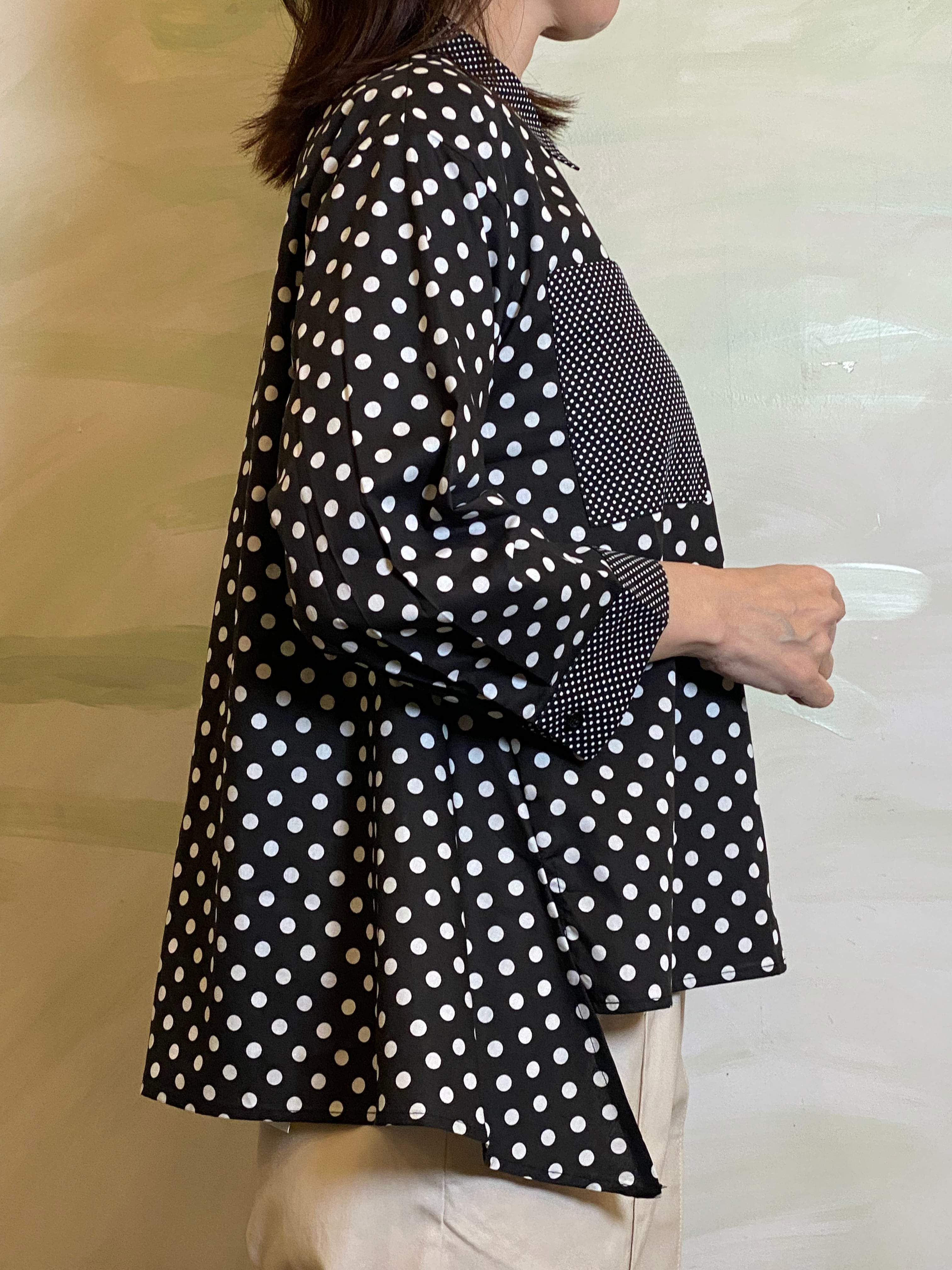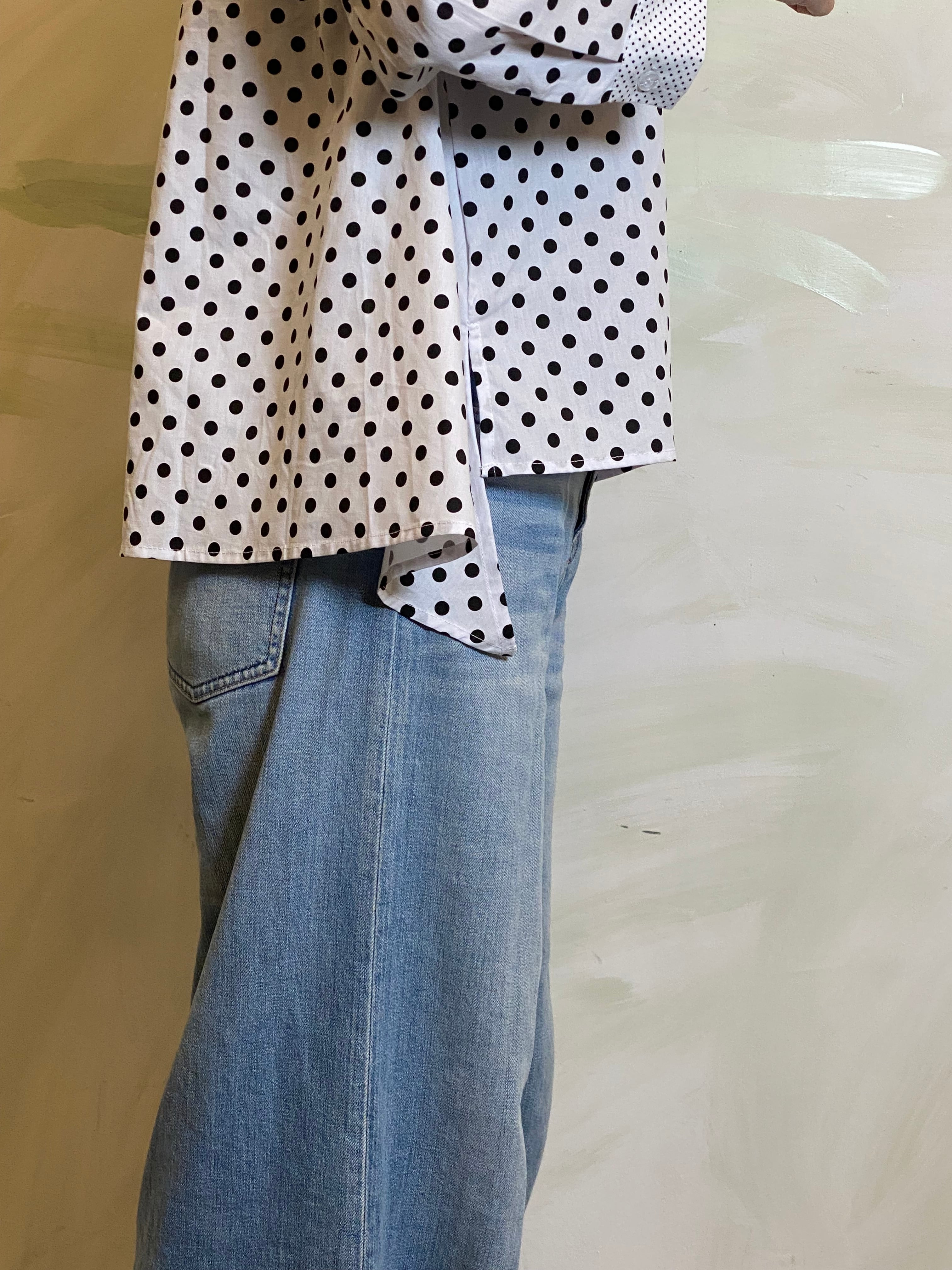 異なる大きさのドットを組み合わせた、遊び心のあるデザインシャツ。
