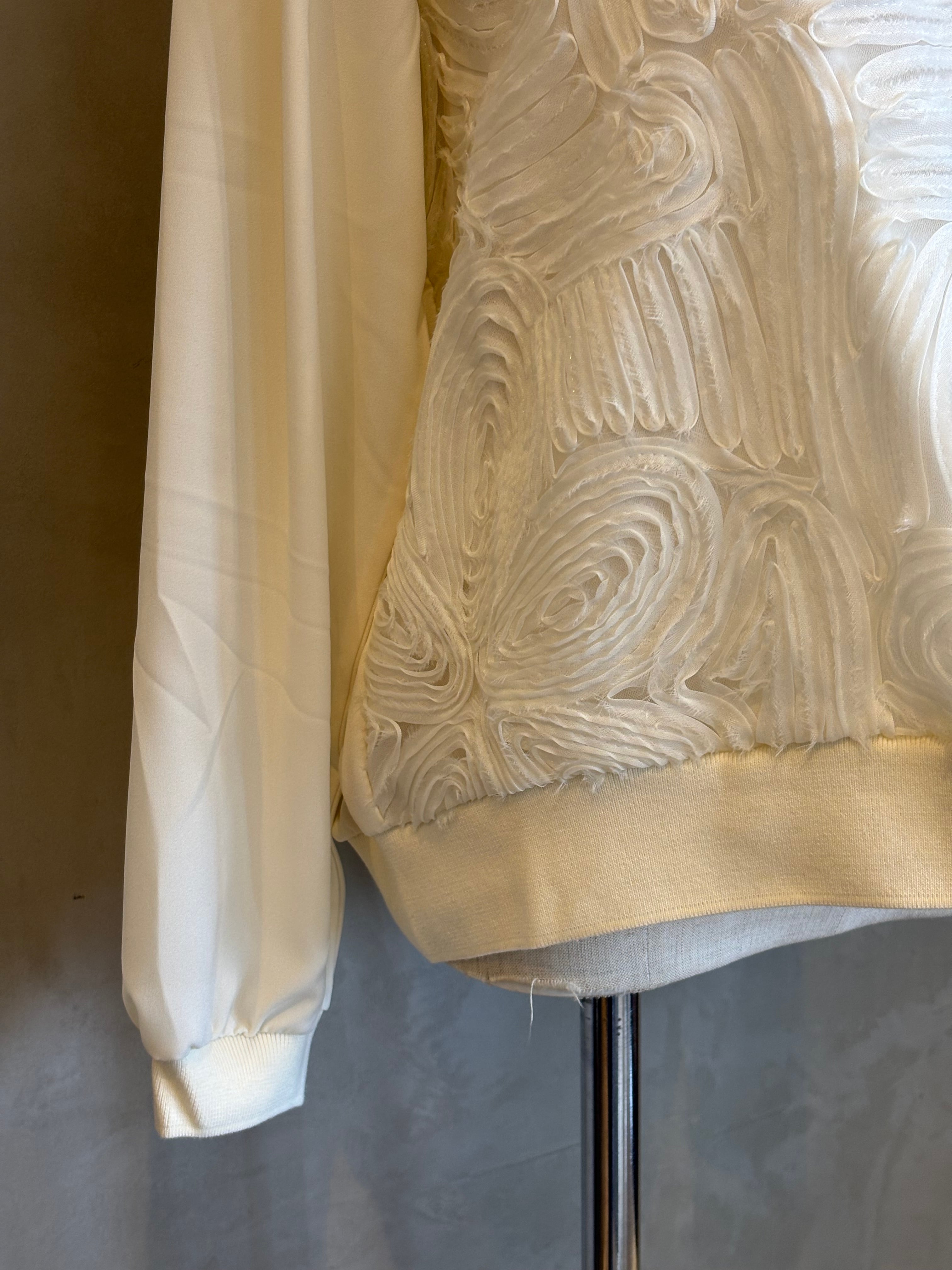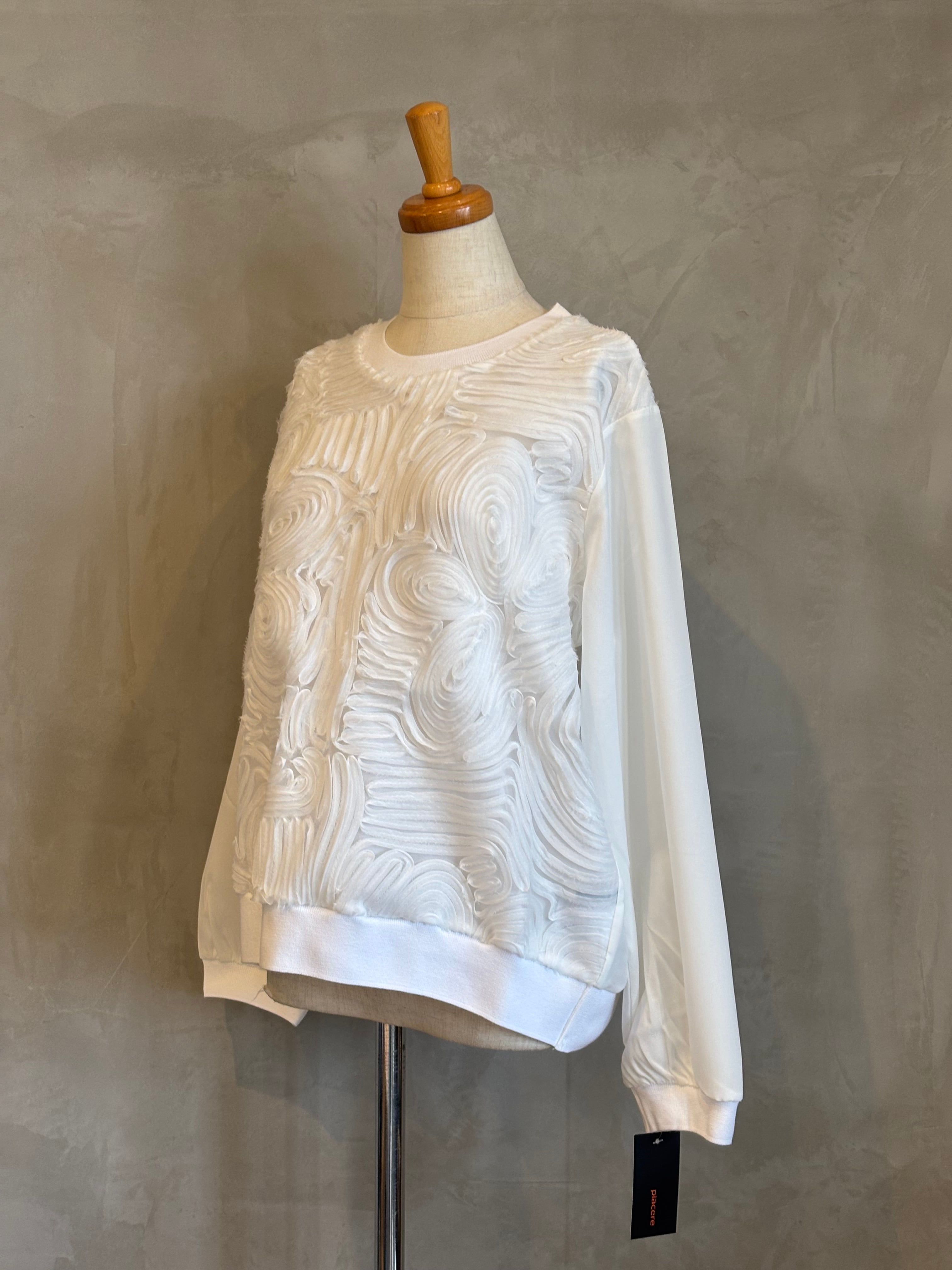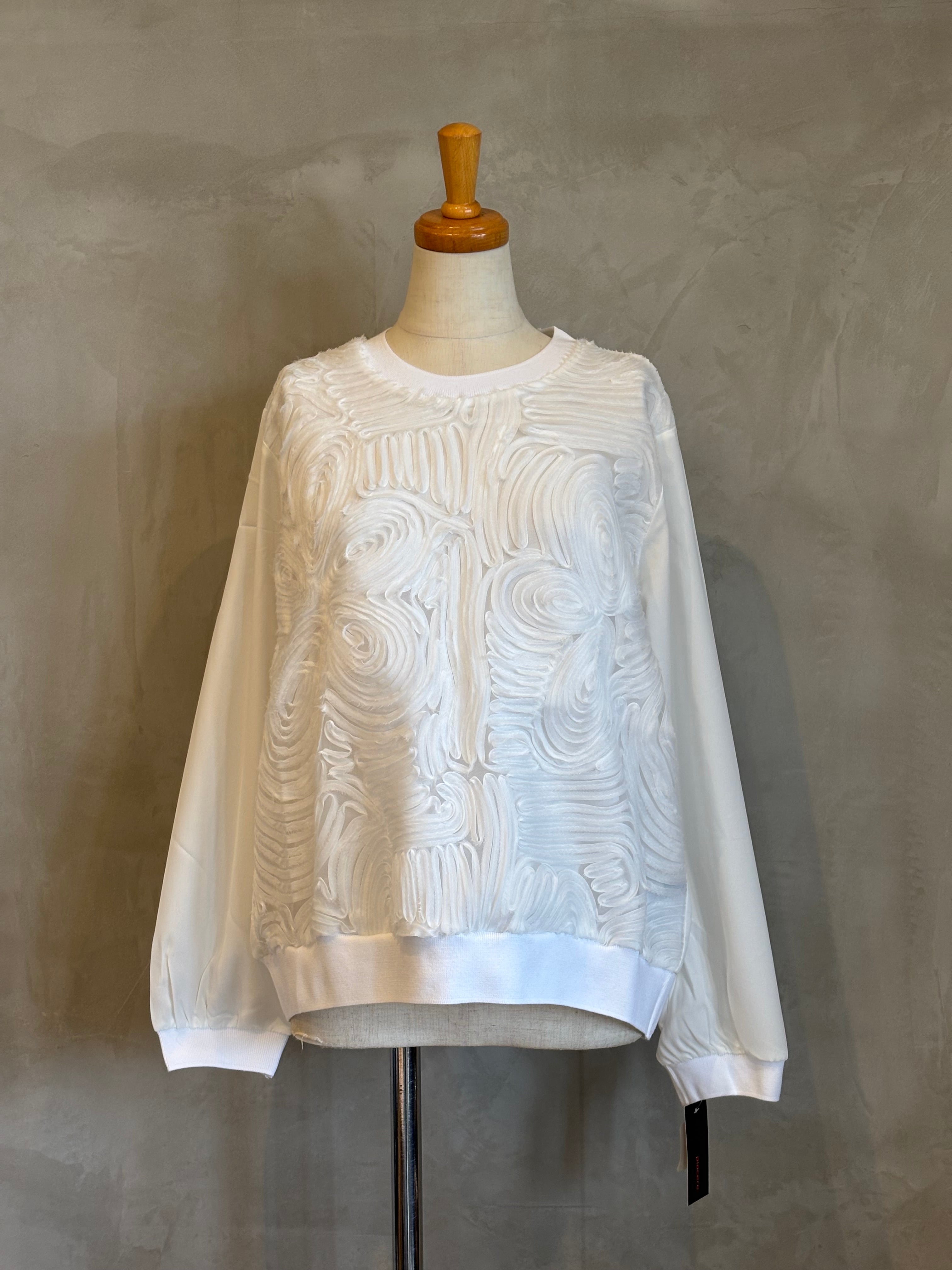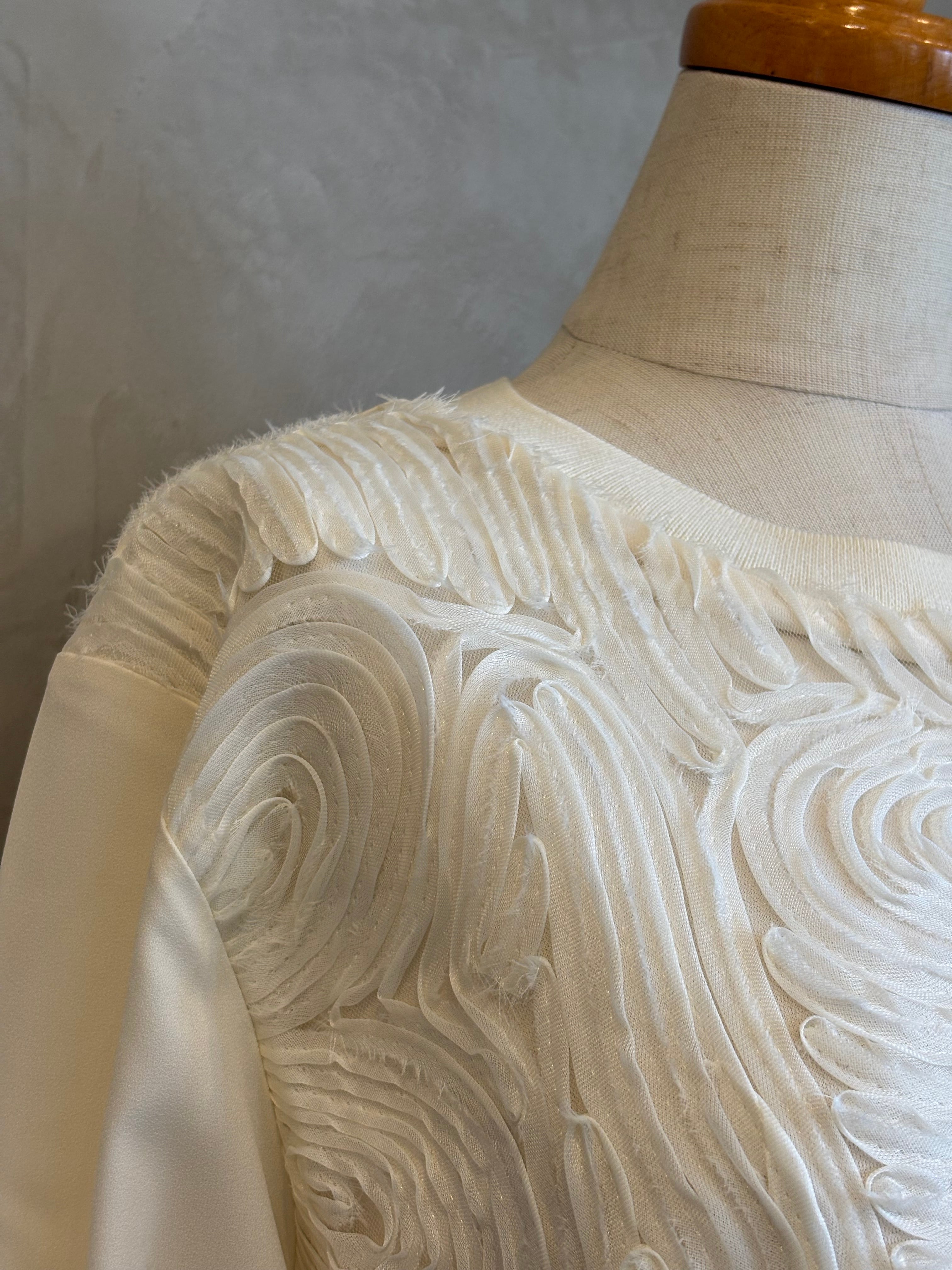 フロント部分には立体的なチュールをあしらい、シンプルながらも存在感のある一枚に。