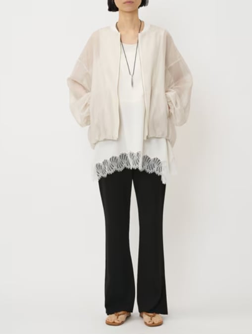 一枚でも着て頂きやすい、光沢を抑えたマットサテンを使用。