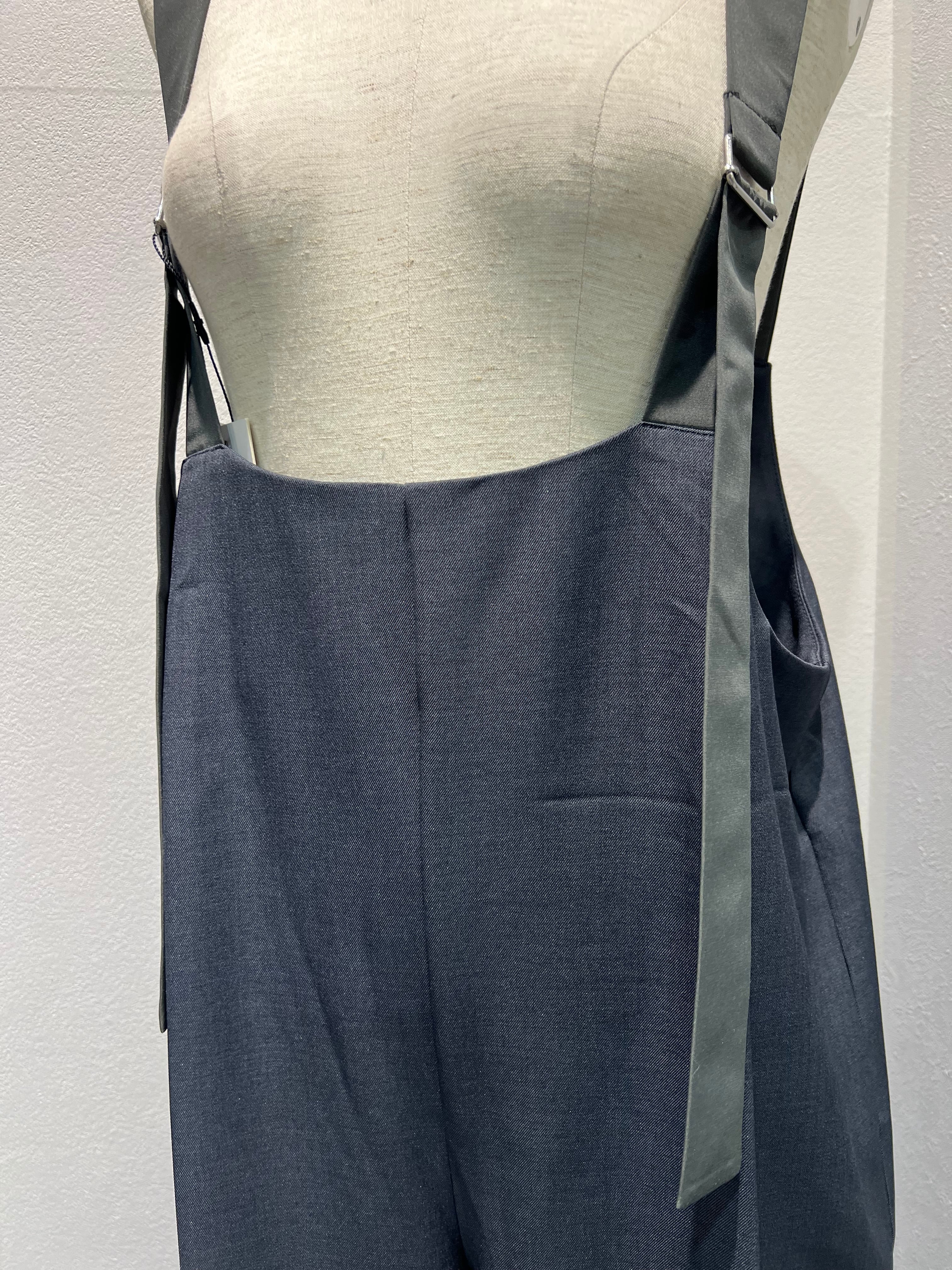 落ち感のあるツイル素材を使用した、上品な佇まいのサロペット。