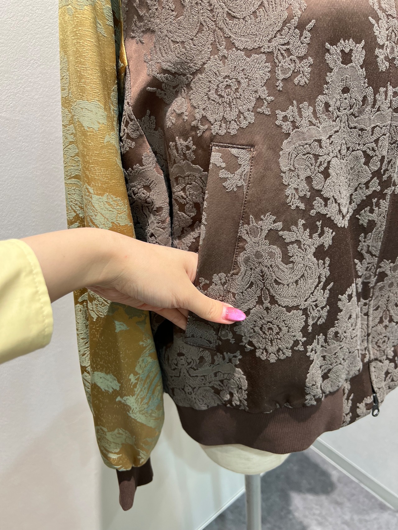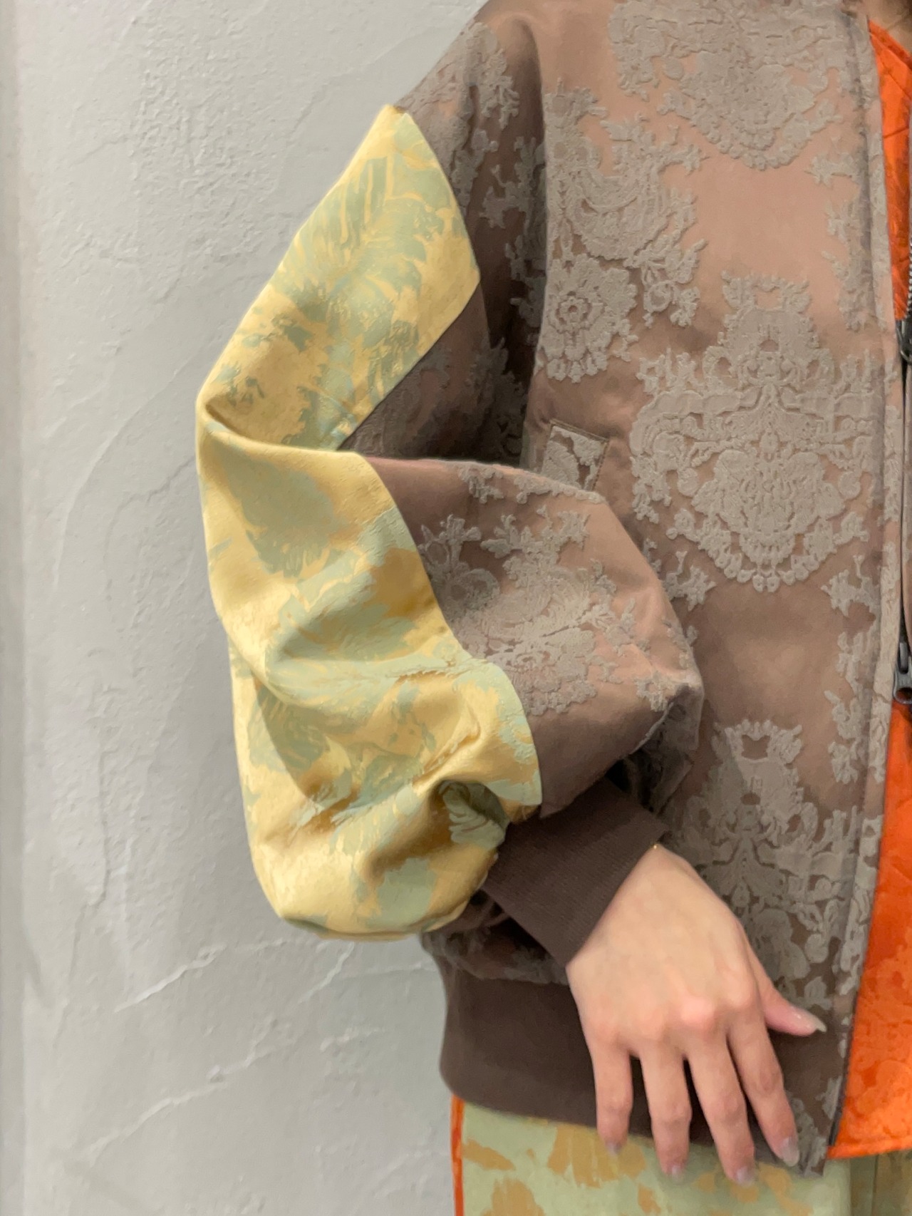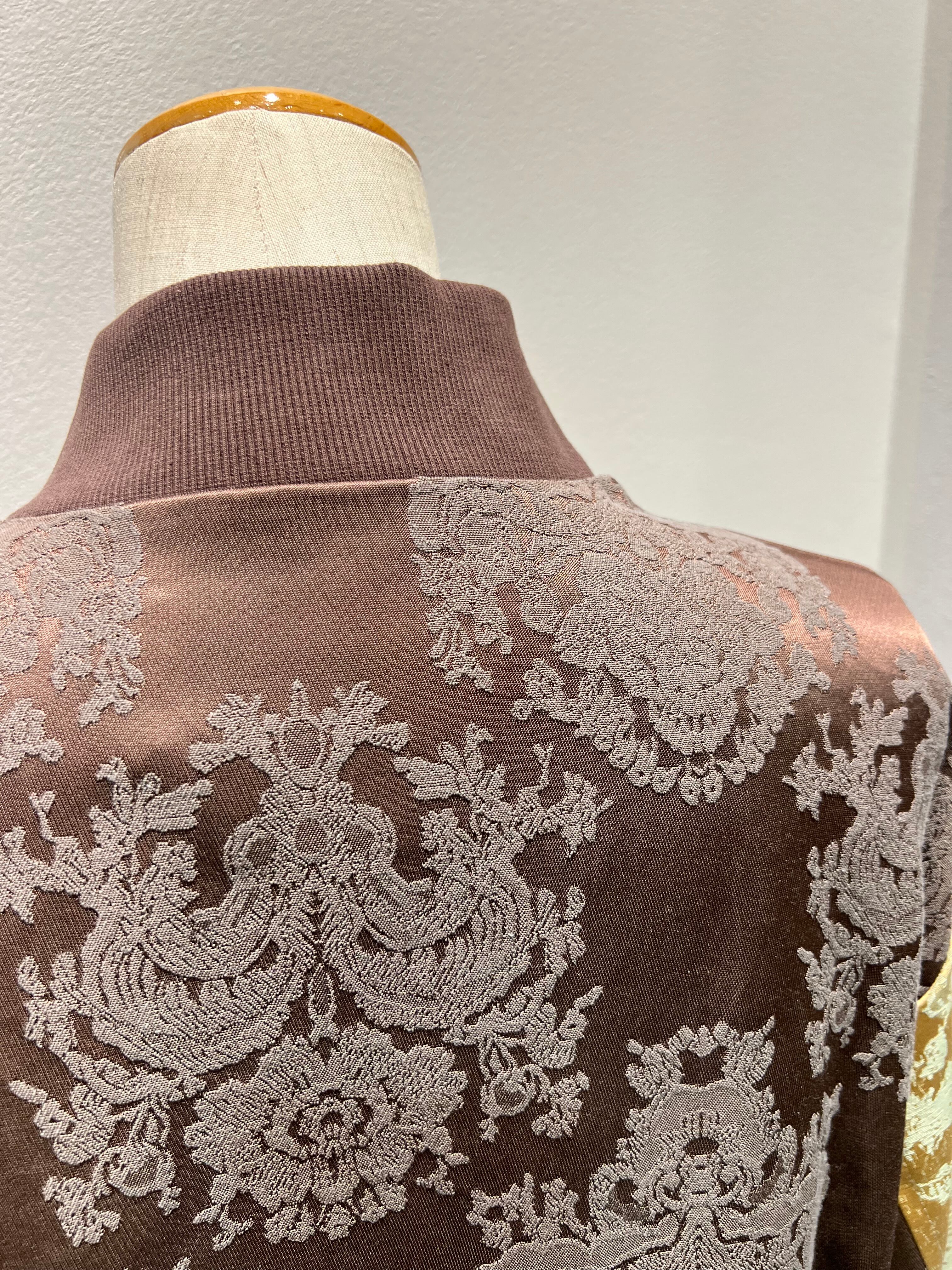上品な光沢感のあるジャガード素材を使用したブルゾン。