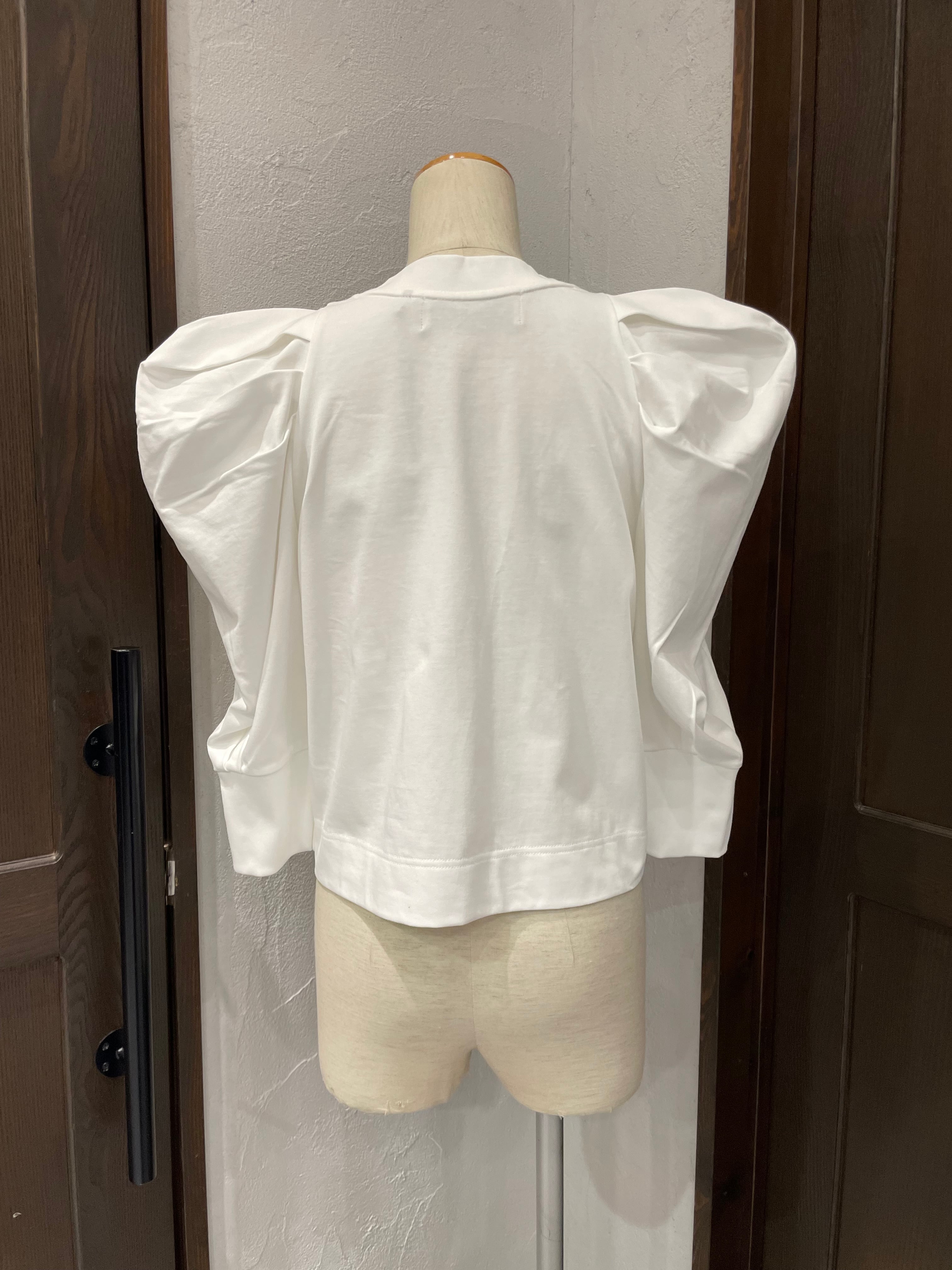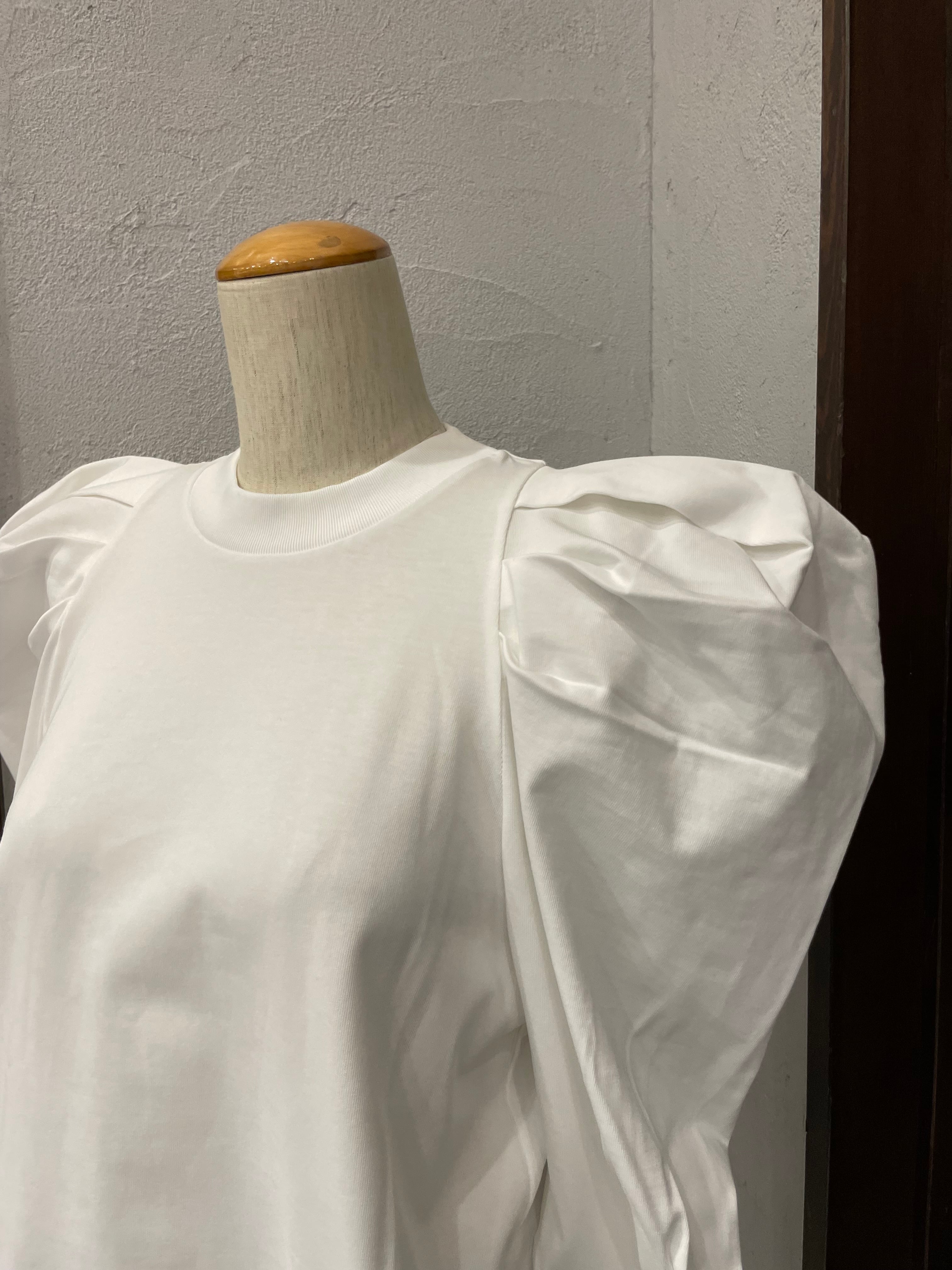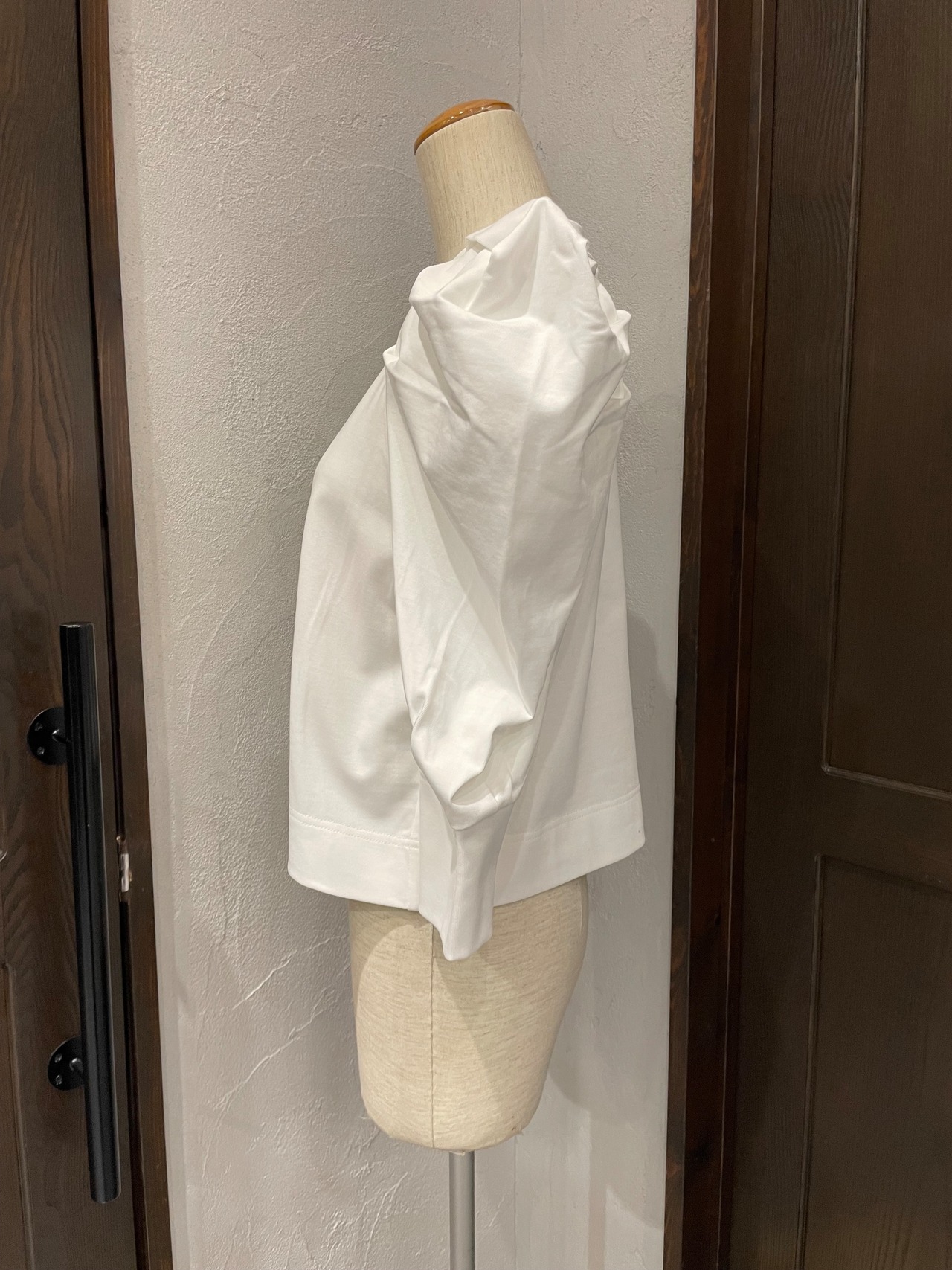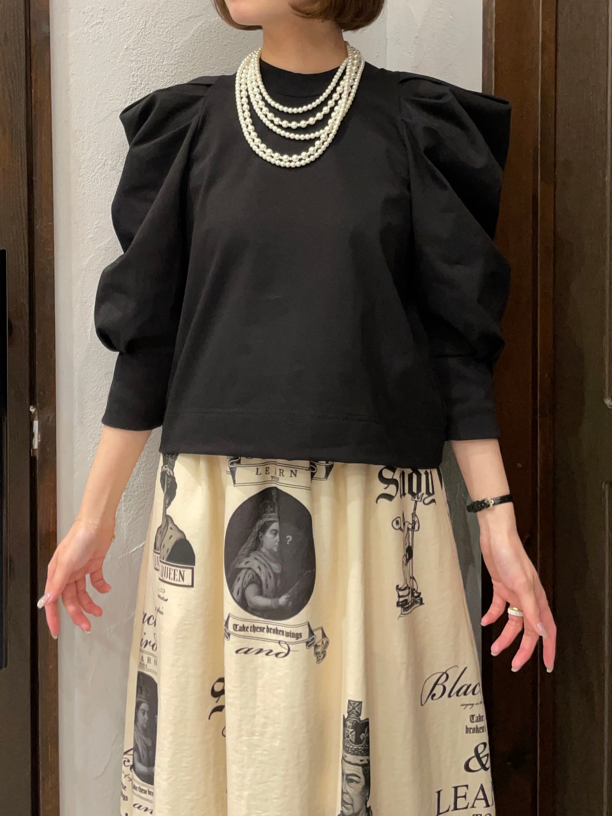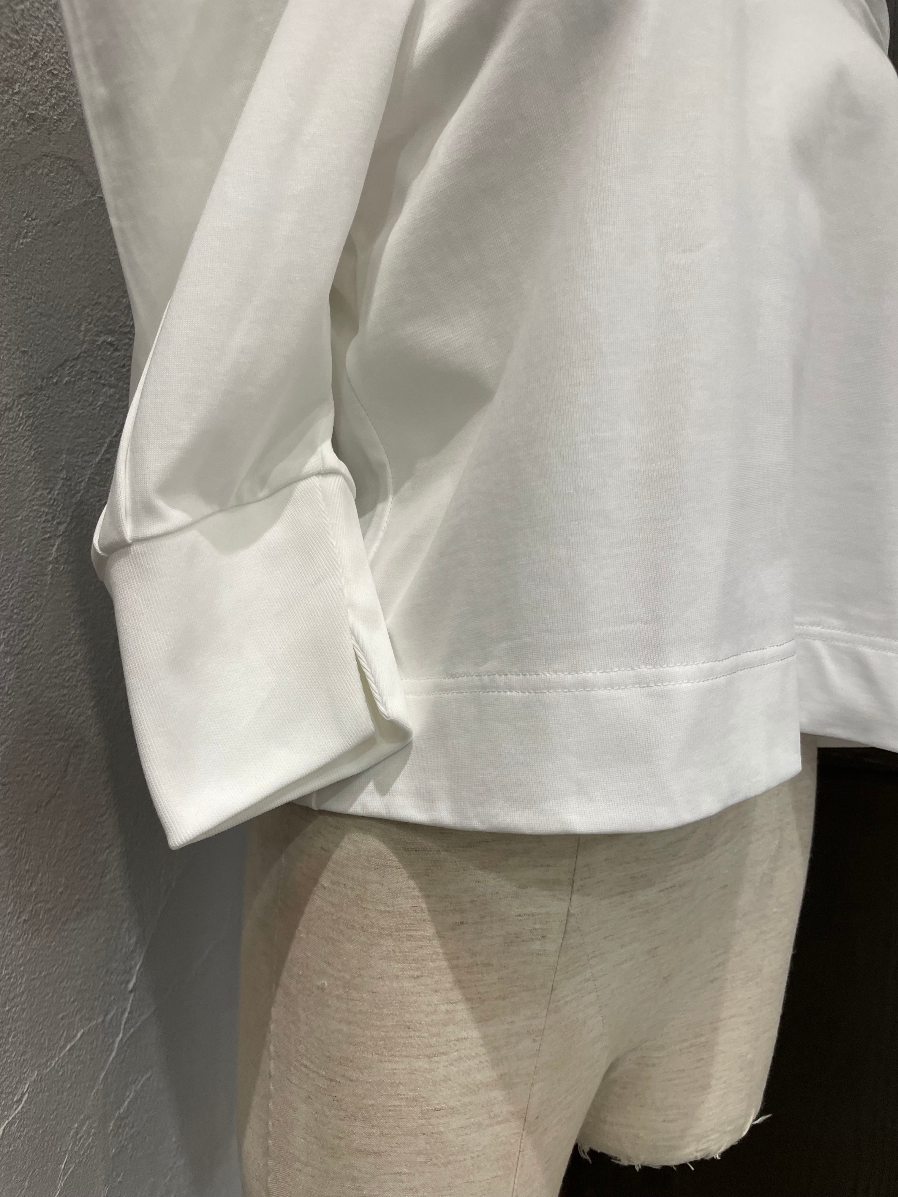 度詰めのカットソー素材を使用しているため、程よいハリ感があり、着るだけで自然と華やかな印象に。