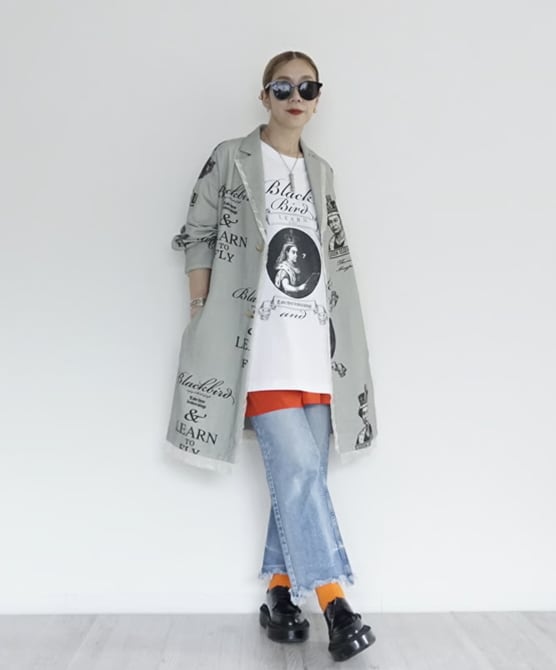 ゆったりとしたオーバーサイズシルエットのロングジャケット。