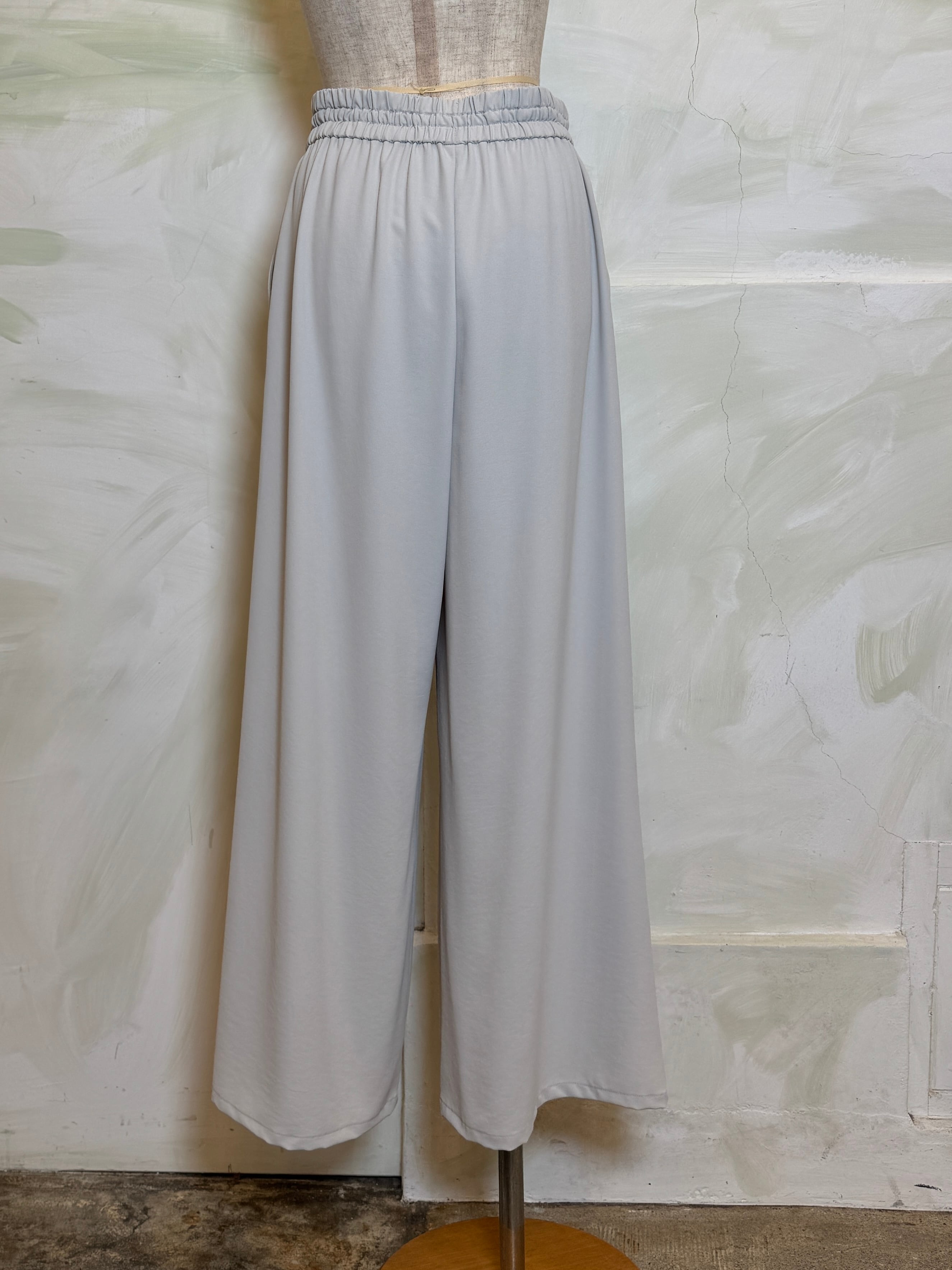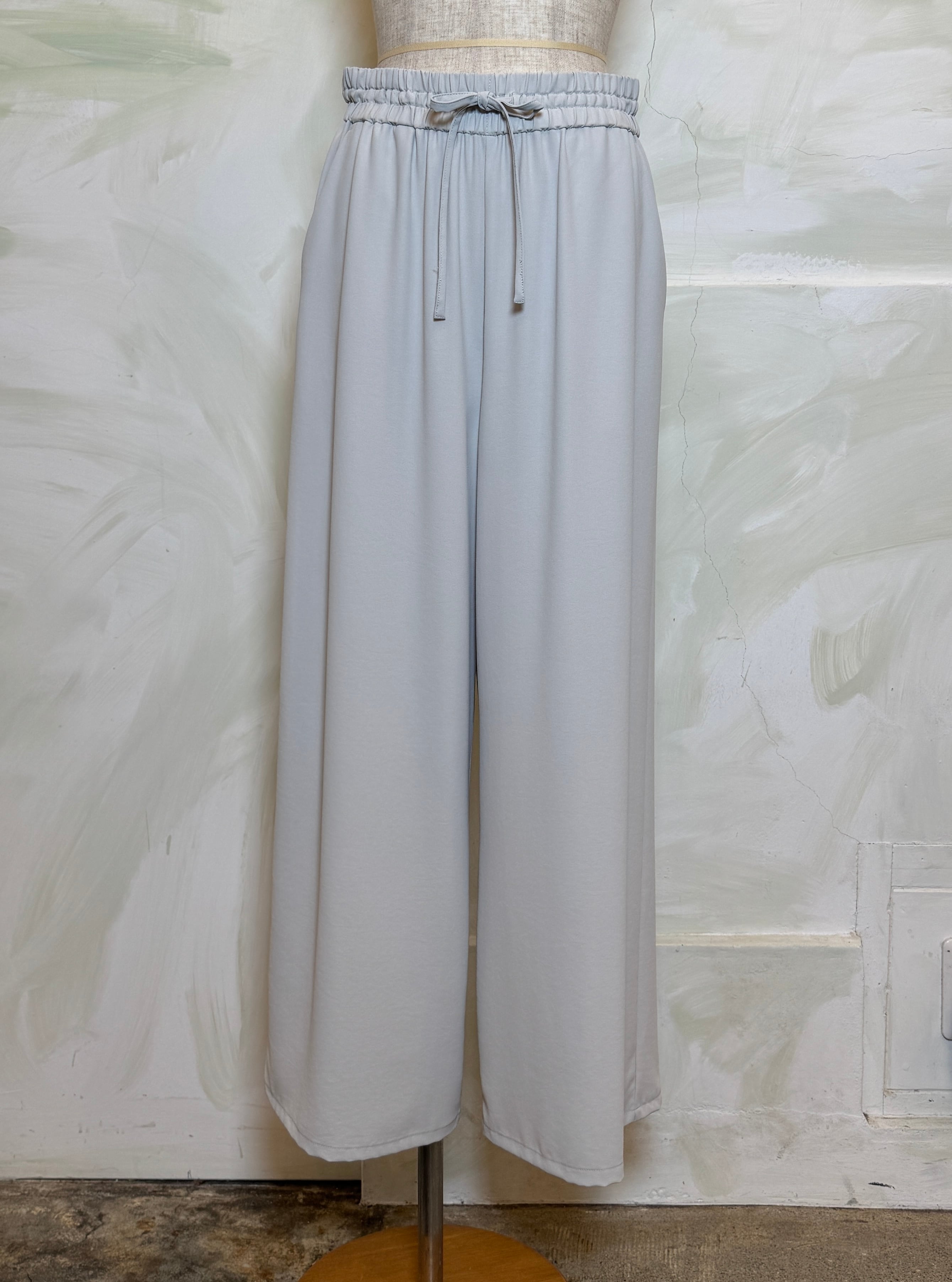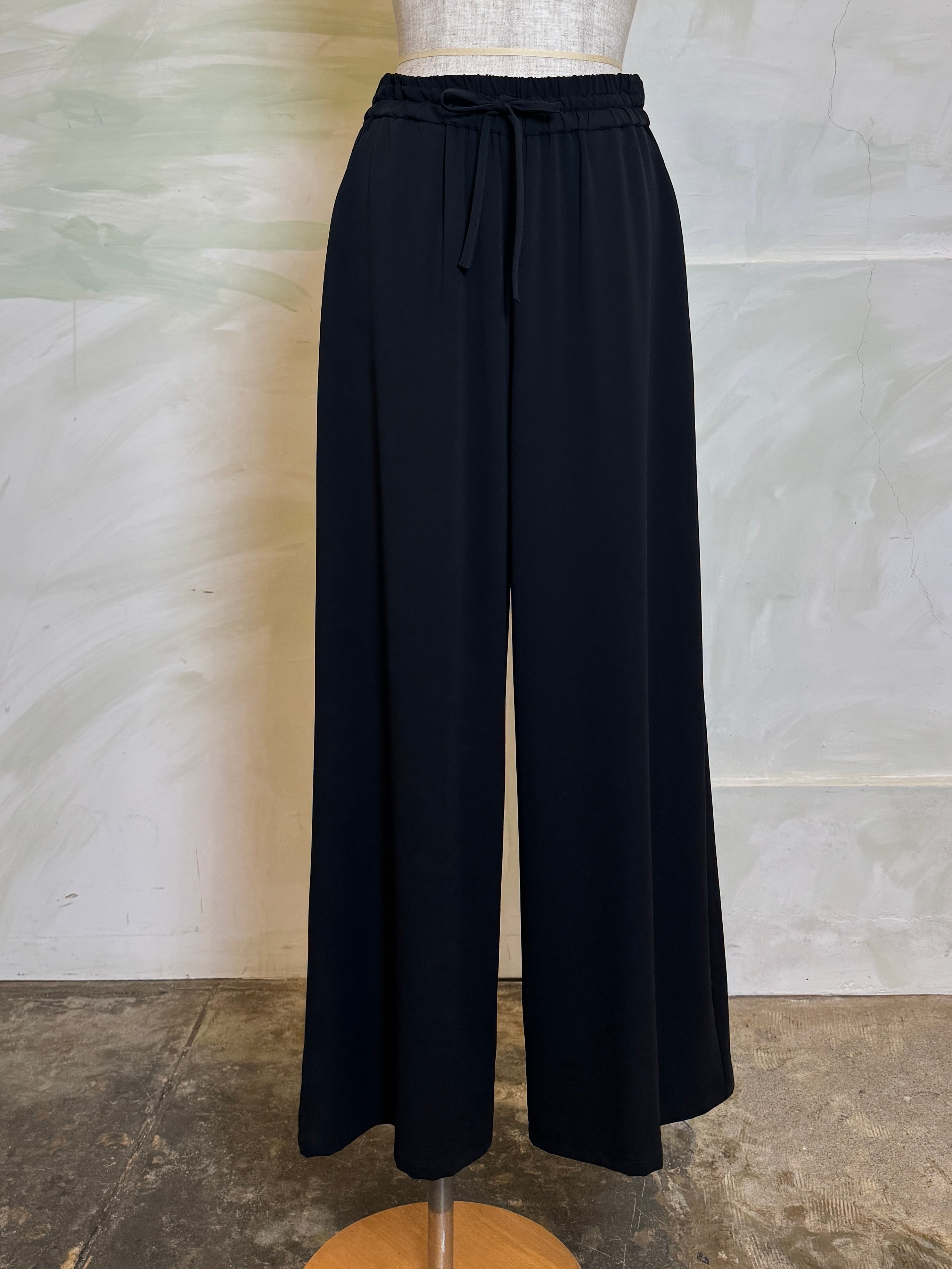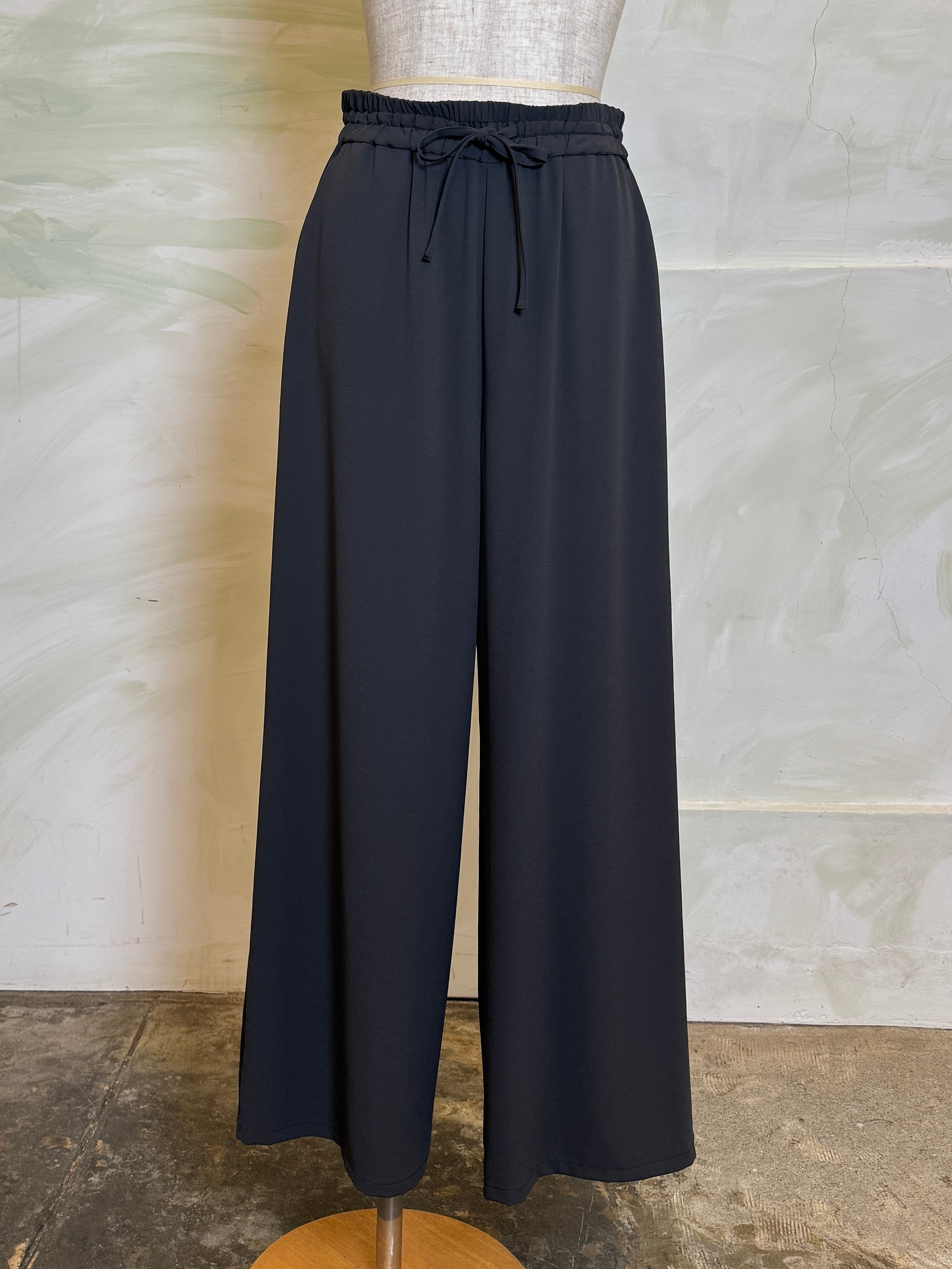 とろみ感のあるストレッチジョーゼット素材で、きれいめにもカジュアルにも着回せる万能ワイドパンツ。日本製の上質な一枚。
