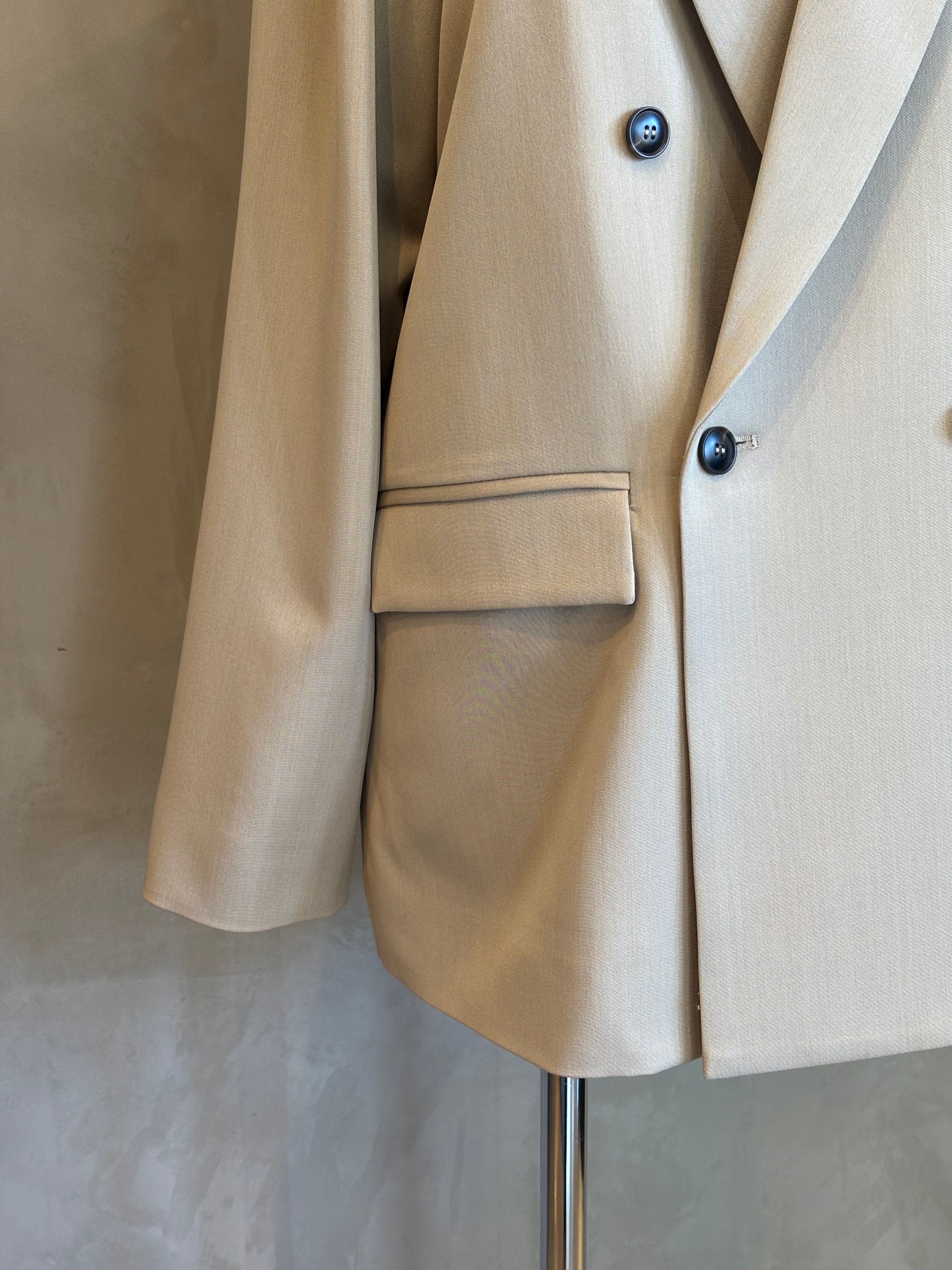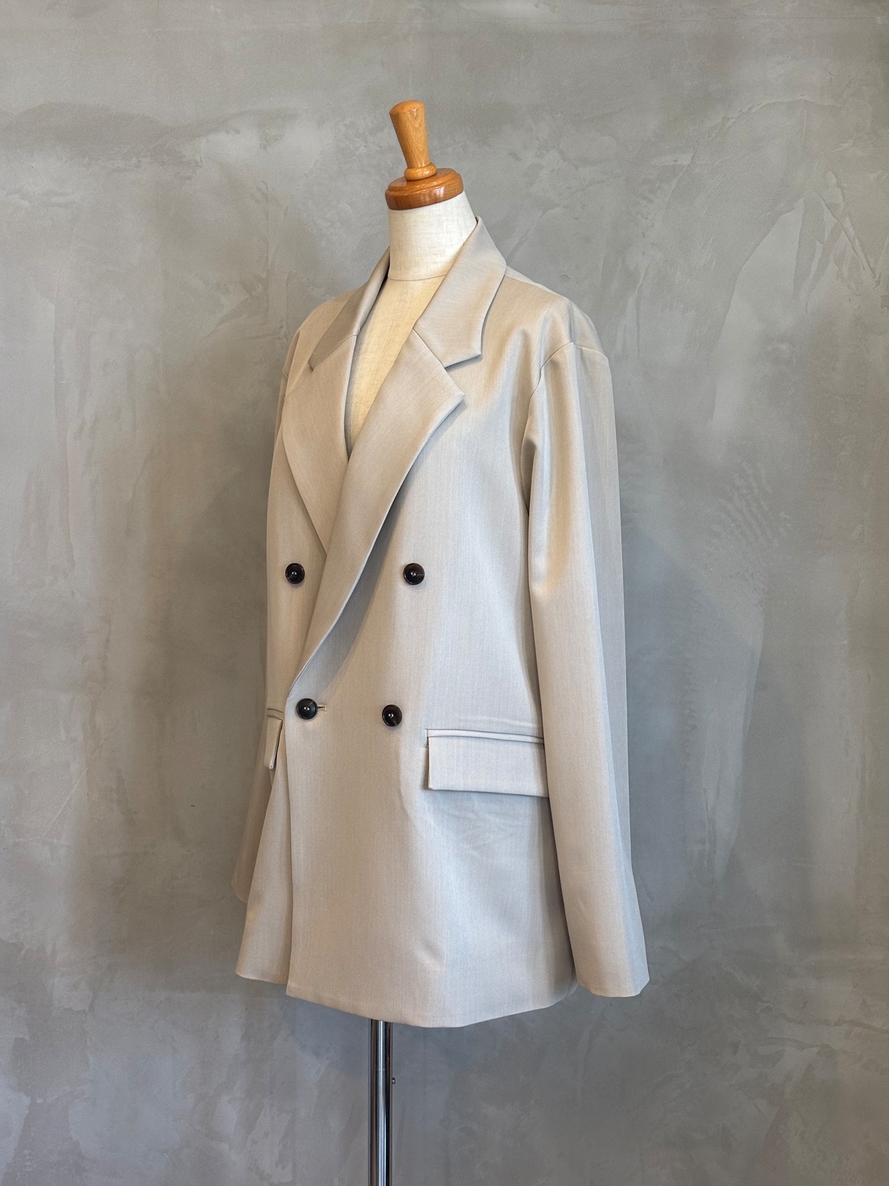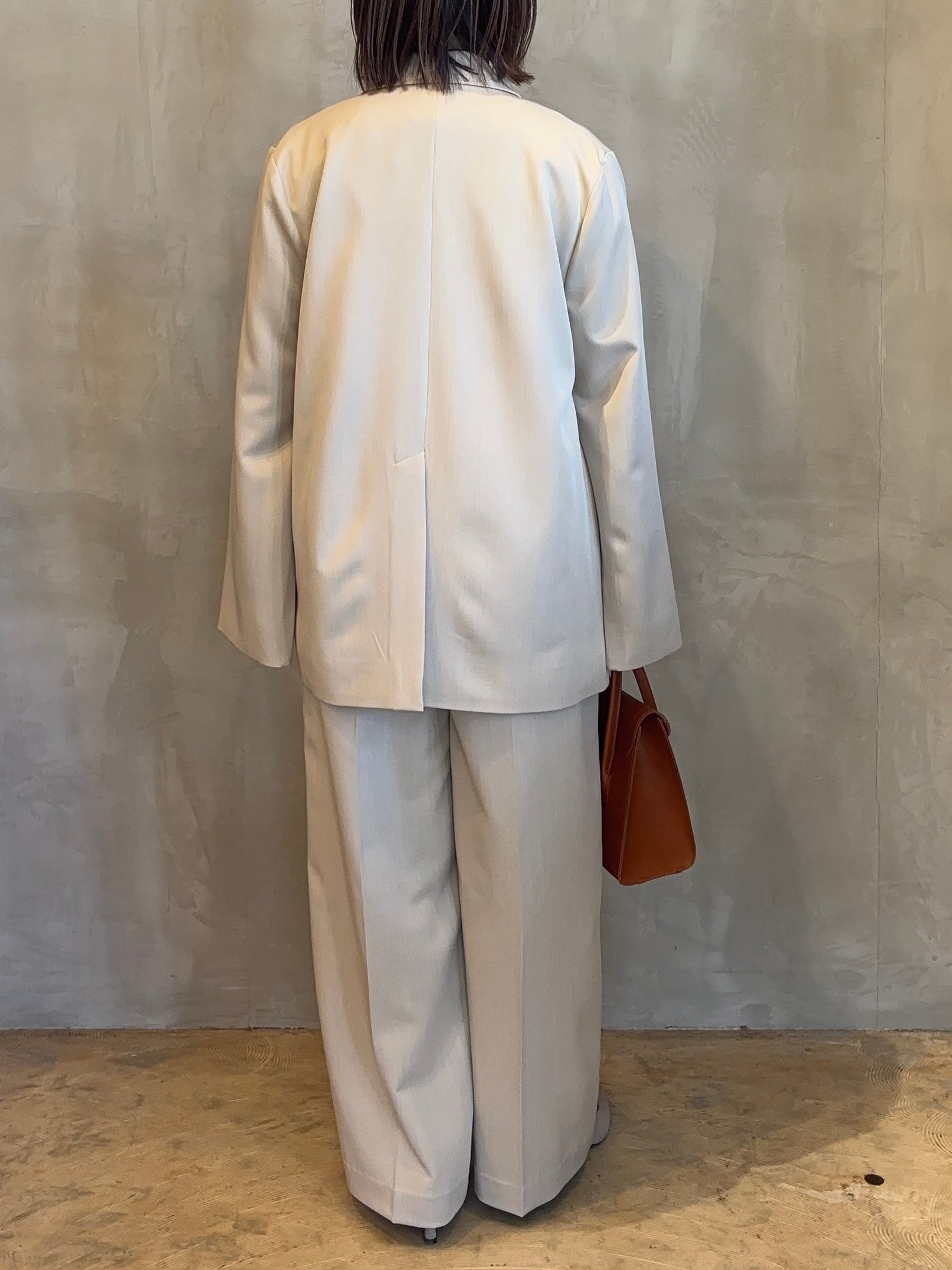 同素材のボトムと合わせたセットアップスタイルはオケージョンシーンで大活躍。