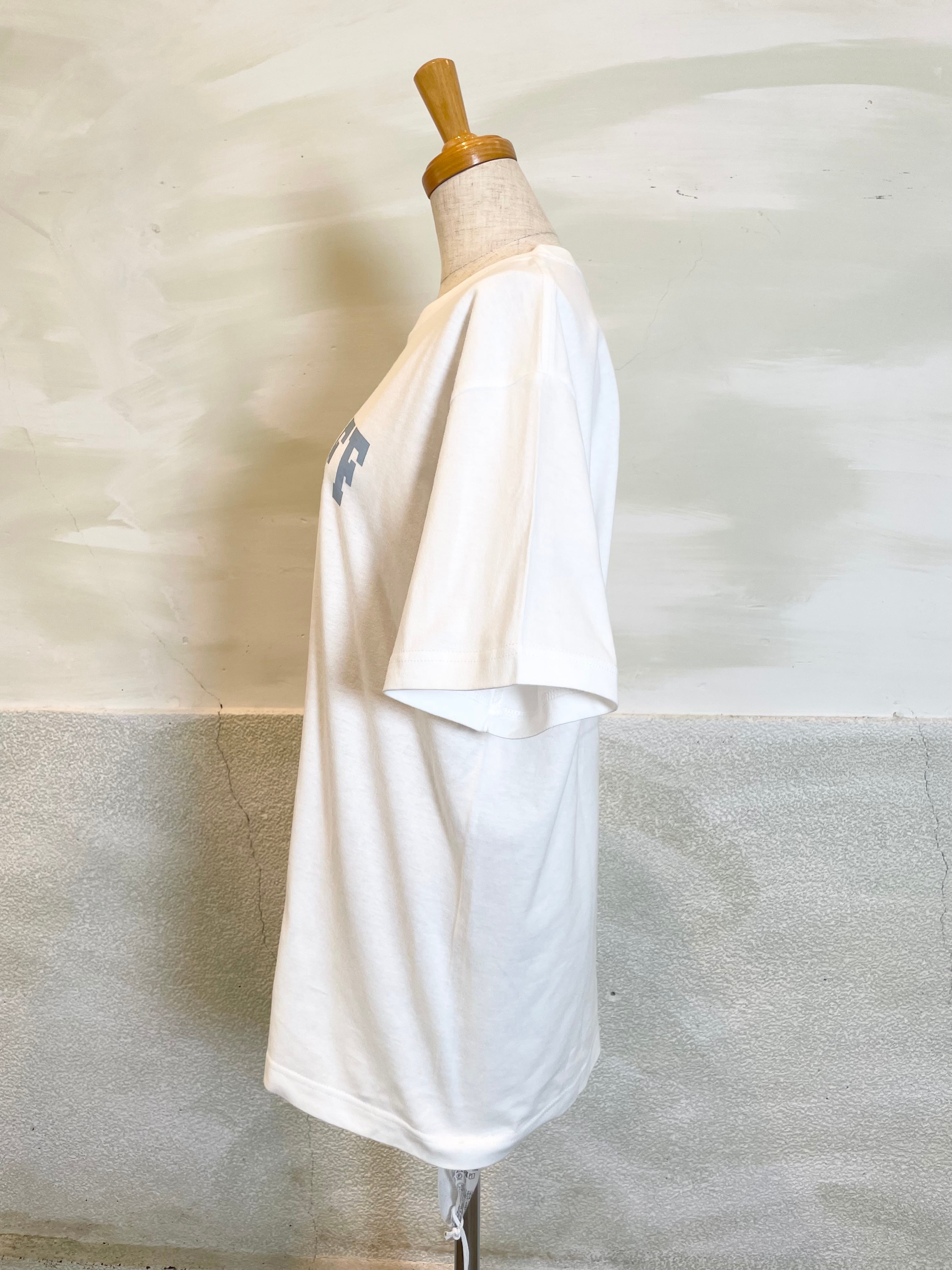 [Turn off and tune out]は「スイッチをオフにしてのんびり過ごす」の意。へヴィーウェイトの代表格と言える5.6オンス生地で1枚でも様になる万能Tシャツ。「よれない」「透けない」「長持ちする」着心地と素材感にこだわりました。