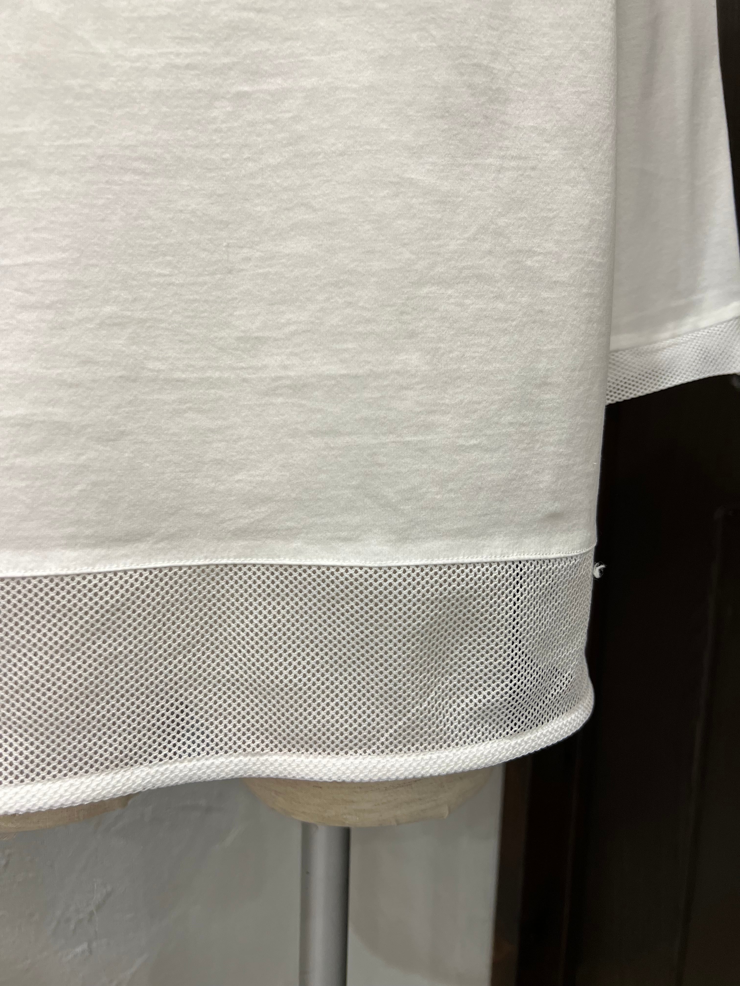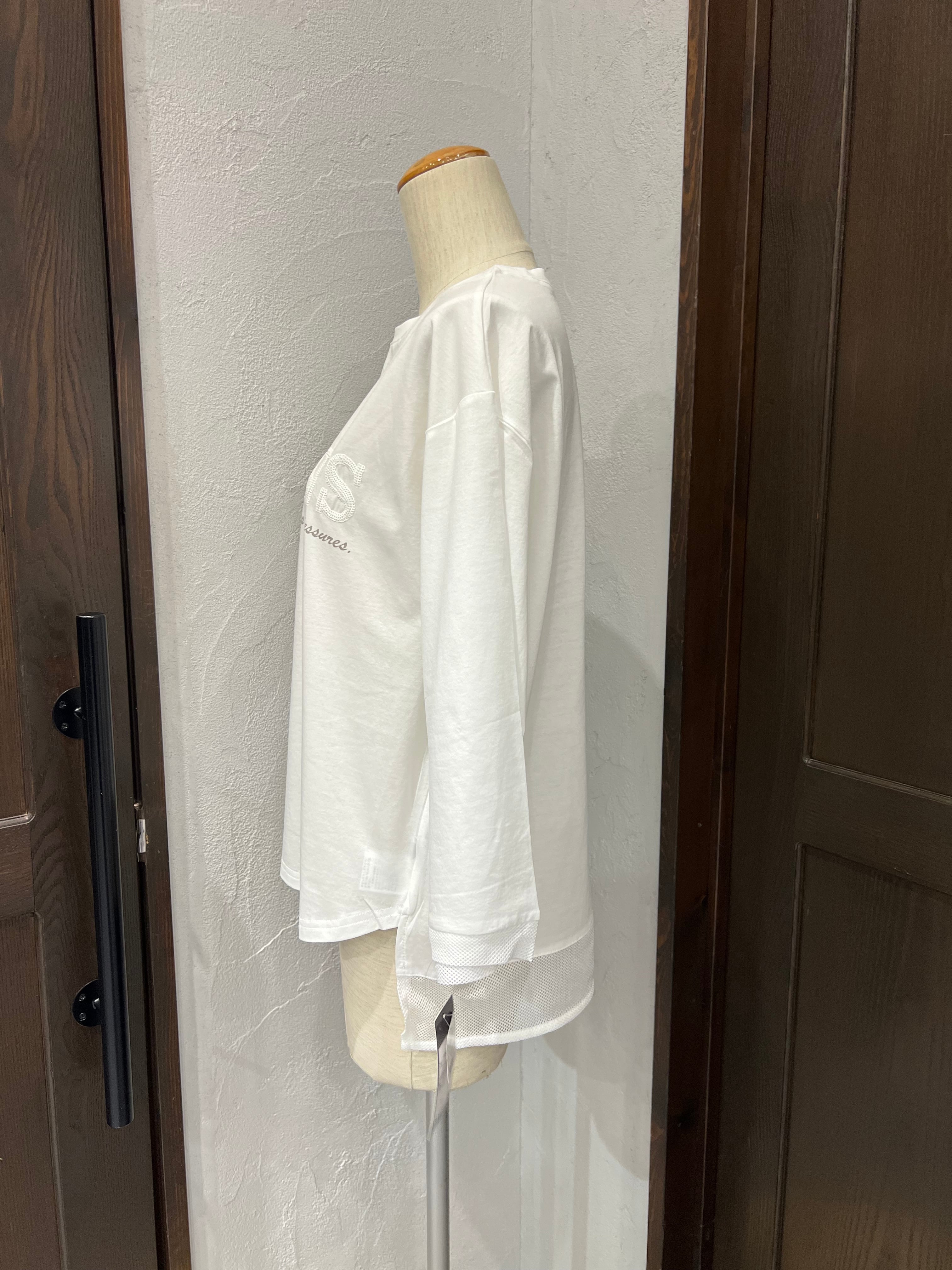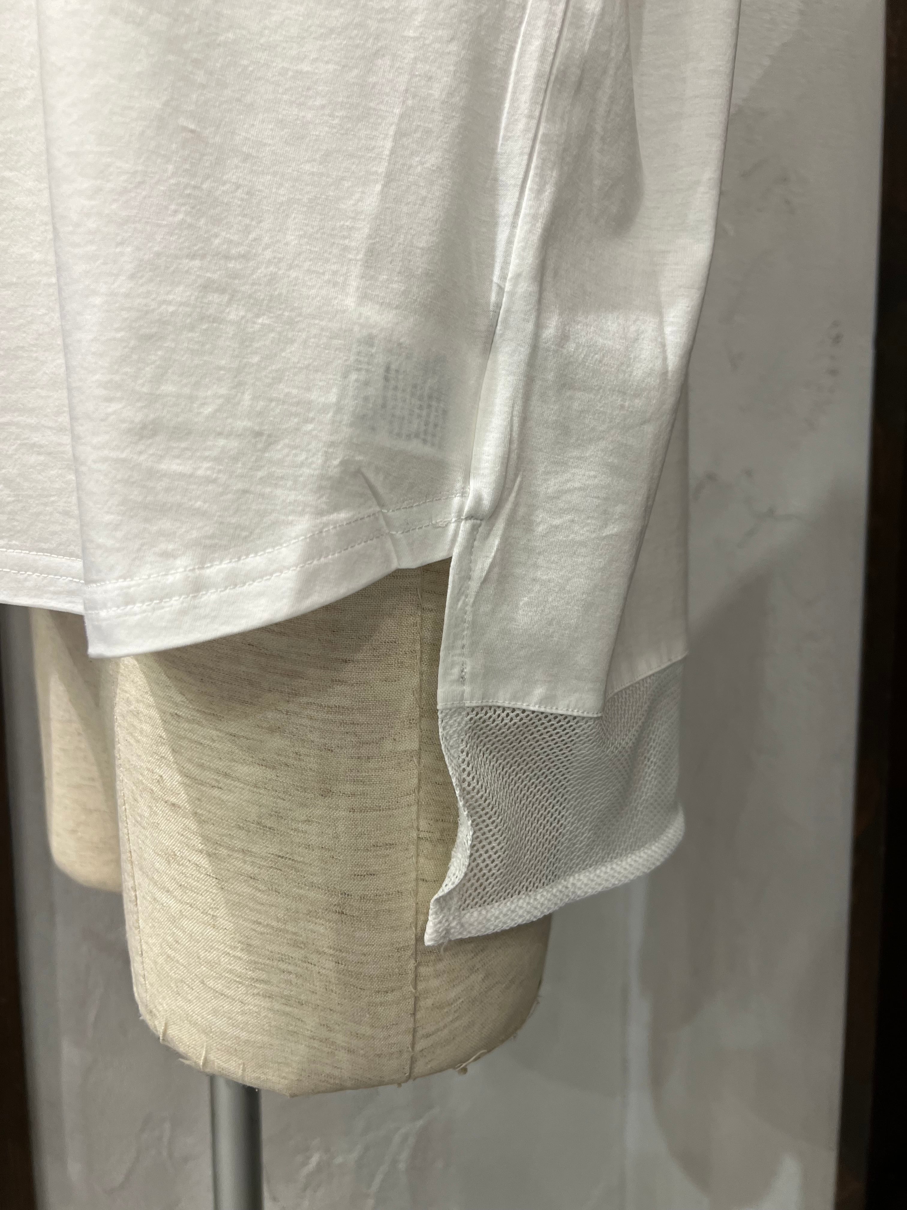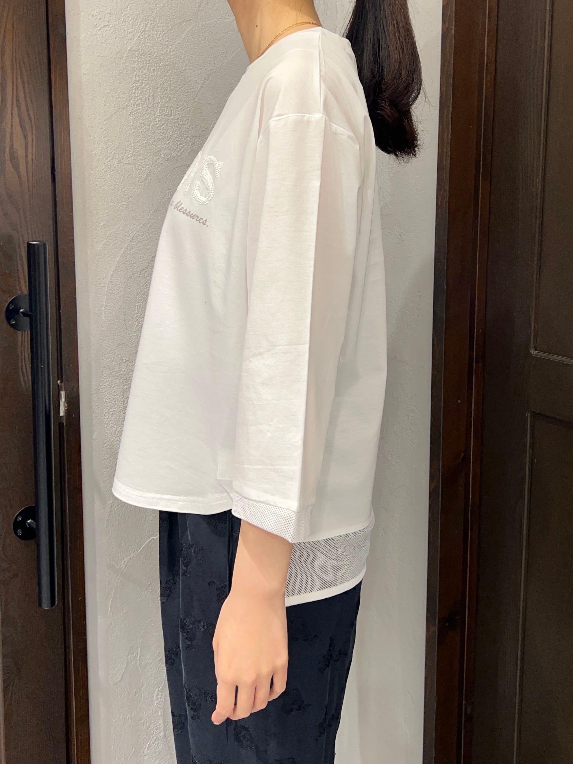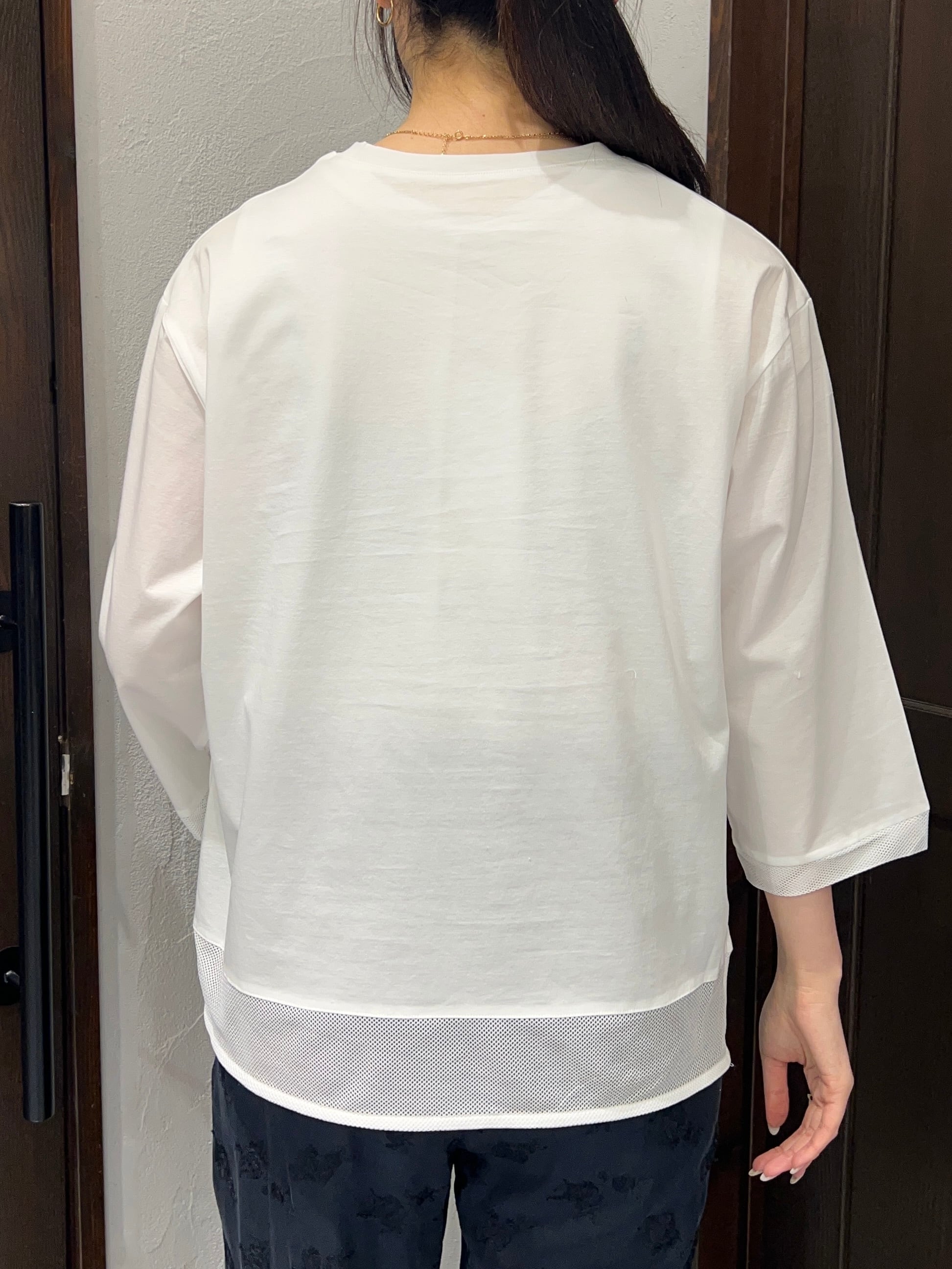 裾部分はメッシュ素材で切り替えられており、軽やかさとさりげない抜け感をプラス。動きに合わせてふんわり揺れ、シンプルながらもこなれた印象に仕上げてくれます。