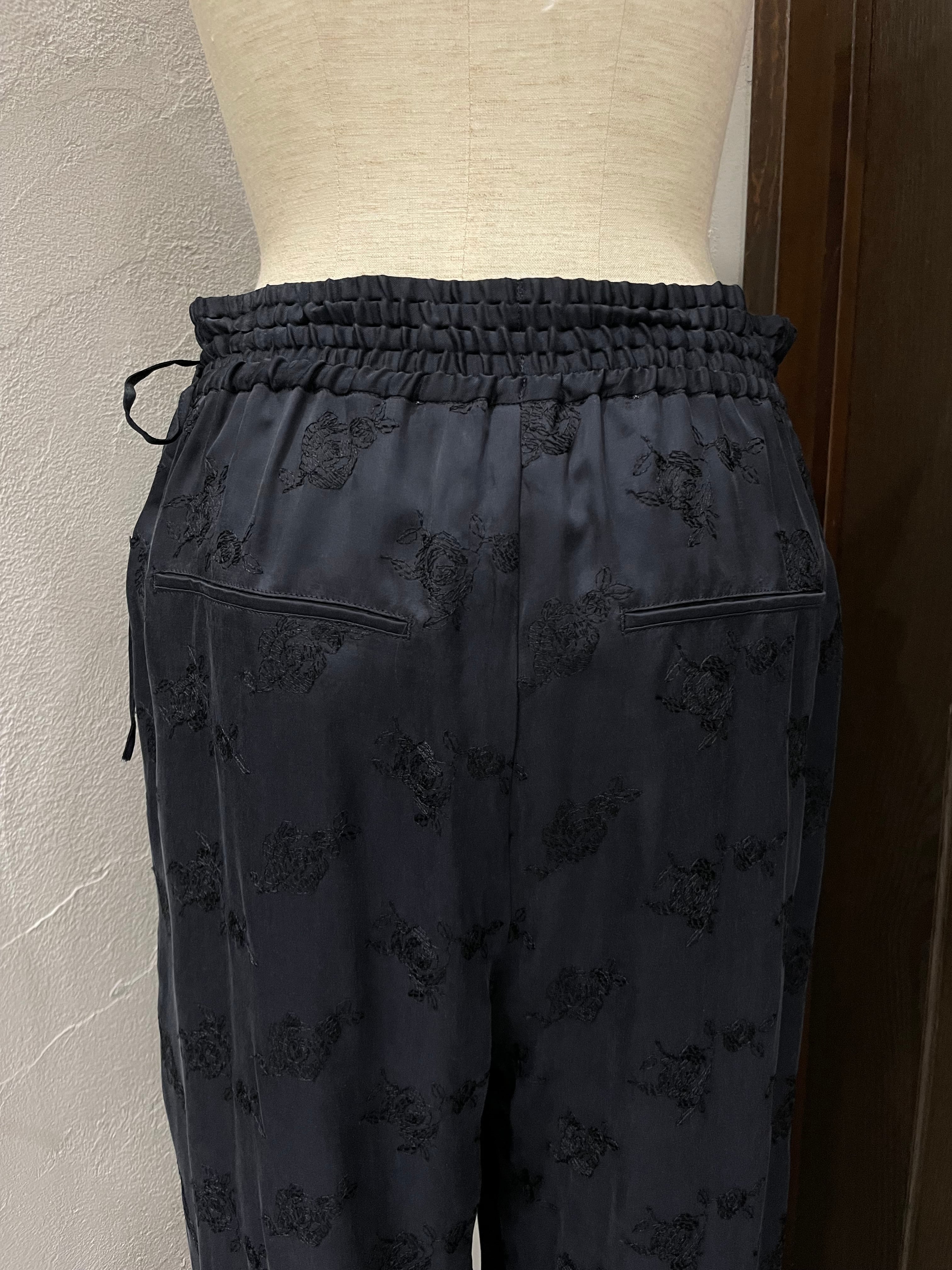 柔らかくとろみのある素材が生むドレープが歩くたびに揺れ、華やかでいて穏やかな空気を纏うようなパンツです。