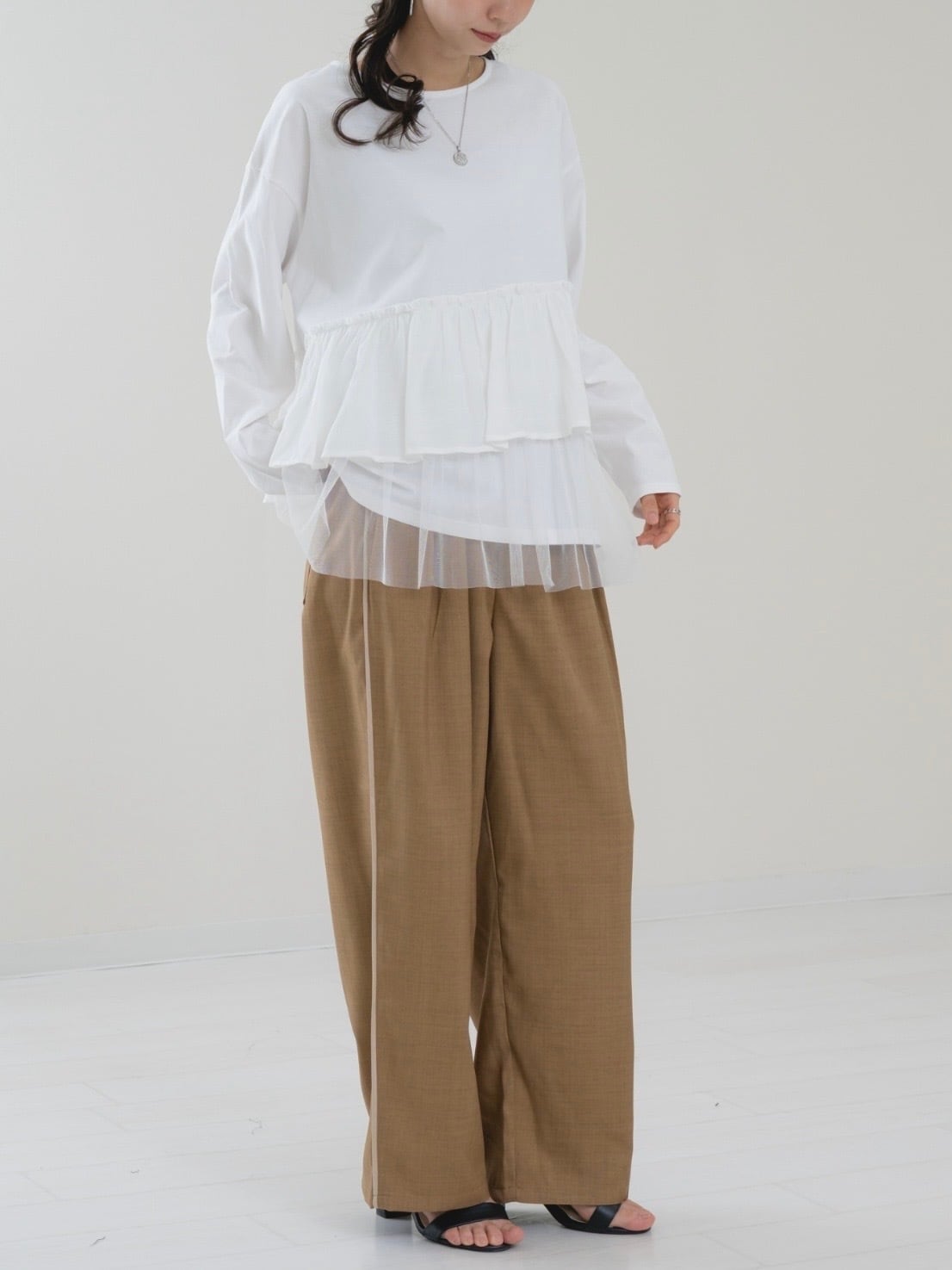 シルエットはルーズに広がりすぎないワイドストレートです。